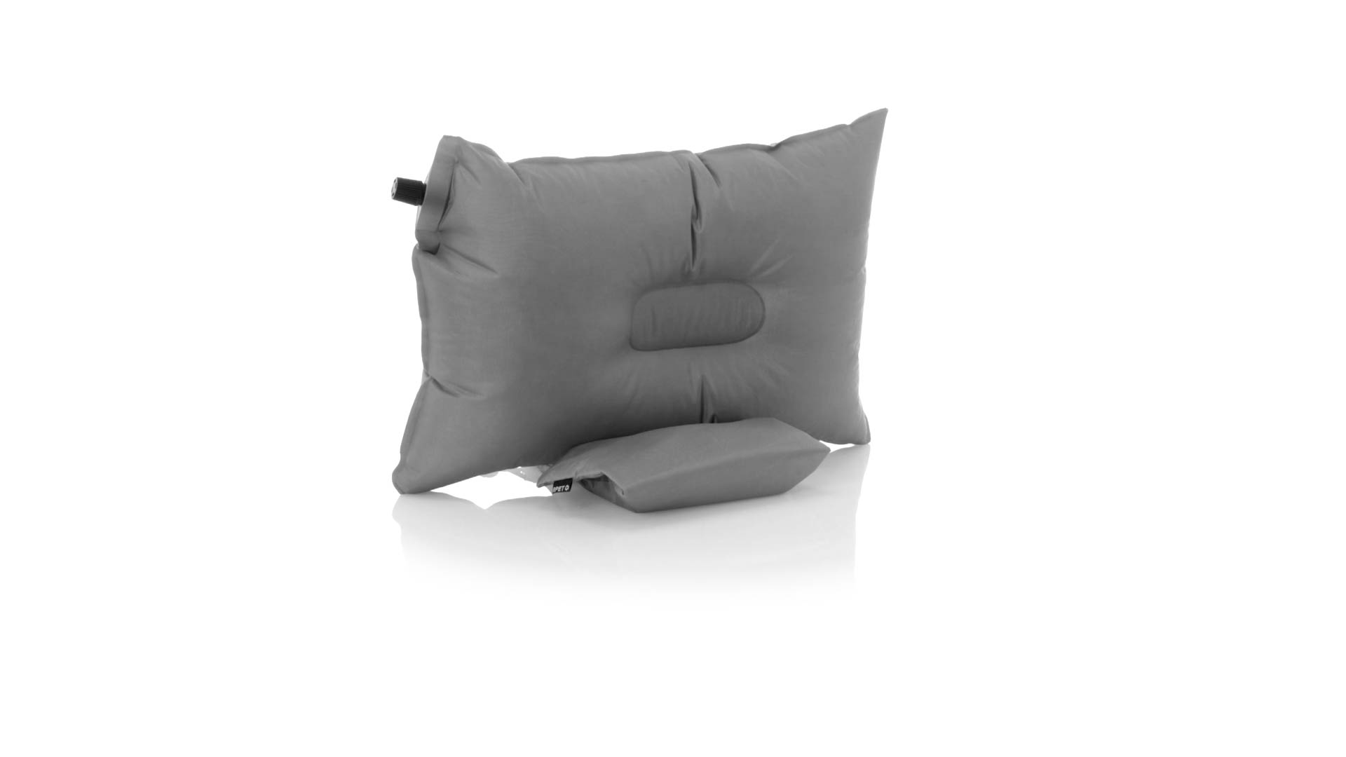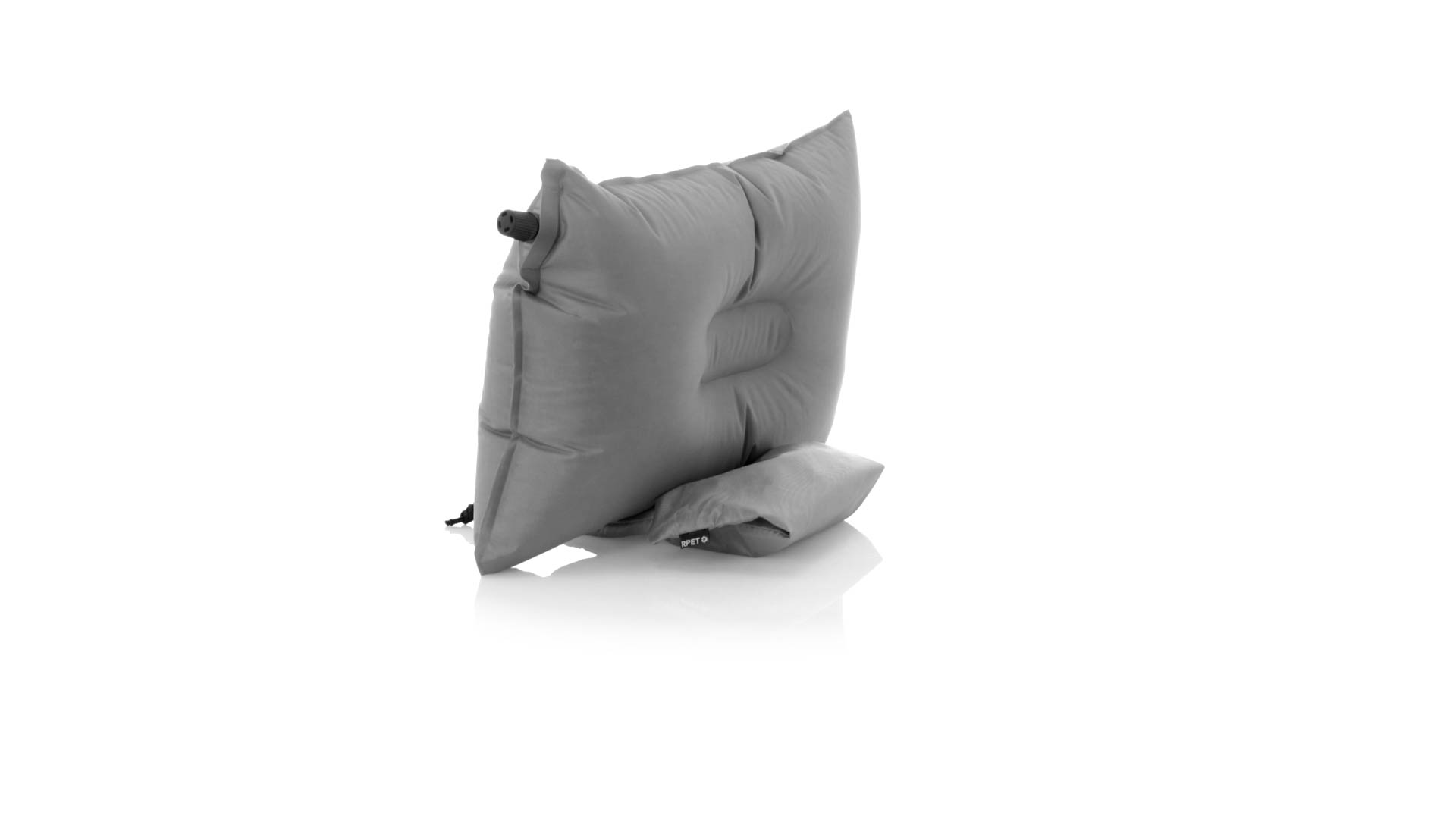 Fantastisches selbstaufblasbares Kissen aus weichem Polyester. Tragbares Kissen mit komfortablem Selbstaufblassystem: Durch Abschrauben der Düse in einer ihrer Ecken wird sie automatisch mit Luft gefüllt, wobei die Härte eingestellt werden kann. Leicht zu verstauen dank seiner RPET-Hülle, inklusive RPET-Logo.RPET wird aus recyceltem Kunststoff hergestellt, um die Wiederverwendung von Kunststoffabfällen zu fördern und die Nachhaltigkeit des Planeten zu unterstützen.