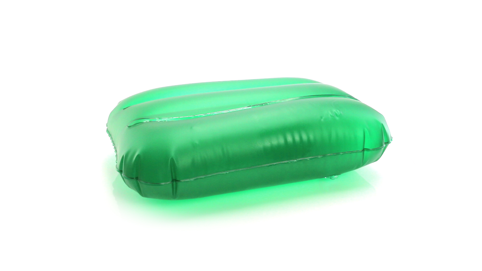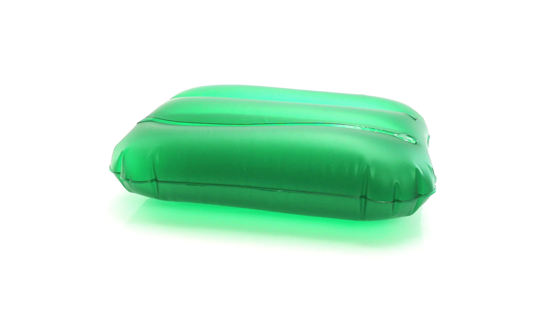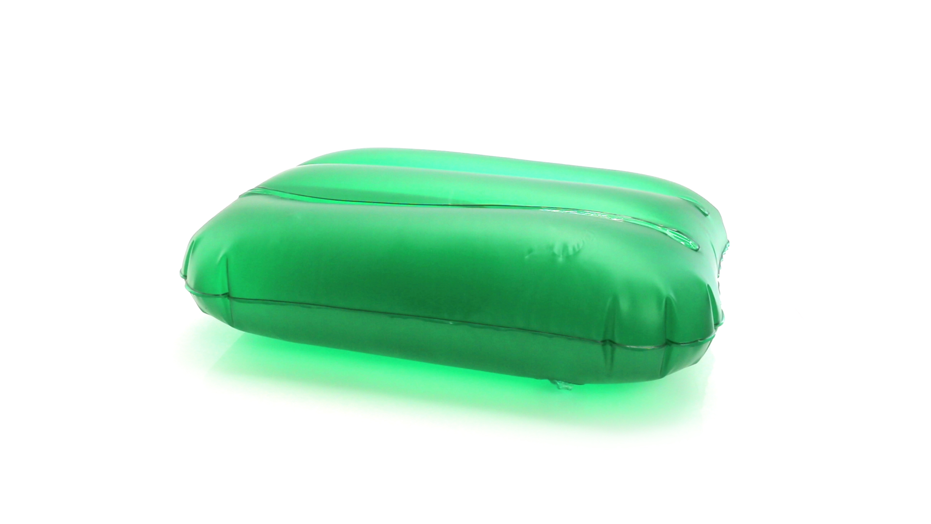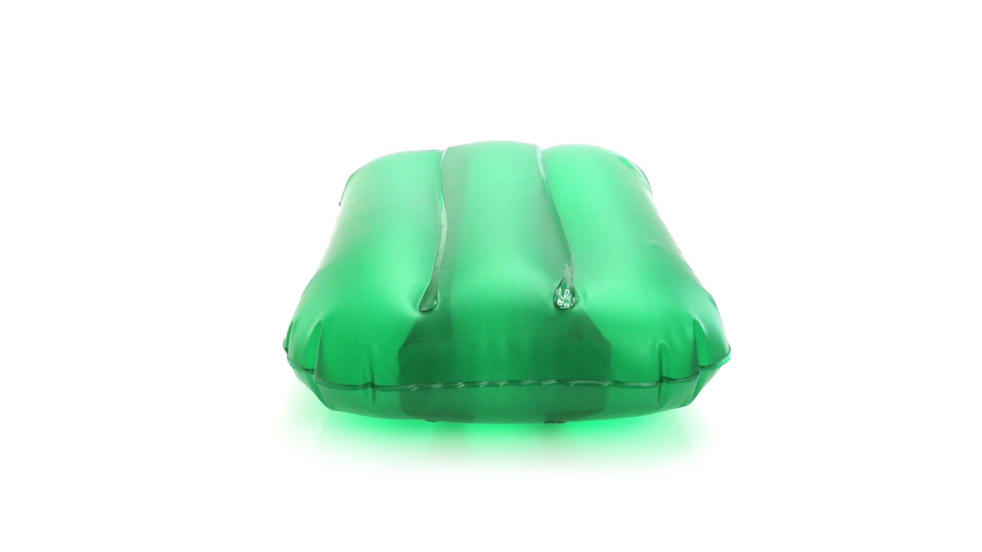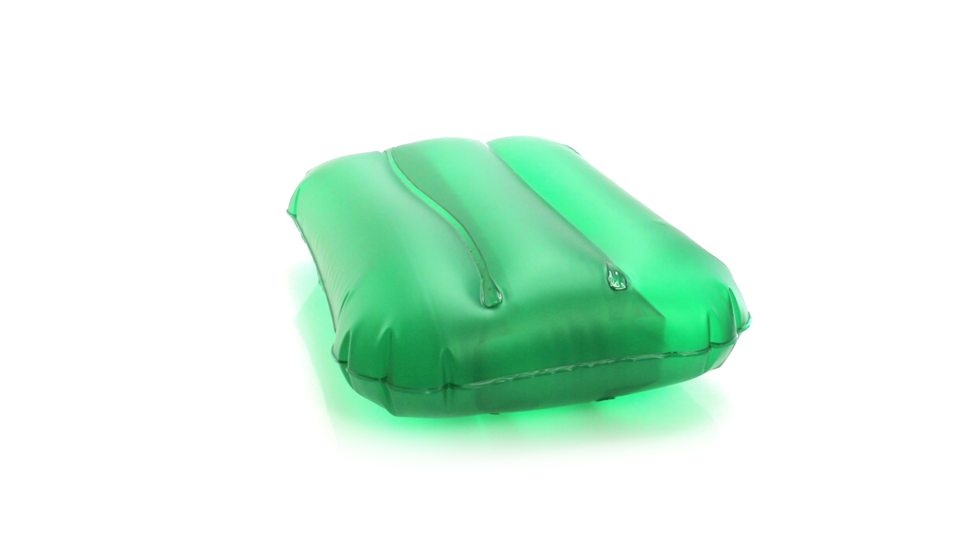 Aufblasbares Kissen aus widerstandsfähigem PVC in verschiedenen kräftigen Farben.