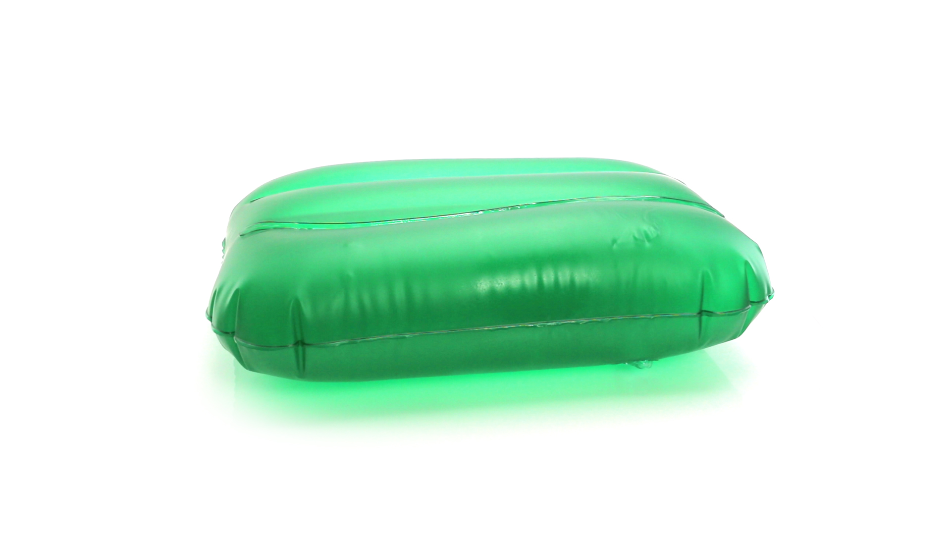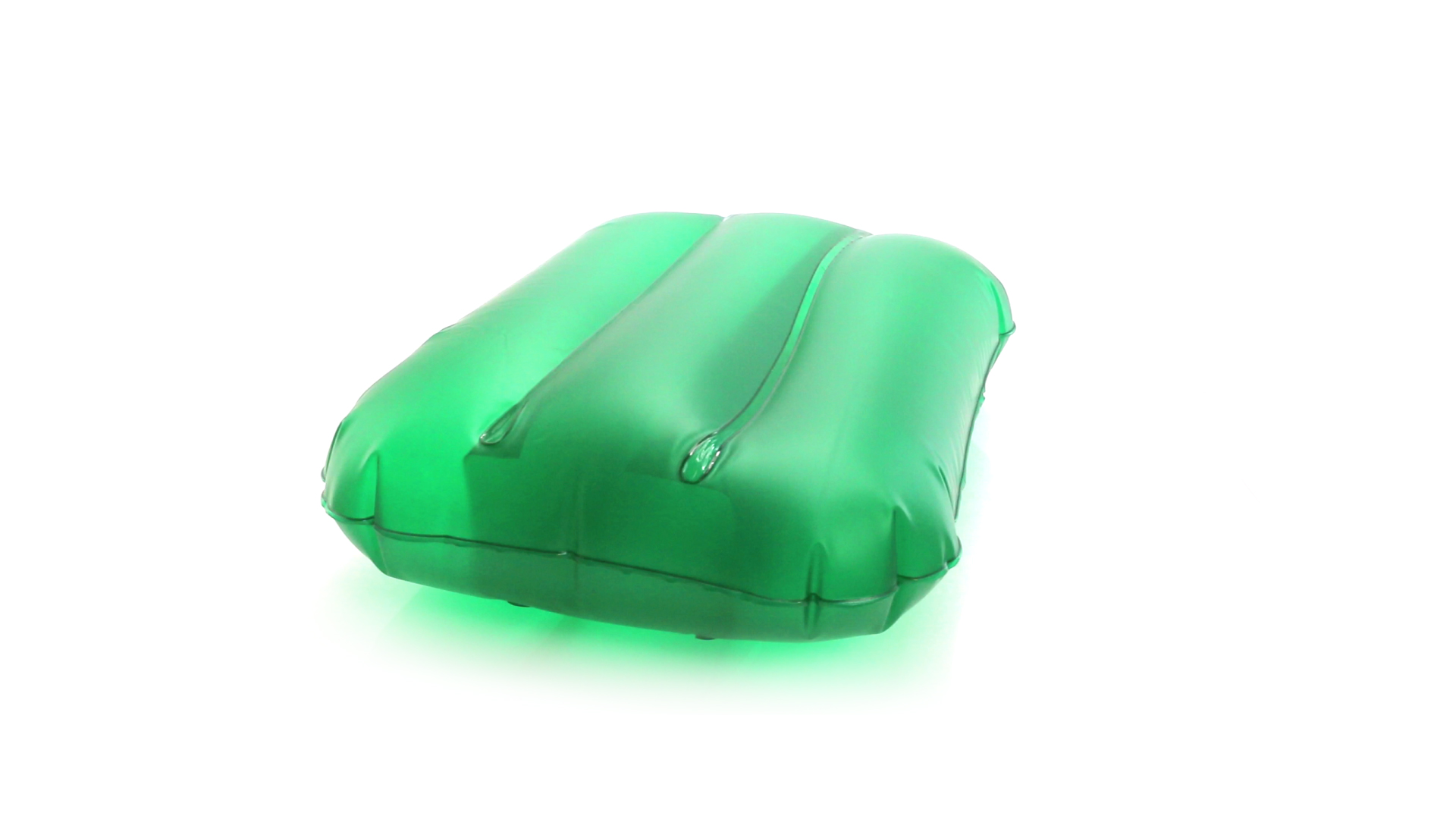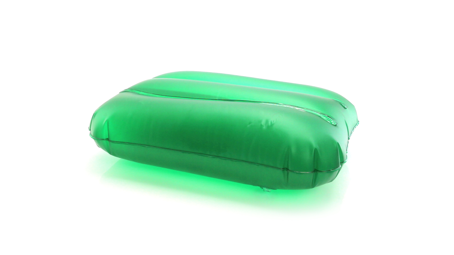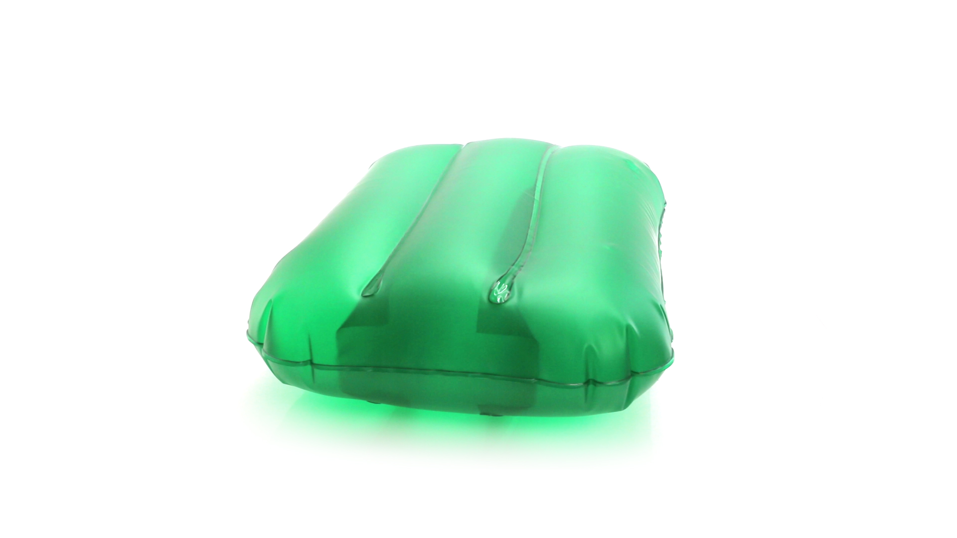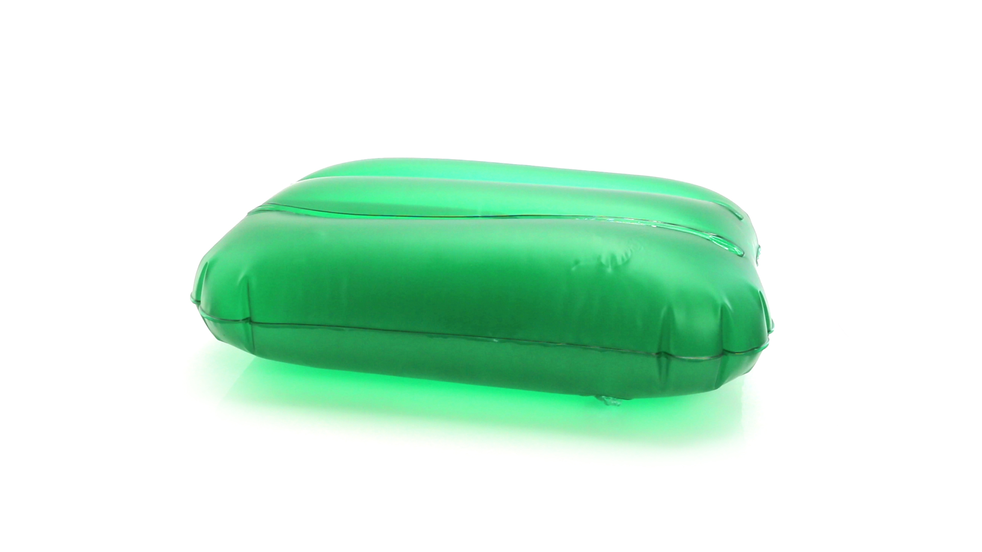 Aufblasbares Kissen aus widerstandsfähigem PVC in verschiedenen kräftigen Farben.