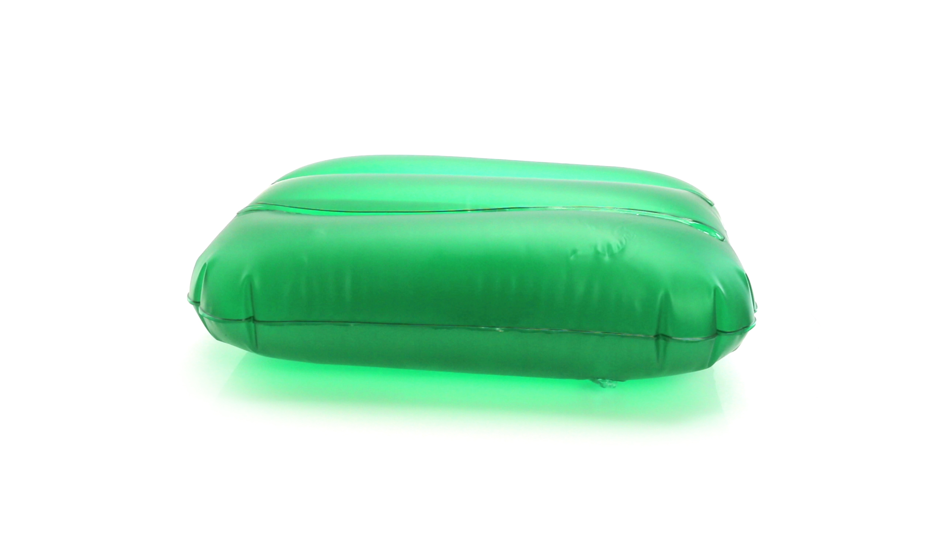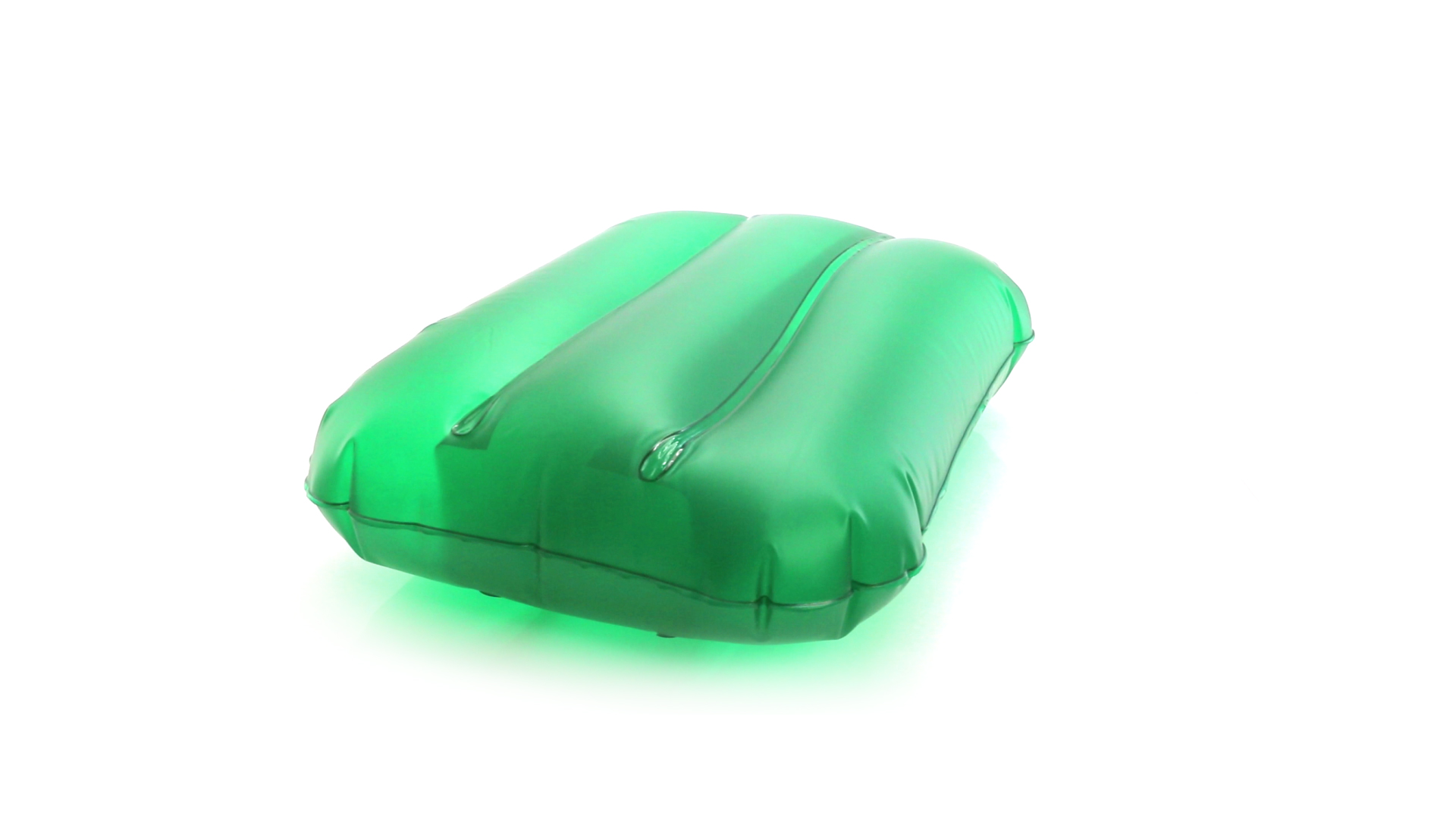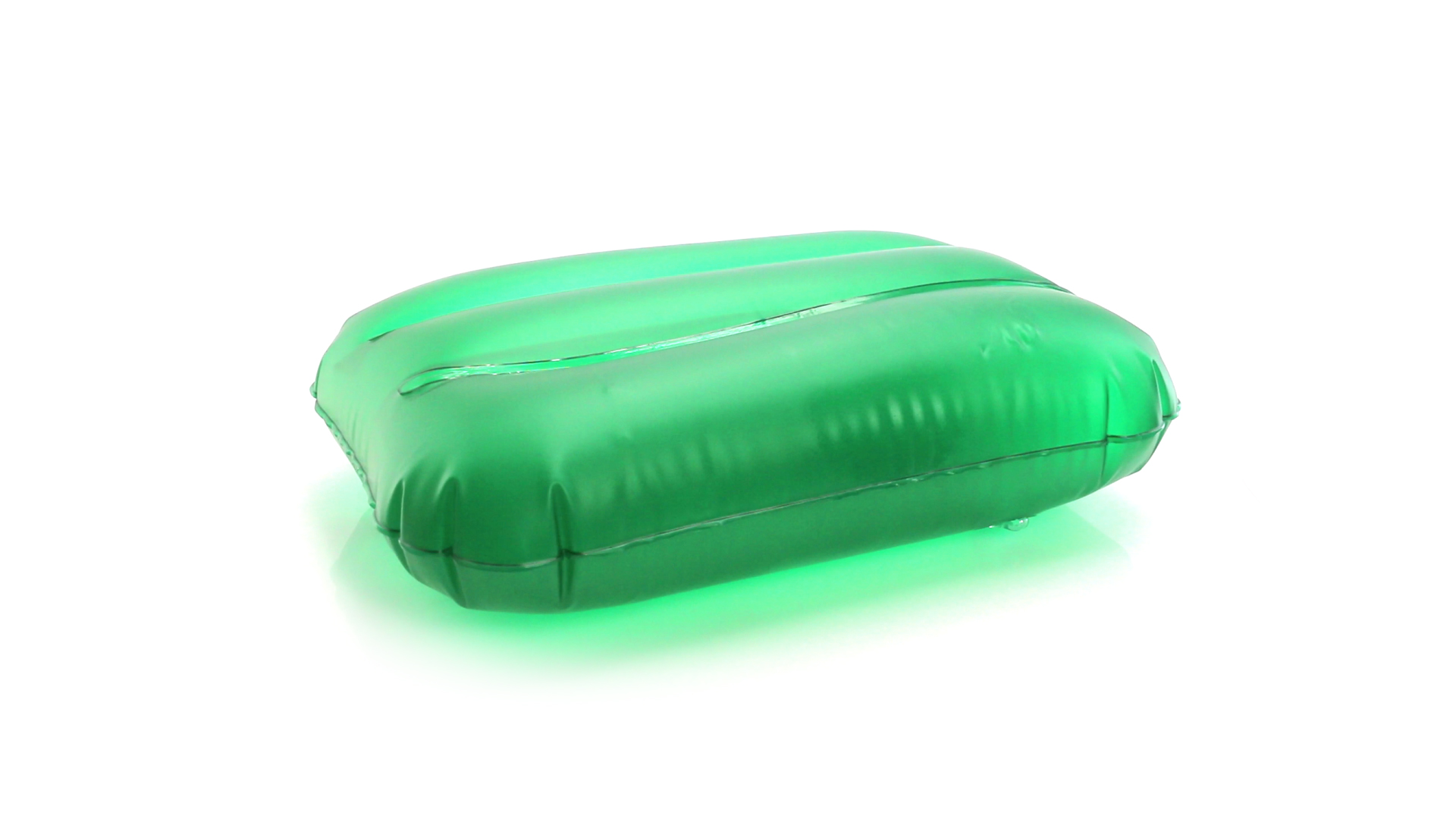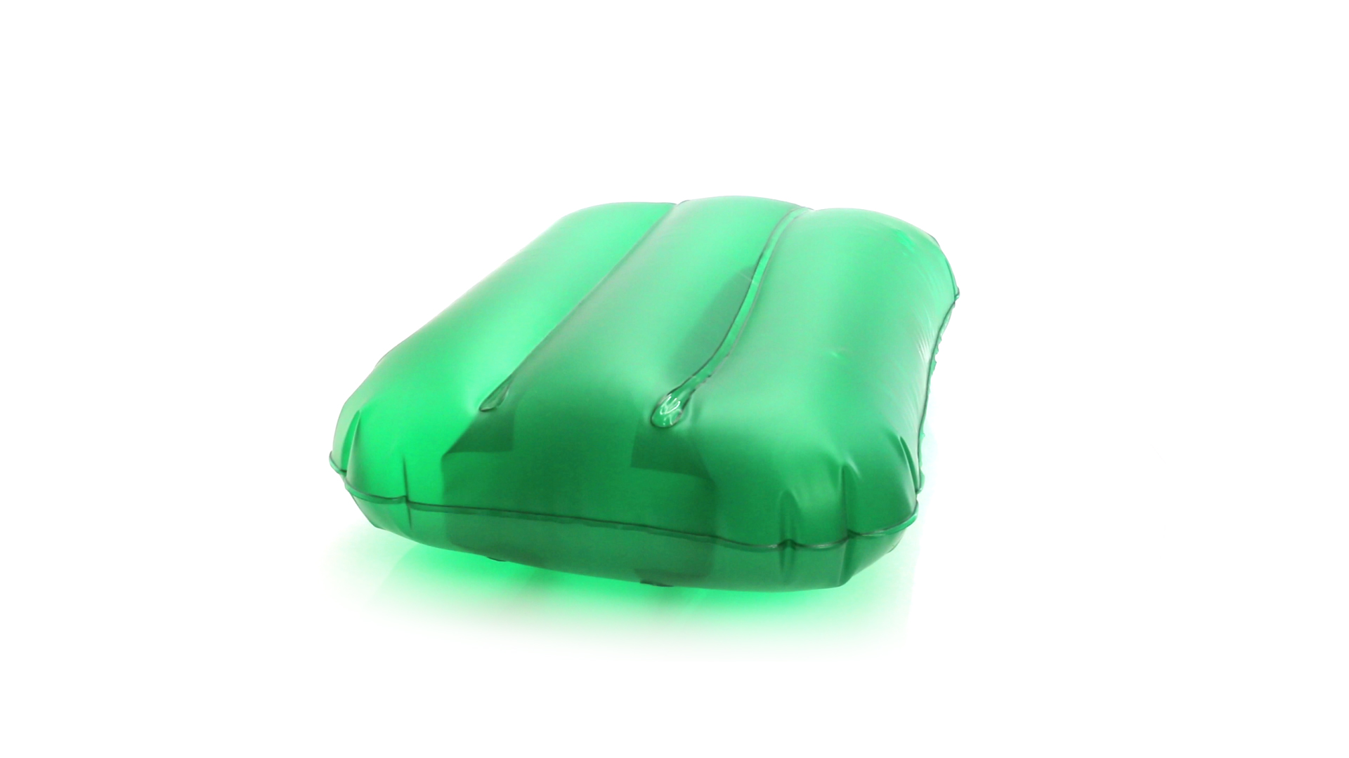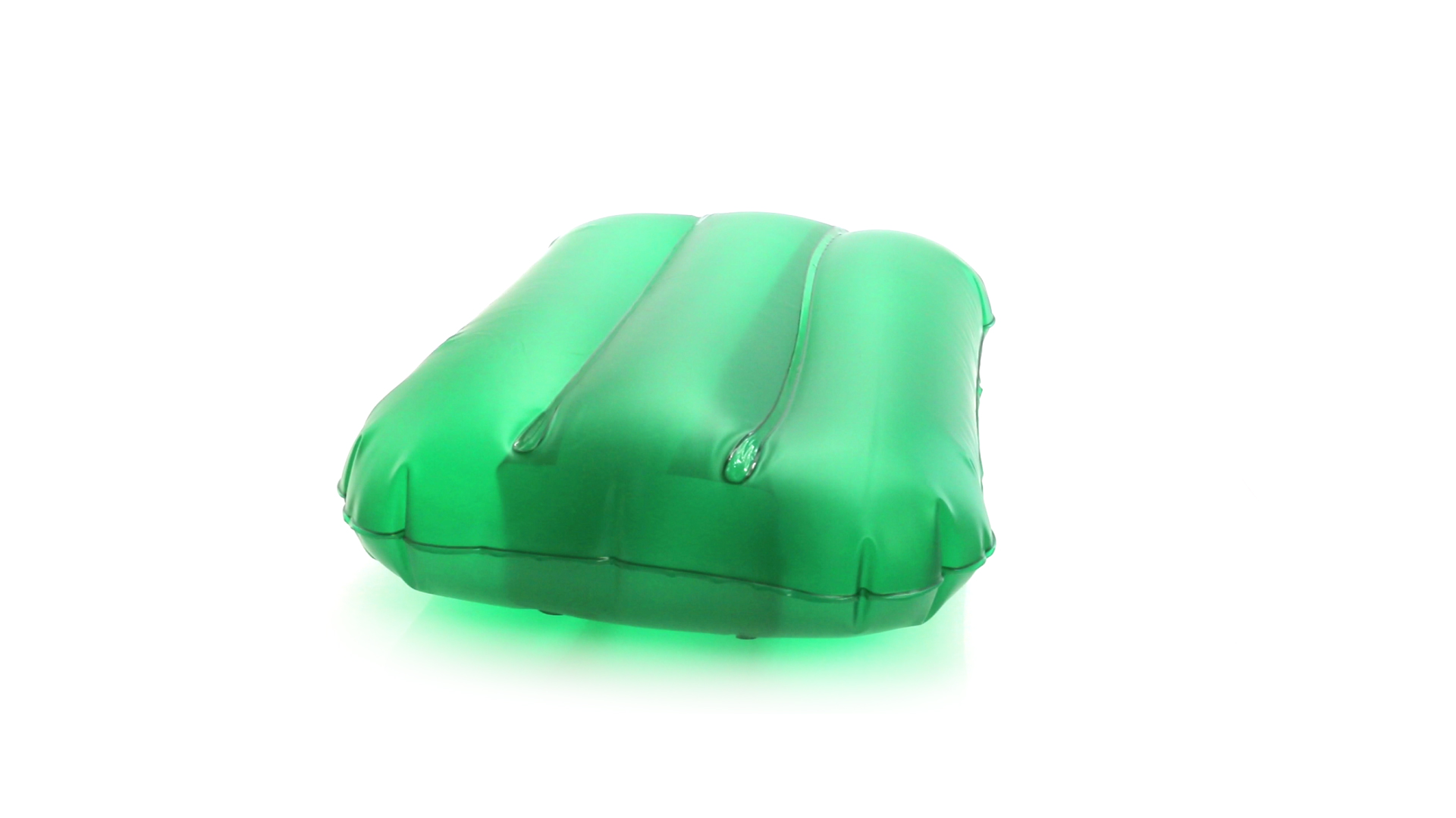 Aufblasbares Kissen aus widerstandsfähigem PVC in verschiedenen kräftigen Farben.