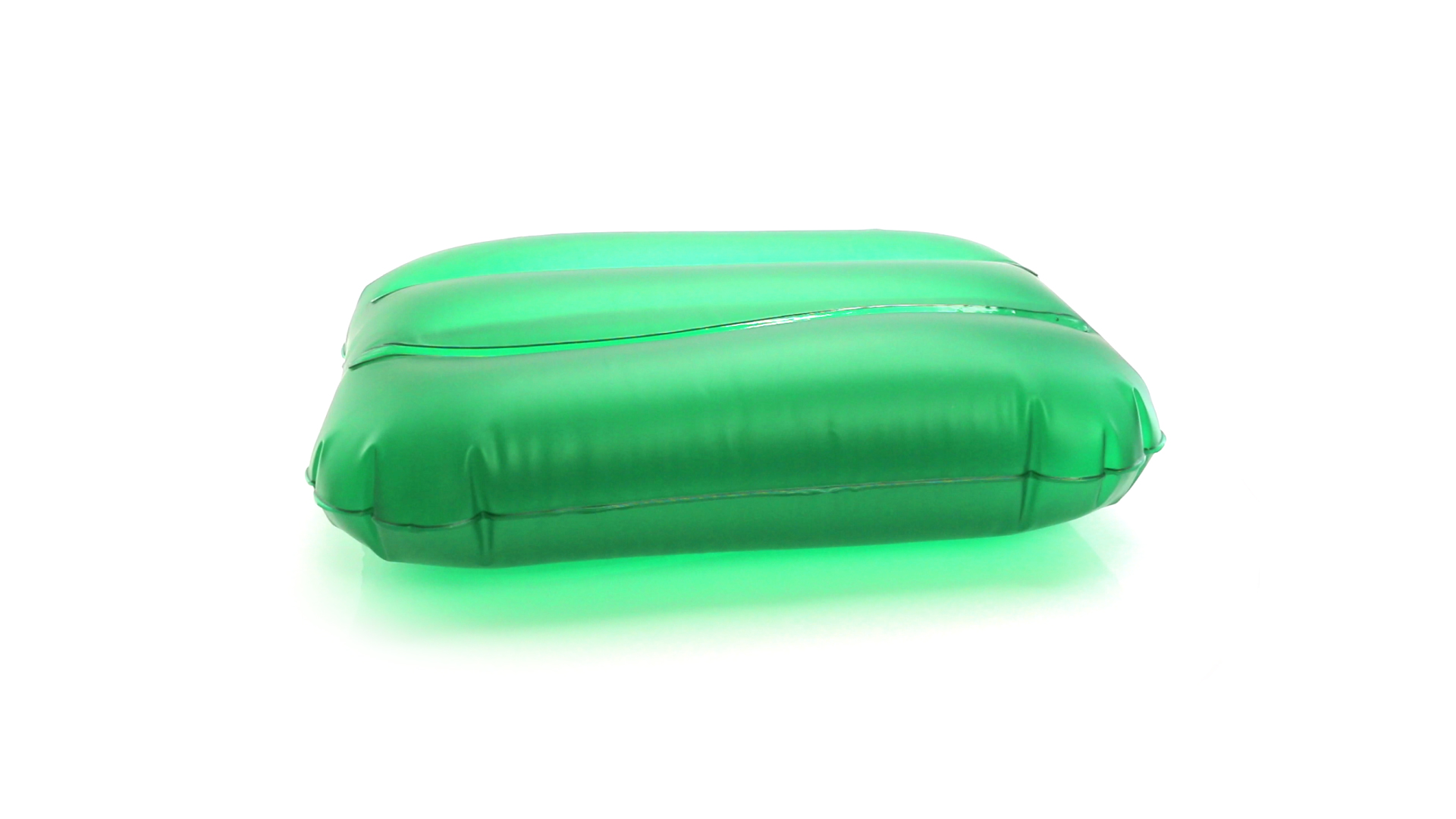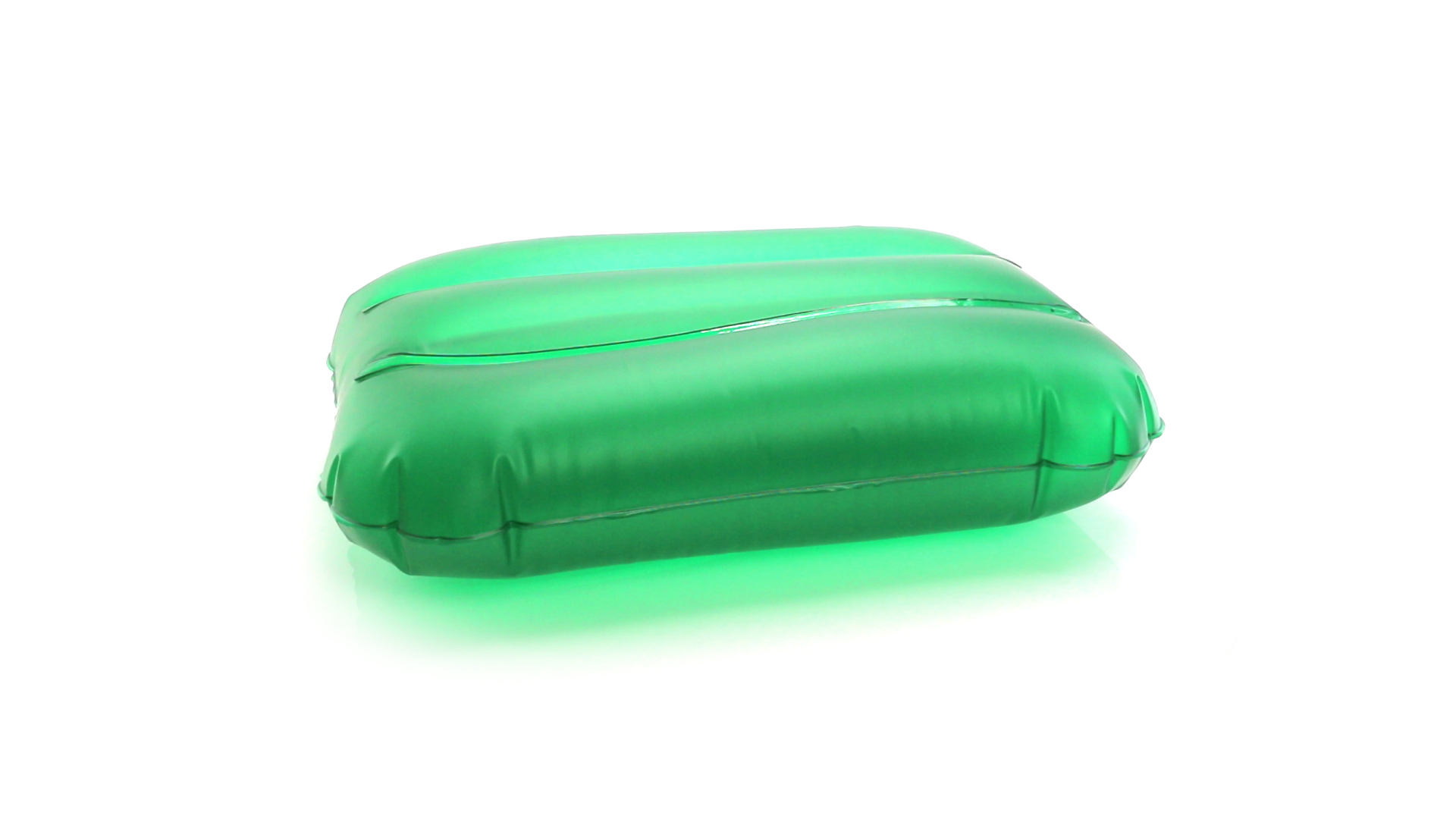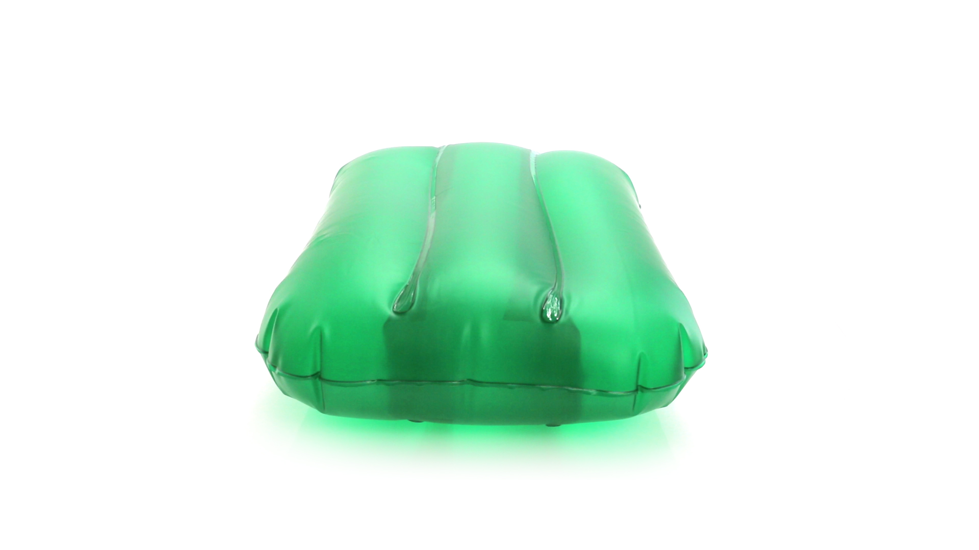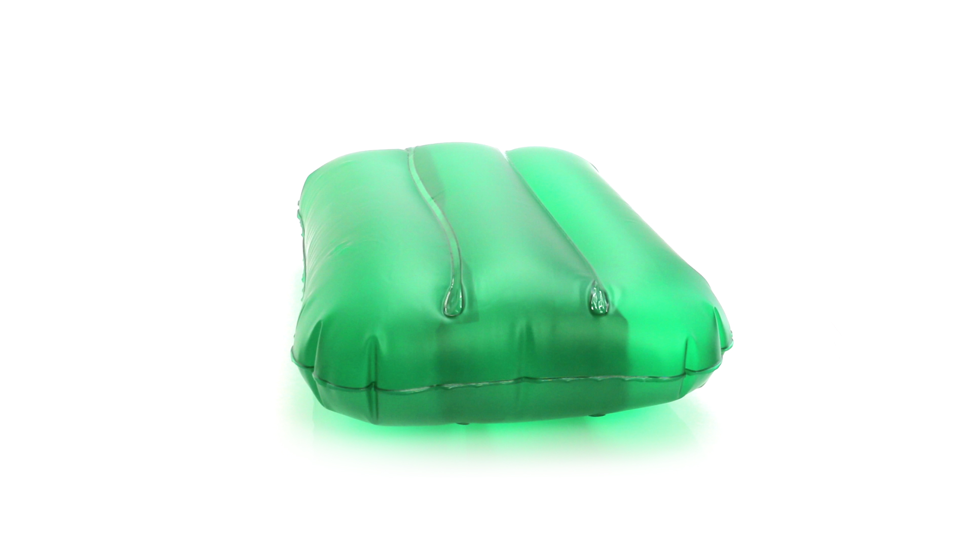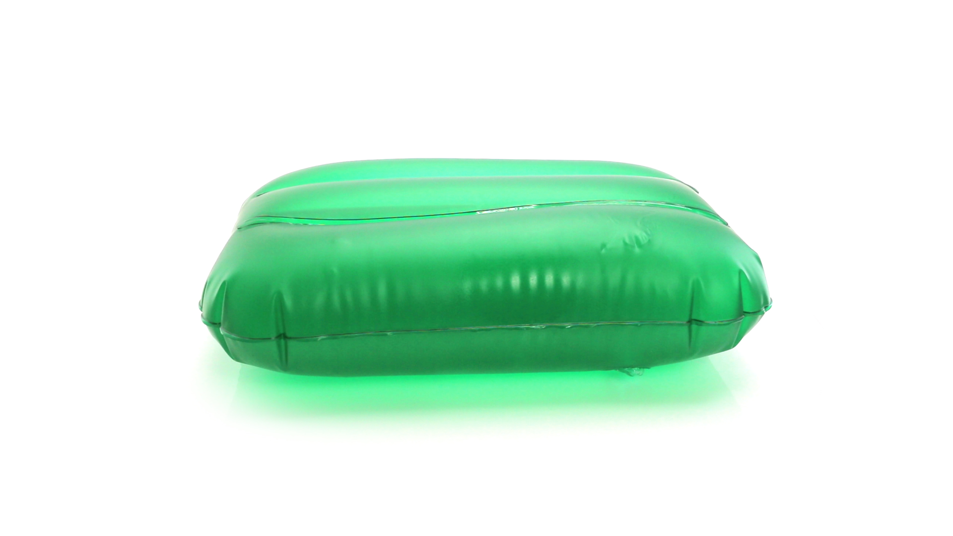 Aufblasbares Kissen aus widerstandsfähigem PVC in verschiedenen kräftigen Farben.