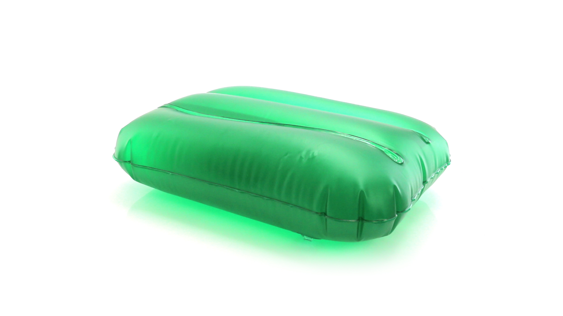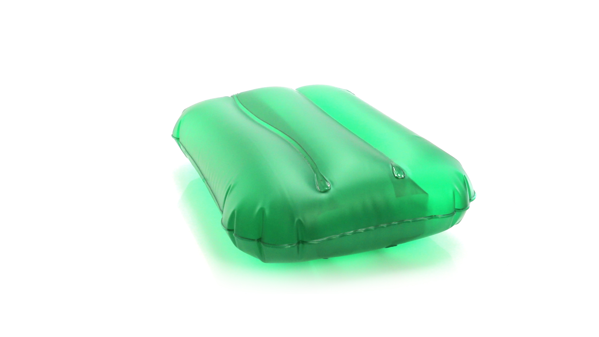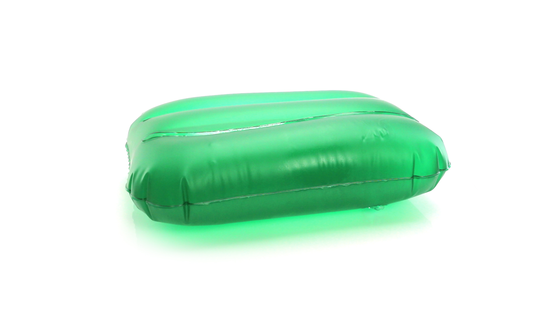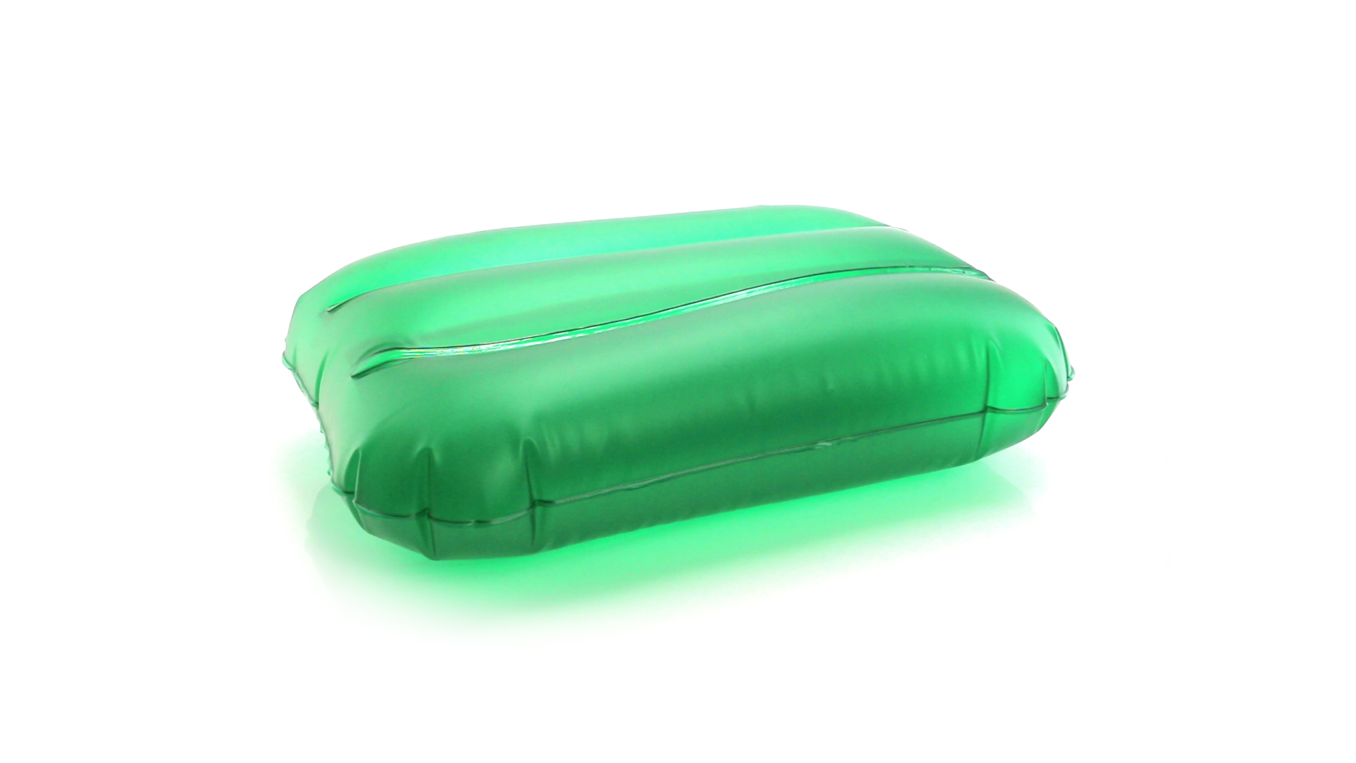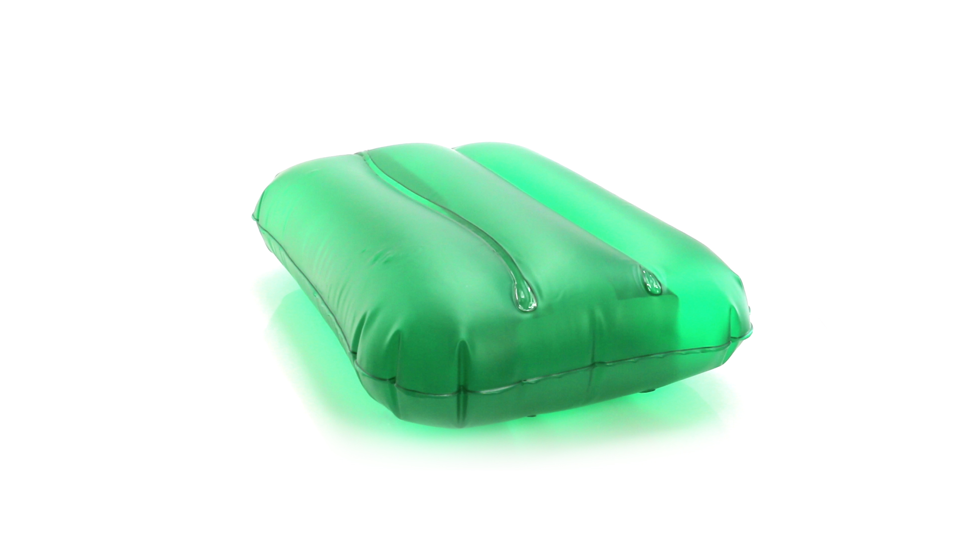 Aufblasbares Kissen aus widerstandsfähigem PVC in verschiedenen kräftigen Farben.