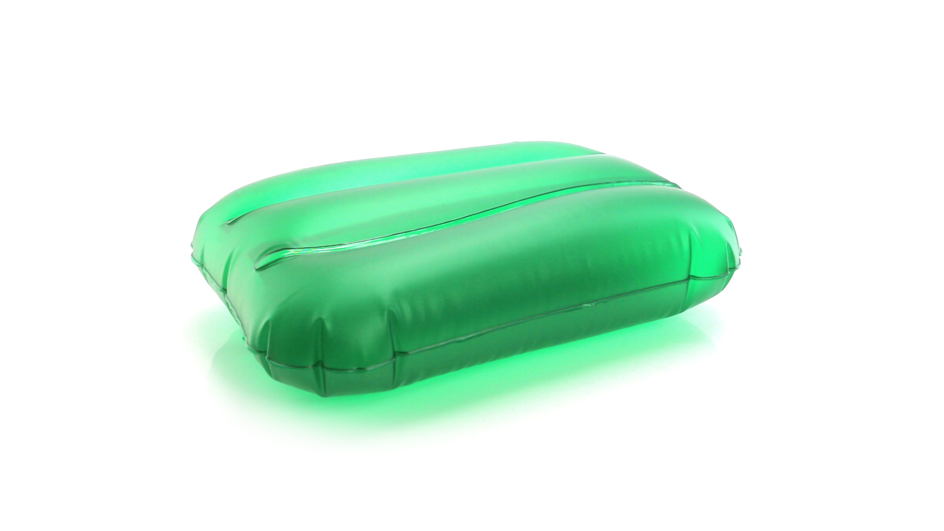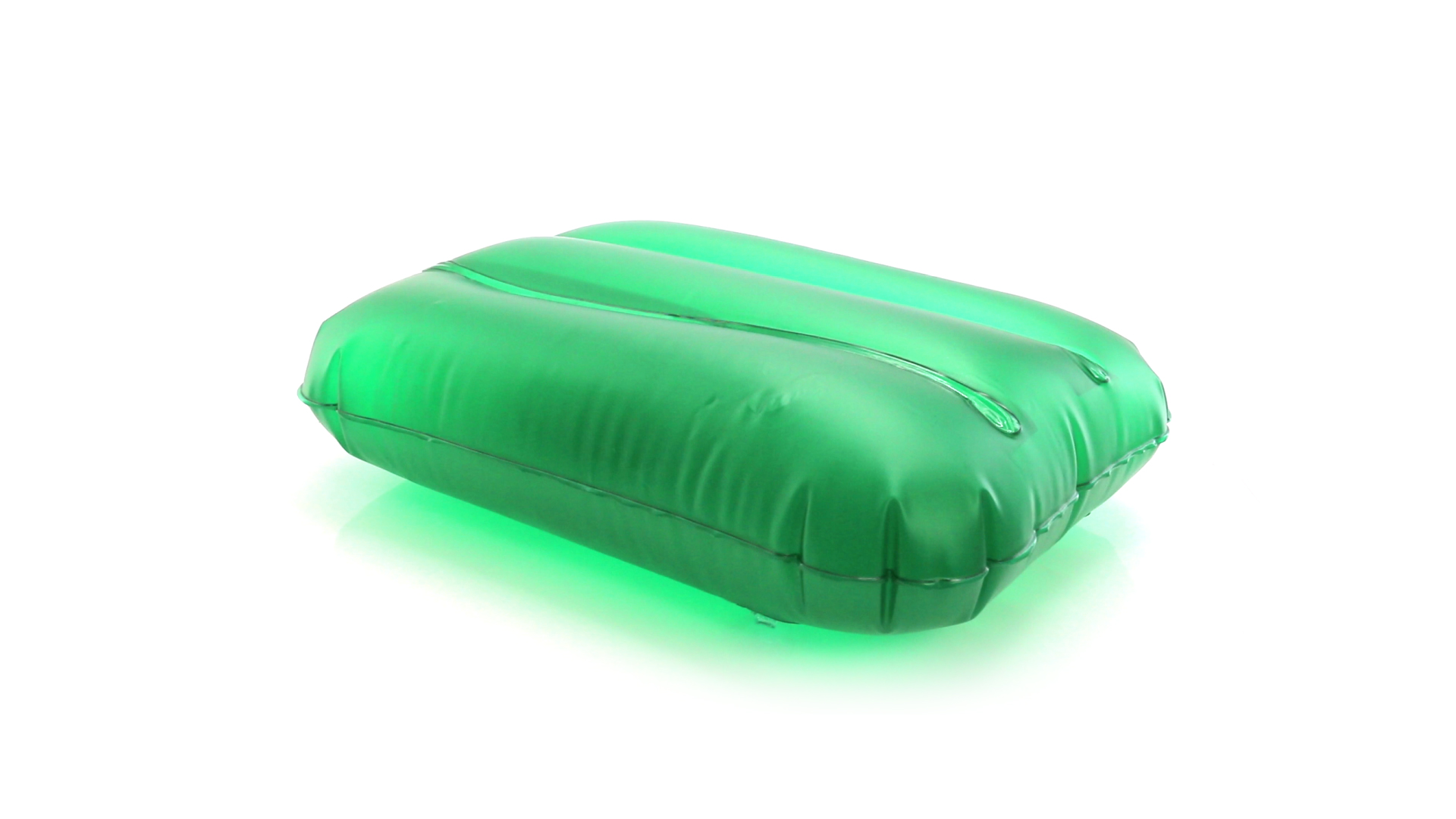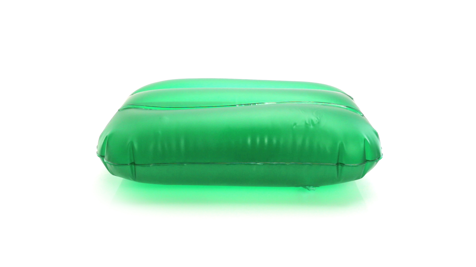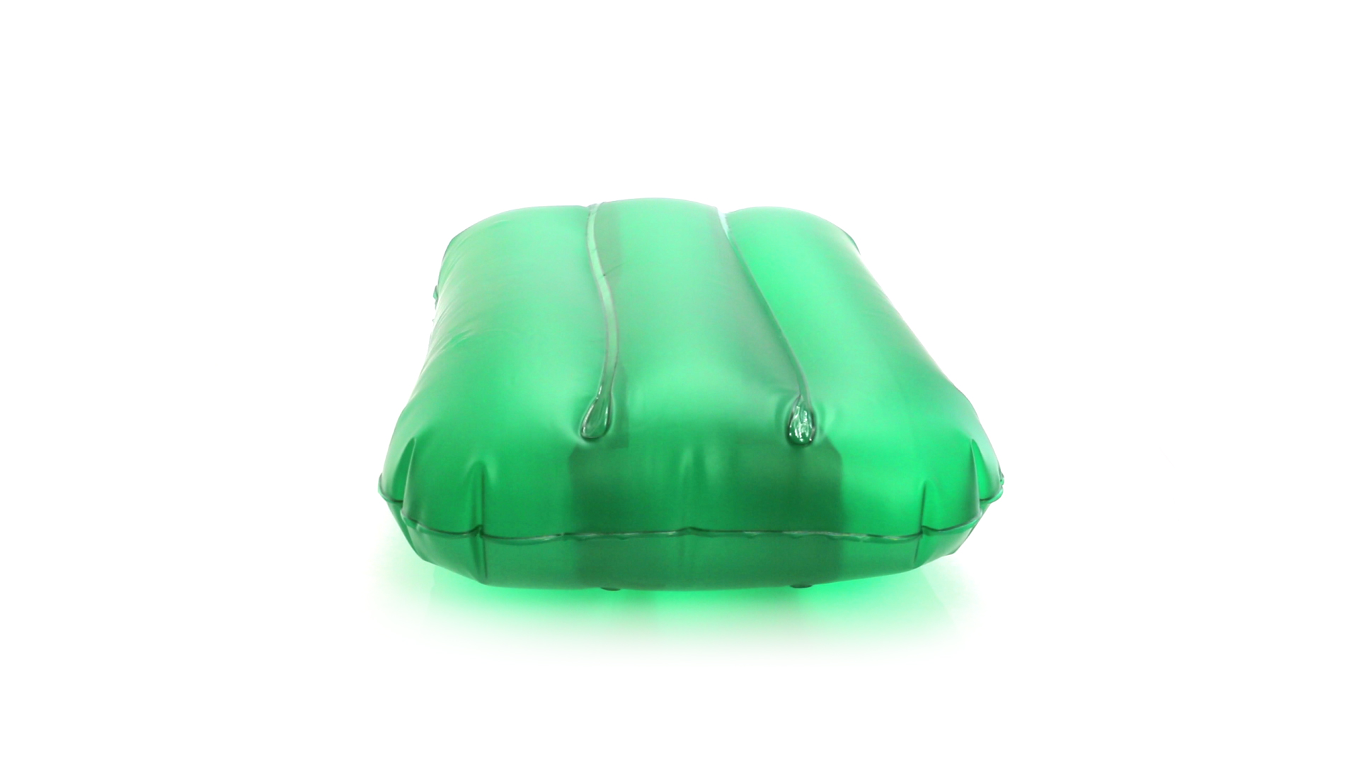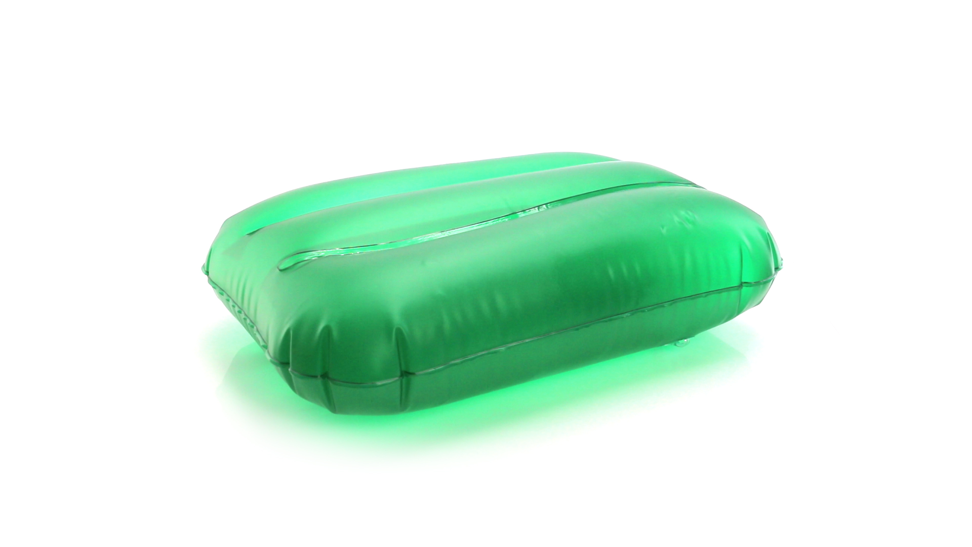 Aufblasbares Kissen aus widerstandsfähigem PVC in verschiedenen kräftigen Farben.
