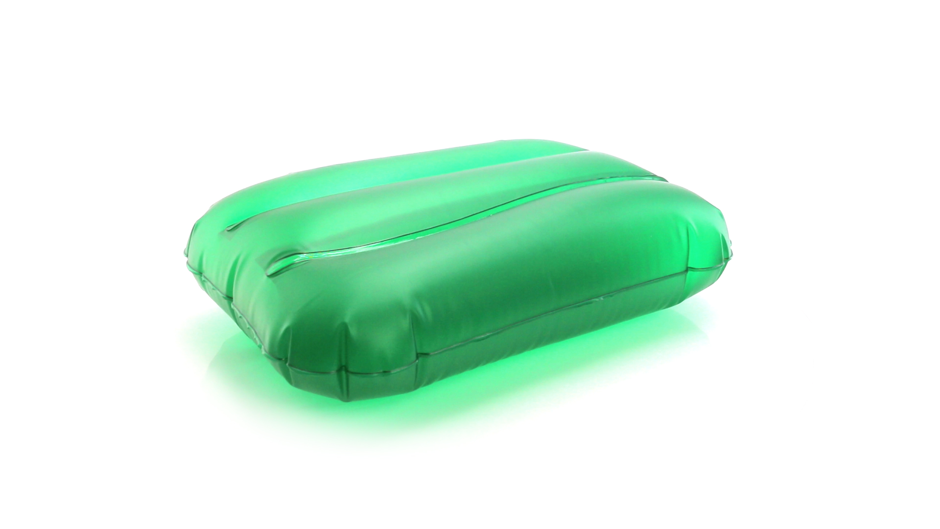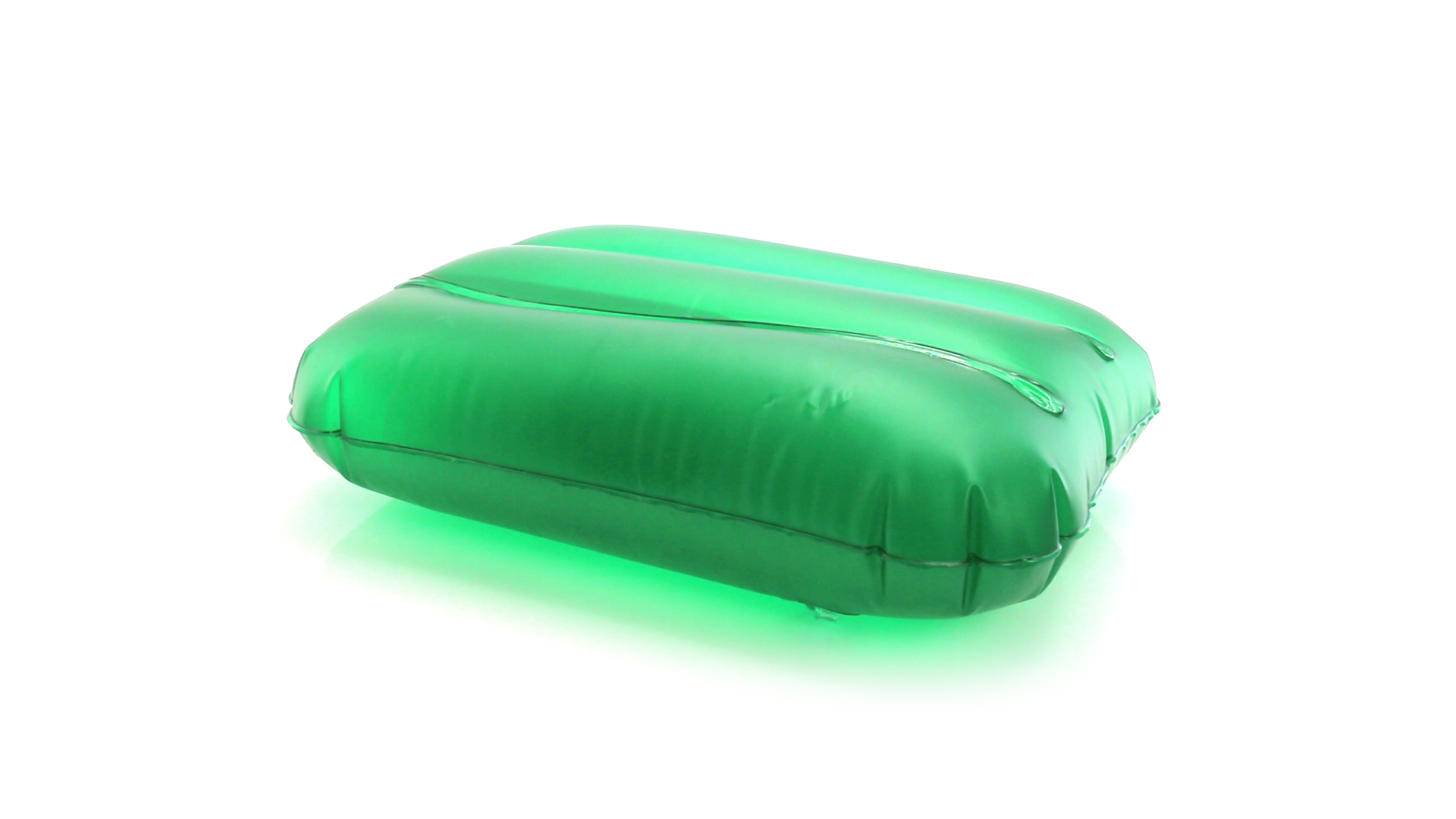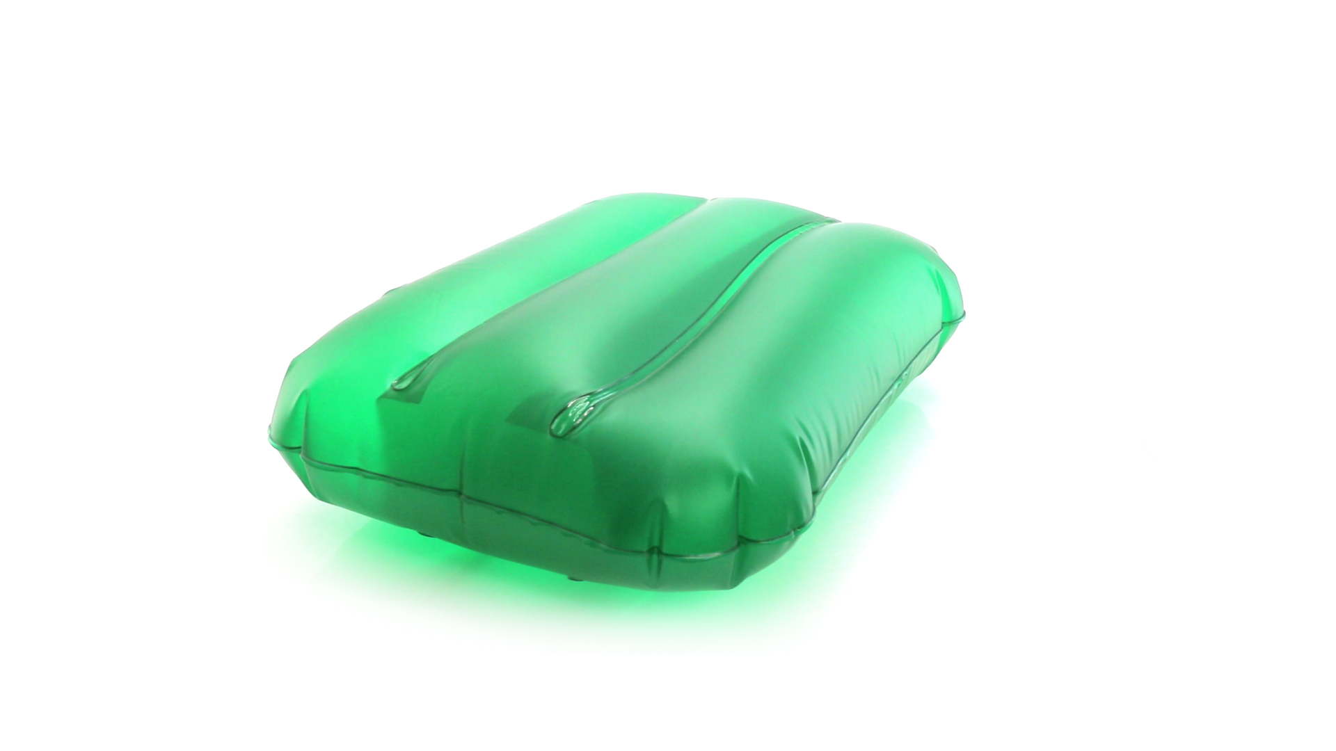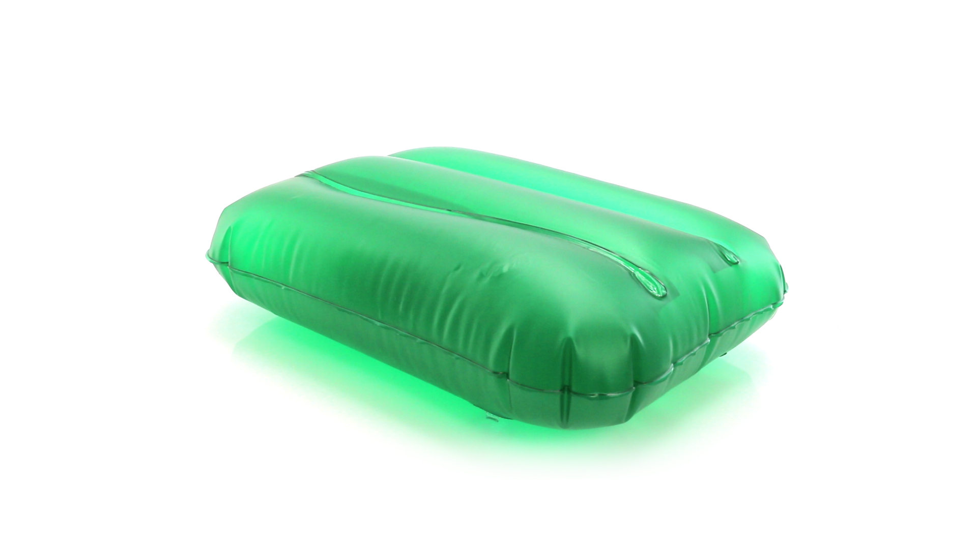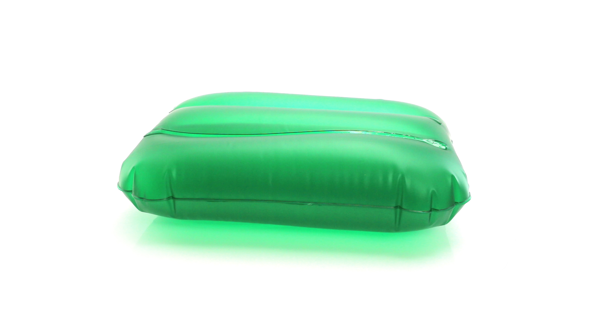 Aufblasbares Kissen aus widerstandsfähigem PVC in verschiedenen kräftigen Farben.