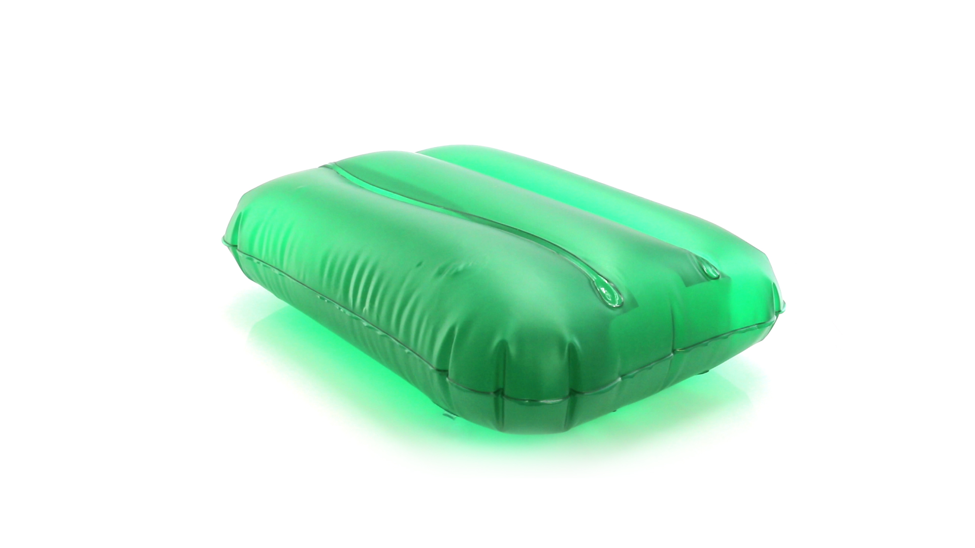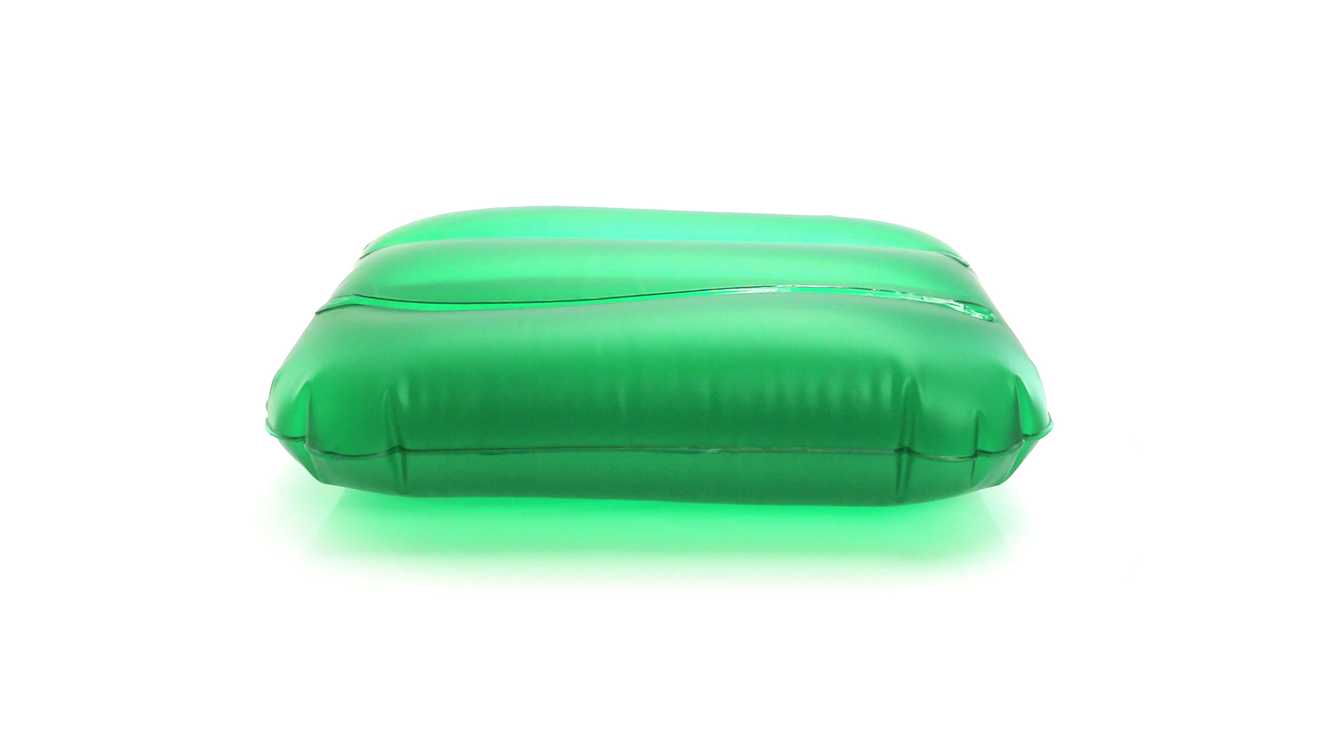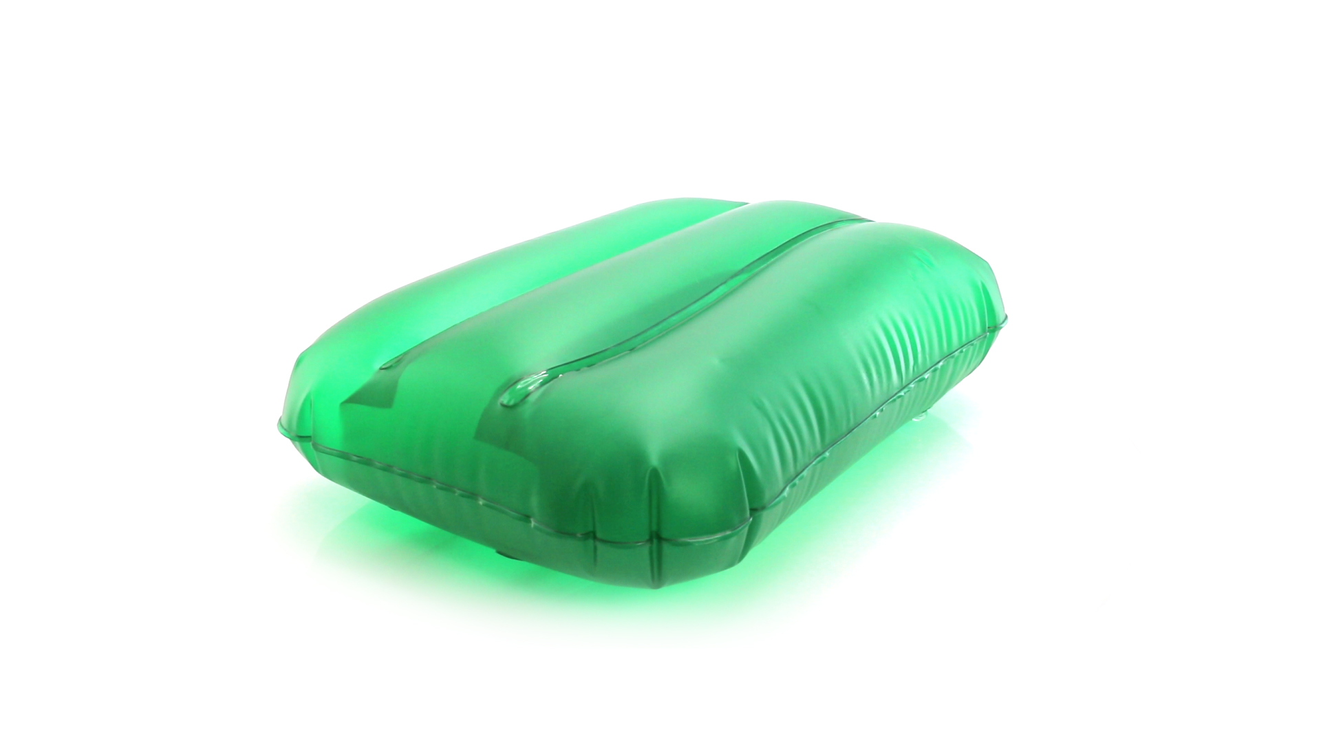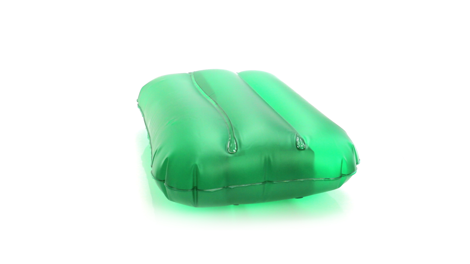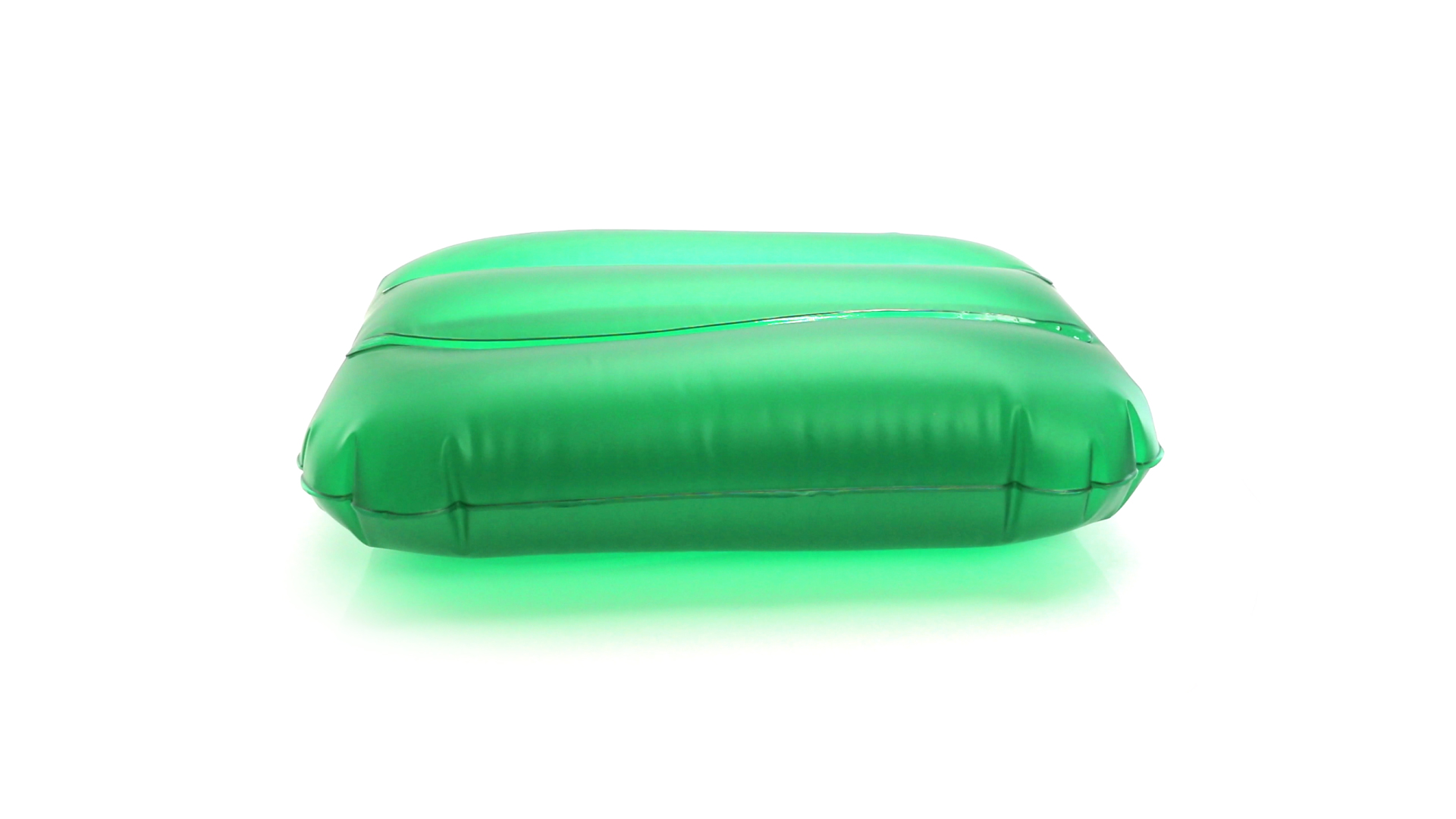 Aufblasbares Kissen aus widerstandsfähigem PVC in verschiedenen kräftigen Farben.