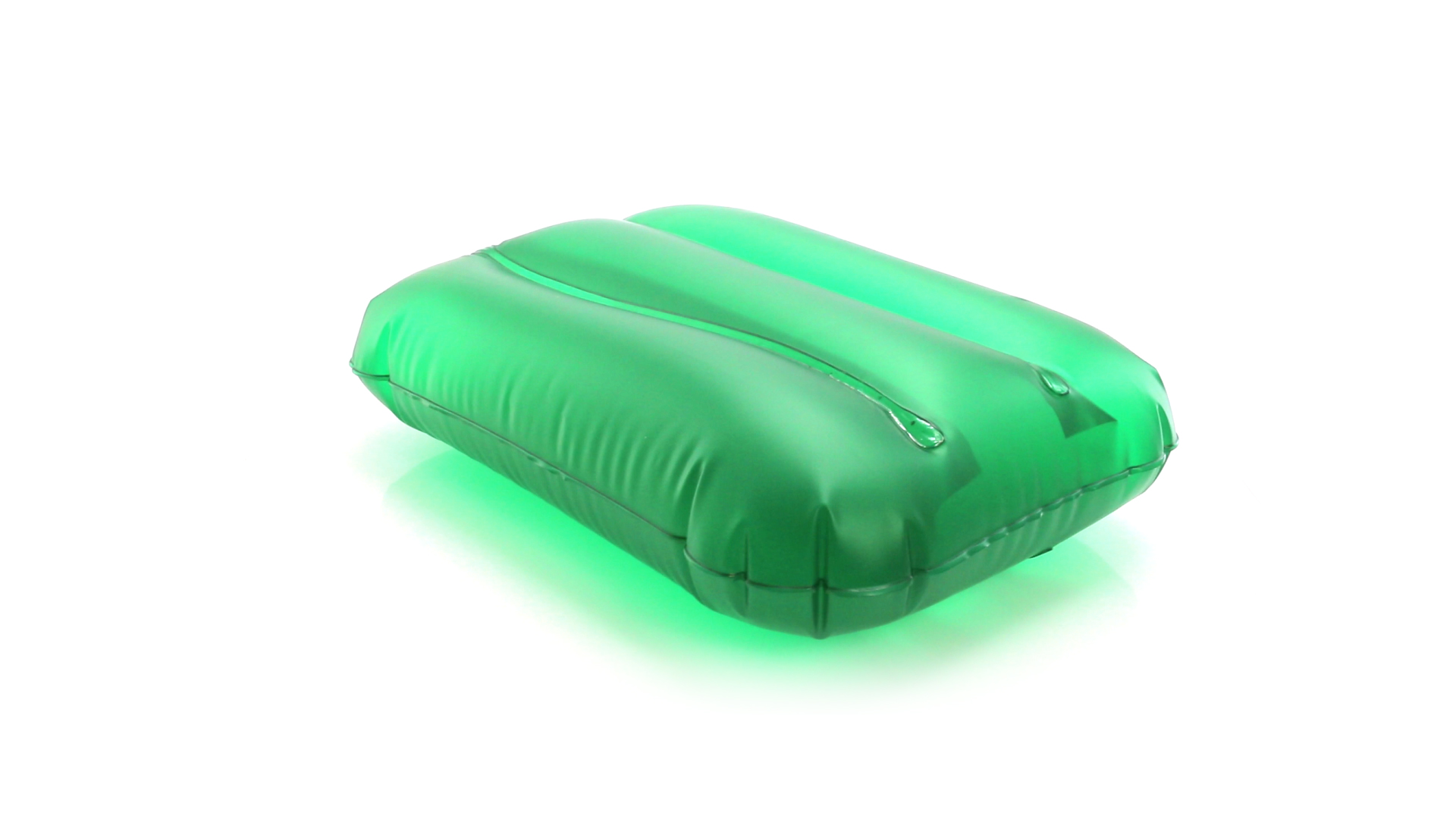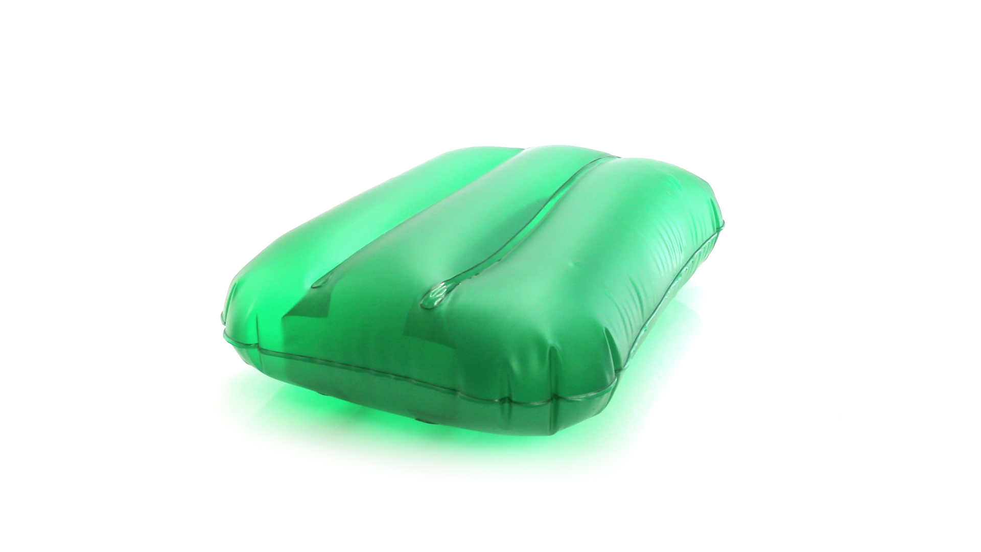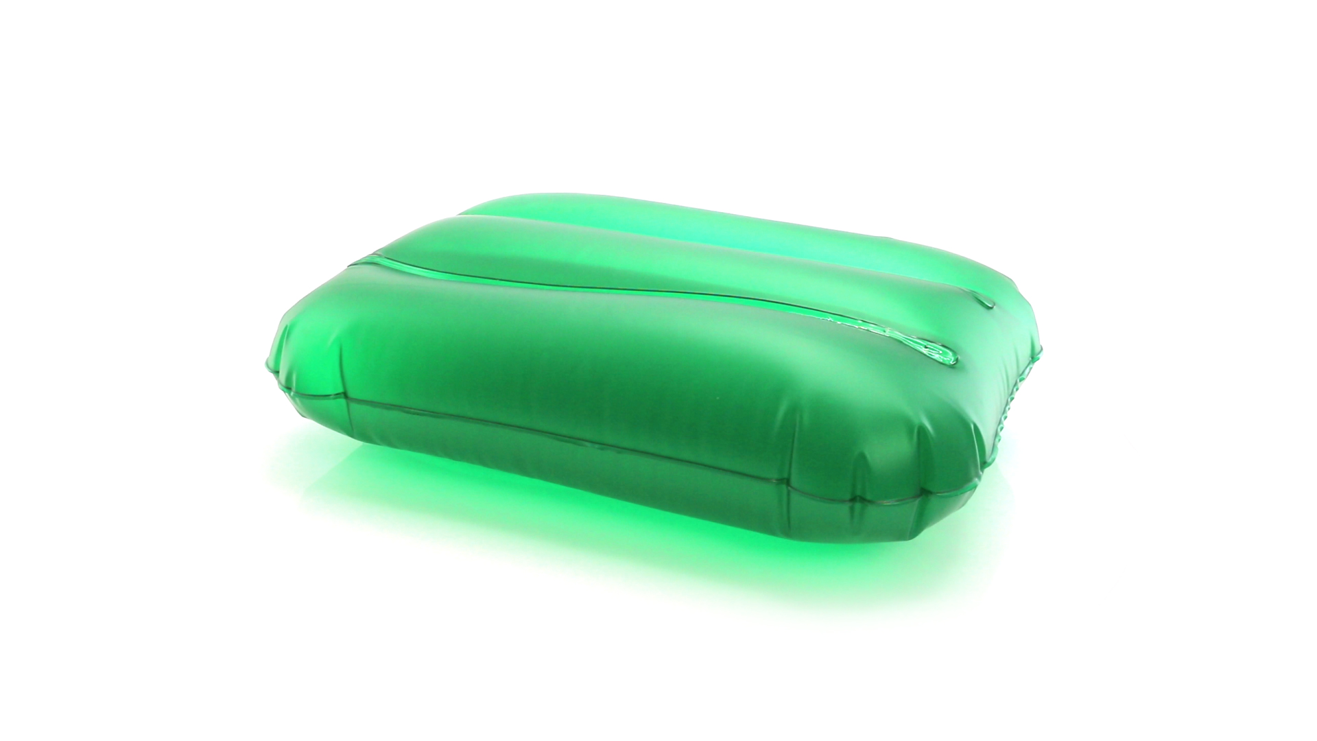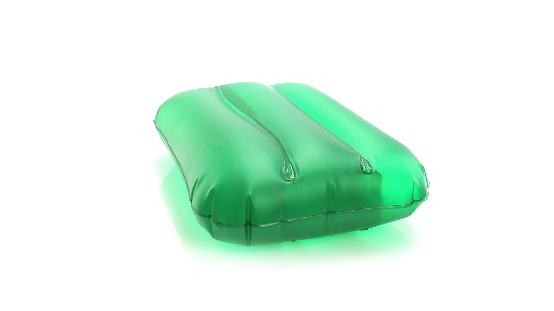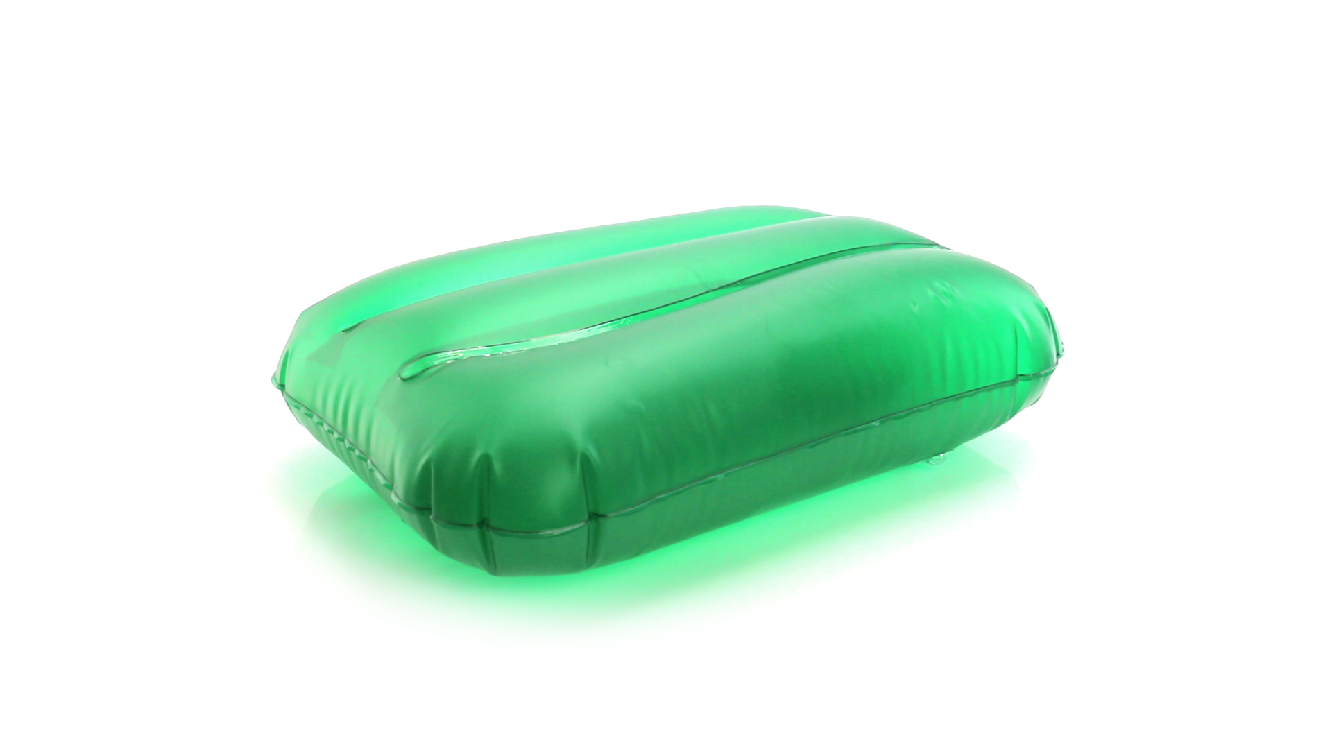 Aufblasbares Kissen aus widerstandsfähigem PVC in verschiedenen kräftigen Farben.