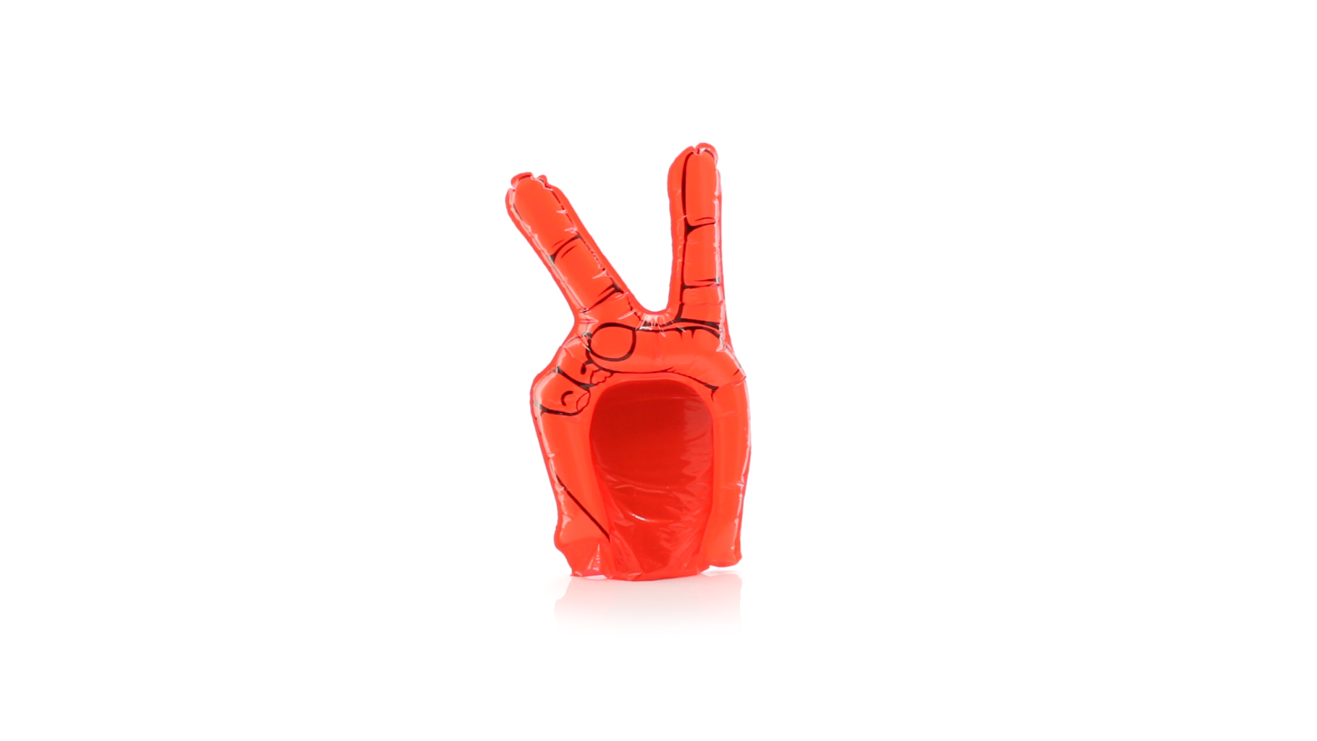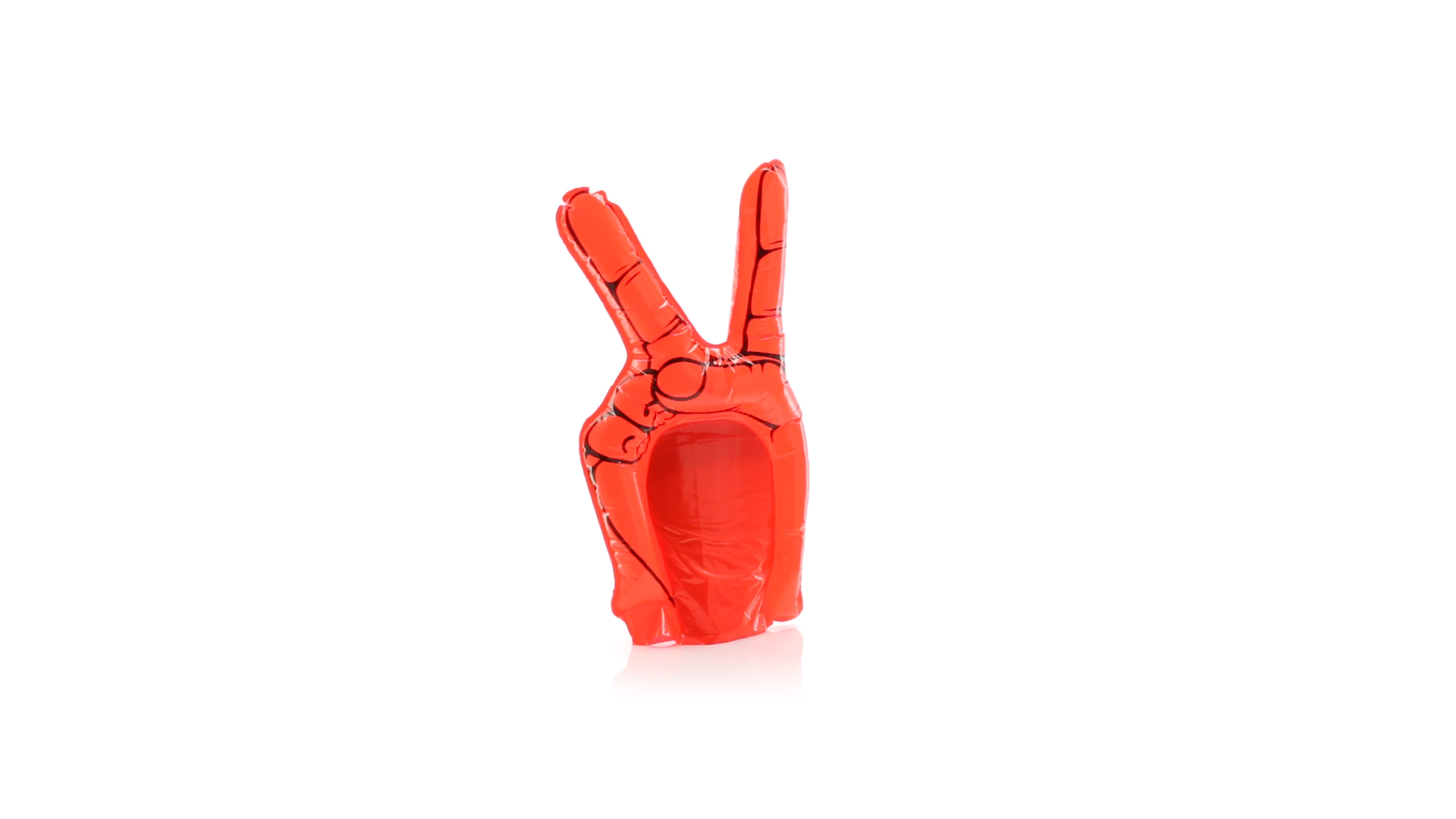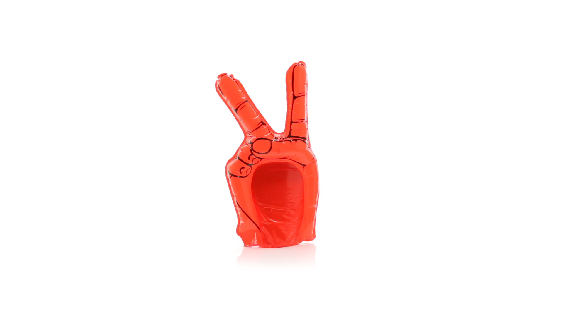 Tolle Hand mit Victory-Zeichen aus robustem LDPE-Material in leuchtenden Farben. Wiederverwendbar und mit Ventil.