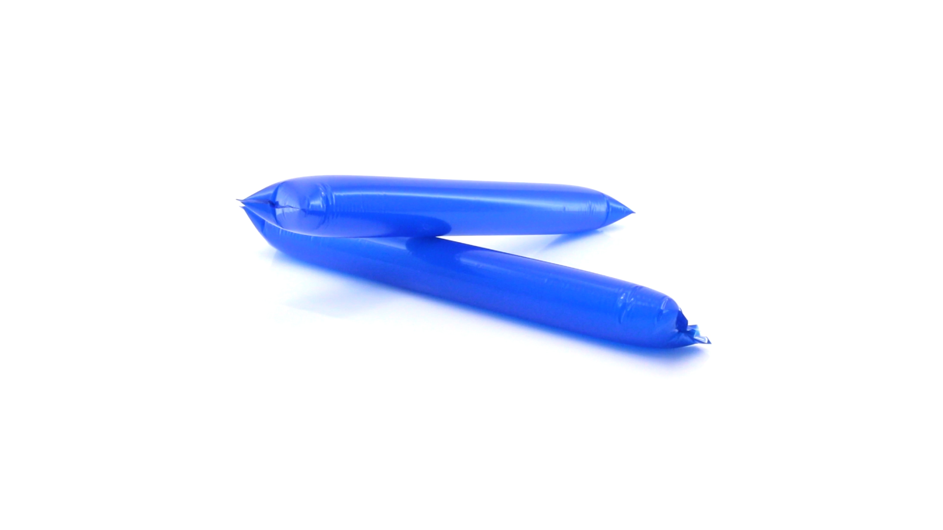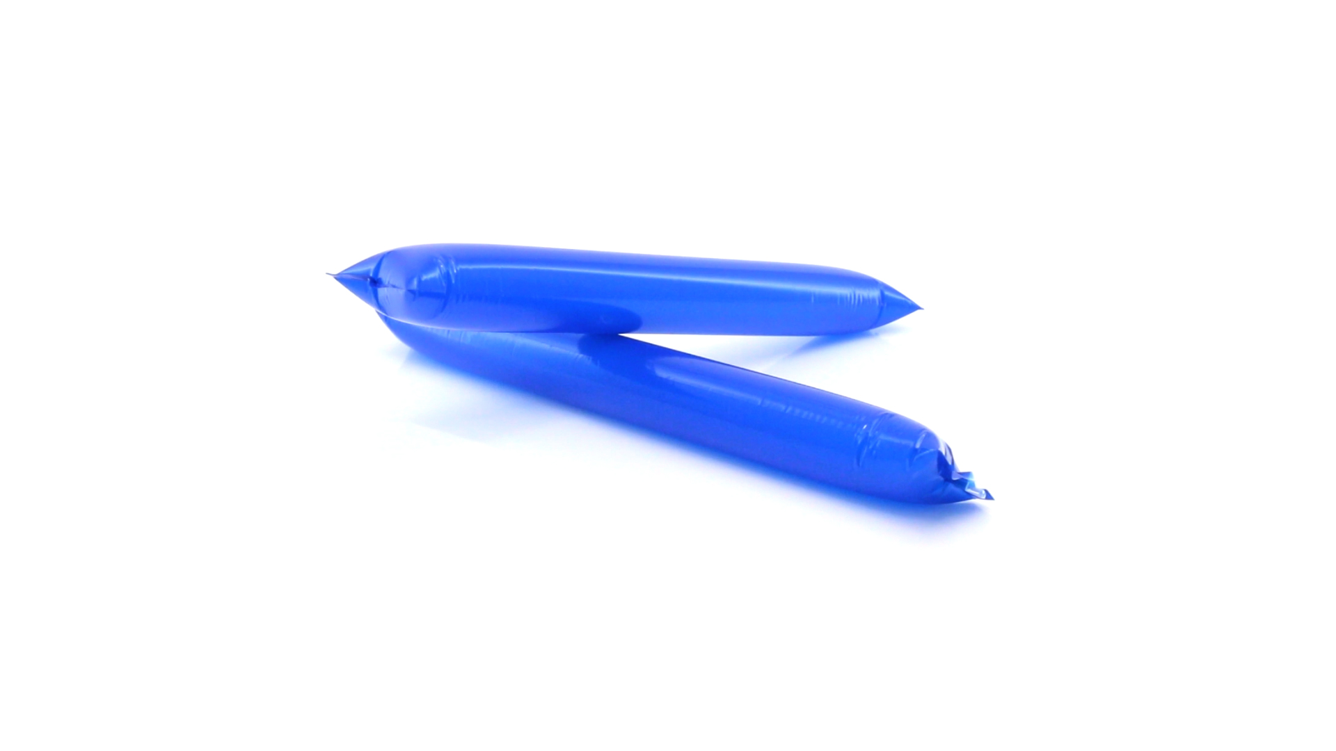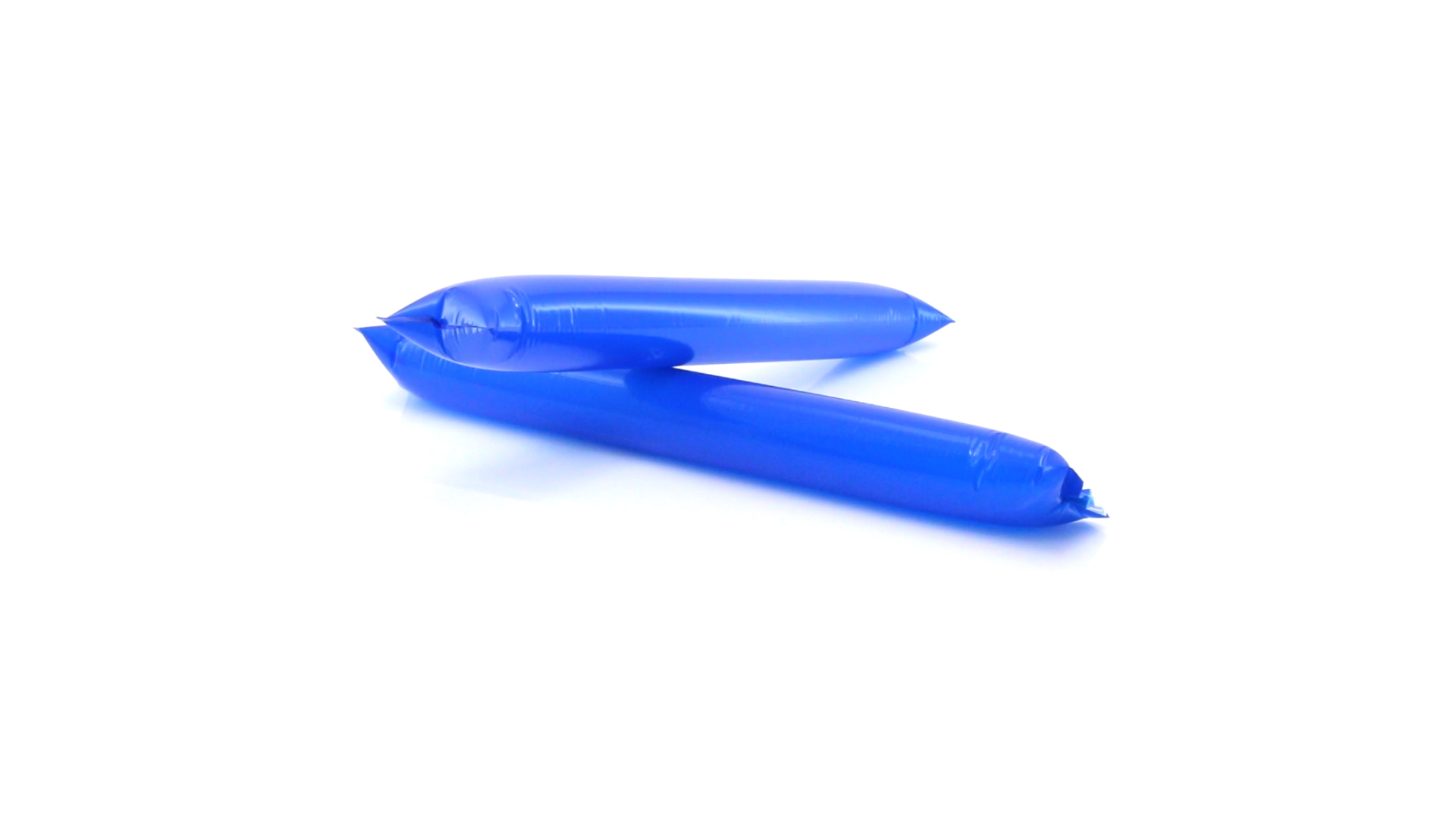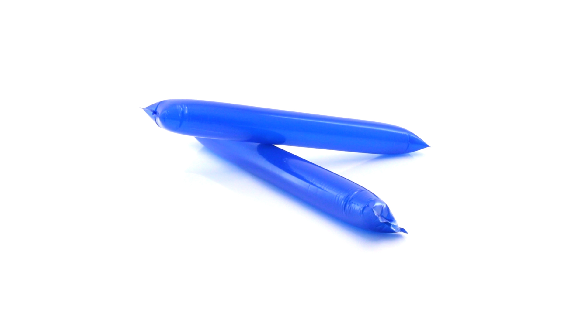 Zwei Krachmacher aus widerstandsfähigem, lautem LDPE-Kunststoff in lebendigen Farben. Wiederverwendbar und mit Ventil.