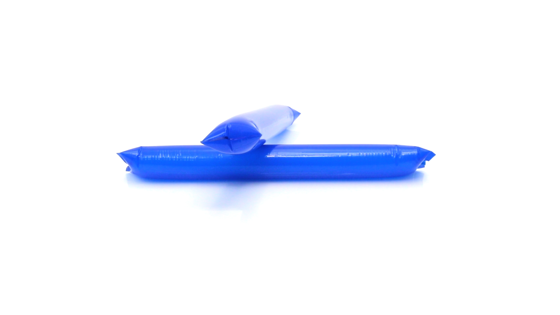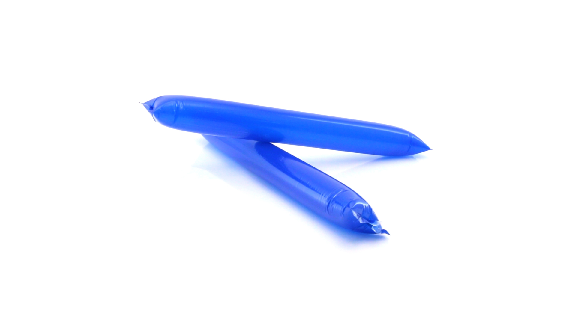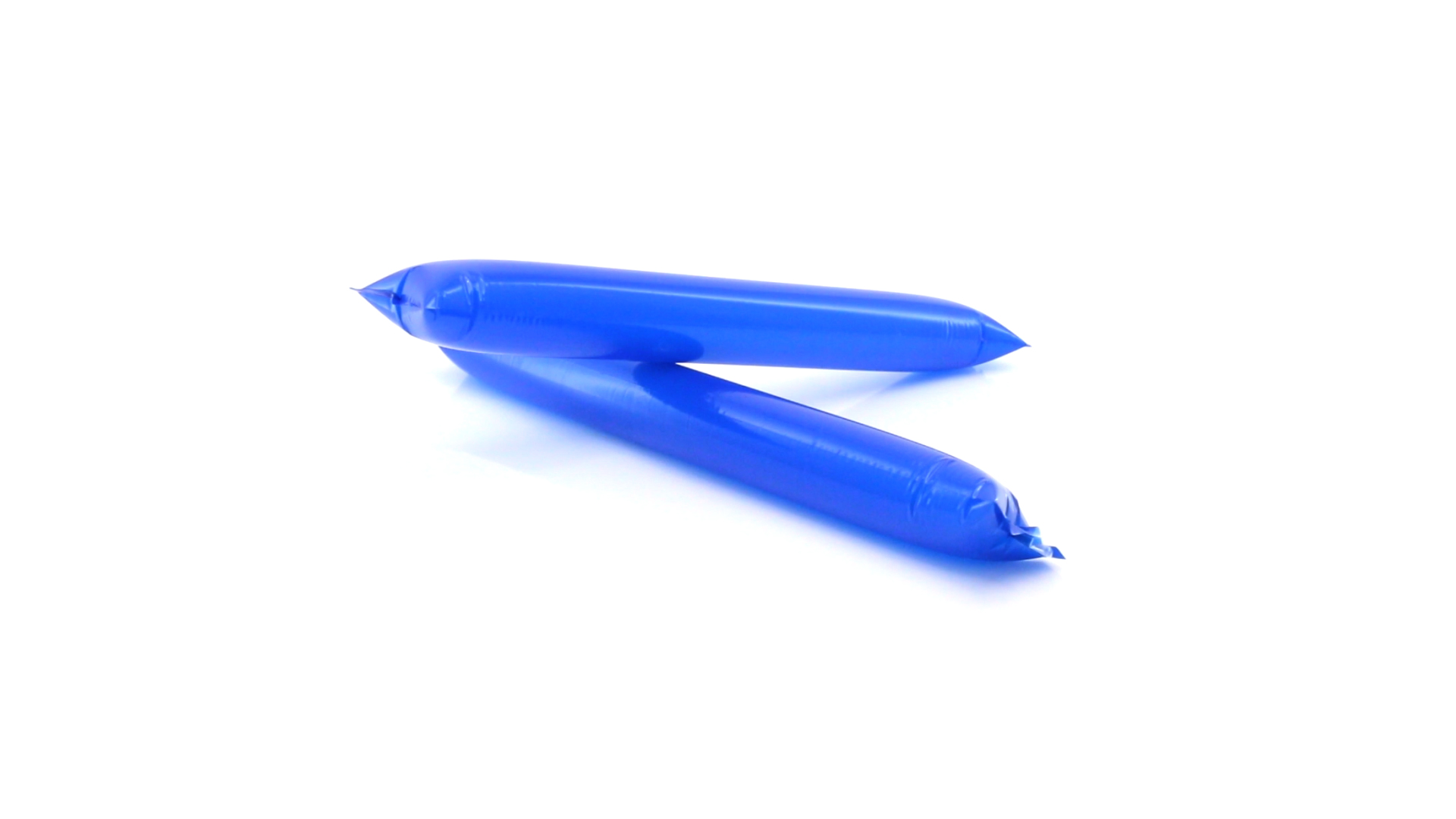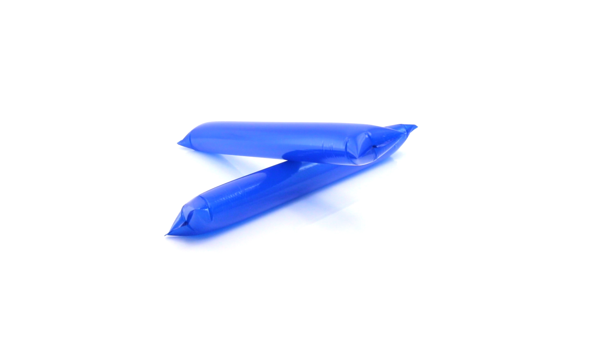 Zwei Krachmacher aus widerstandsfähigem, lautem LDPE-Kunststoff in lebendigen Farben. Wiederverwendbar und mit Ventil.