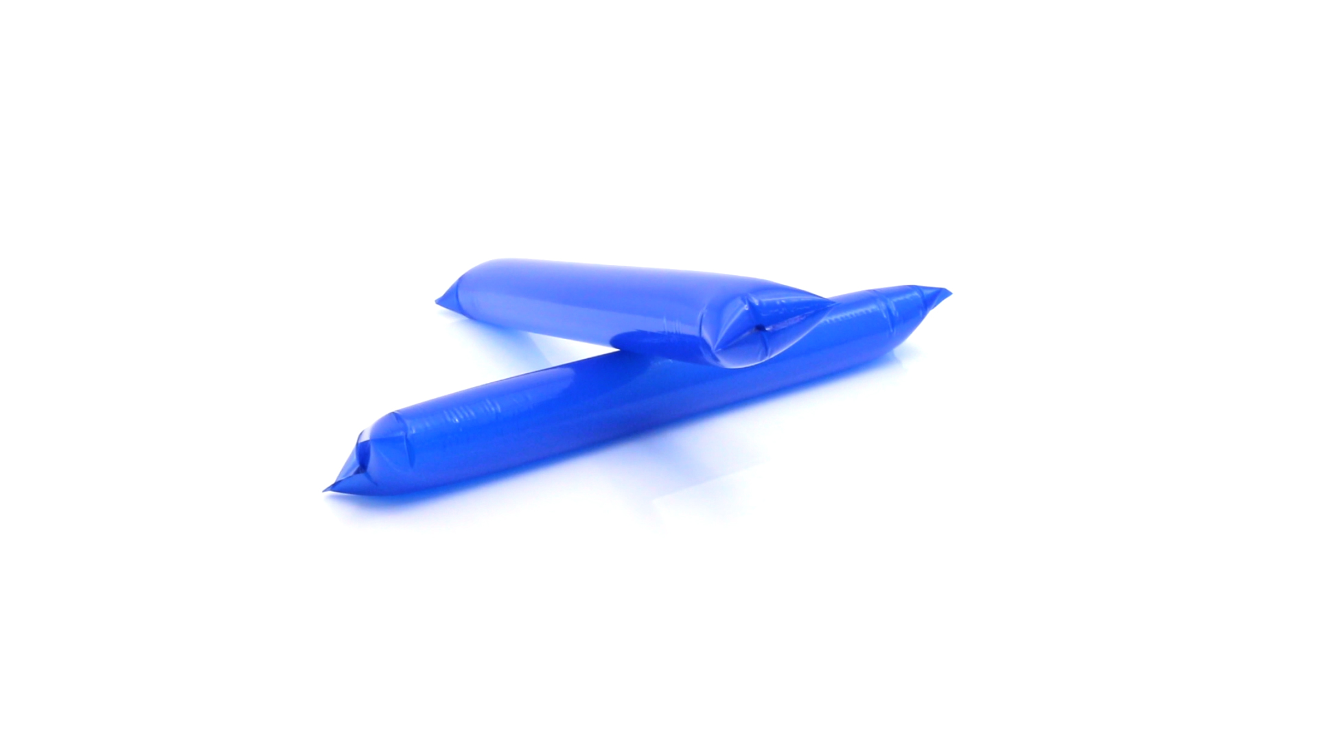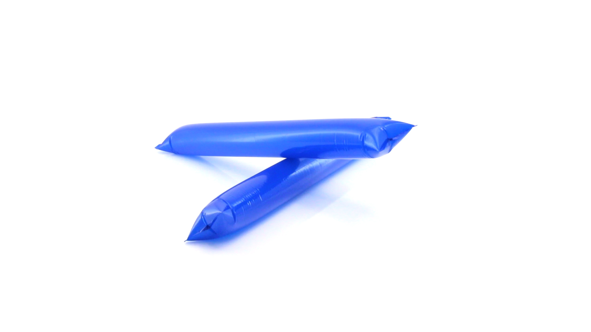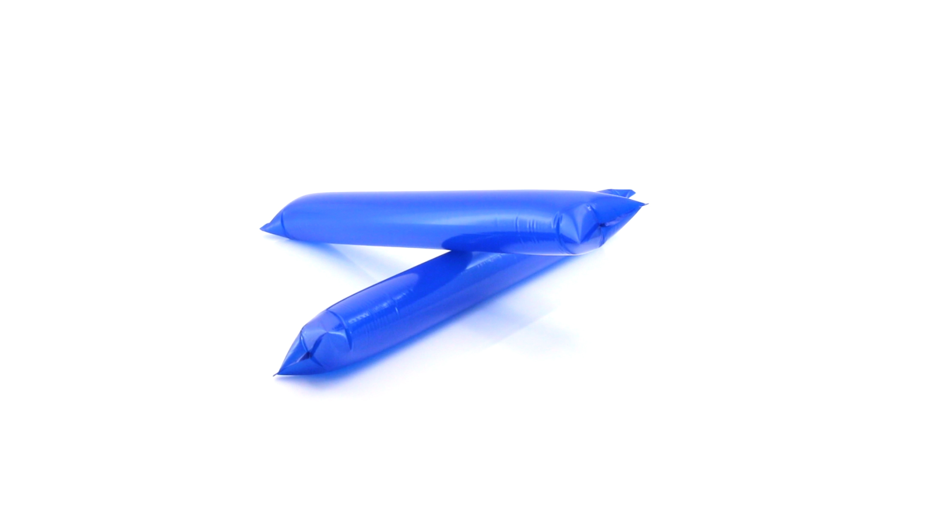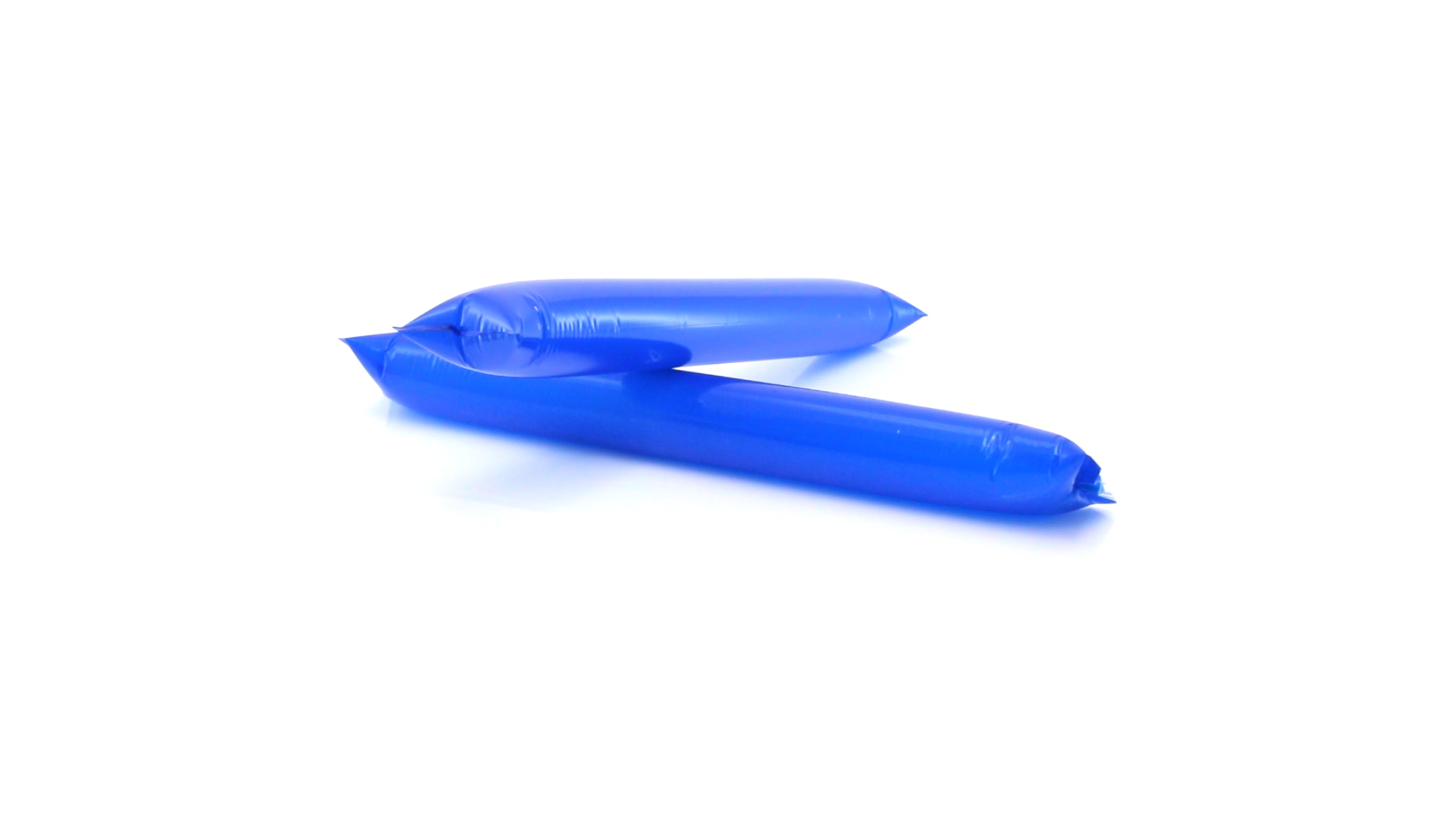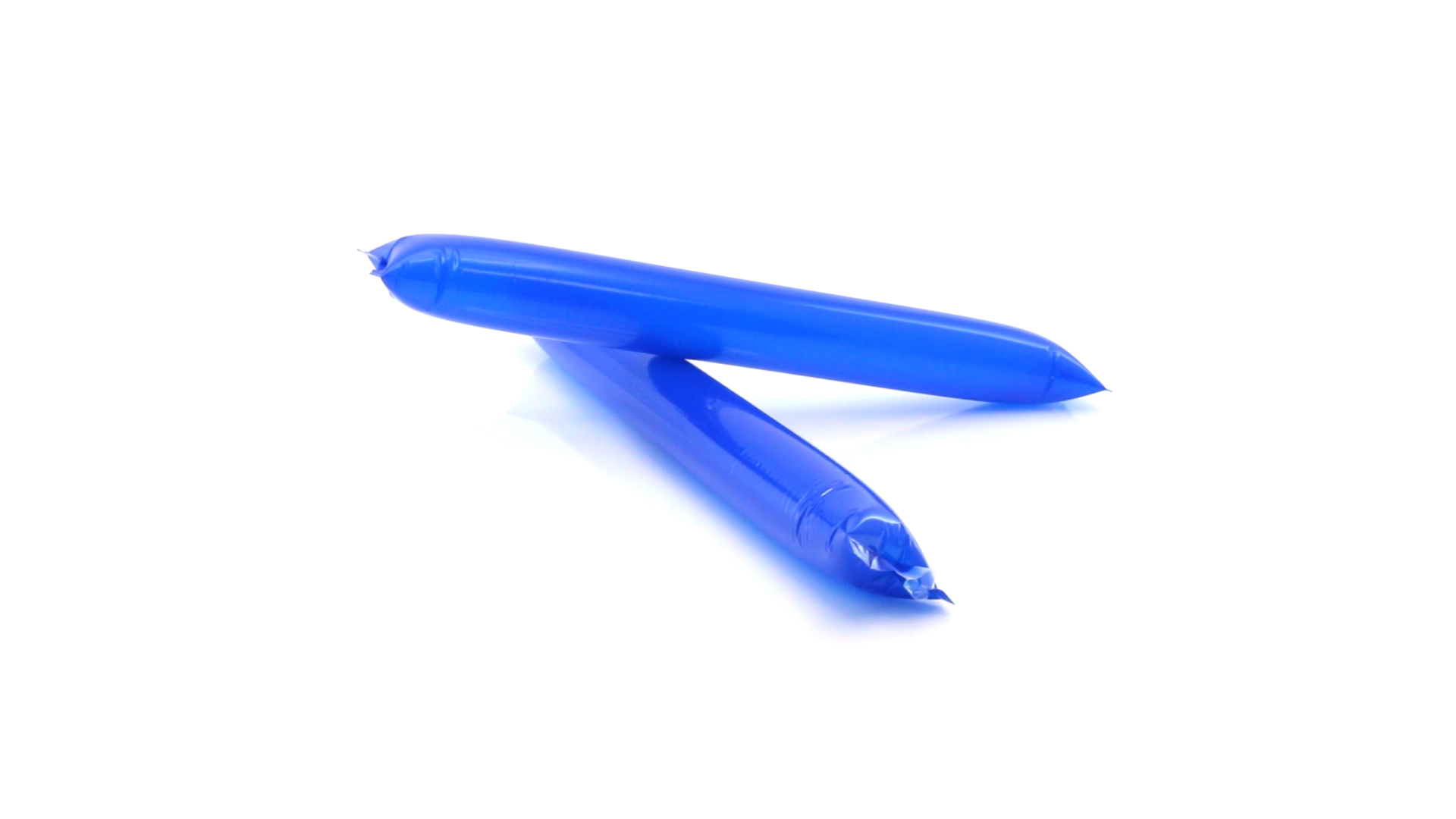 Zwei Krachmacher aus widerstandsfähigem, lautem LDPE-Kunststoff in lebendigen Farben. Wiederverwendbar und mit Ventil.