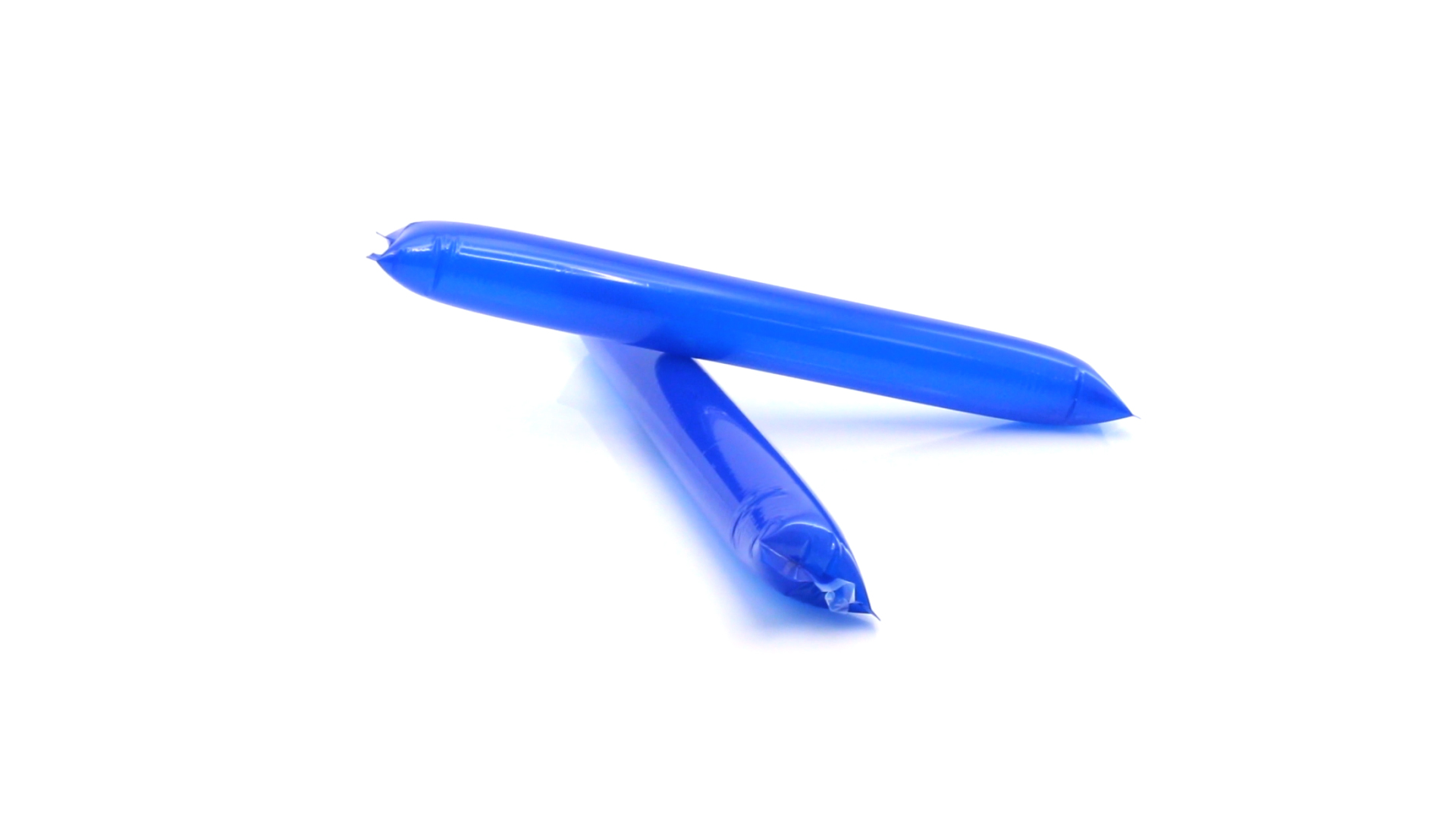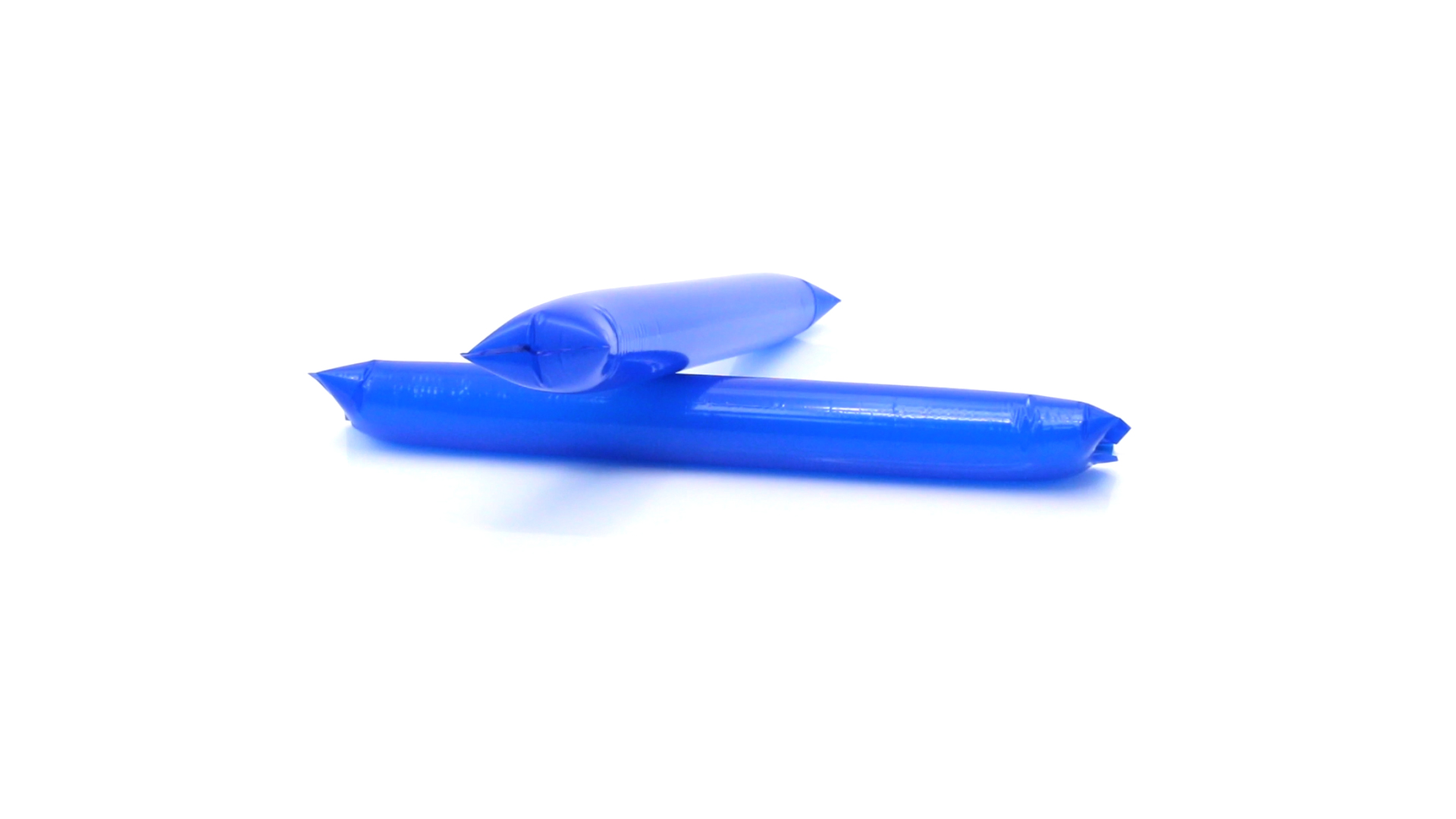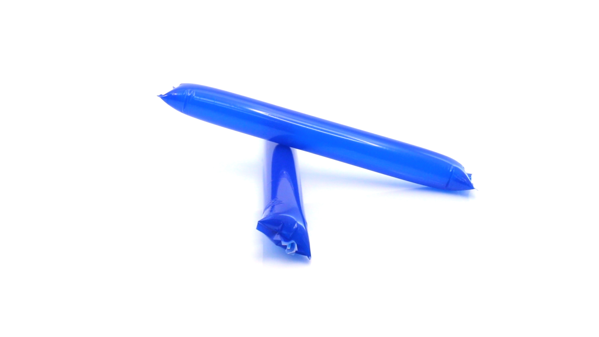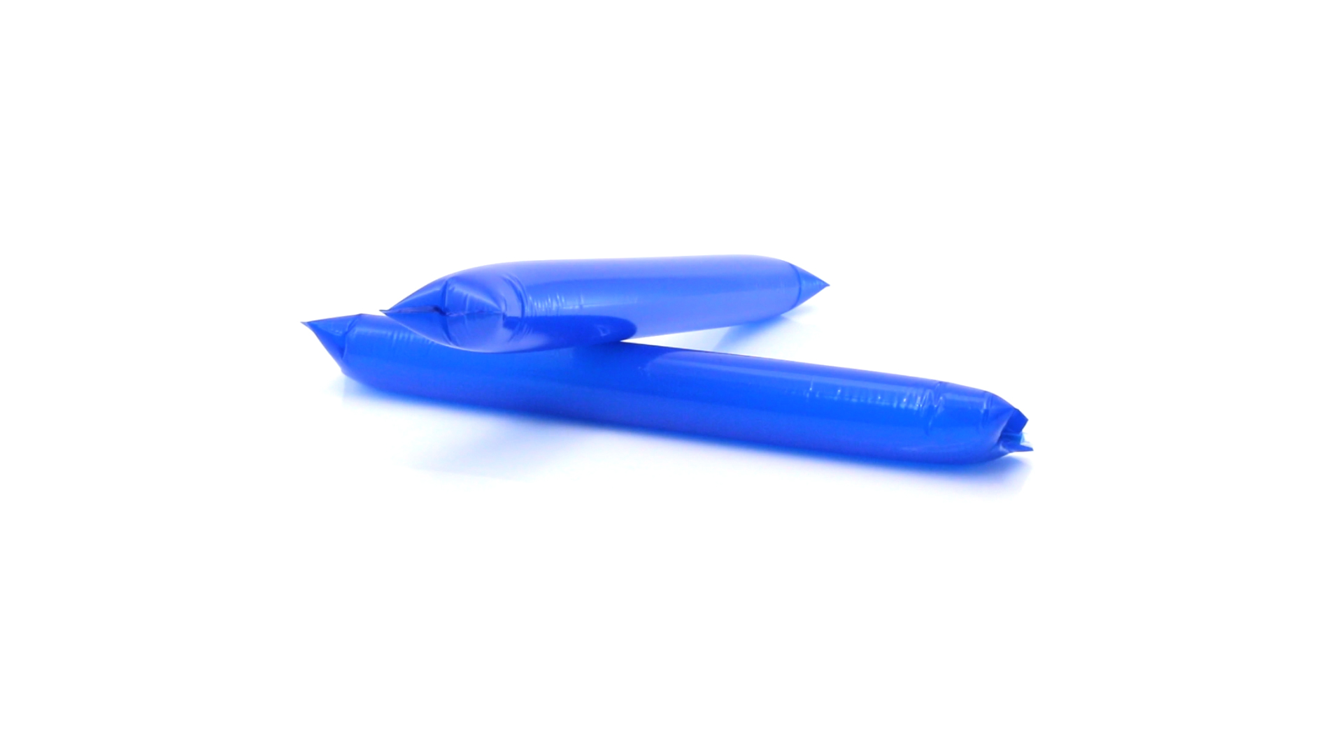 Zwei Krachmacher aus widerstandsfähigem, lautem LDPE-Kunststoff in lebendigen Farben. Wiederverwendbar und mit Ventil.