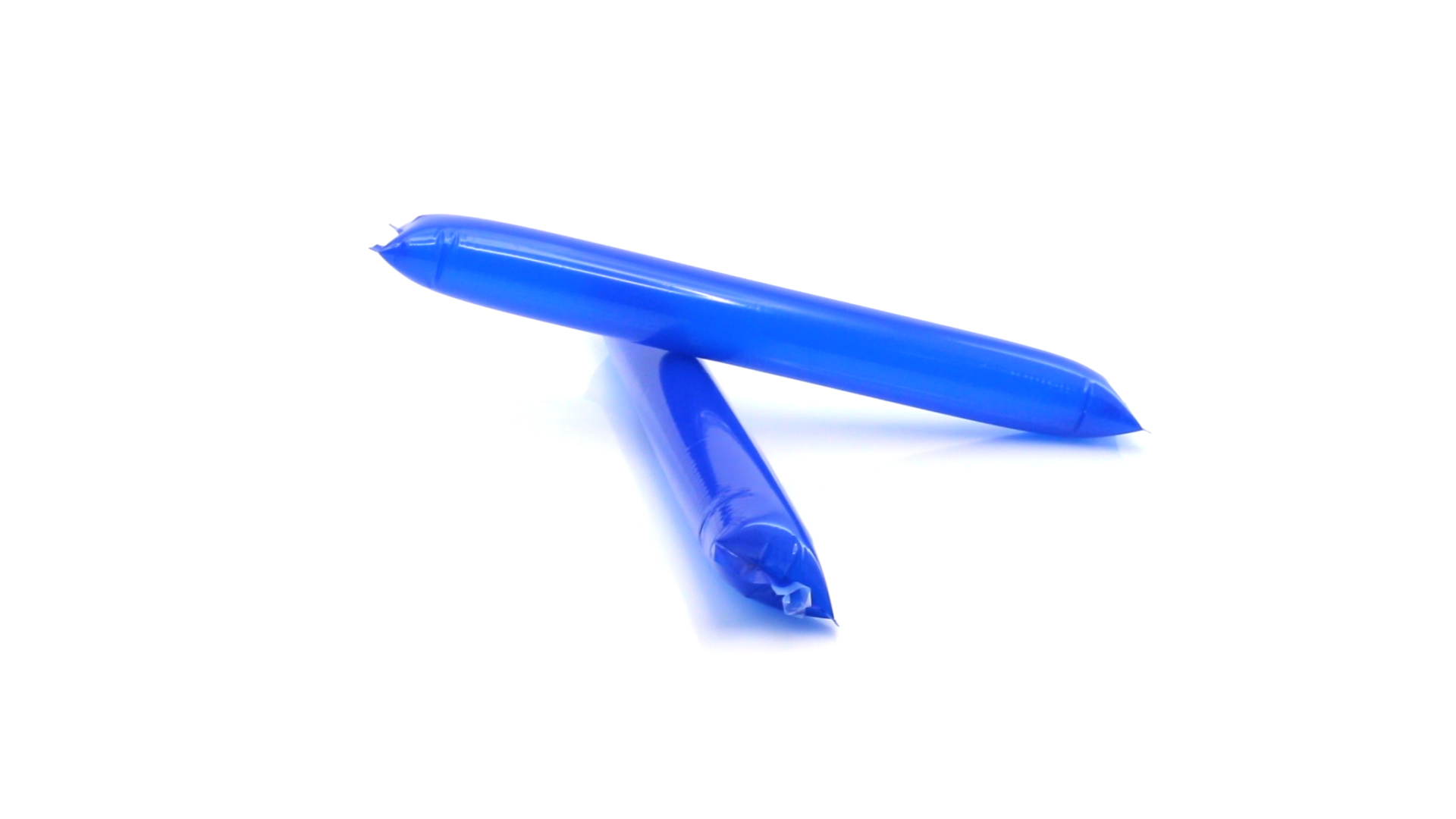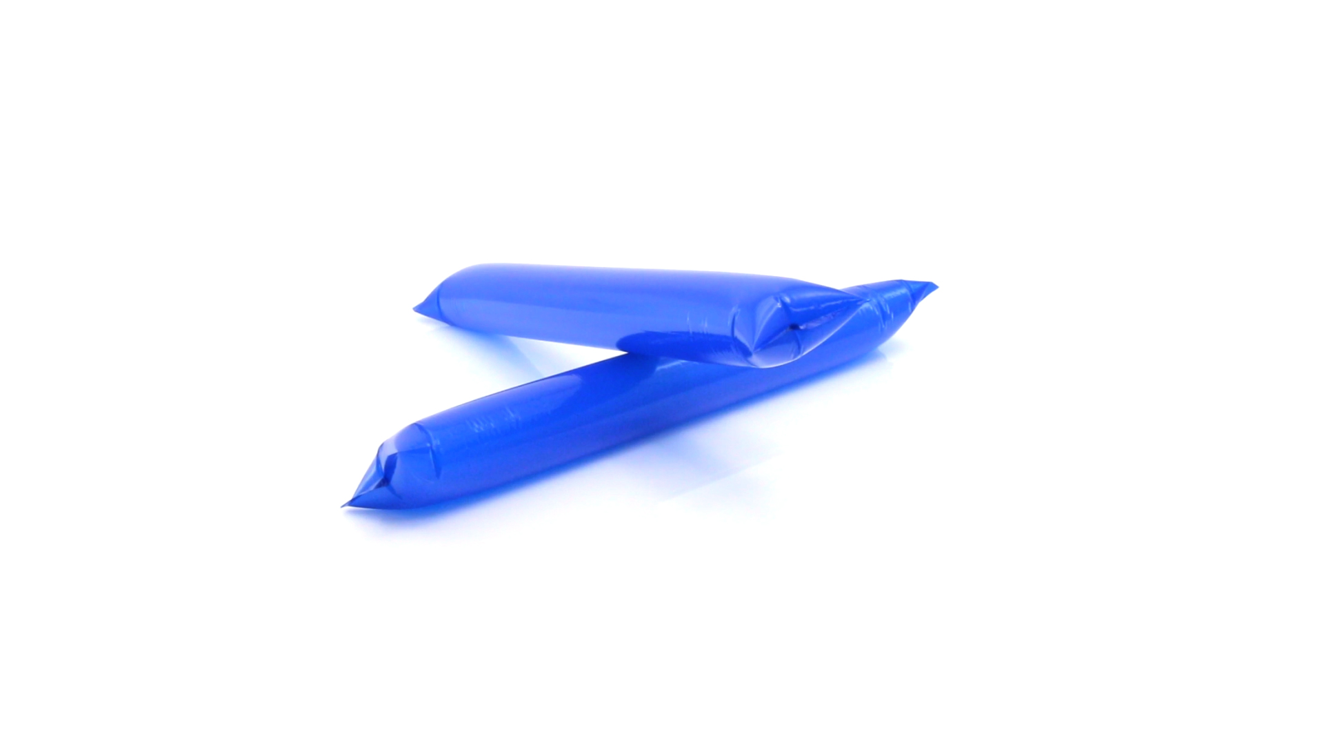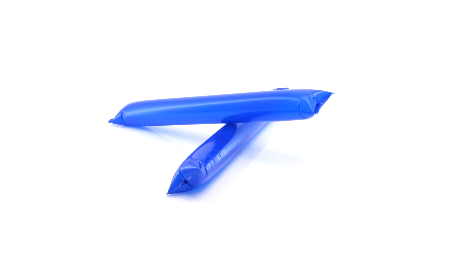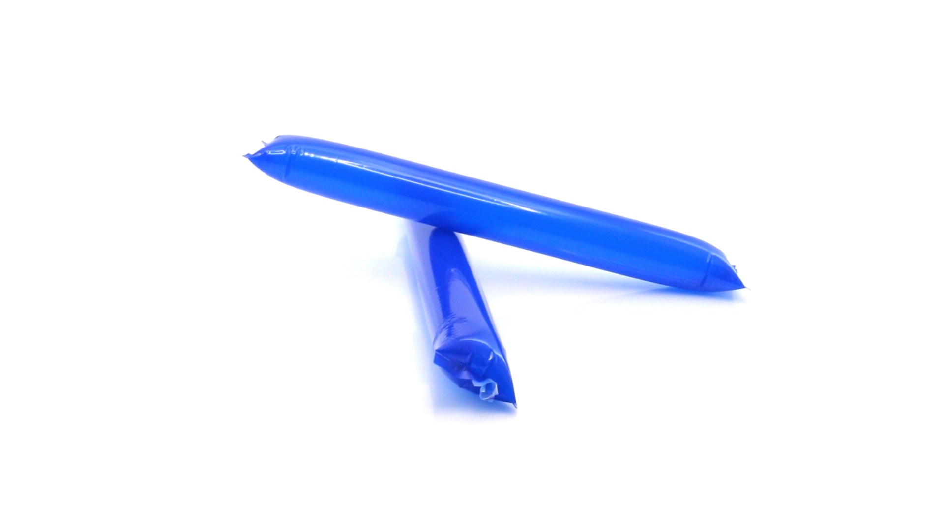 Zwei Krachmacher aus widerstandsfähigem, lautem LDPE-Kunststoff in lebendigen Farben. Wiederverwendbar und mit Ventil.
