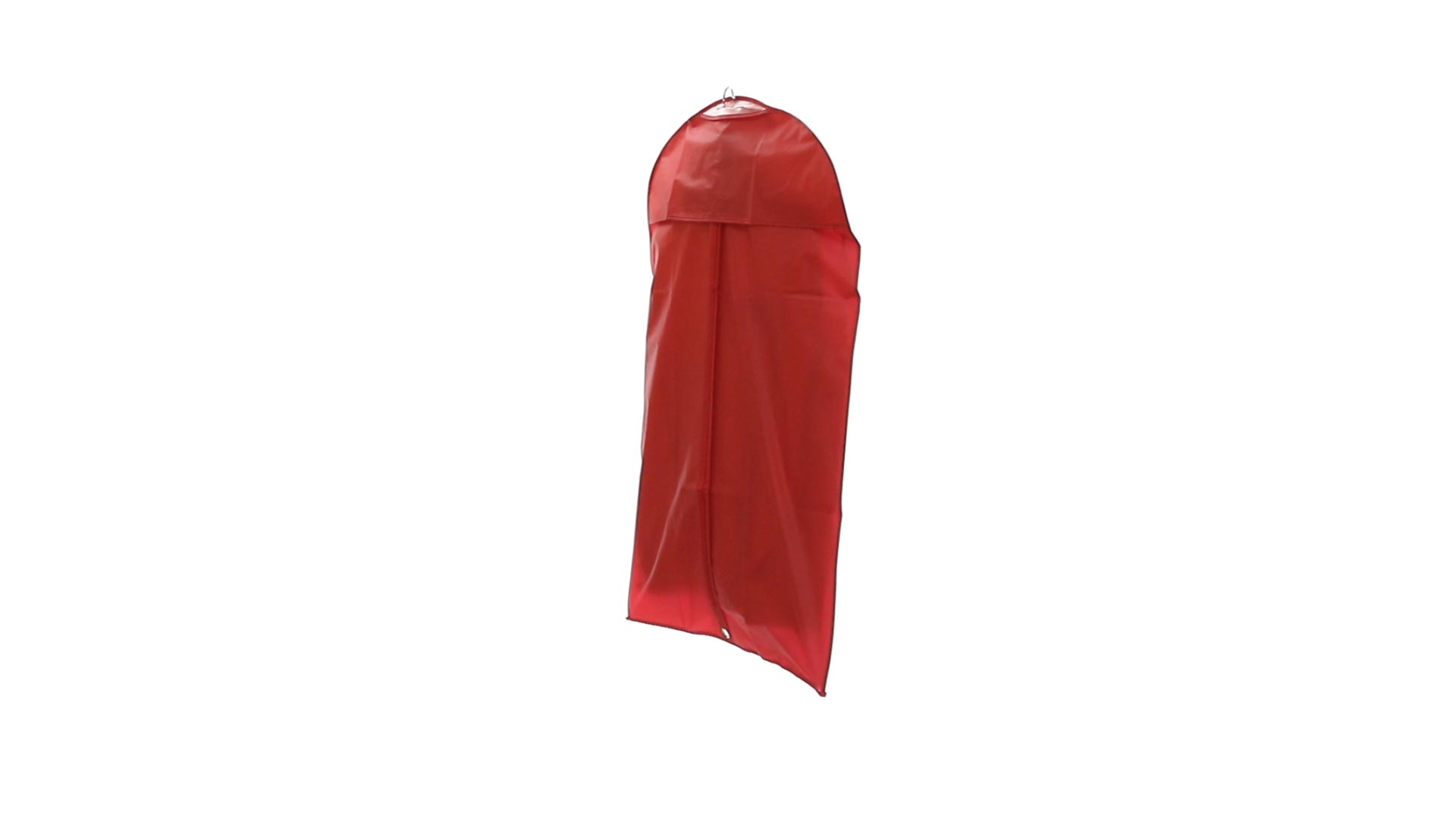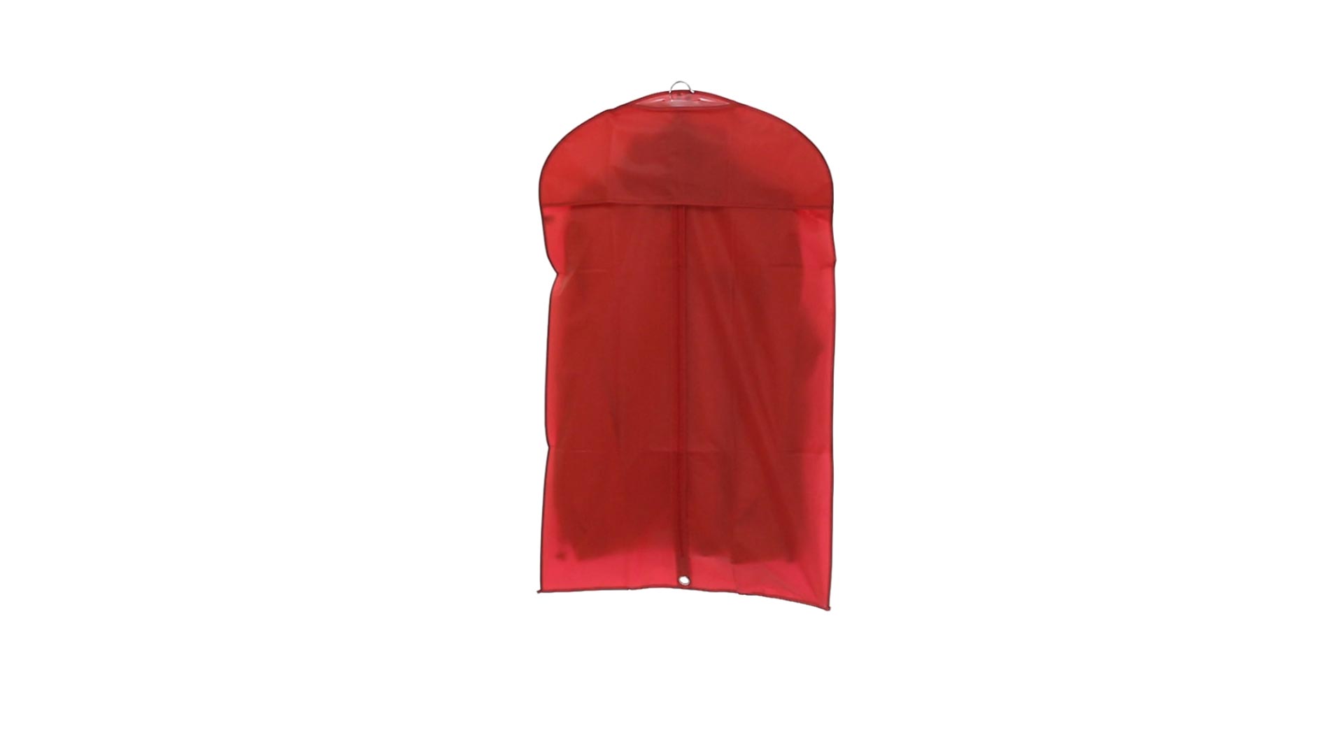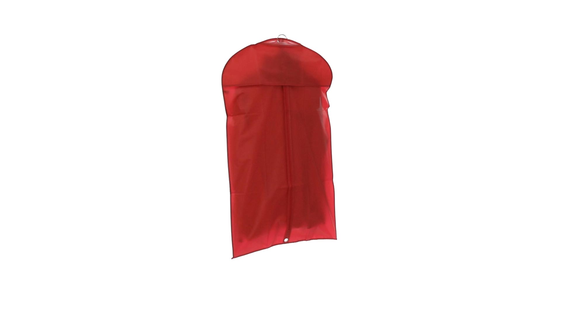 Anzugtasche aus weichem PEVA-Kunststoff in einer Vielzahl von Farben. Mit farblich passendem Reissverschluss und verstärktem Metallring für den Kleiderbügel.