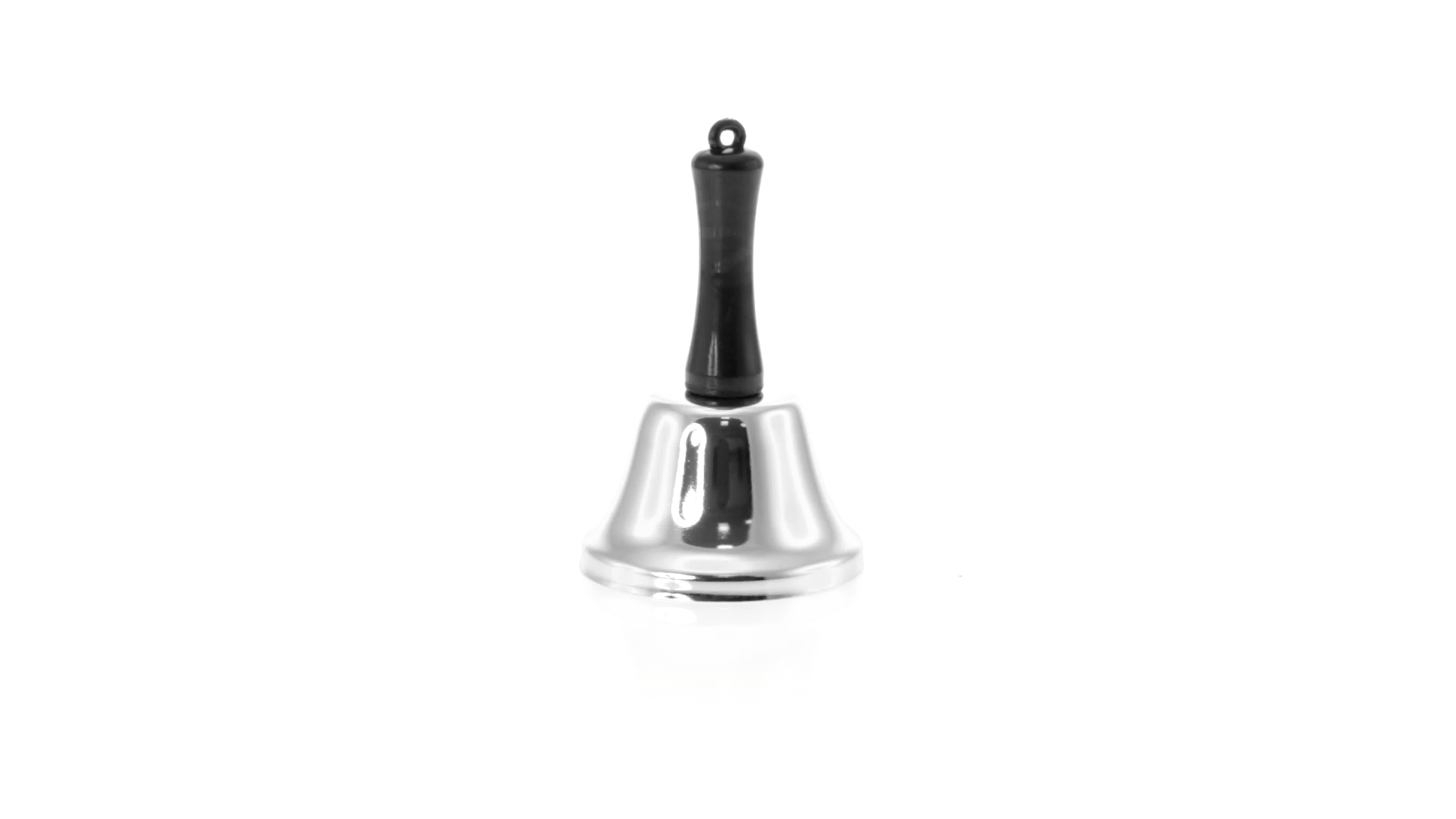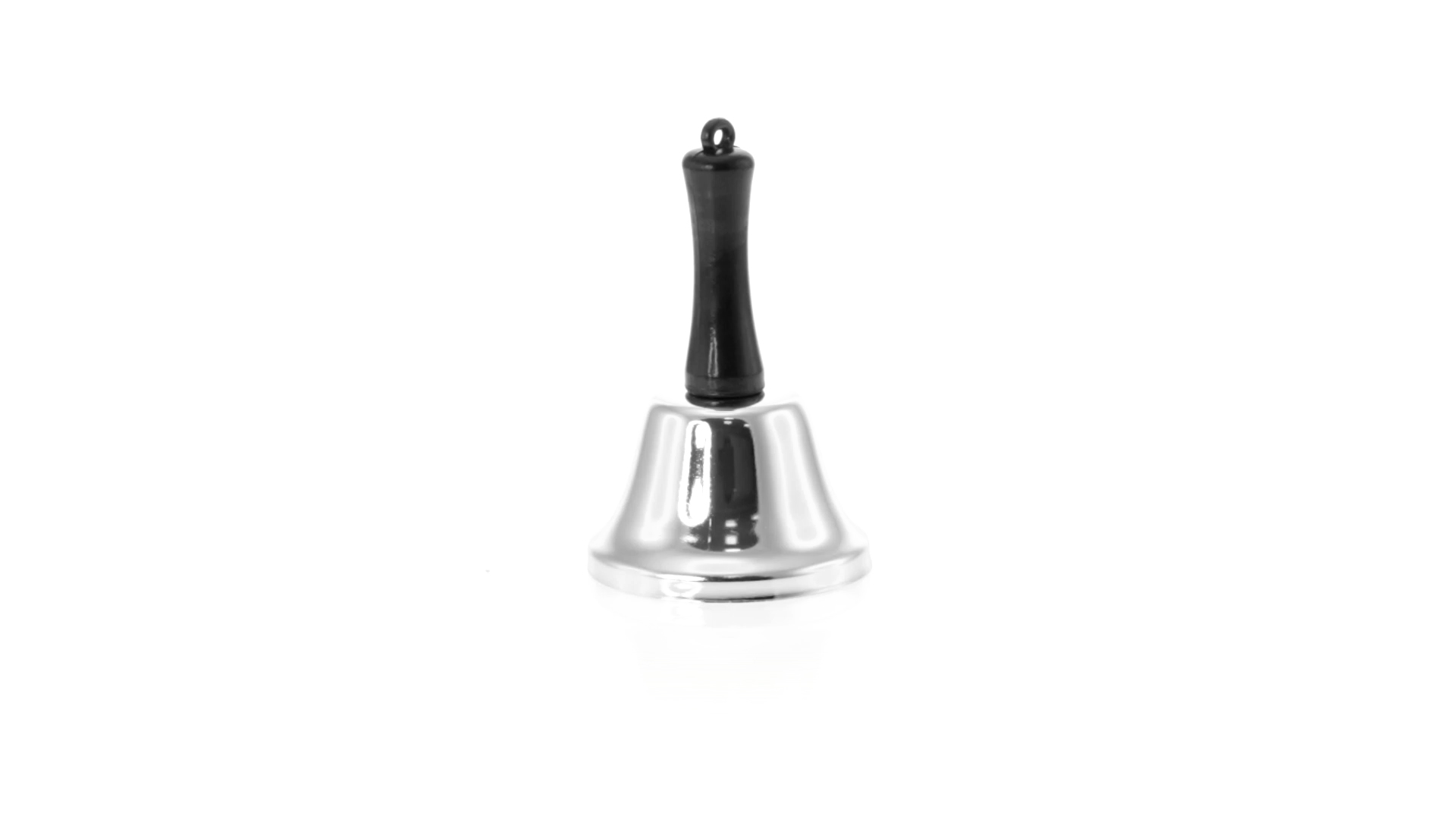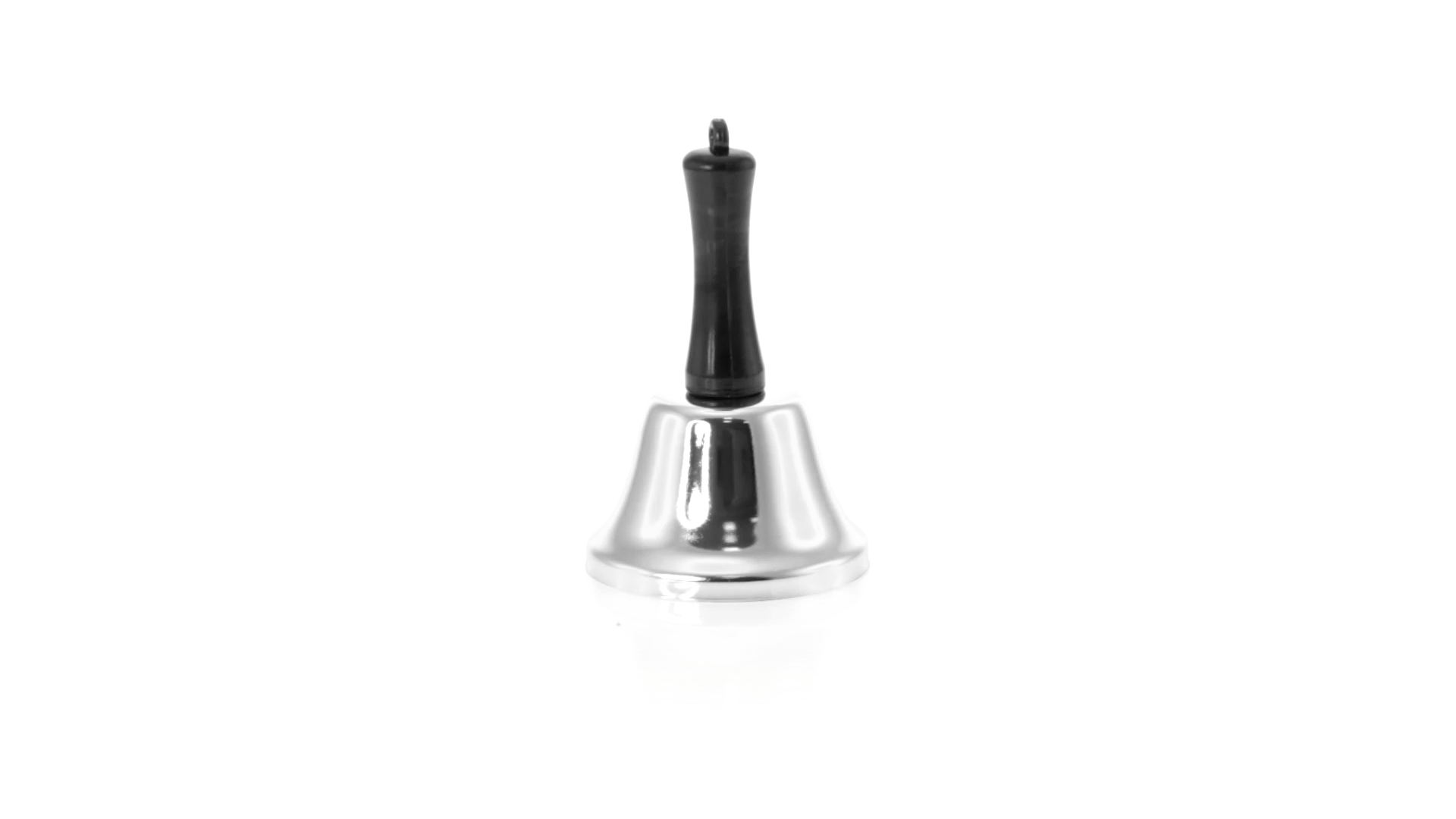 Metall-Glocke für eine Vielzahl von Verwendungszwecken. Mit angenehm geschmeidigem Griff. Erhältlich in den Farben Chrom und Gold - jeweils in glänzender Ausführung.