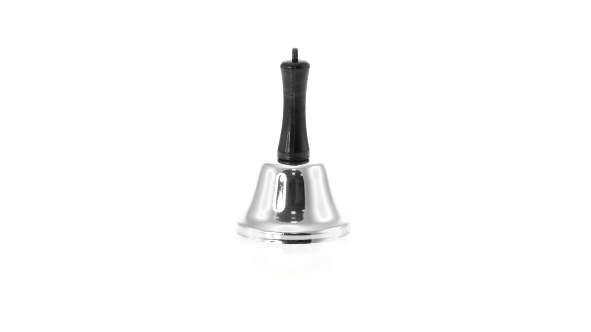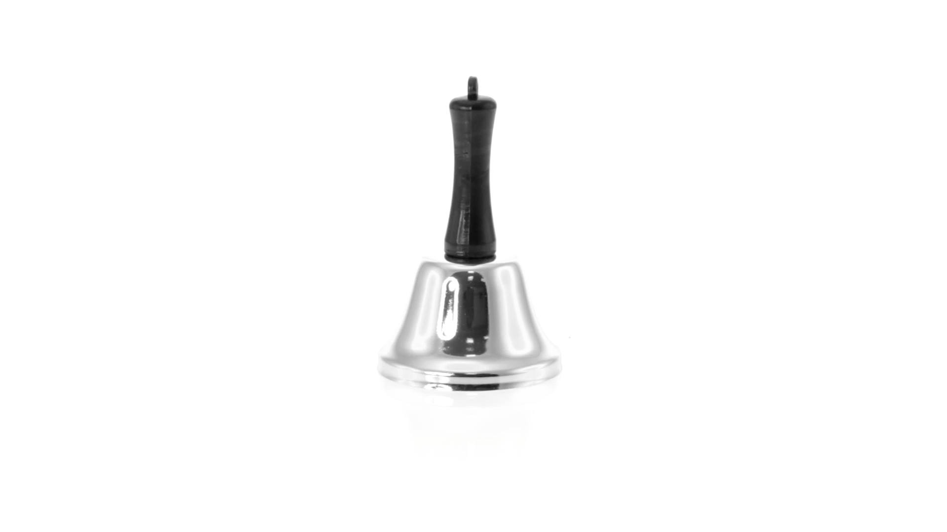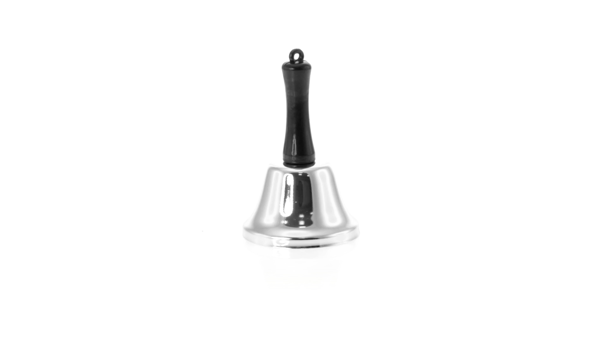 Metall-Glocke für eine Vielzahl von Verwendungszwecken. Mit angenehm geschmeidigem Griff. Erhältlich in den Farben Chrom und Gold - jeweils in glänzender Ausführung.