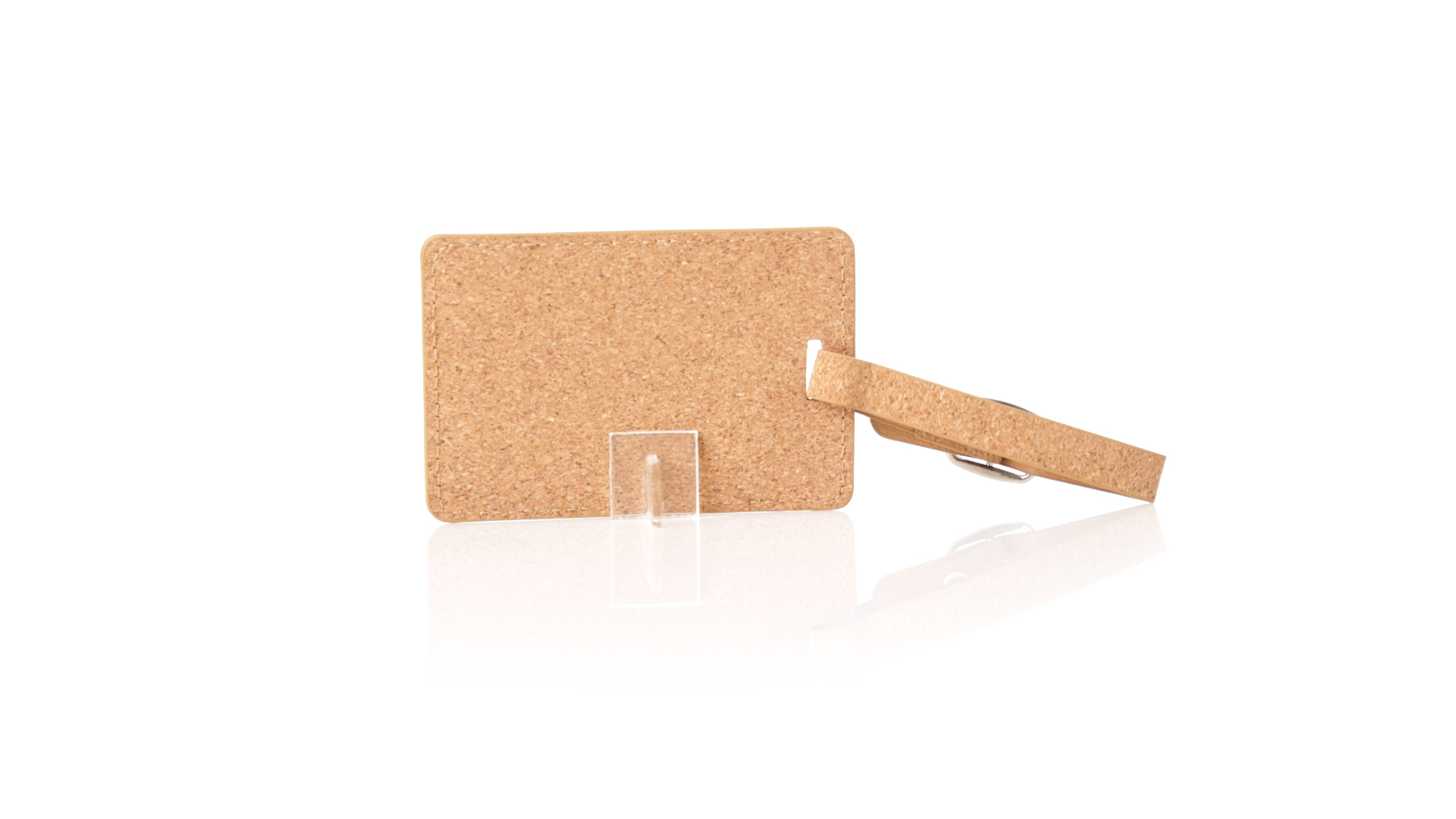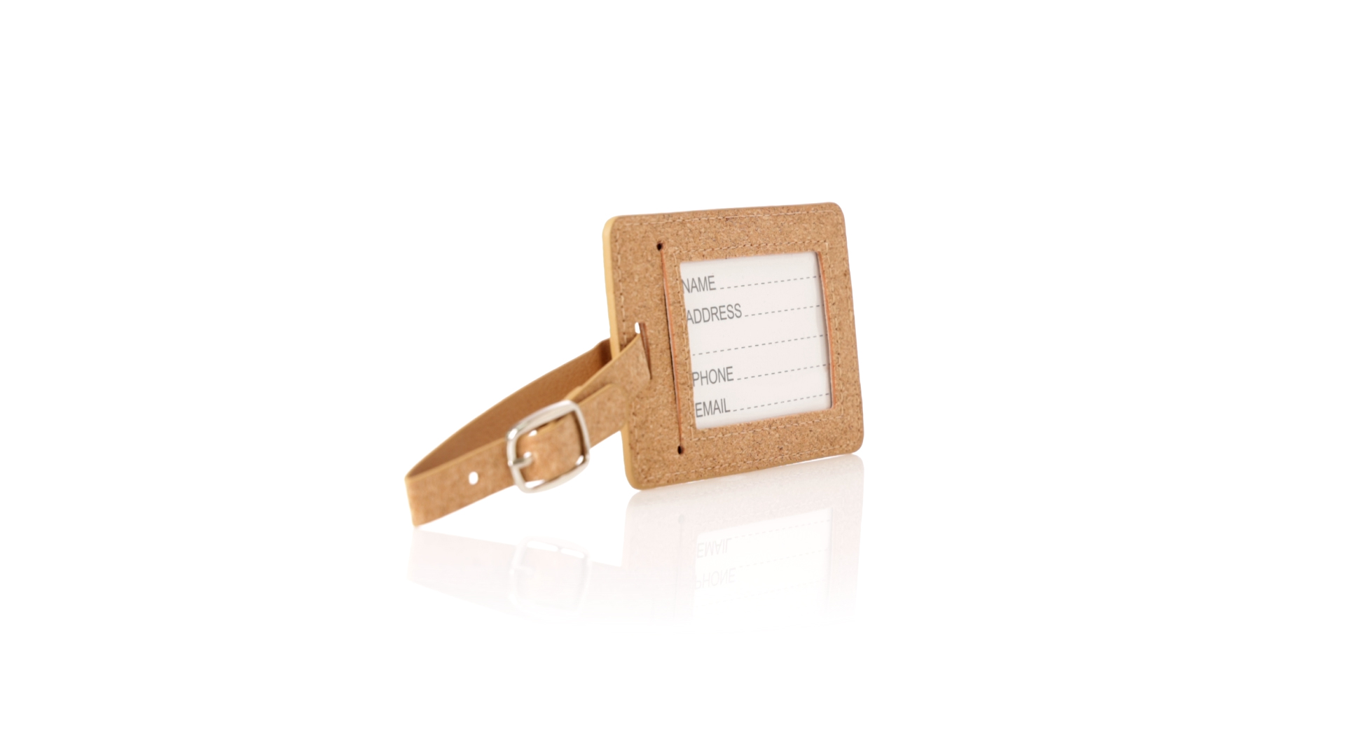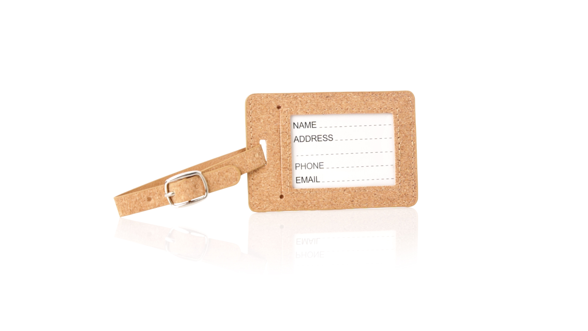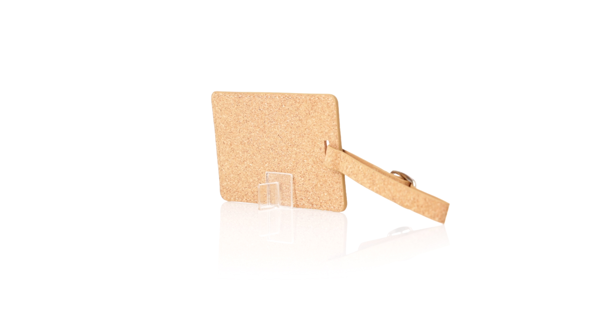 Linie Natur Kofferanhänger aus Naturkork. Band mit Metallschnallenverschluss und Identifikationskarte in englischer Sprache.