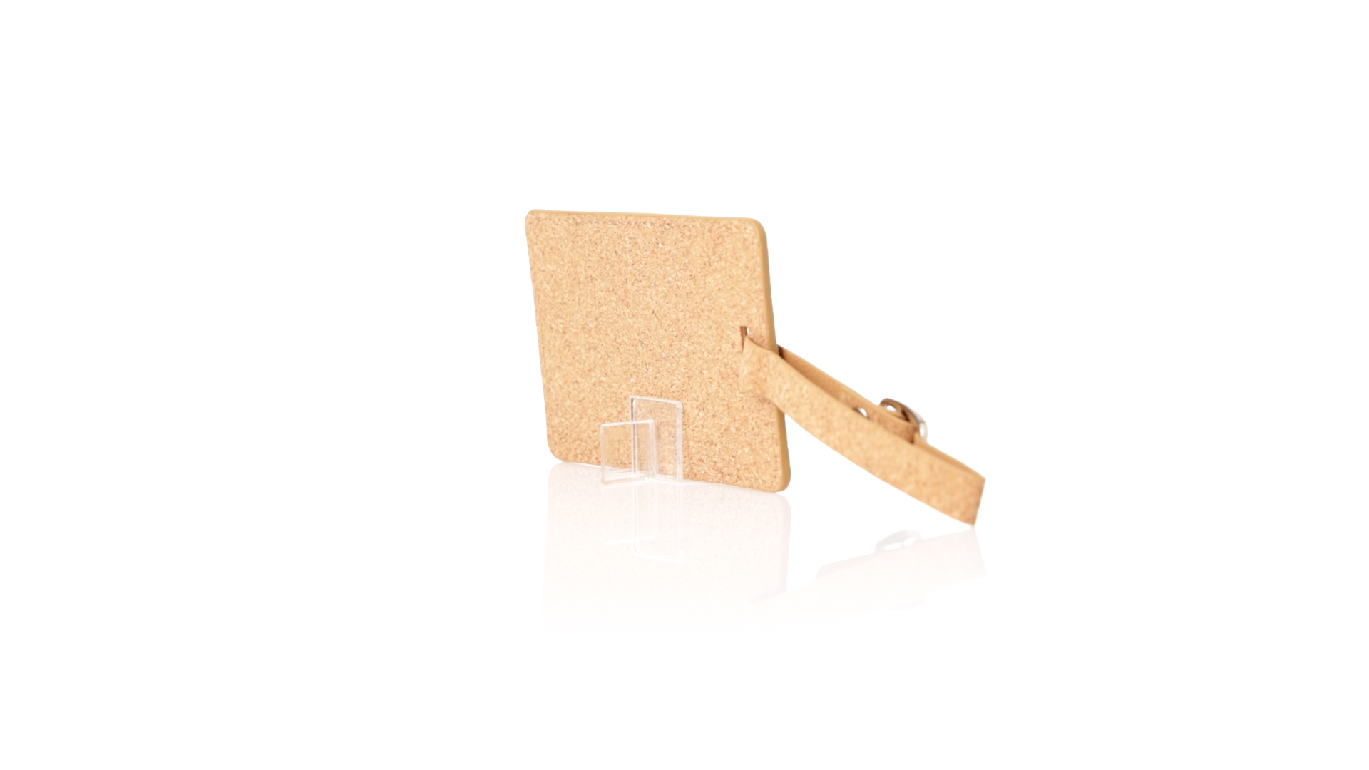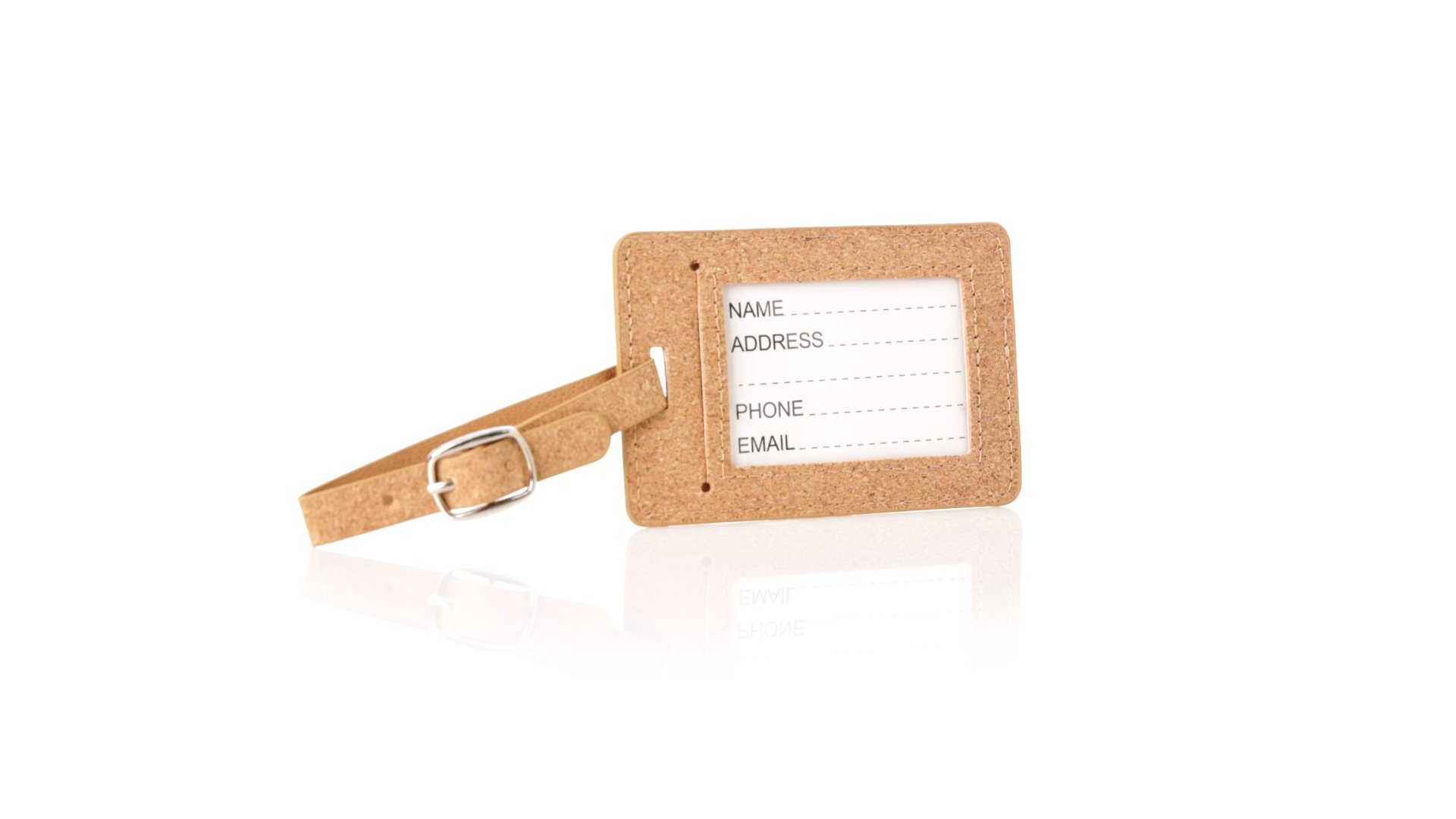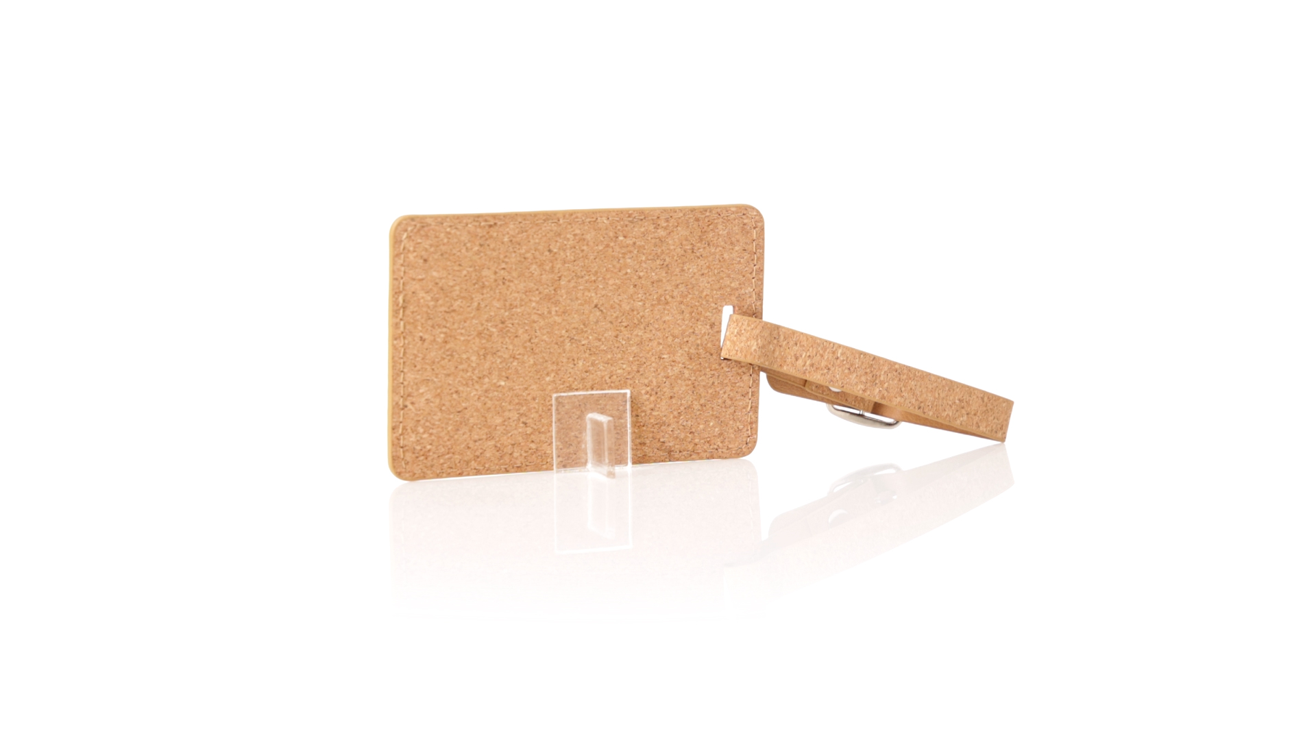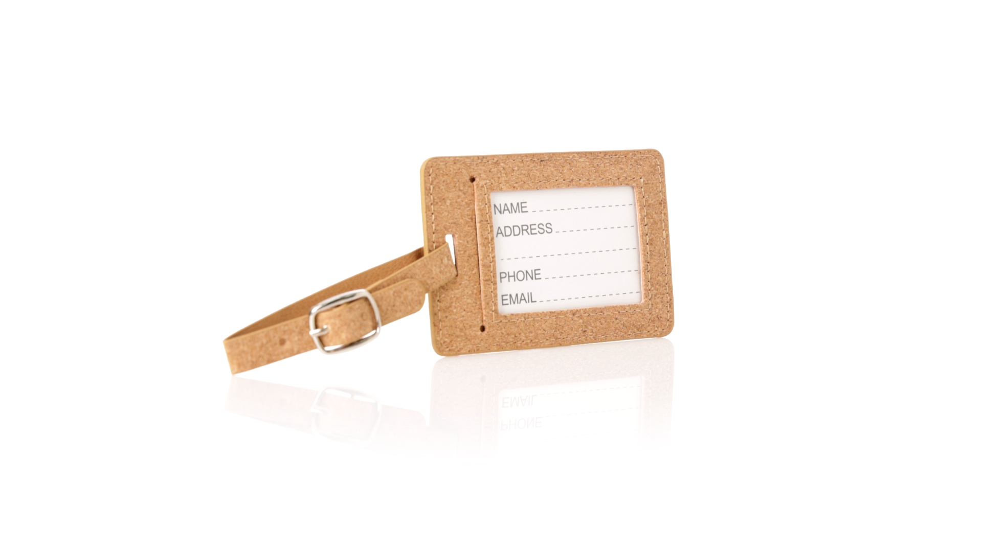 Linie Natur Kofferanhänger aus Naturkork. Band mit Metallschnallenverschluss und Identifikationskarte in englischer Sprache.