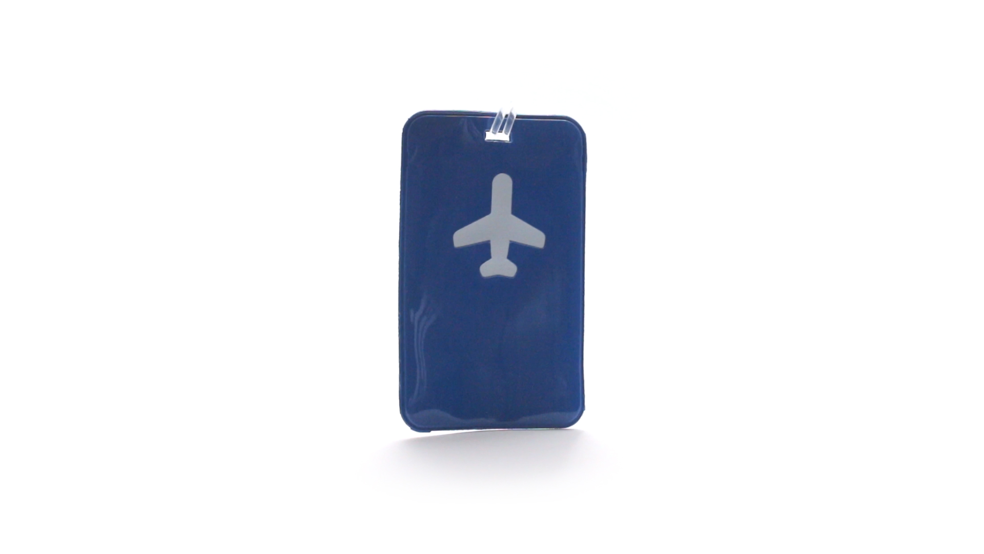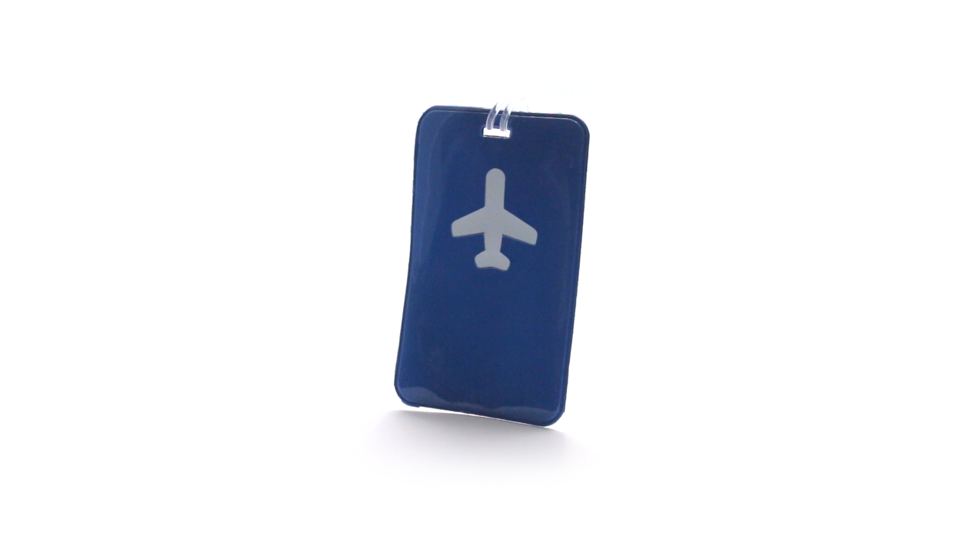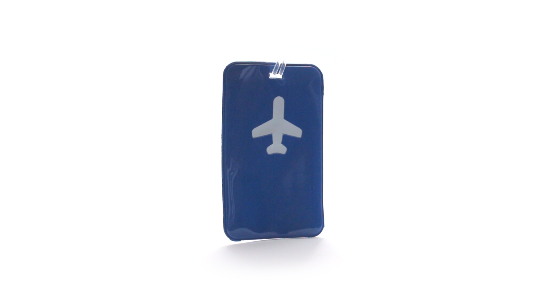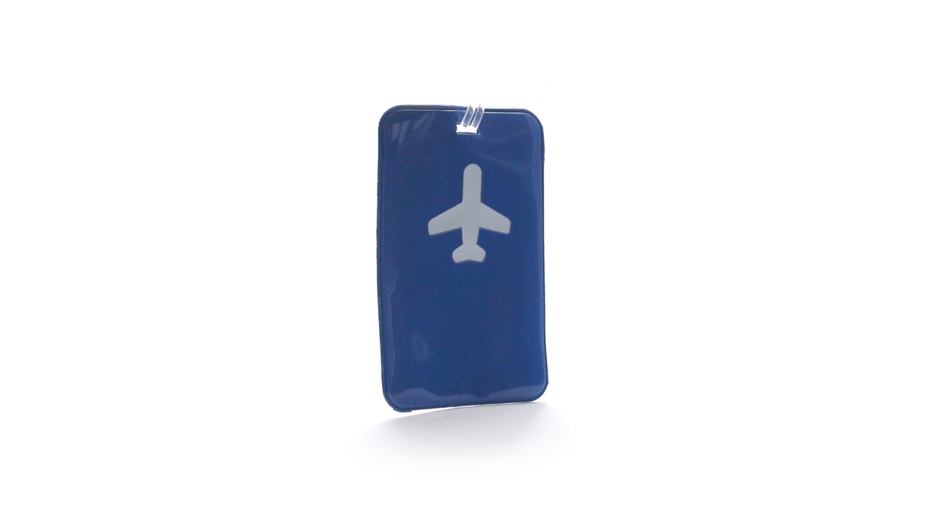 Origineller Kofferanhänger mit Flugzeug-Design aus robustem PVC in kräftigen Farben. Mit widerstandsfähigem Befestigungsband und ID-Karte in Spanisch und Englisch.