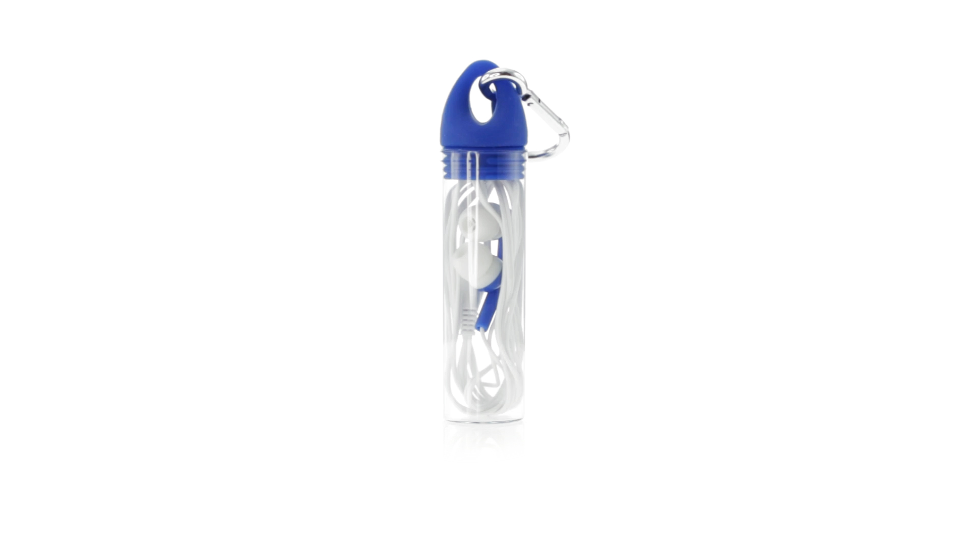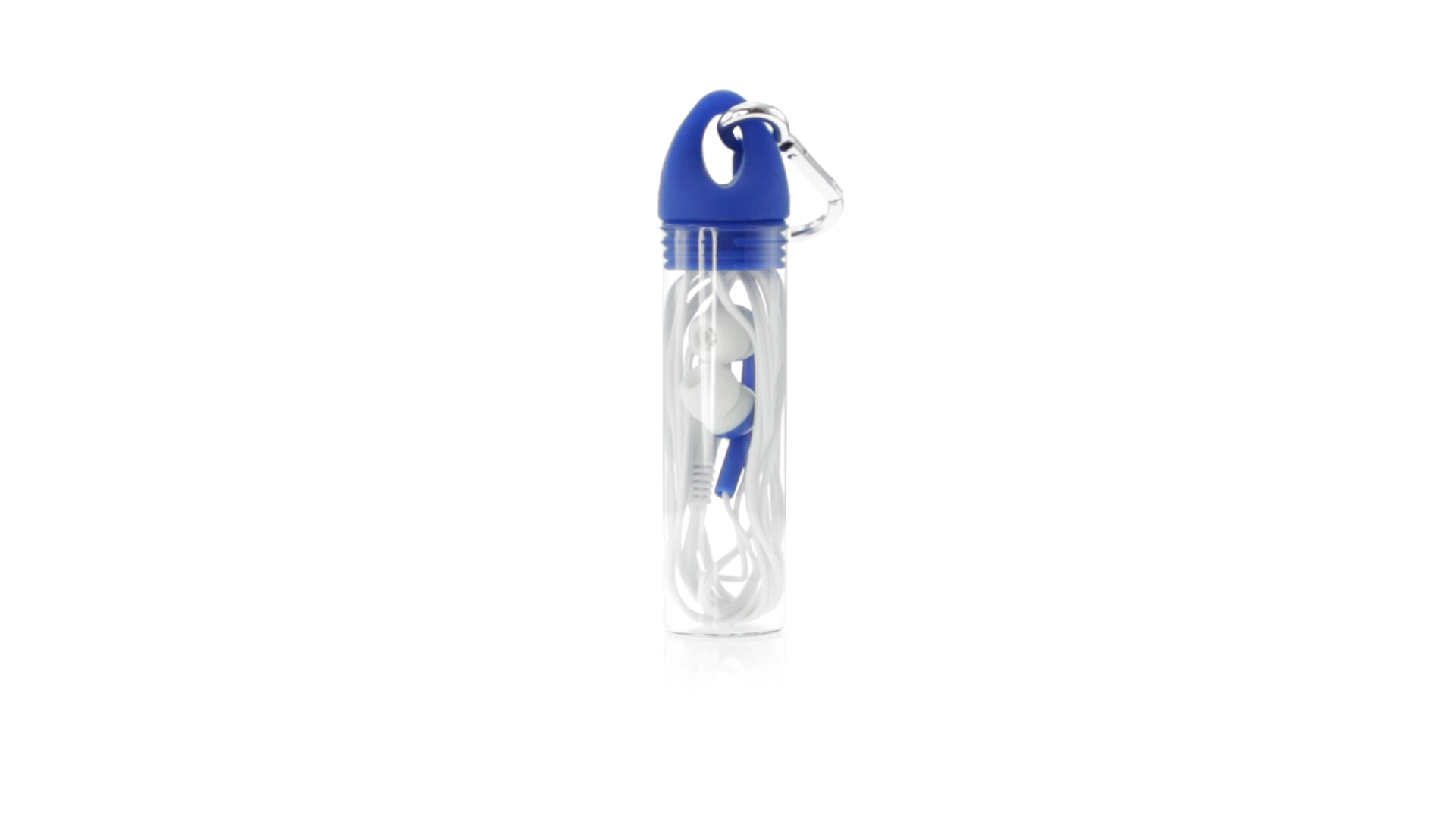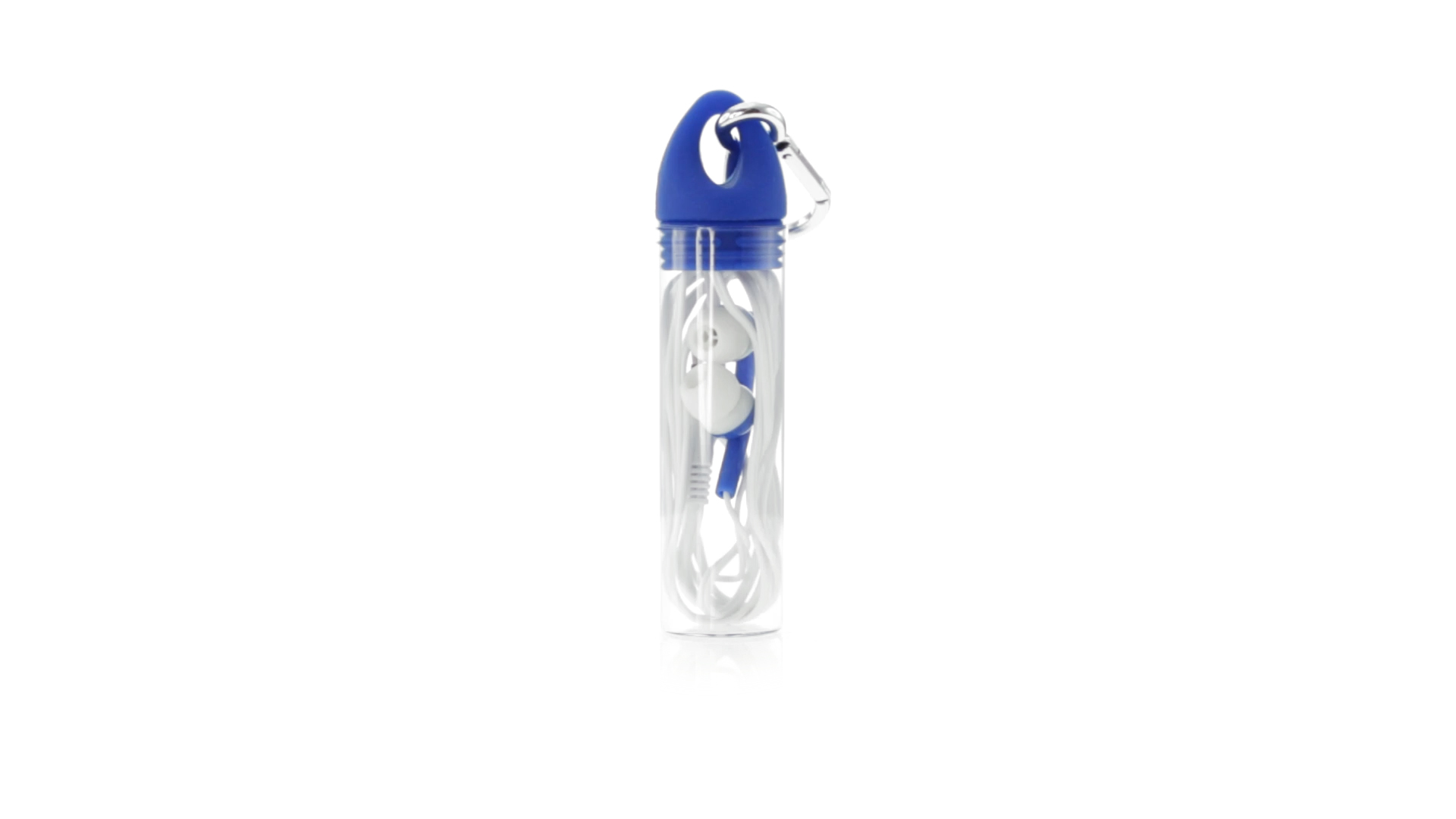 Zweifarbige In-Ear-Kopfhörer mit 3,5-mm-Klinkenstecker und weissem Kabel. Mit Ohrstöpseln in vielen Farben - speziell für den Tampondruck entwickelt. Präsentiert in einem originellen zylinderförmigem Gehäuse in transparenter Ausführung mit Schraubdeckel und Befestigungskarabiner in passender Farbe.