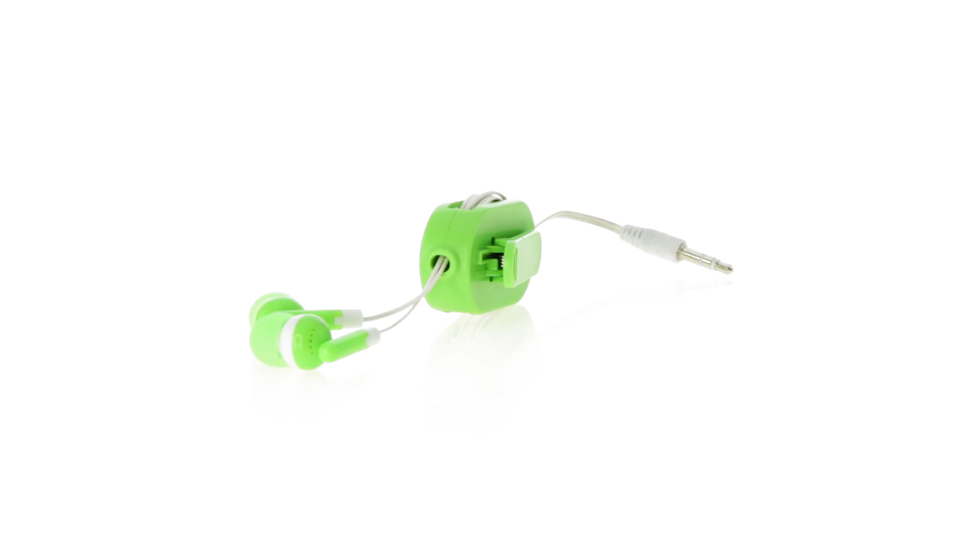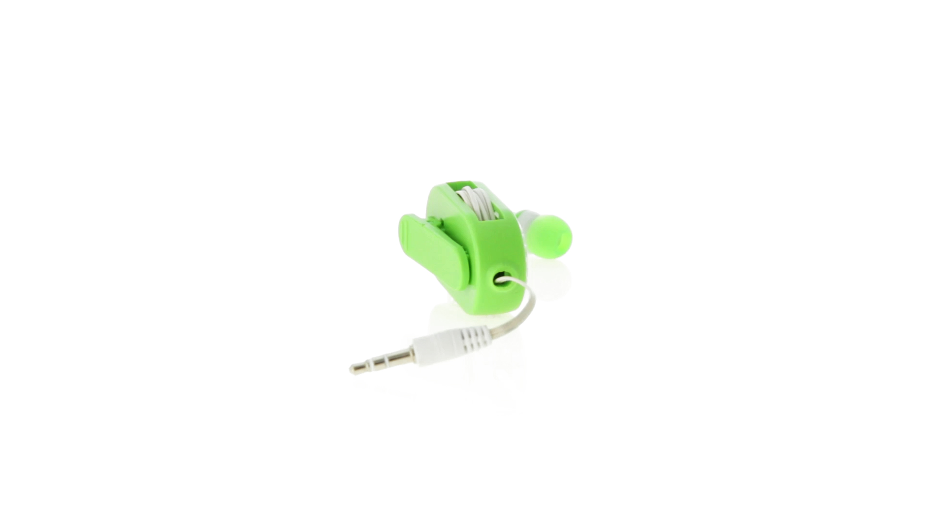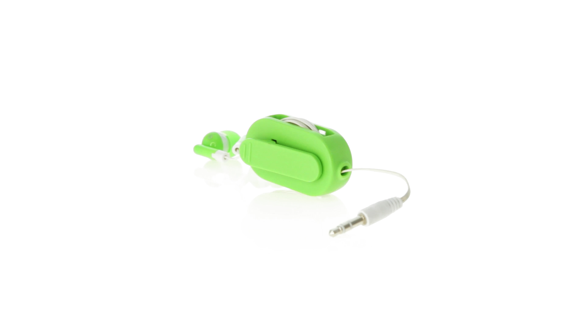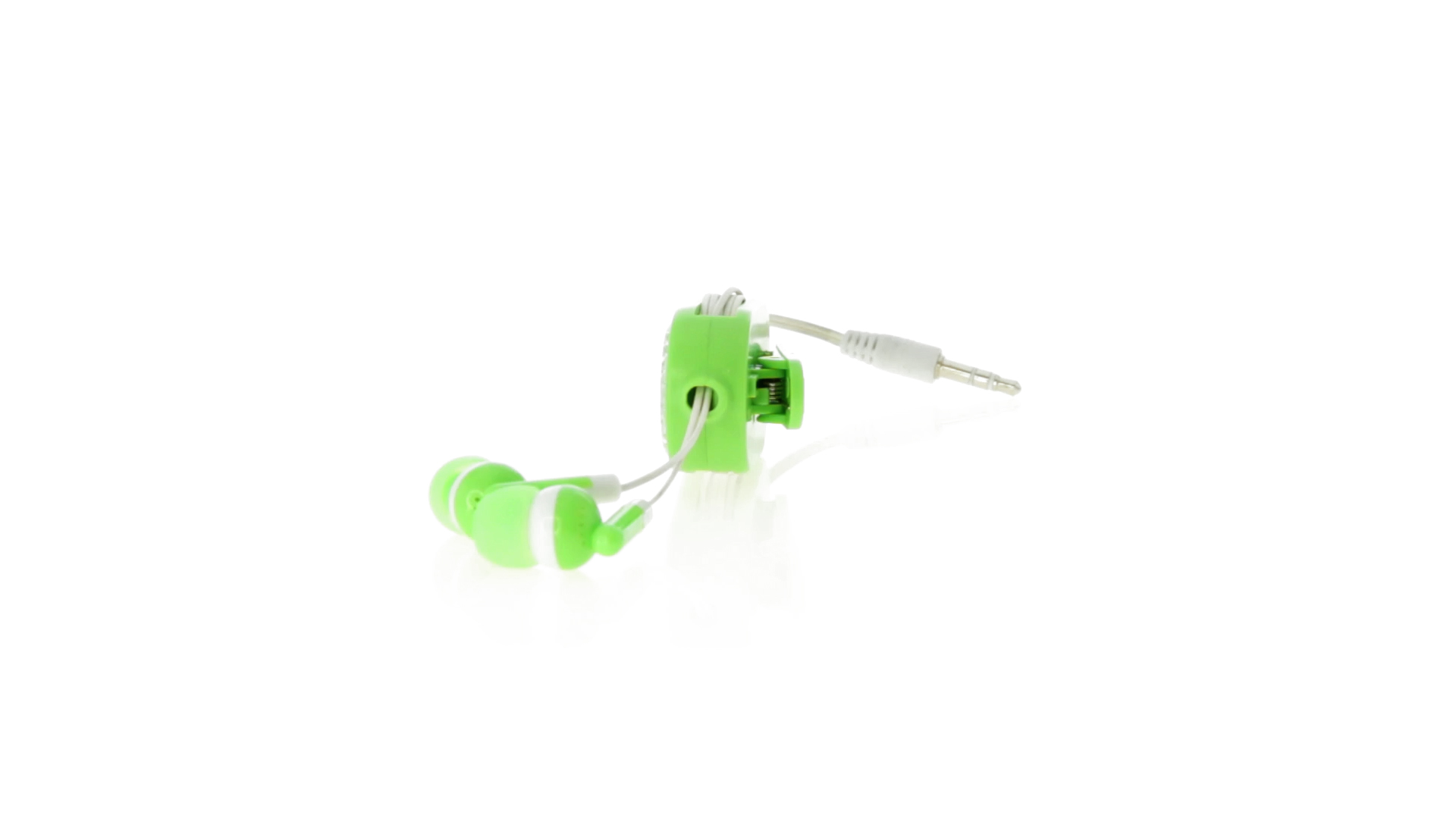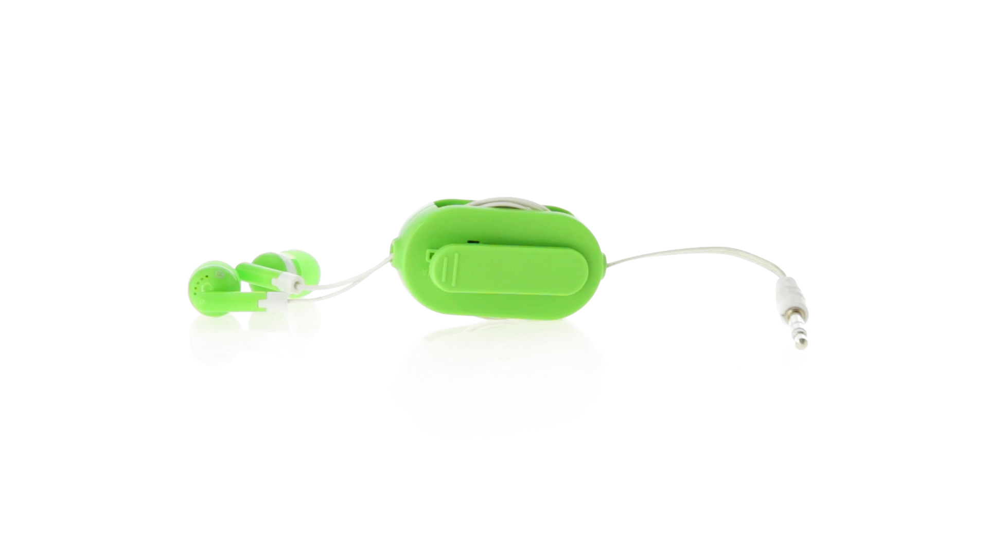 In-Ear-Kopfhörer mit sportlichem Design und reflektierendem Gehäuse in verschiedenen lebendigen Farben. Mit ausziehbarem Kabel und Clip sowie 3,5-mm-Klinkenstecker und Kabel in Weiss.