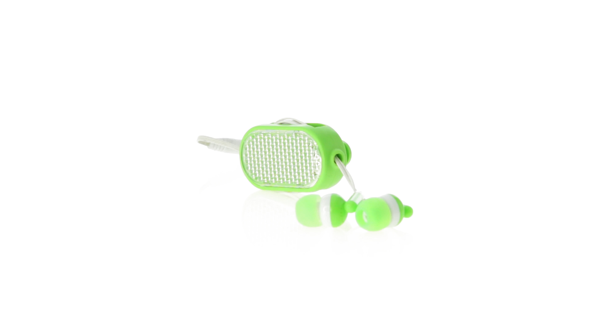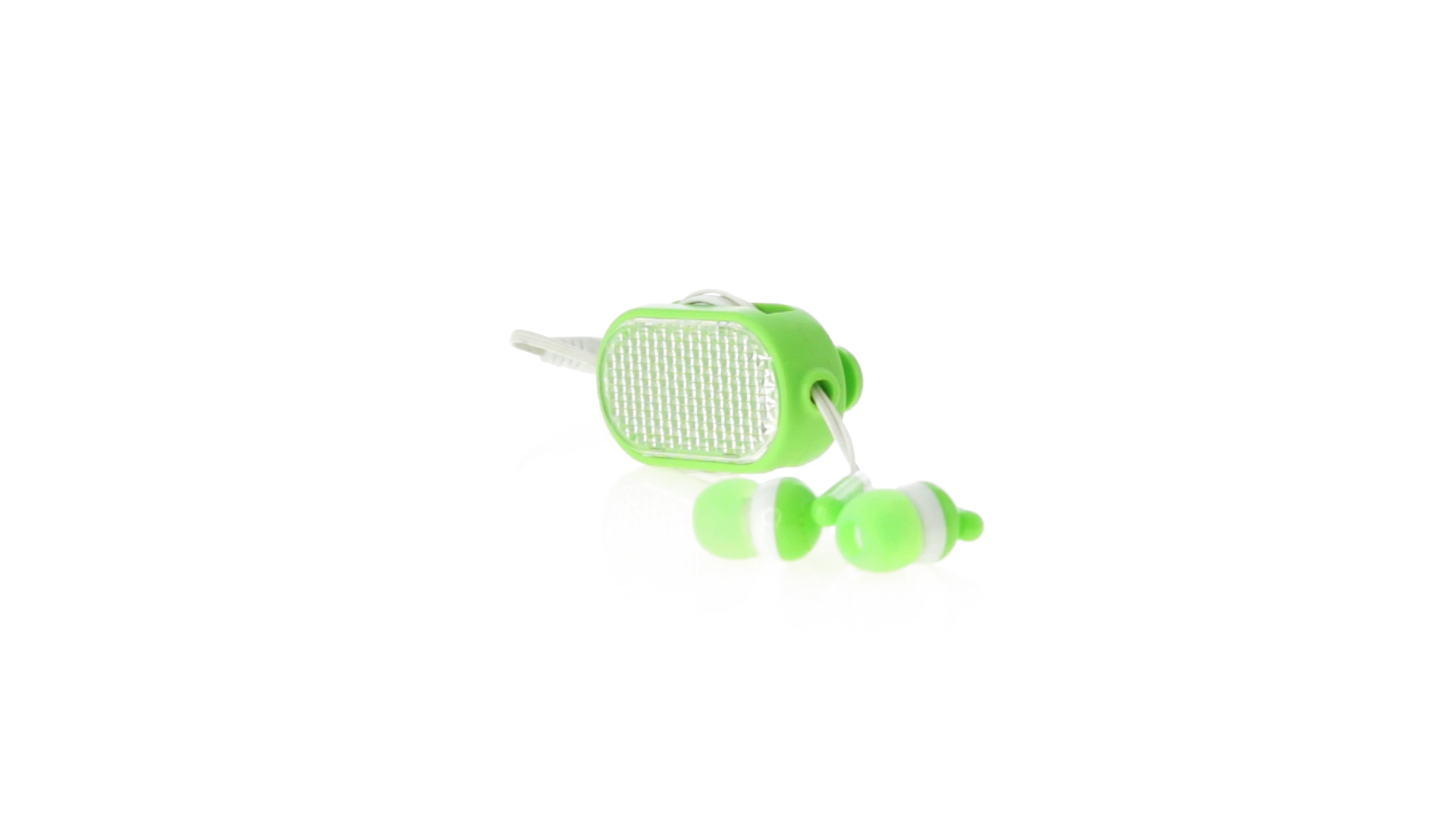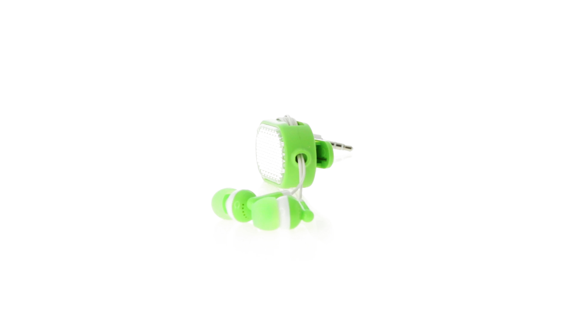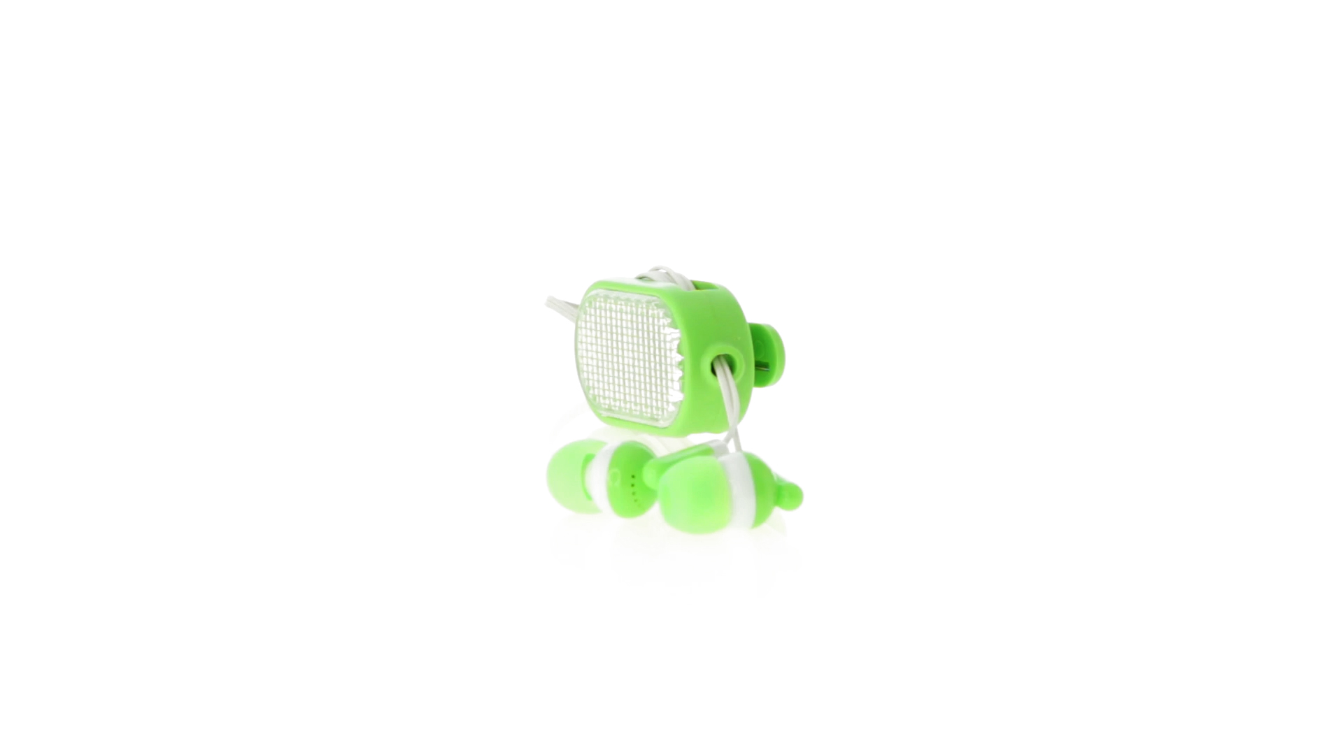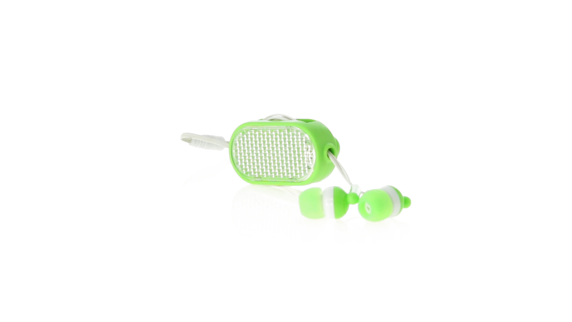In-Ear-Kopfhörer mit sportlichem Design und reflektierendem Gehäuse in verschiedenen lebendigen Farben. Mit ausziehbarem Kabel und Clip sowie 3,5-mm-Klinkenstecker und Kabel in Weiss.
