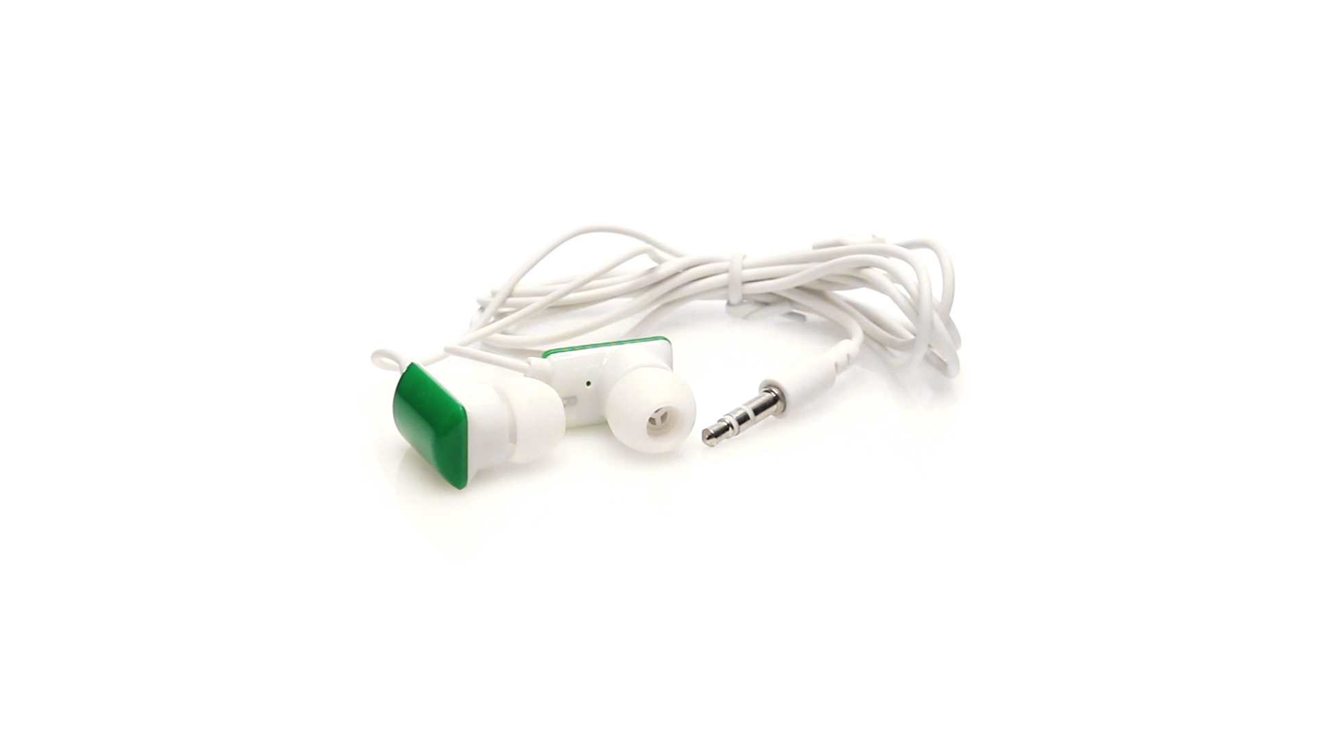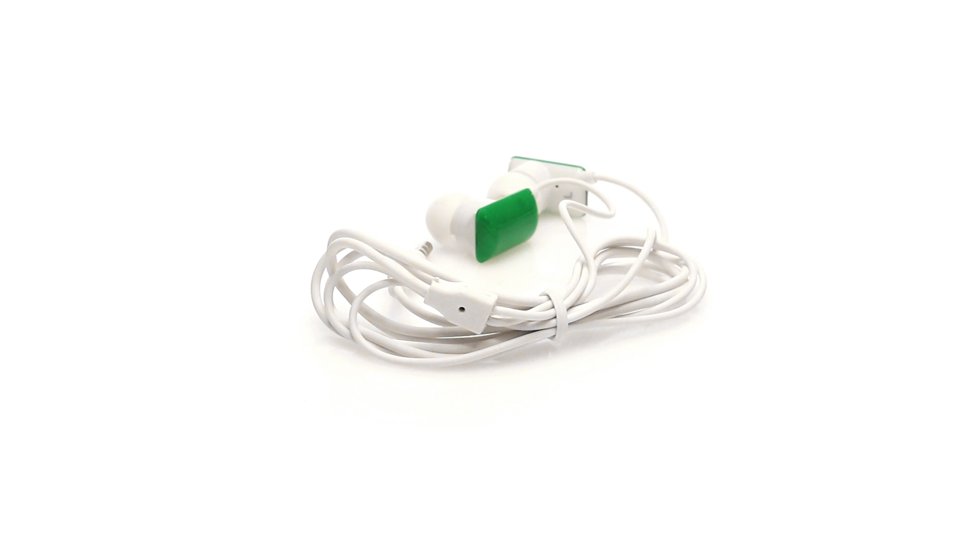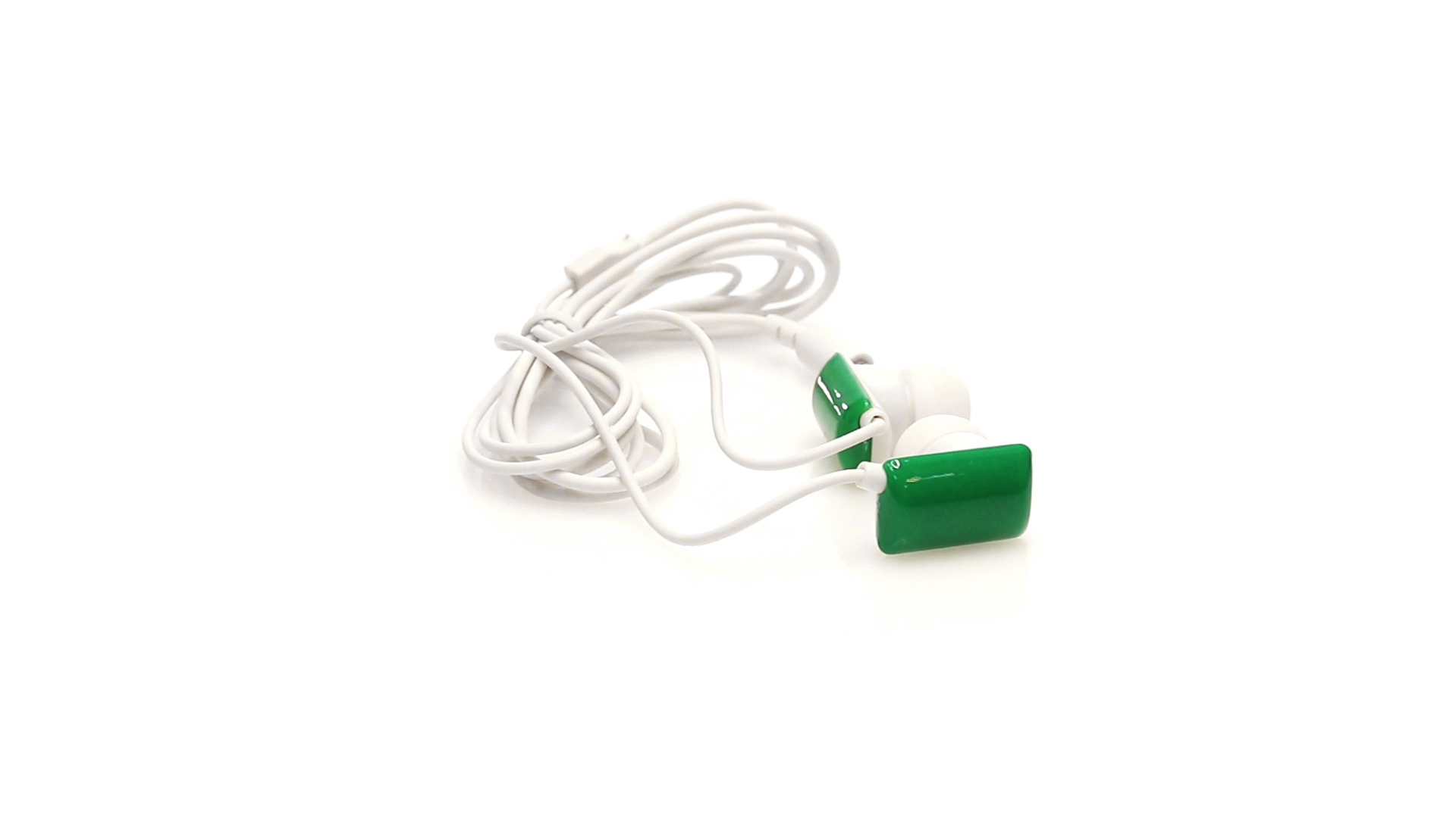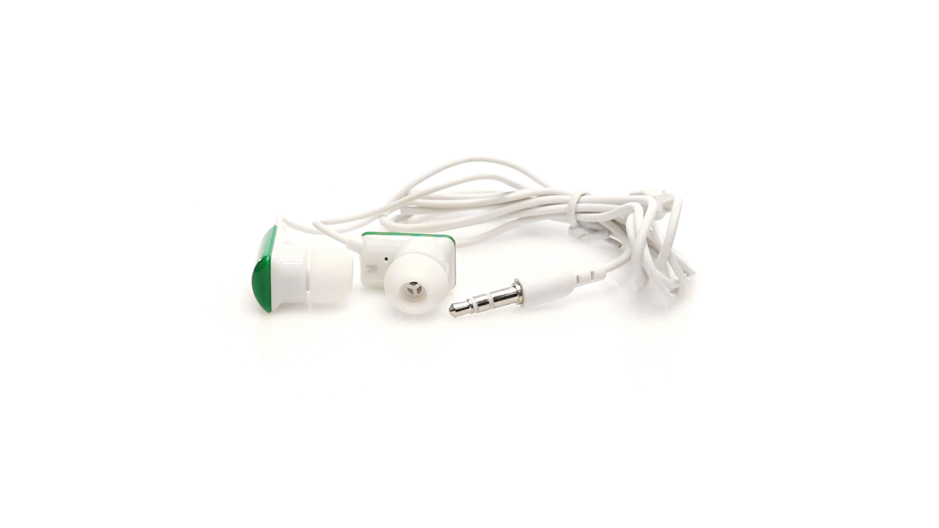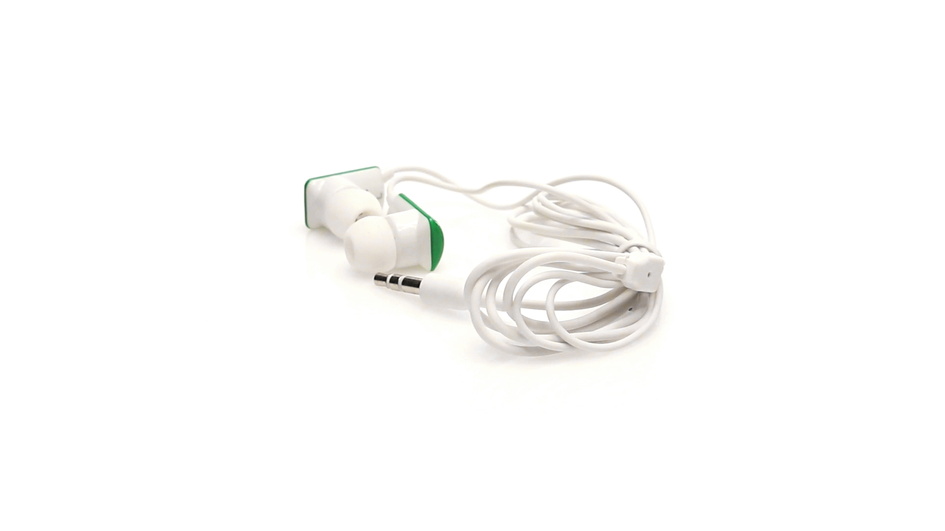 Zweifarbige In-Ear-Kopfhörer mit 3,5-mm-Klinkenanschluss und weissem Kabel. Mit rechteckigen Druckflächen für Tampondruck. Präsentiert in einer individuellen Kartonschachtel.