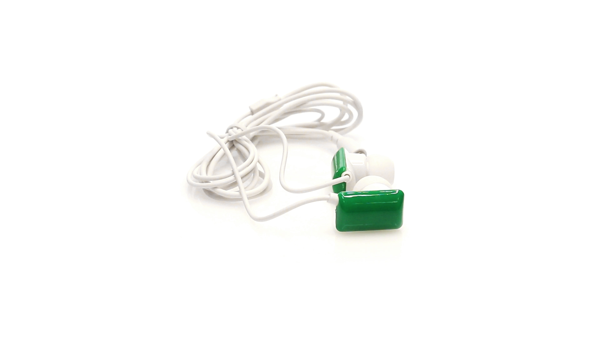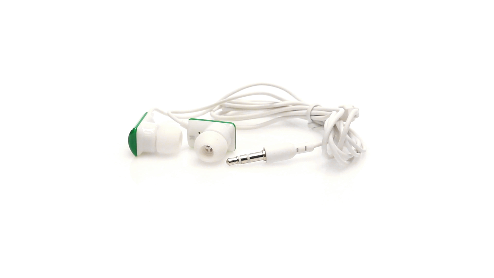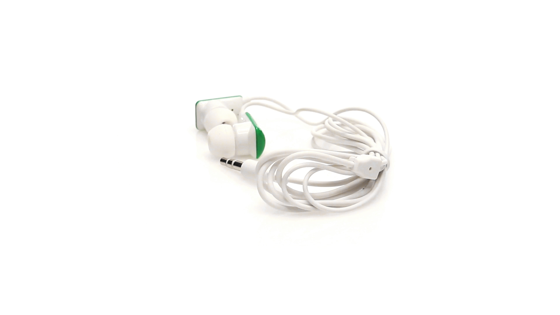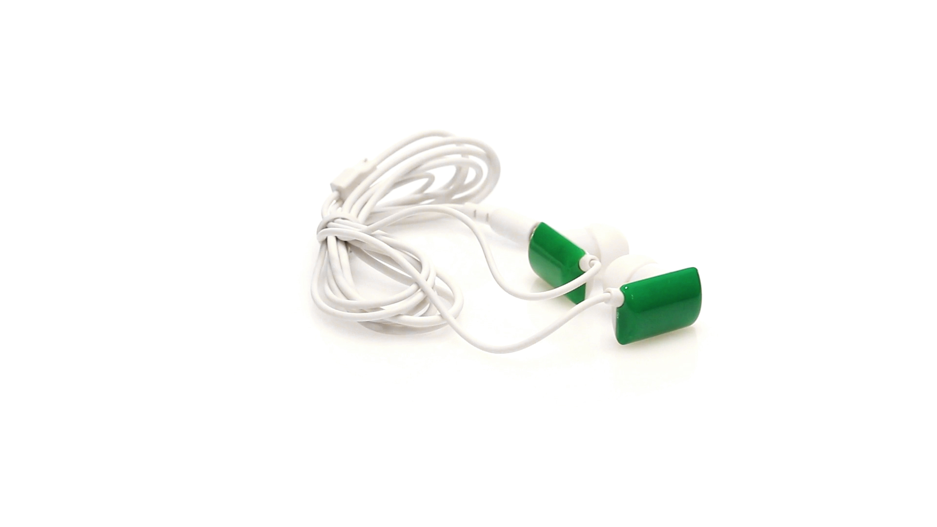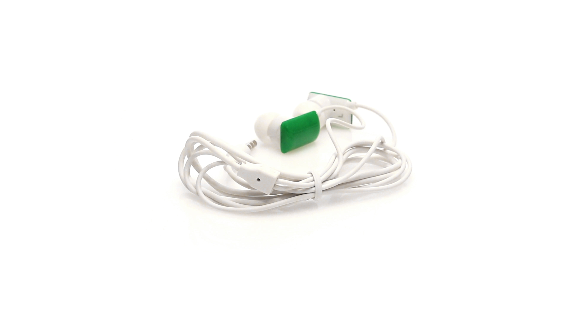 Zweifarbige In-Ear-Kopfhörer mit 3,5-mm-Klinkenanschluss und weissem Kabel. Mit rechteckigen Druckflächen für Tampondruck. Präsentiert in einer individuellen Kartonschachtel.