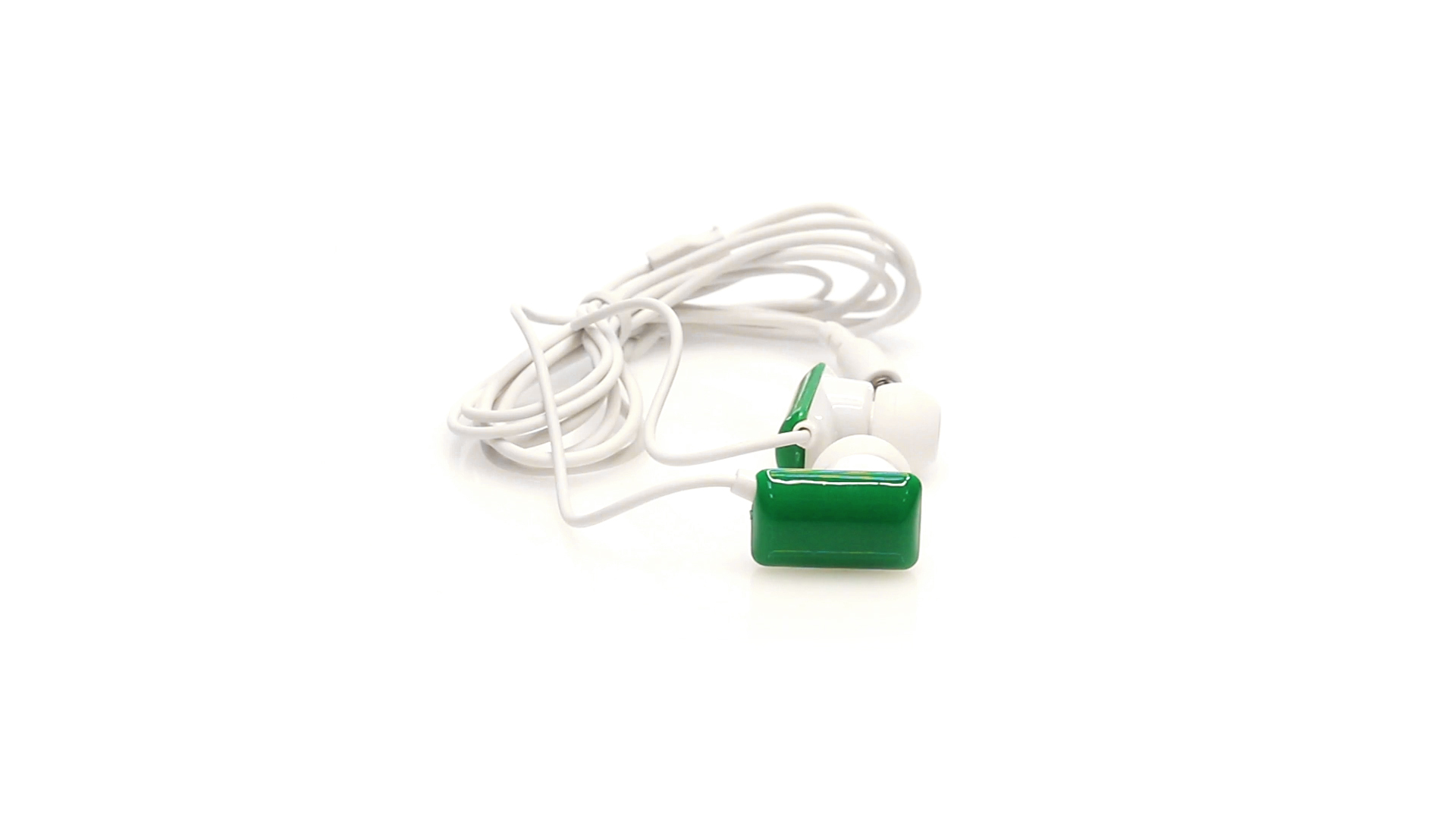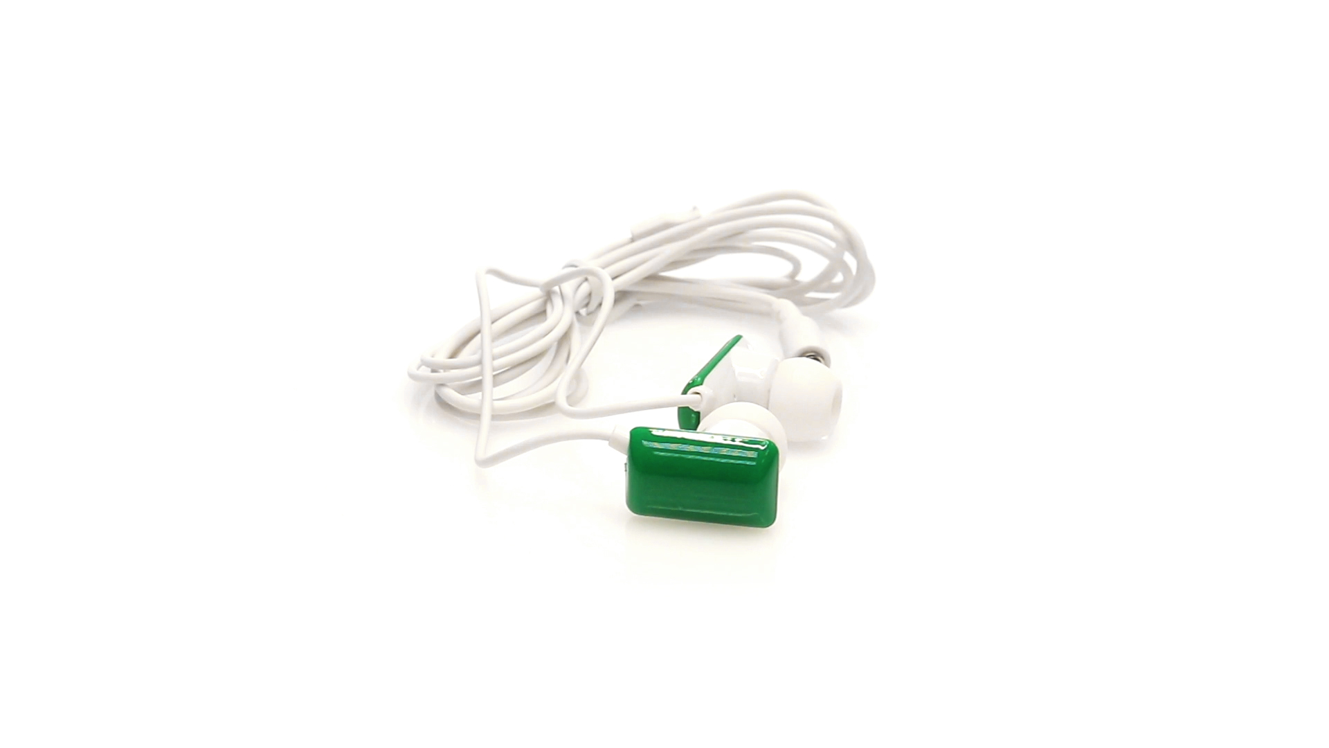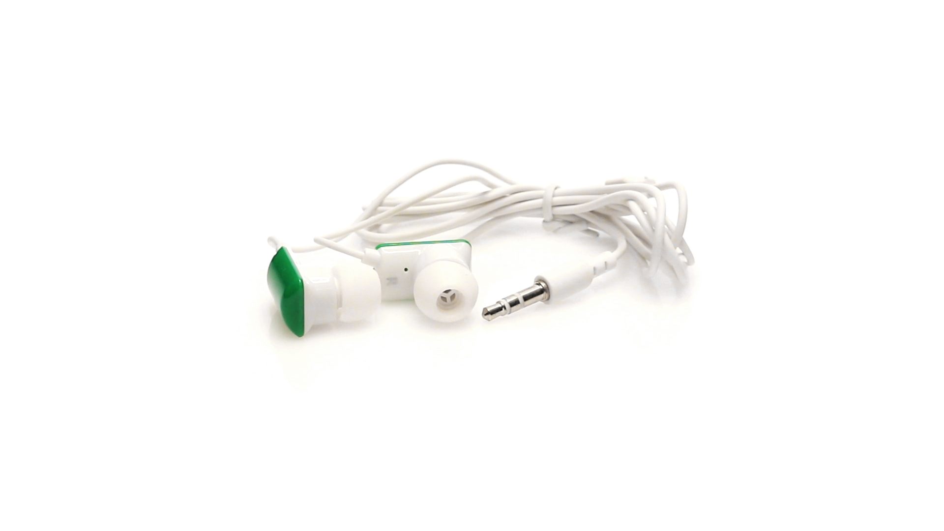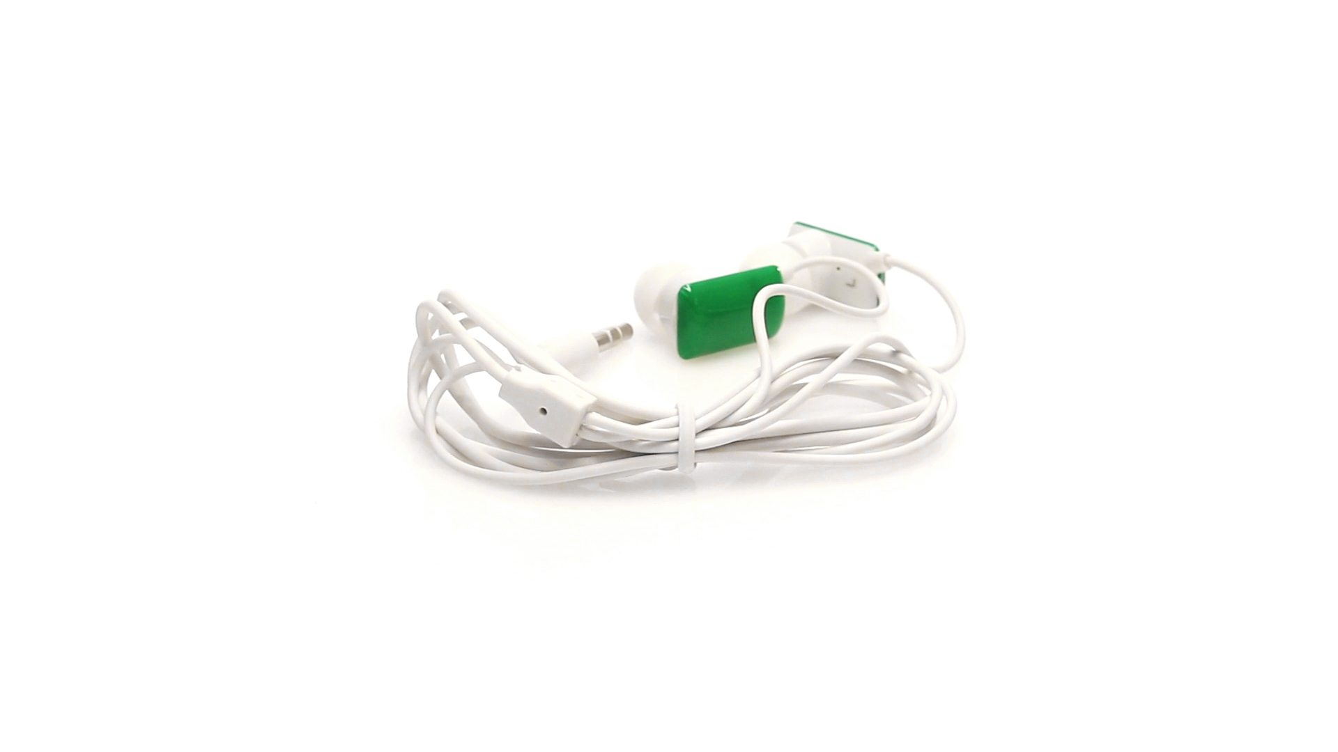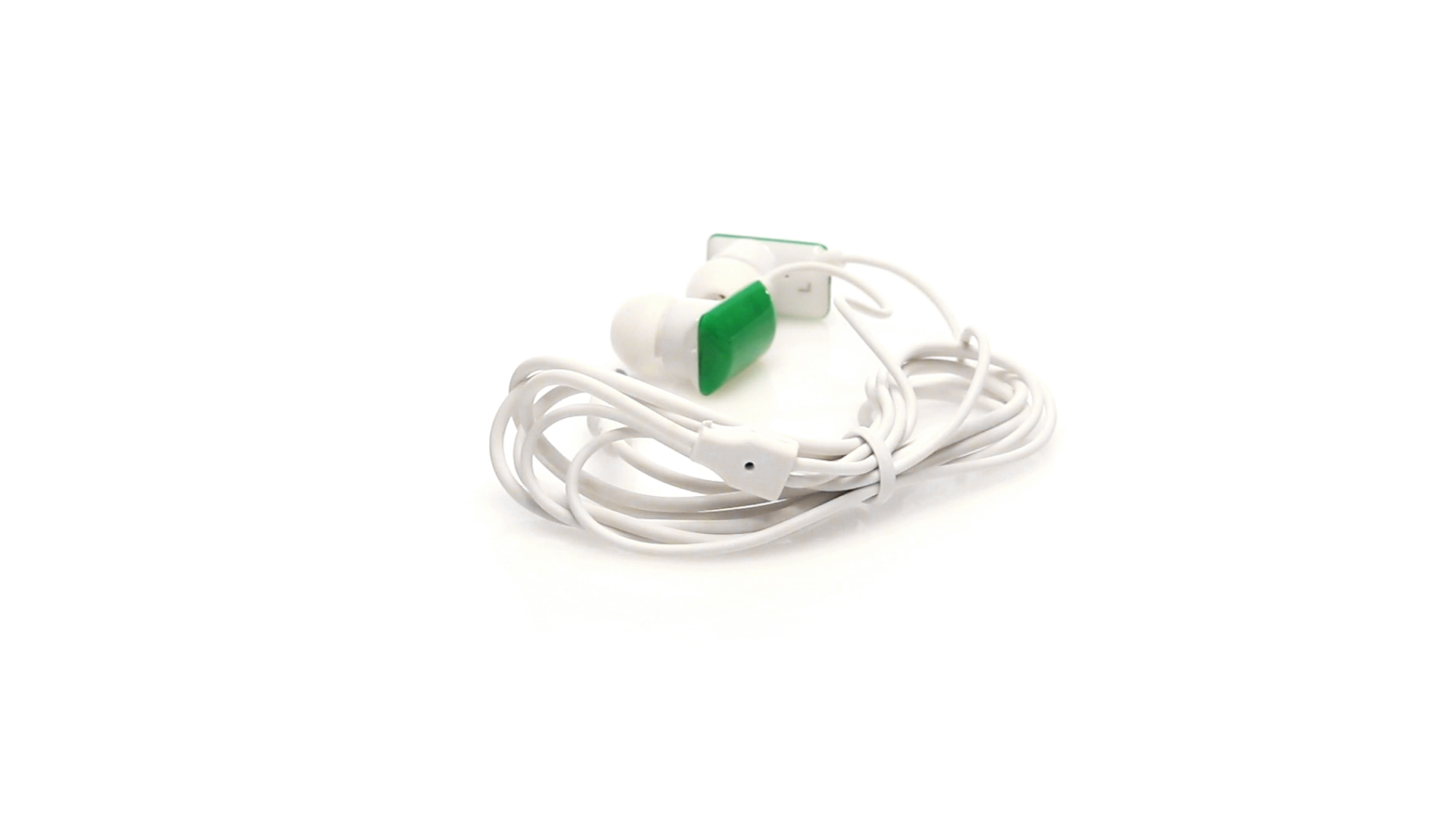 Zweifarbige In-Ear-Kopfhörer mit 3,5-mm-Klinkenanschluss und weissem Kabel. Mit rechteckigen Druckflächen für Tampondruck. Präsentiert in einer individuellen Kartonschachtel.