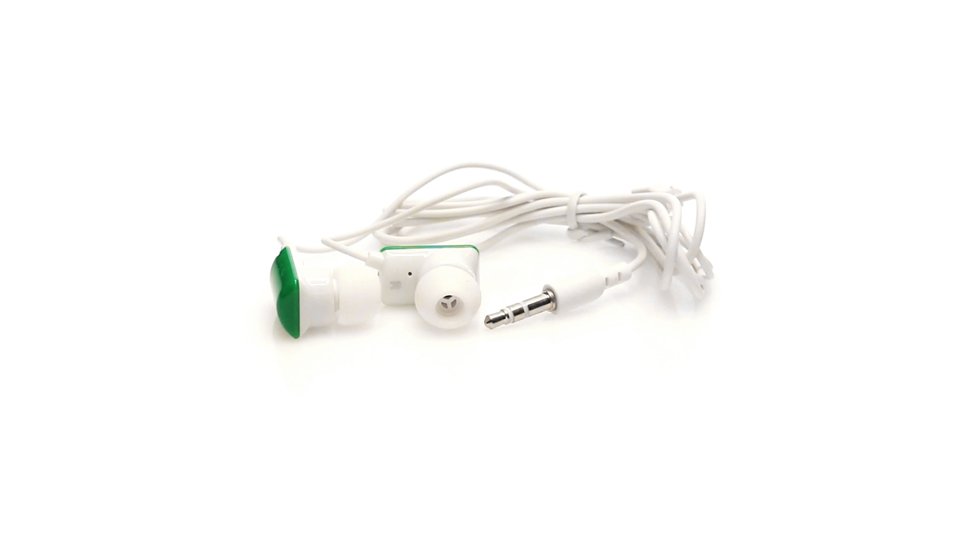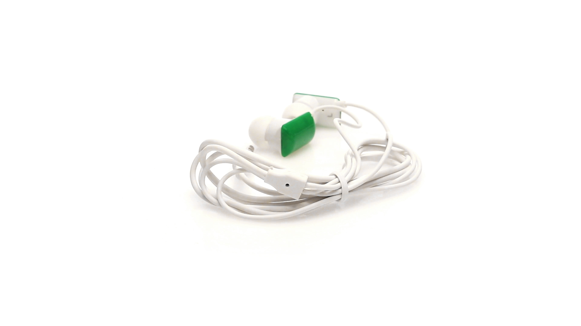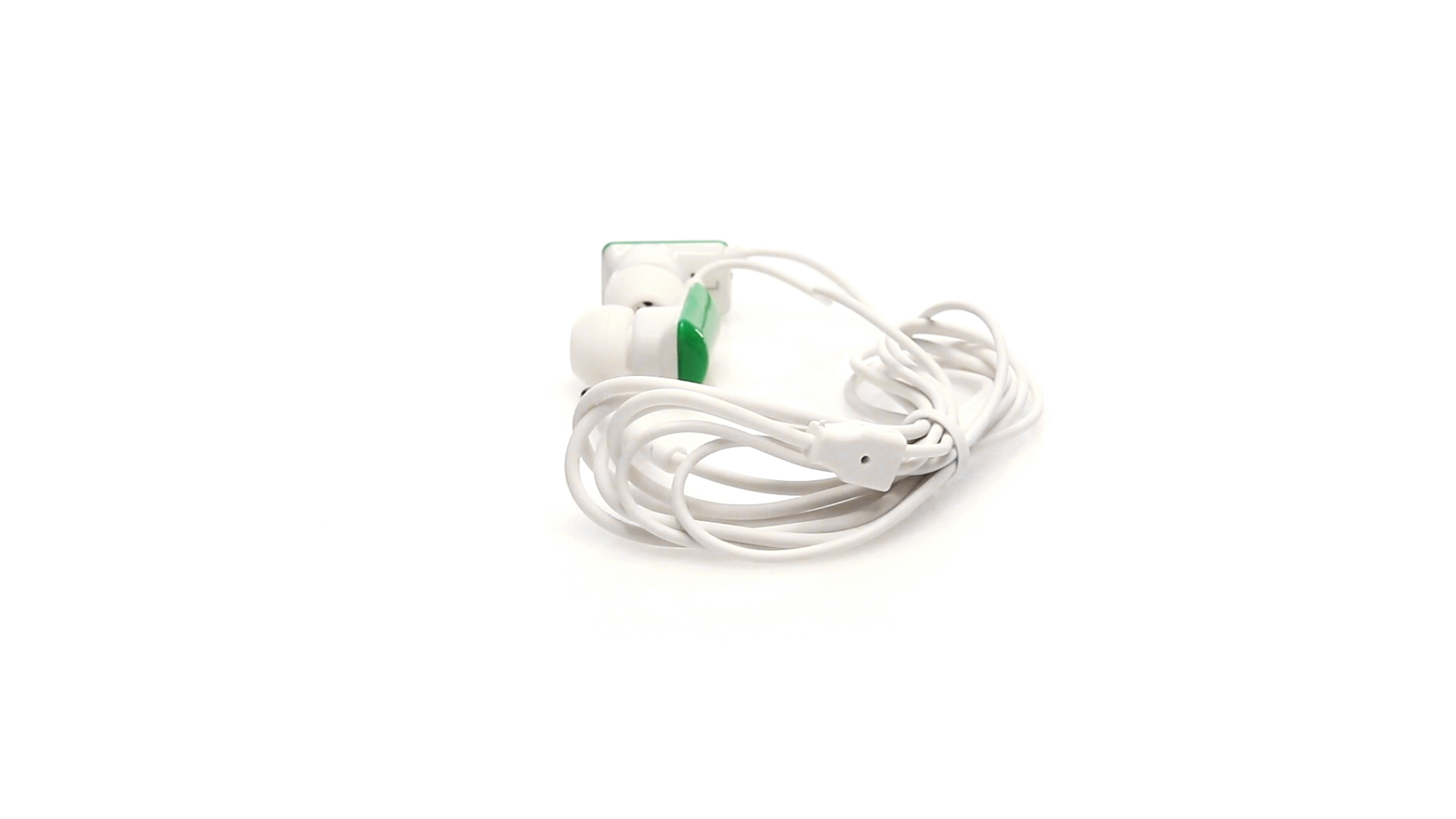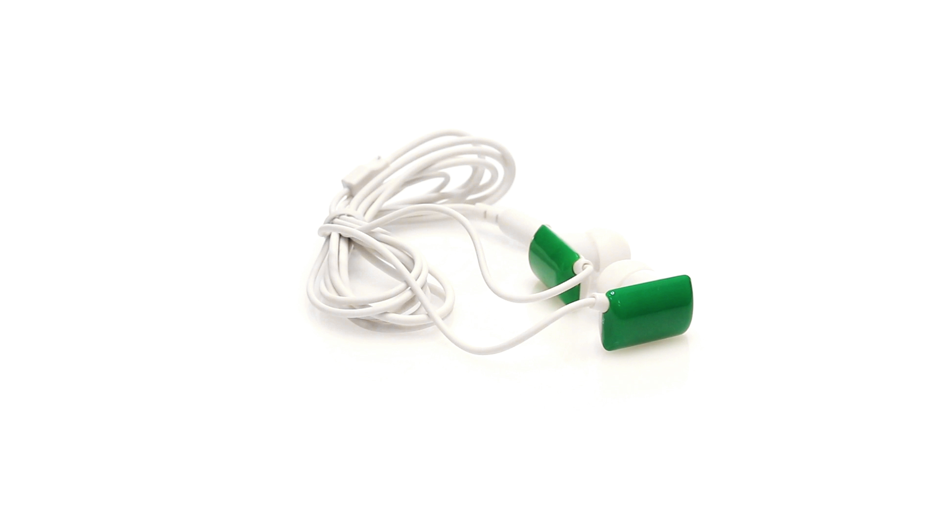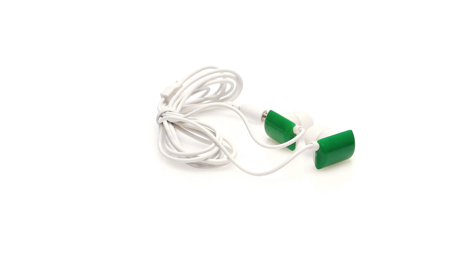 Zweifarbige In-Ear-Kopfhörer mit 3,5-mm-Klinkenanschluss und weissem Kabel. Mit rechteckigen Druckflächen für Tampondruck. Präsentiert in einer individuellen Kartonschachtel.