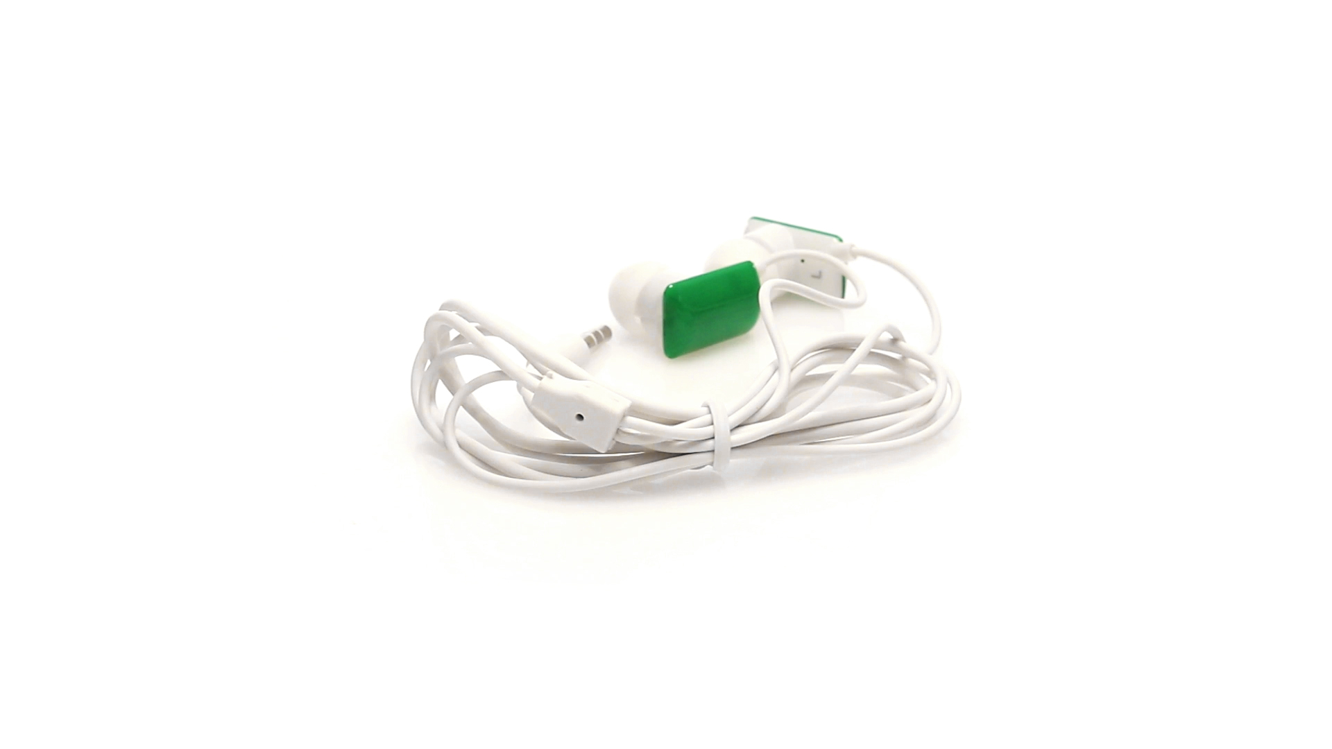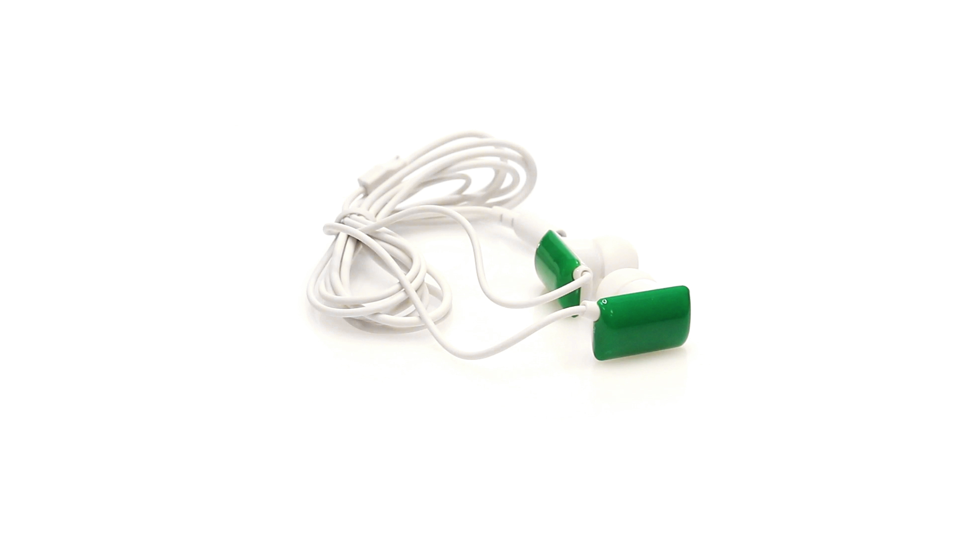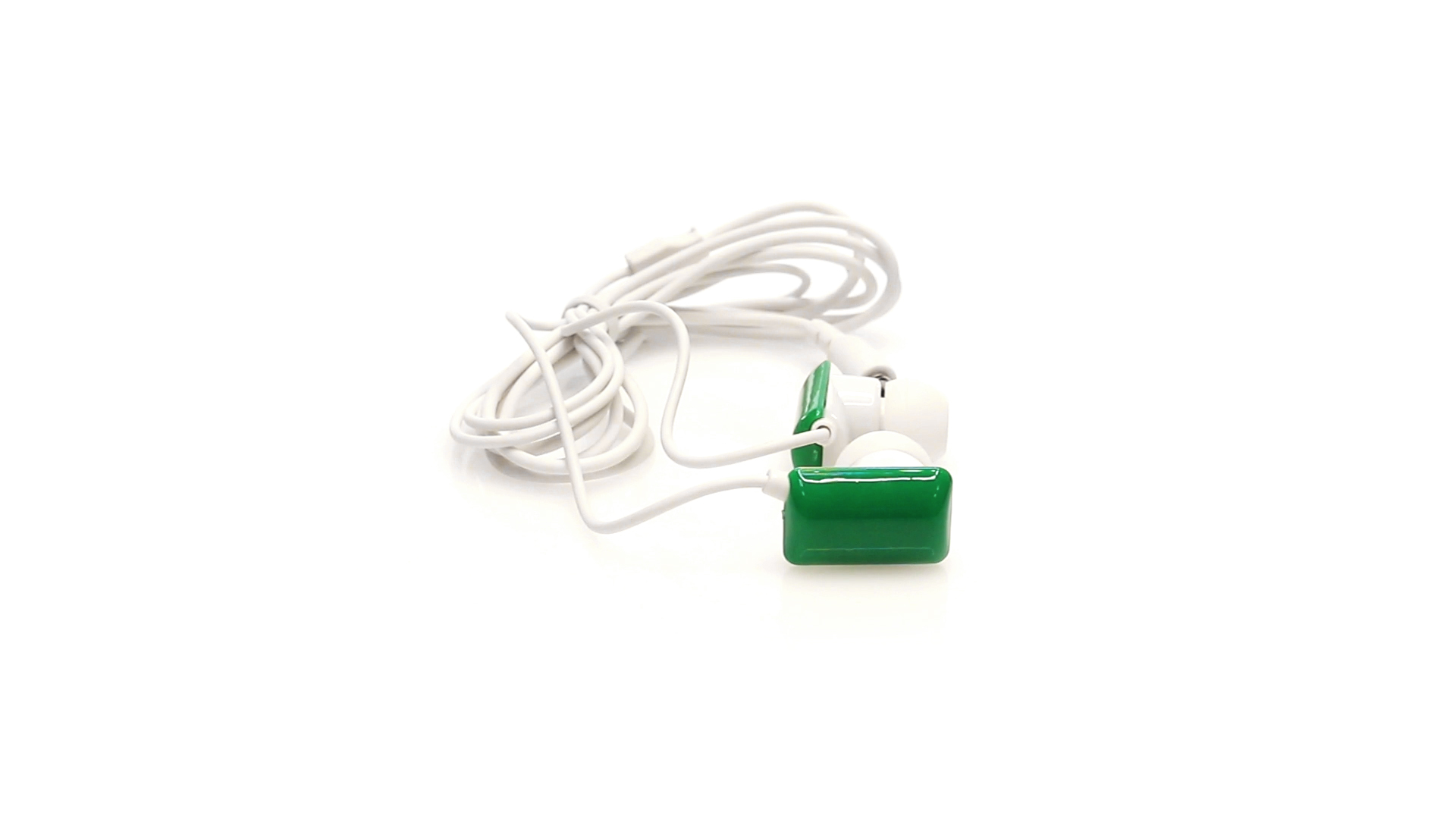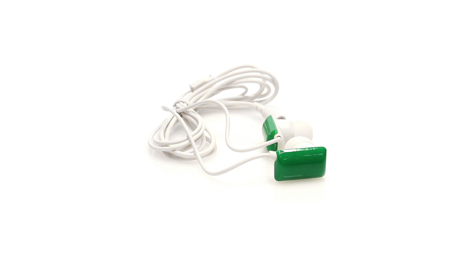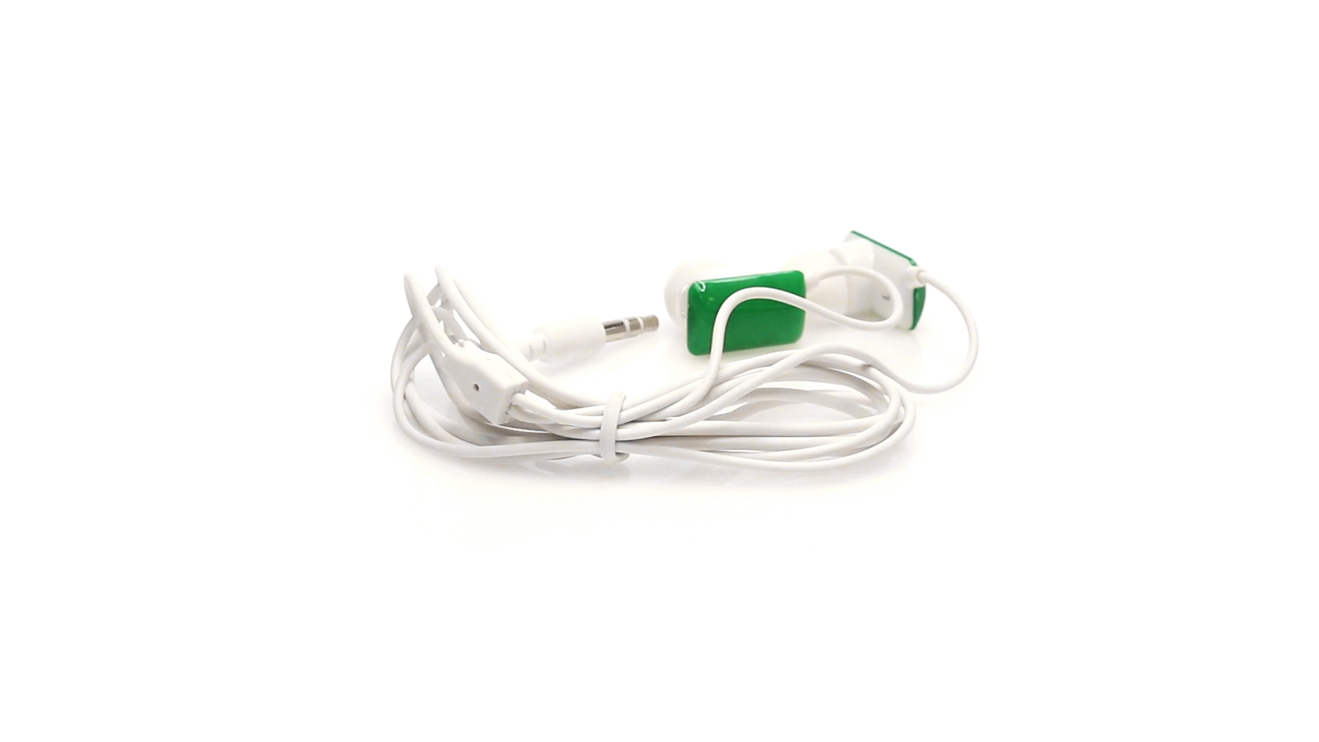 Zweifarbige In-Ear-Kopfhörer mit 3,5-mm-Klinkenanschluss und weissem Kabel. Mit rechteckigen Druckflächen für Tampondruck. Präsentiert in einer individuellen Kartonschachtel.