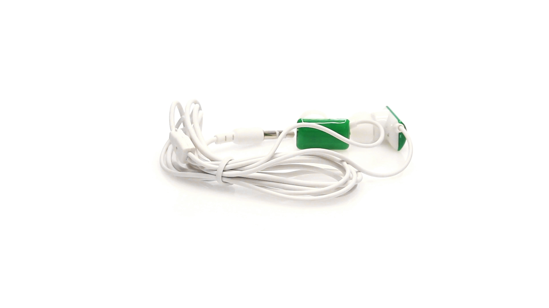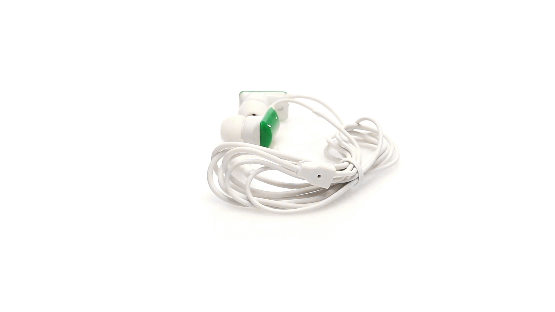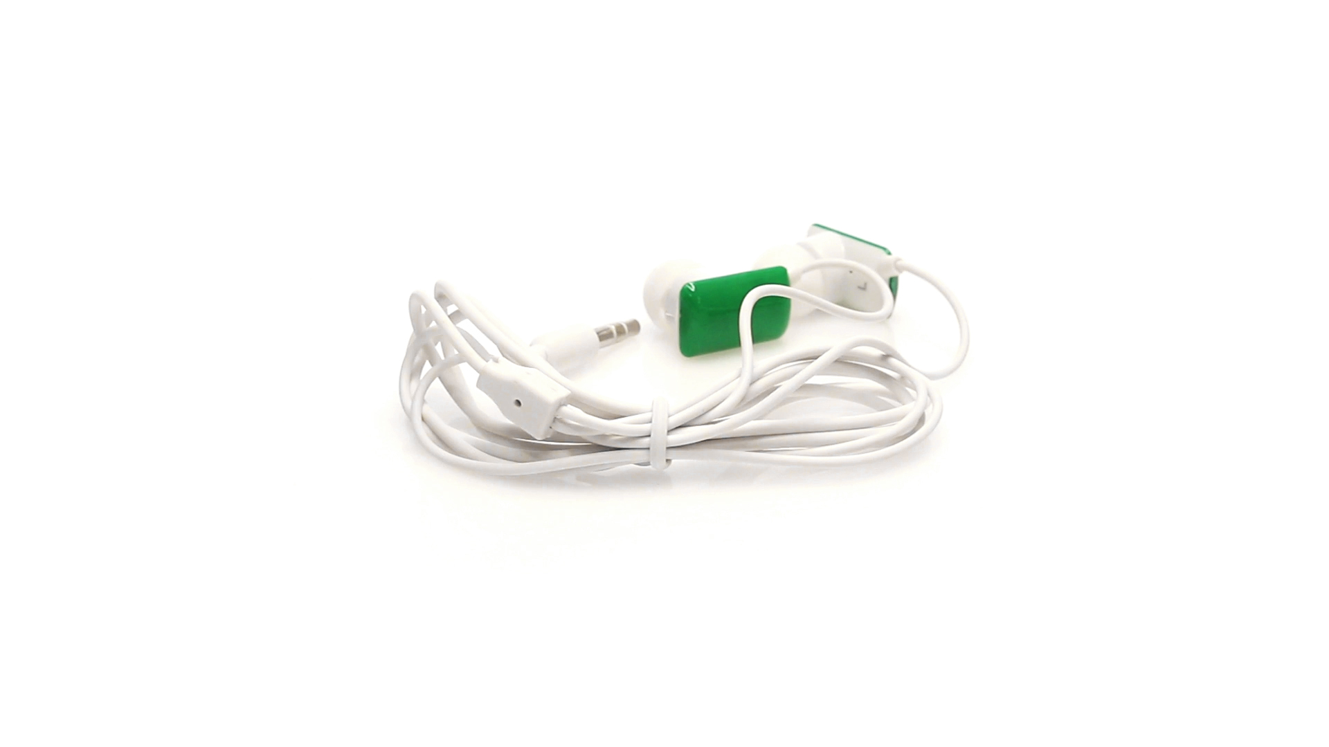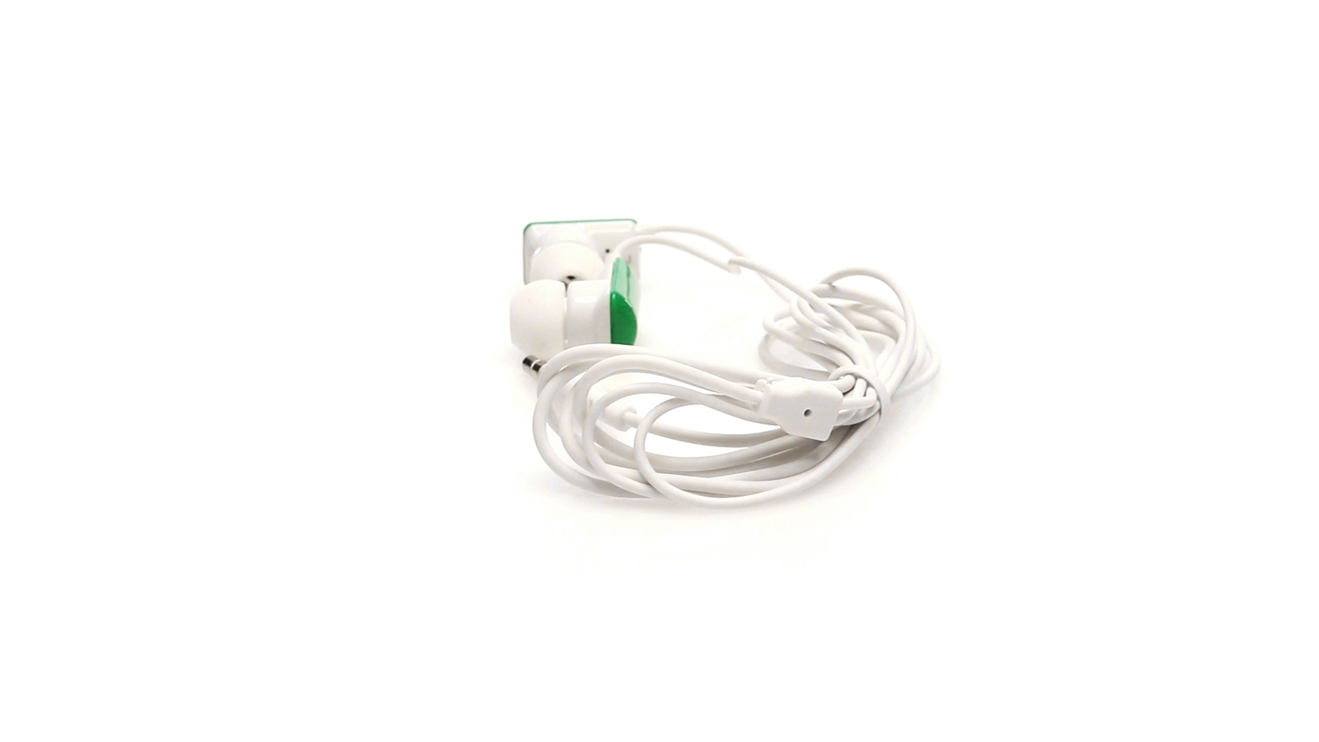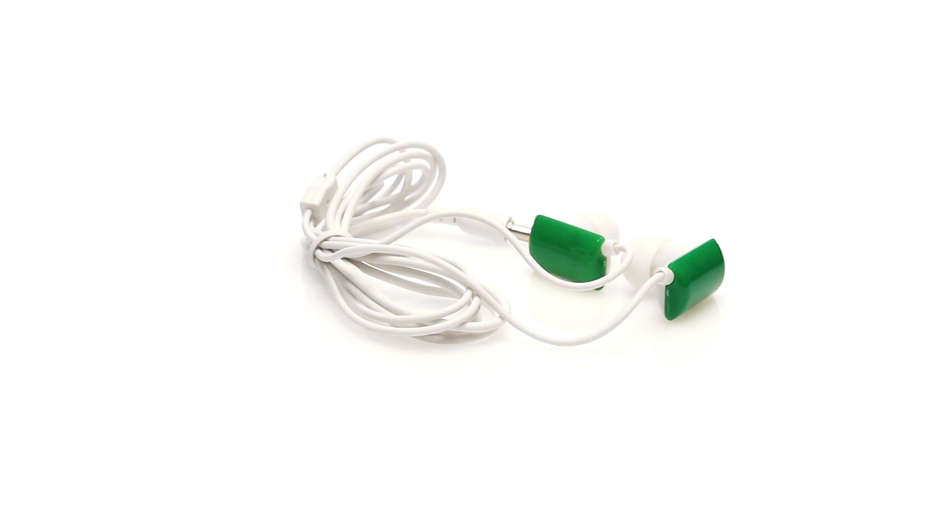 Zweifarbige In-Ear-Kopfhörer mit 3,5-mm-Klinkenanschluss und weissem Kabel. Mit rechteckigen Druckflächen für Tampondruck. Präsentiert in einer individuellen Kartonschachtel.