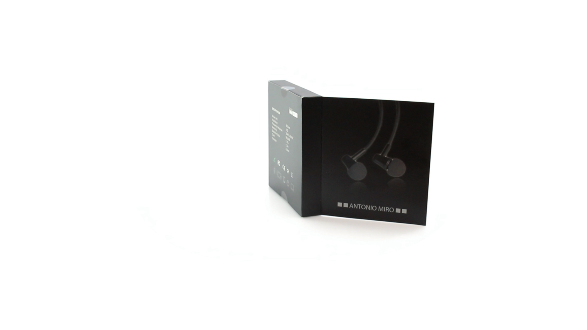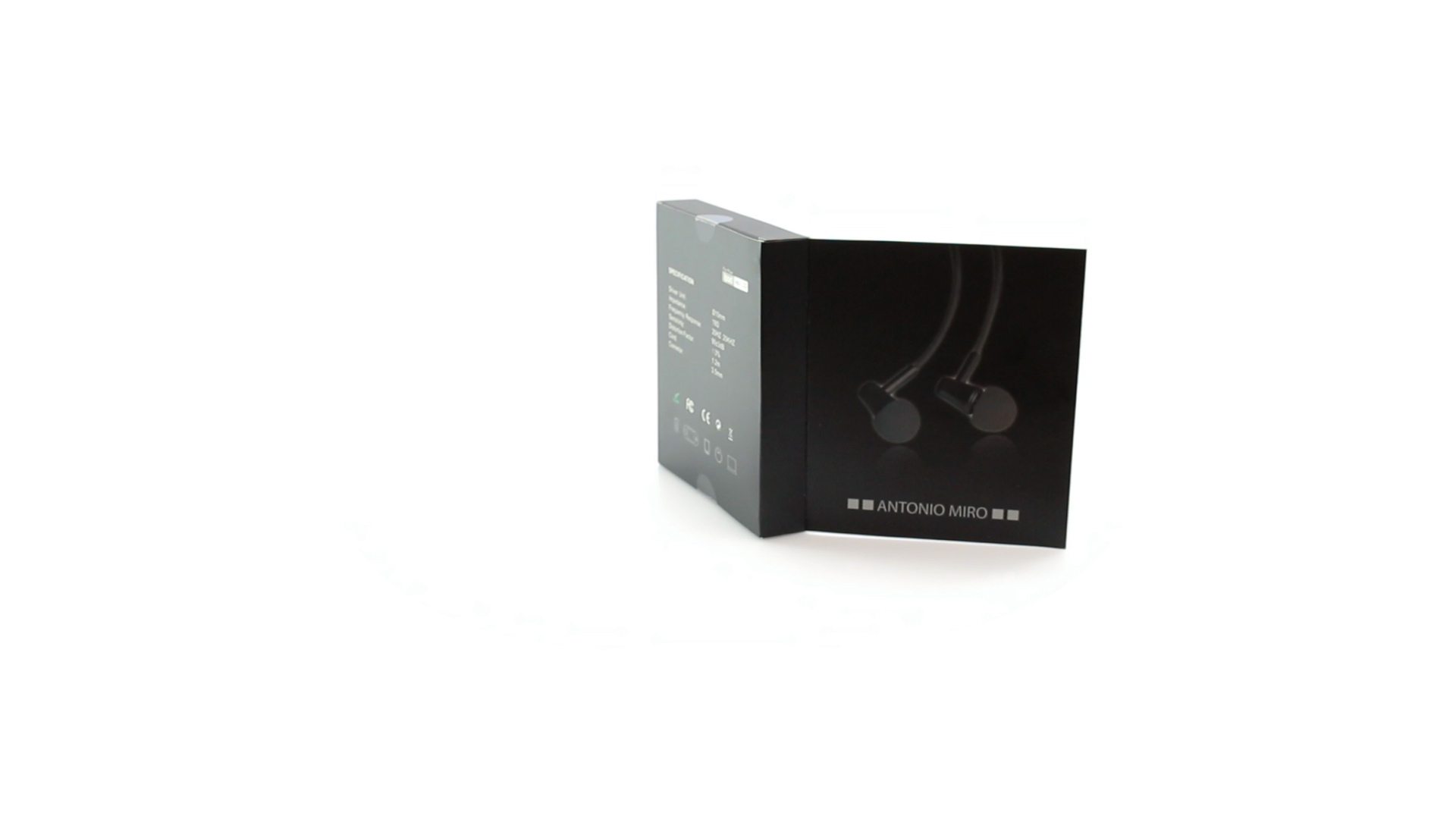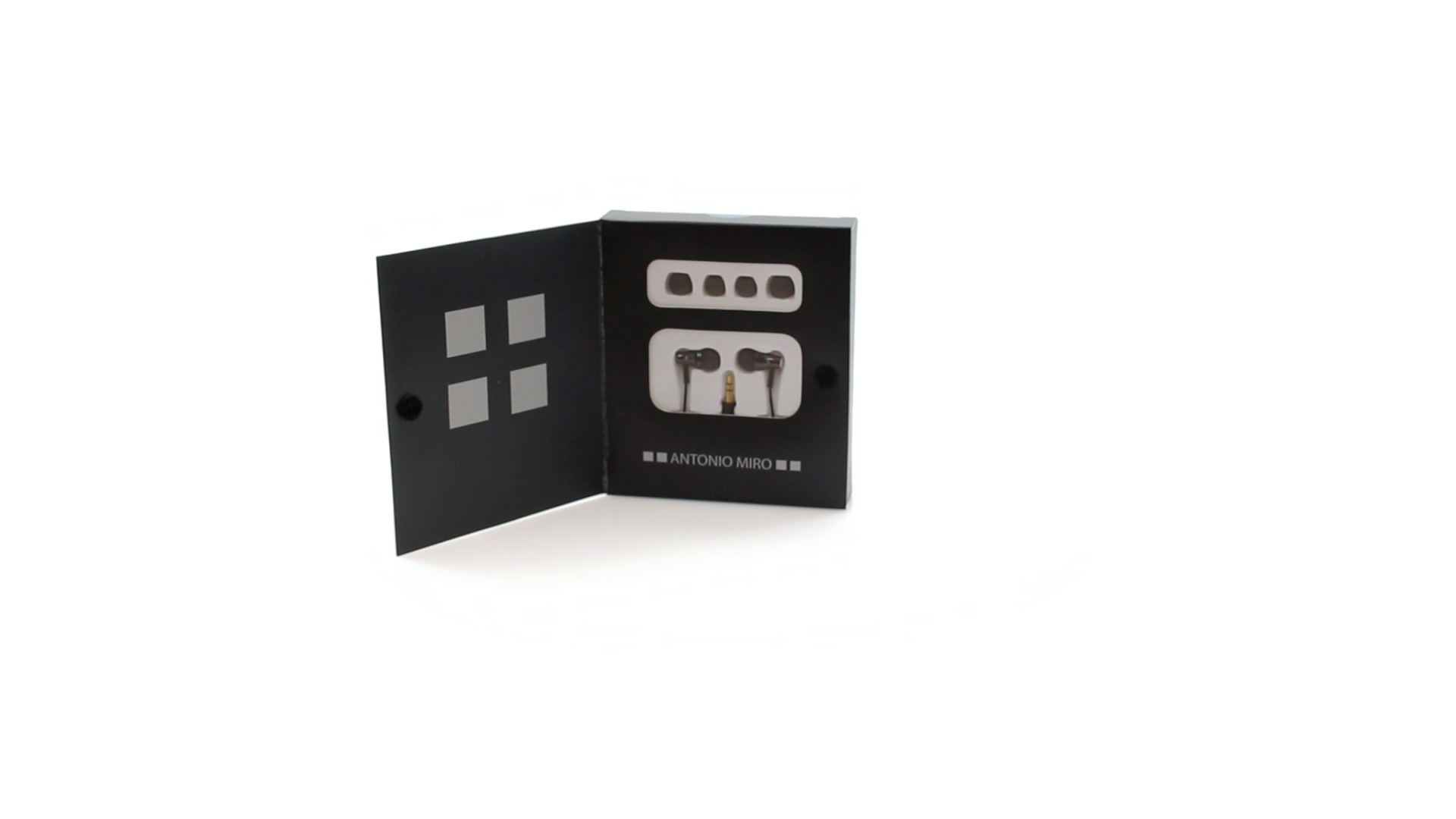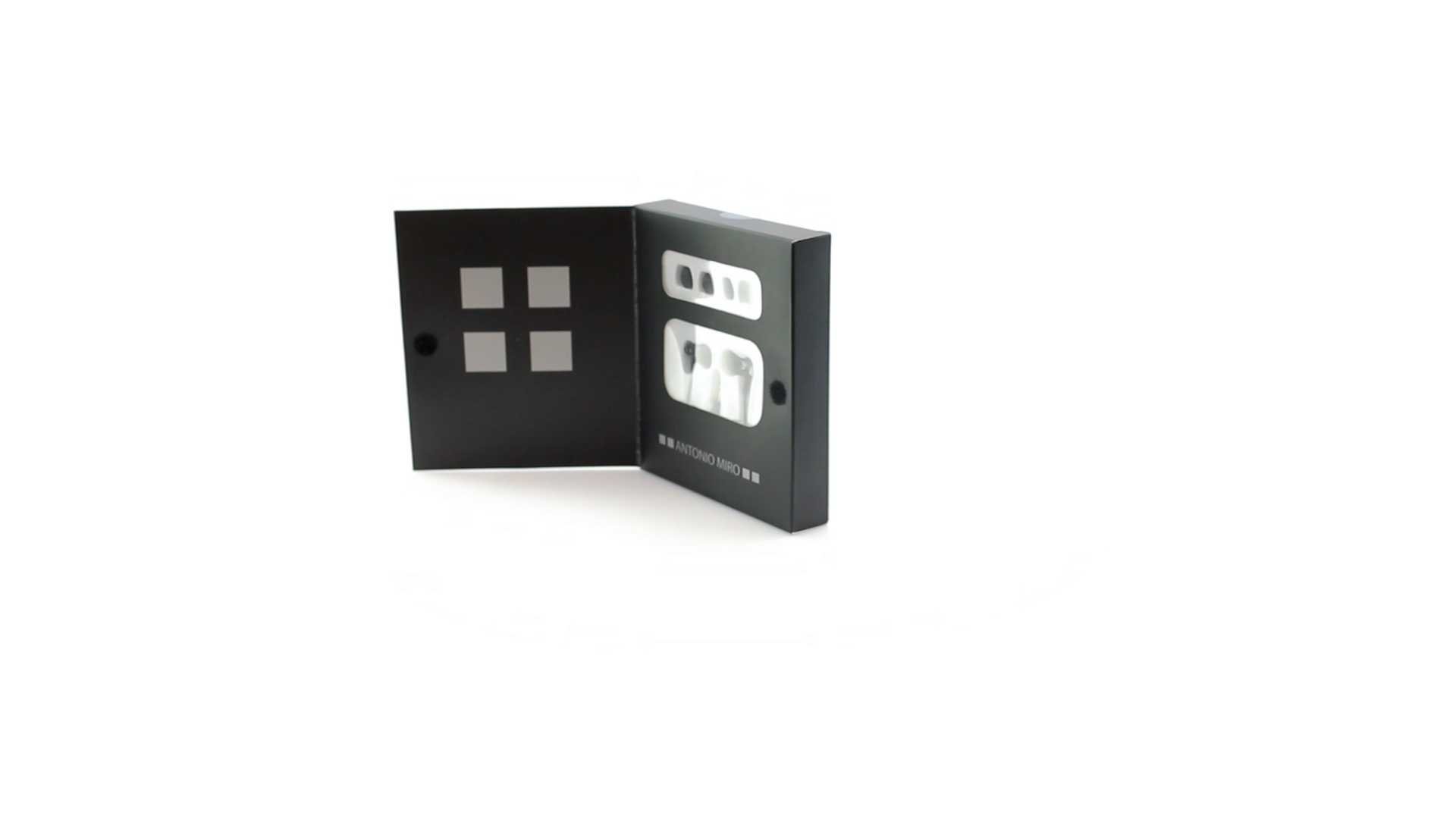 In-Ear-Kopfhörer von Antonio Miró mit minimalistischem Design in Schwarz und angenehm geschmeidiger Oberfläche. Mit farblich passendem Kabel, 3,5-mm-Klinkenstecker und Ersatzpolstern. Präsentiert in einer attraktiven Designbox mit dem Markenlogo.