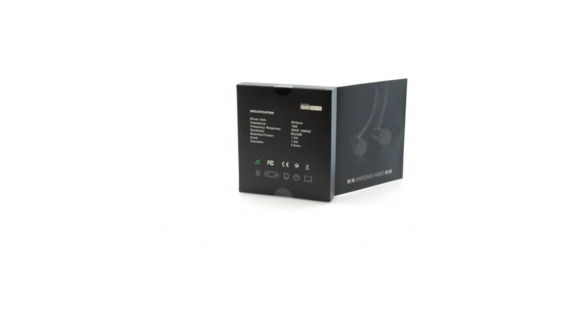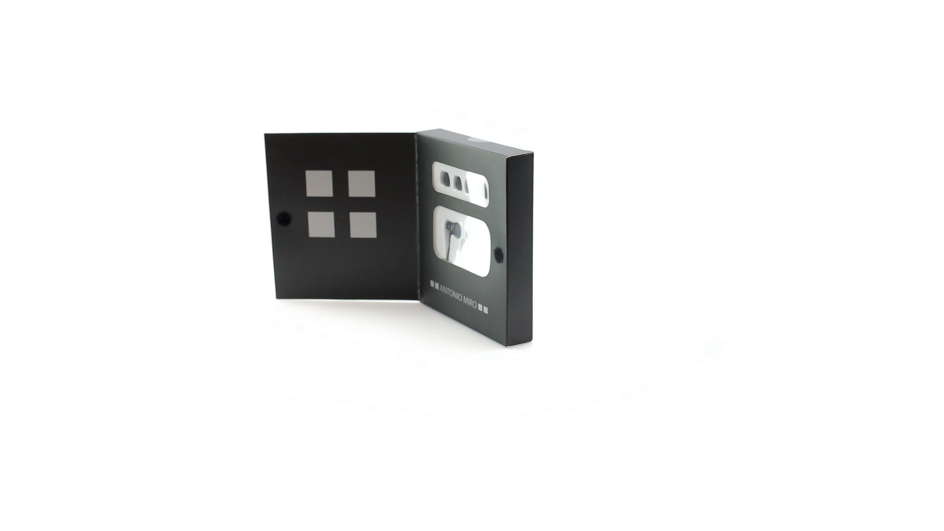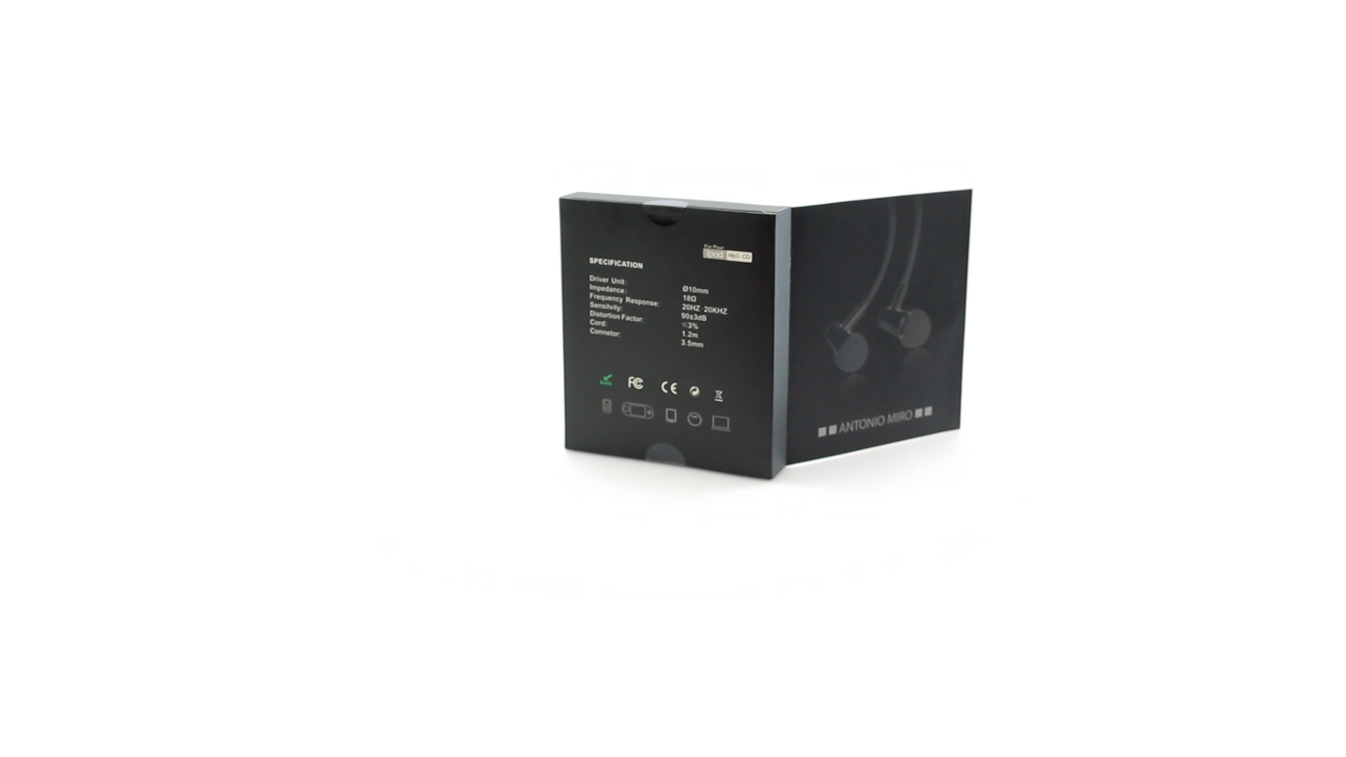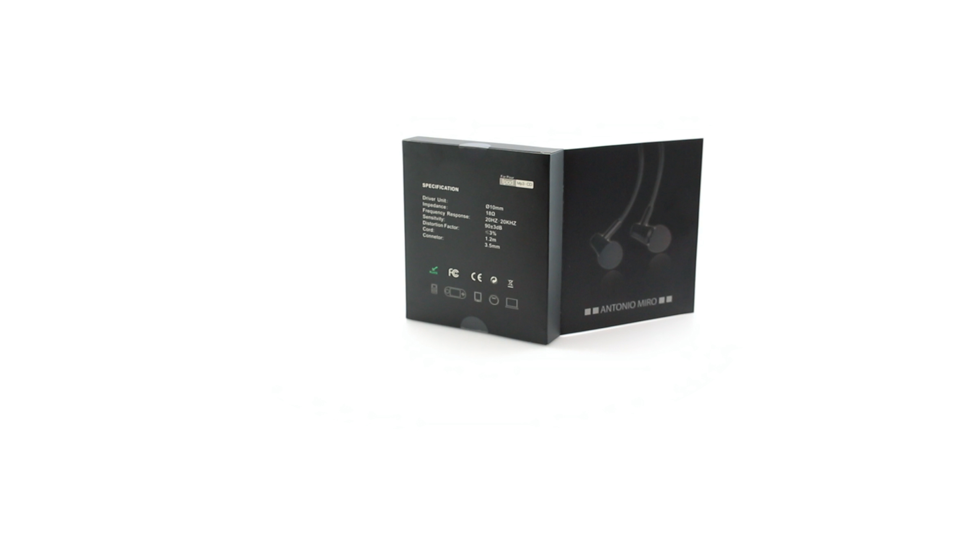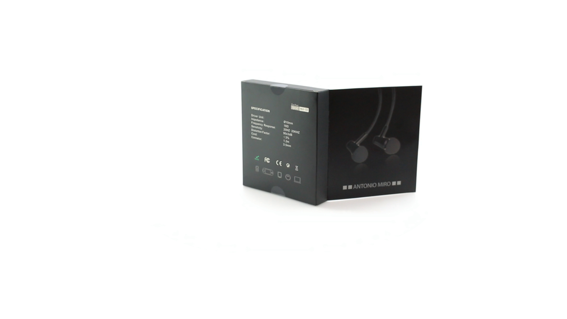 In-Ear-Kopfhörer von Antonio Miró mit minimalistischem Design in Schwarz und angenehm geschmeidiger Oberfläche. Mit farblich passendem Kabel, 3,5-mm-Klinkenstecker und Ersatzpolstern. Präsentiert in einer attraktiven Designbox mit dem Markenlogo.