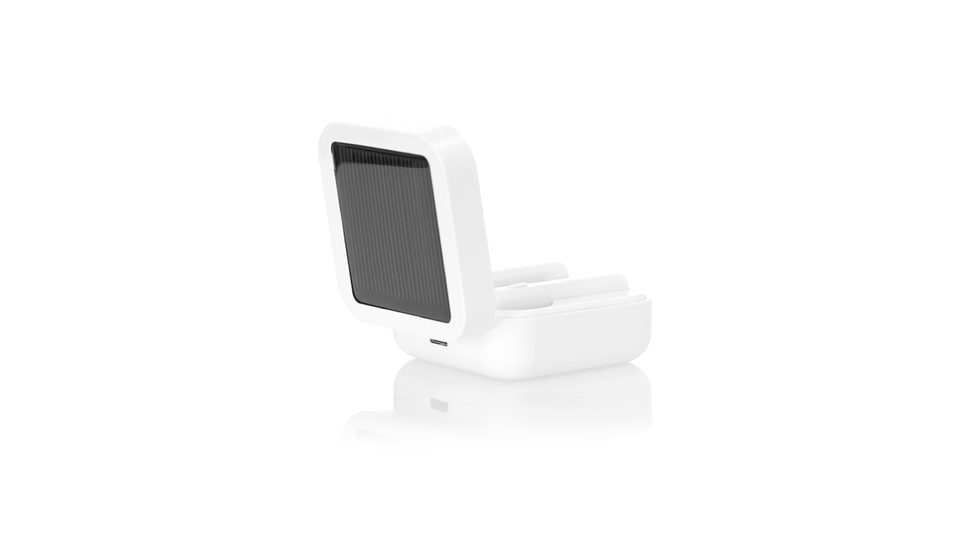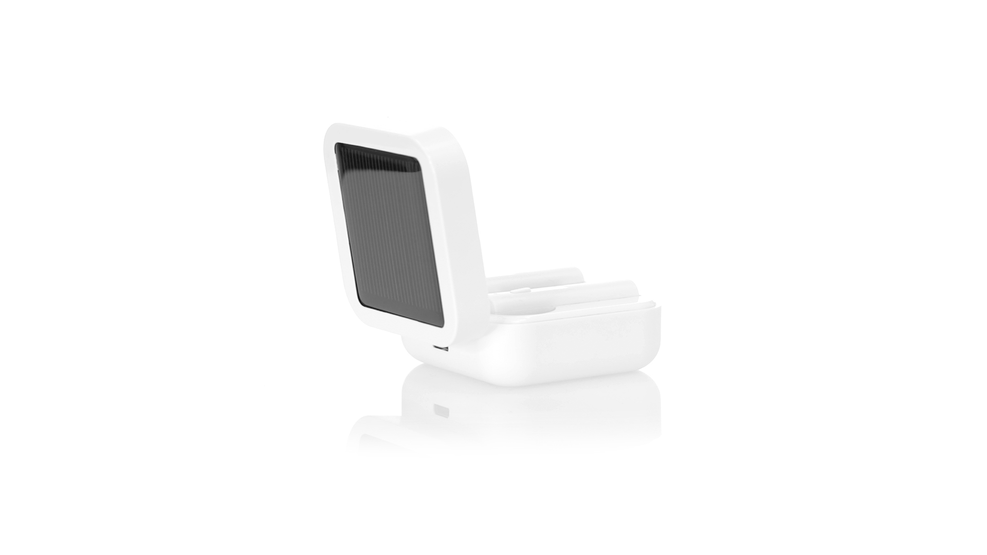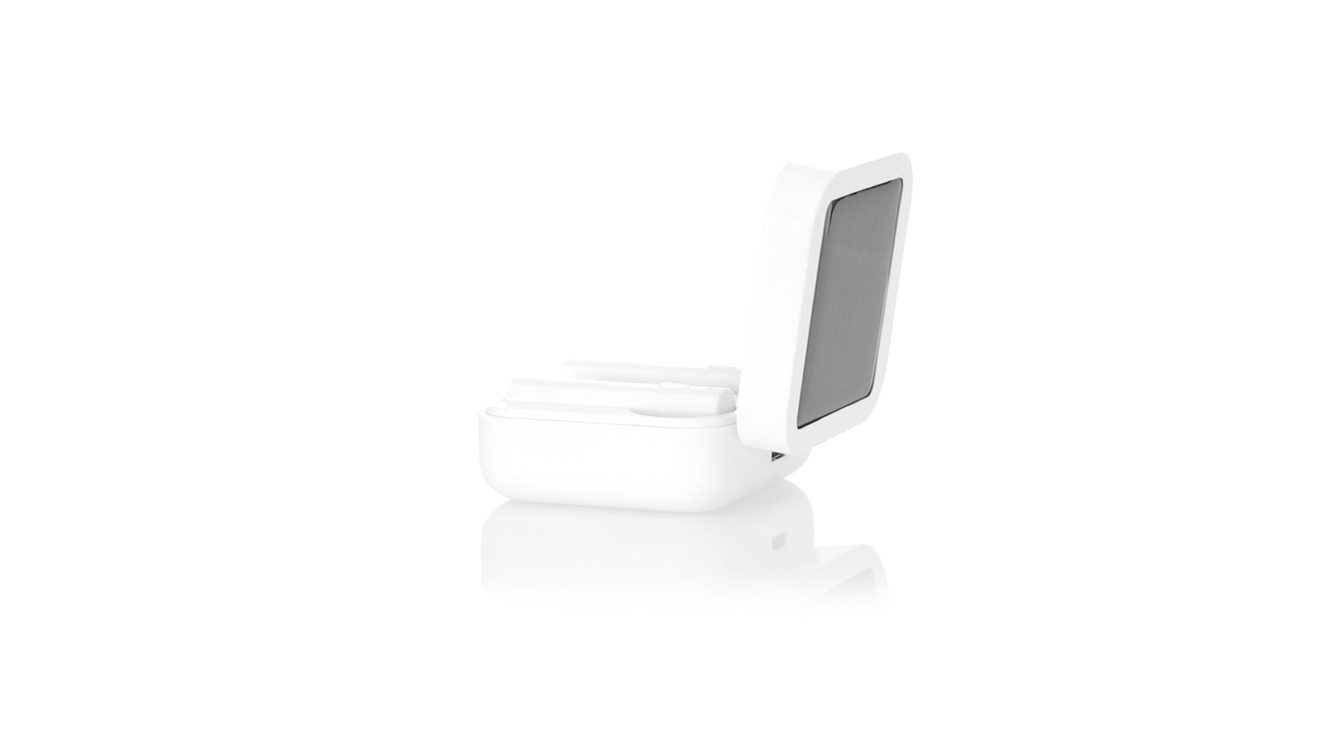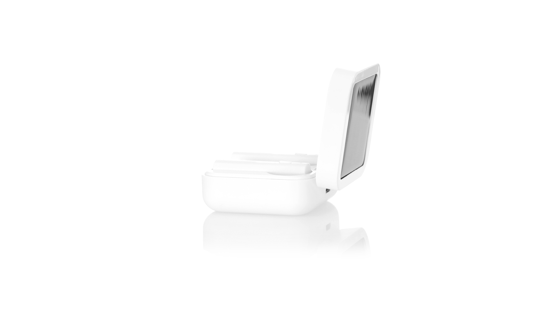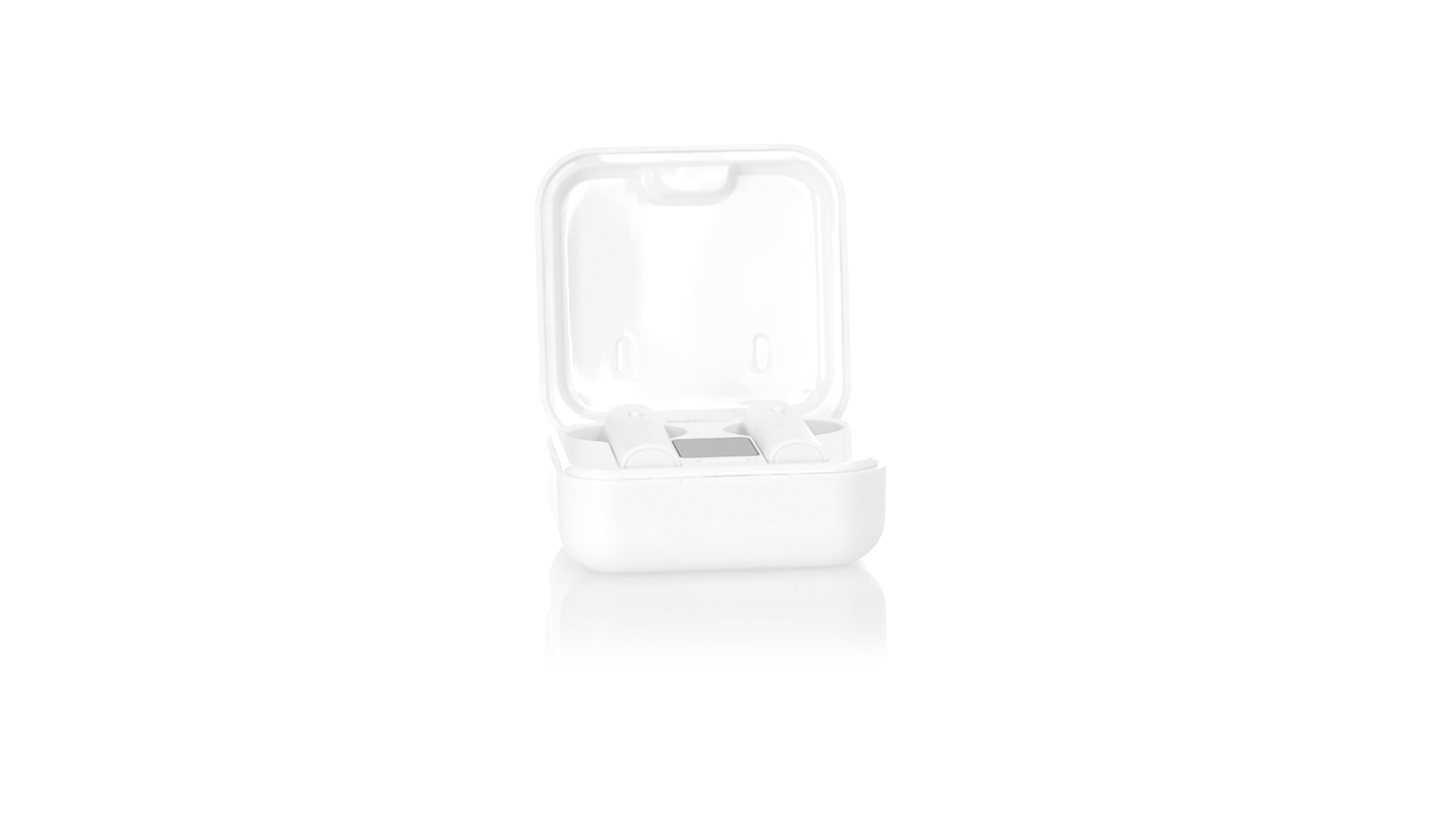 In-Ear-Kopfhörer in elegantem Weiss und mit Bluetooth® 5.0-Anschluss. Mit im Deckel integriertem Solarladepanel und internem LCD-Display mit Ladestatusanzeige. Ergonomisch gestaltet, mit integrierter Bedientaste an der Hörmuschel, mit passender Basis. Freisprechfunktion und wiederaufladbar mit Solarenergie oder Micro-USB-Kabel -im Lieferumfang-. Präsentiert in einem hochwertigen, mit Scharnieren zu öffnenden Einzeletui in einer attraktiven Designerbox, mit Bedienungsanleitung in Englisch und Spanisch.
