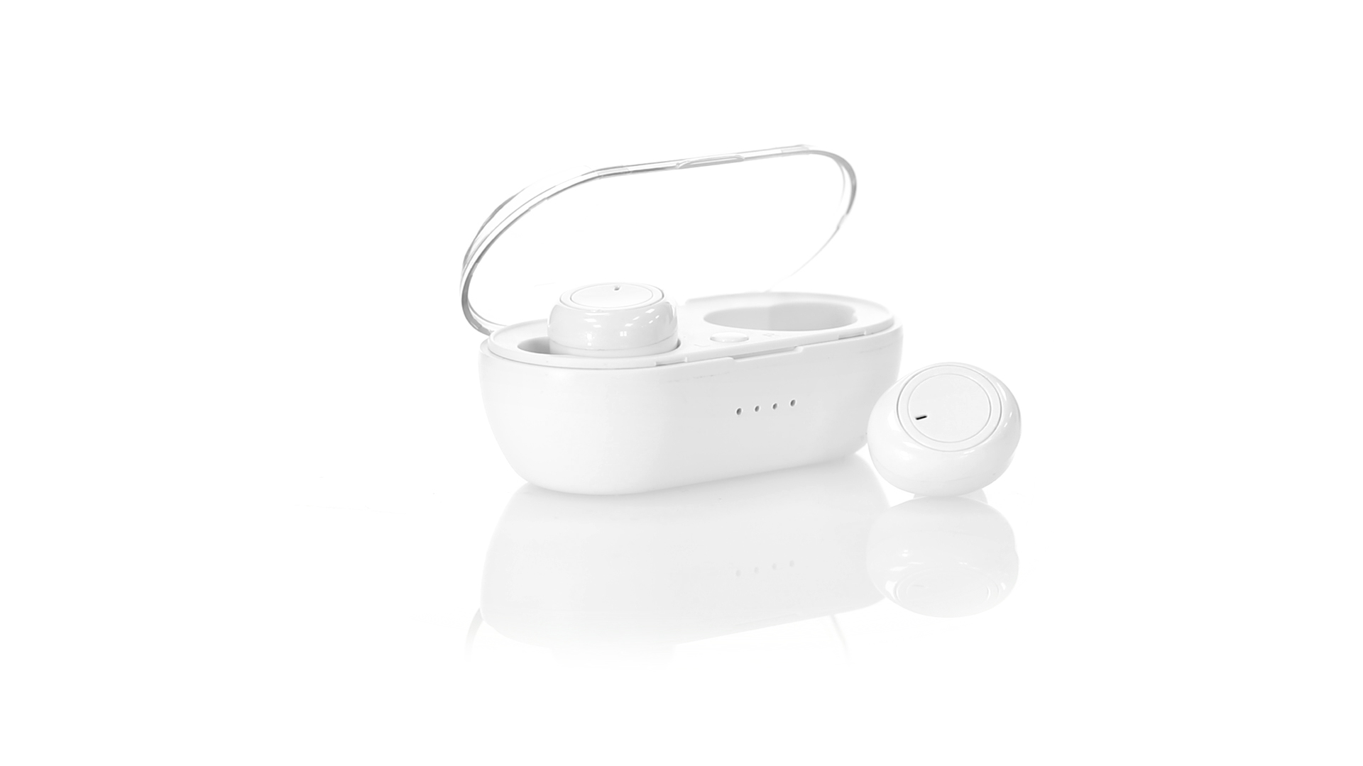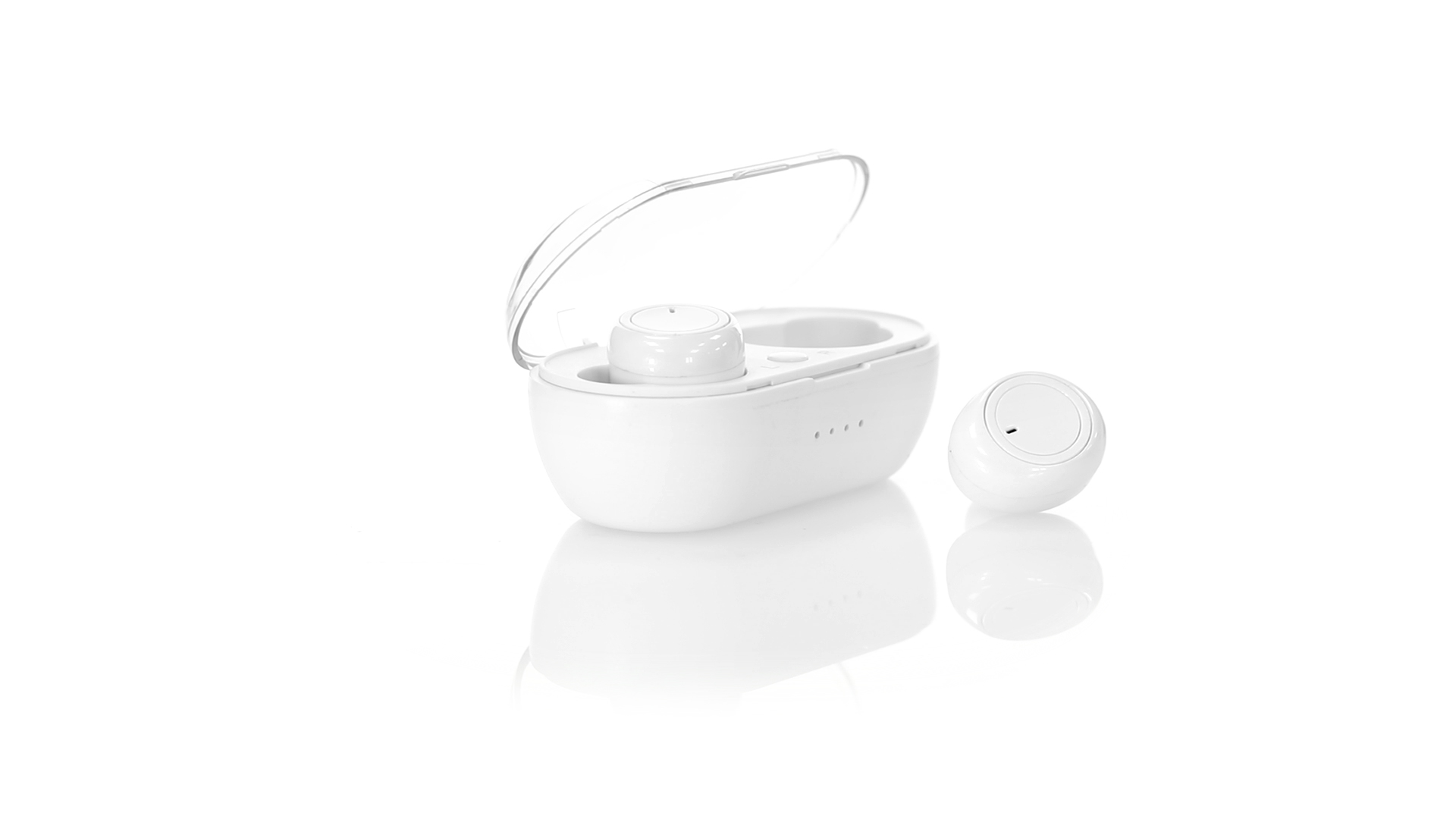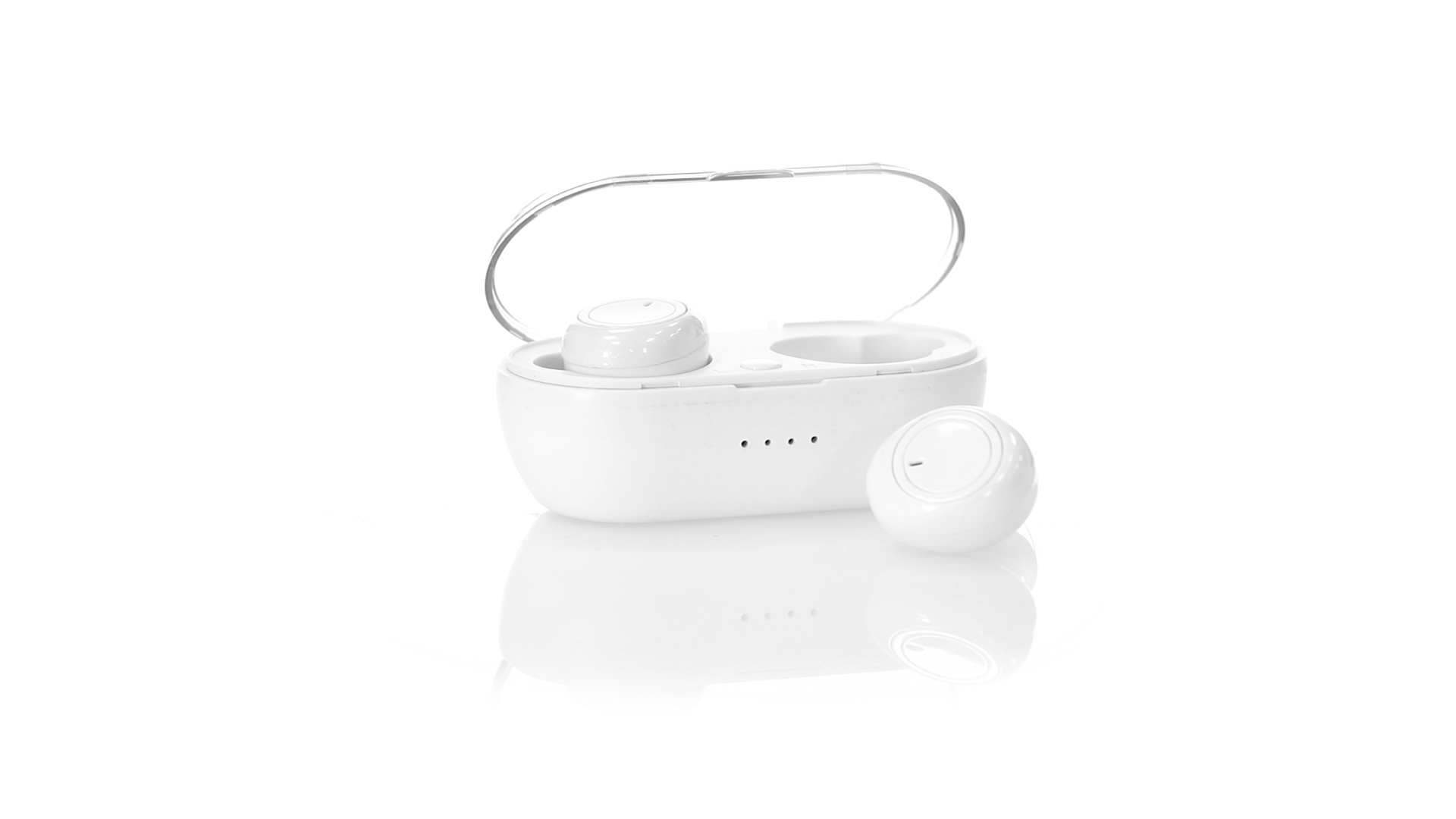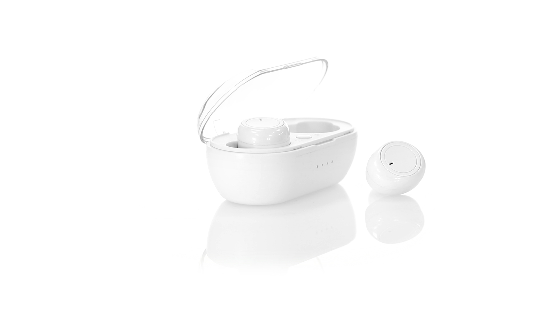Kopfhörer mit Bluetooth® 5.0-Verbindung und minimalistischem Design in eleganter weisser Farbe. Ergonomisch gestaltet, inklusive integriertem Bedienfeld im Ohrhörer, mit passender Hülle/Ladestation. Freisprechfunktion und wiederaufladbar – Micro-USB-Kabel im Lieferumfang enthalten. Präsentiert in einem individuellen Deluxe-Etui mit aufklappbarem, transparentem Deckel. Präsentiert in einer attraktiven Designbox.