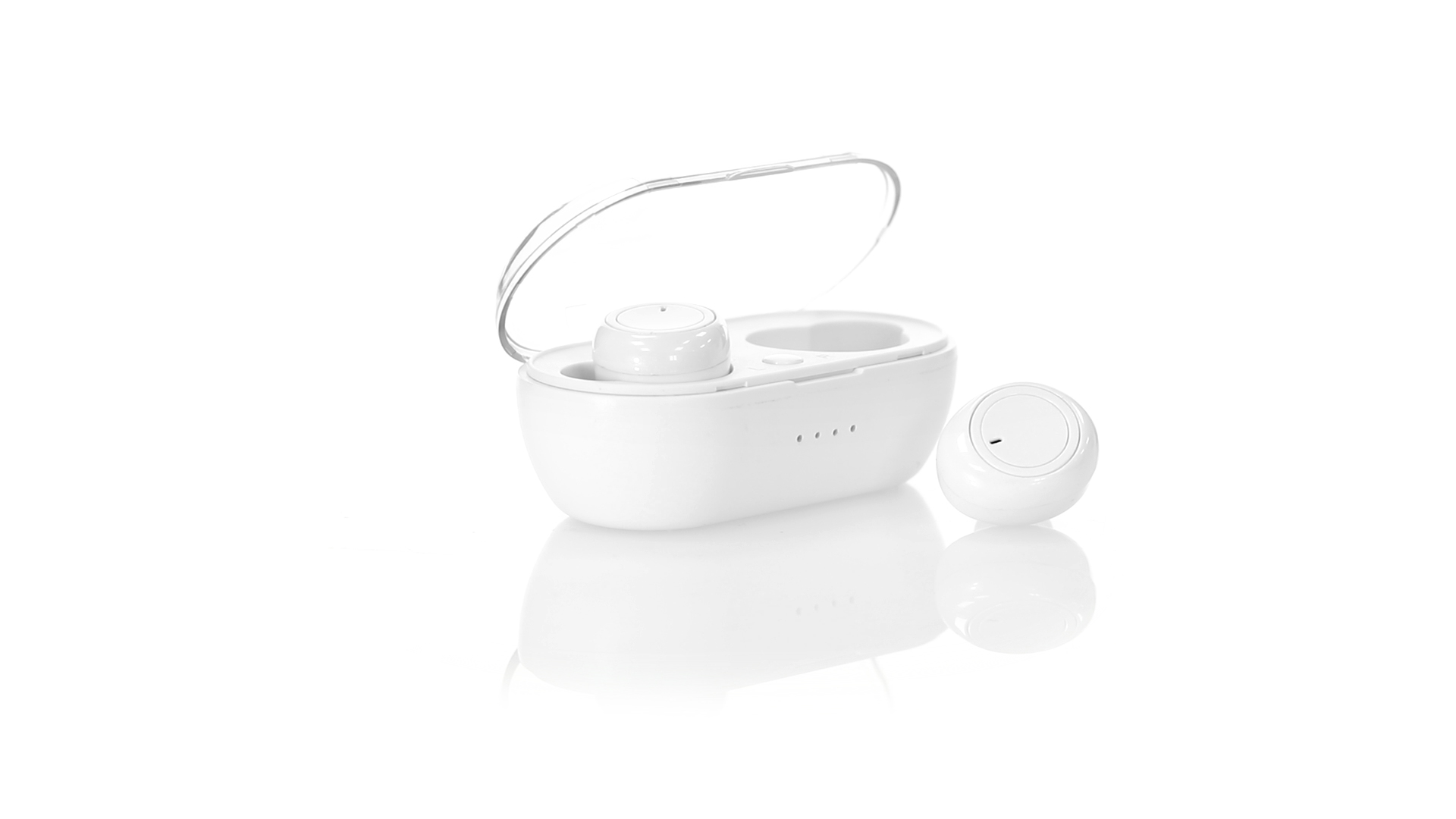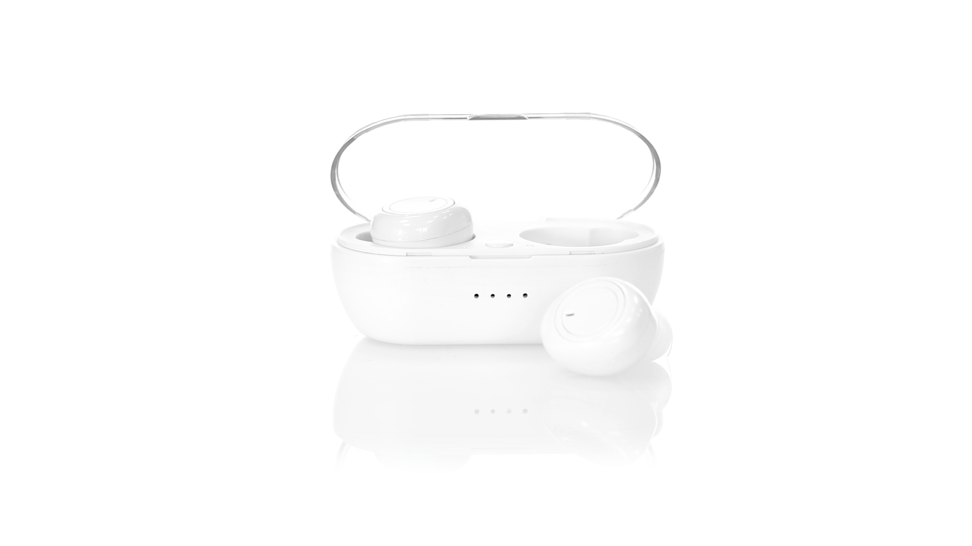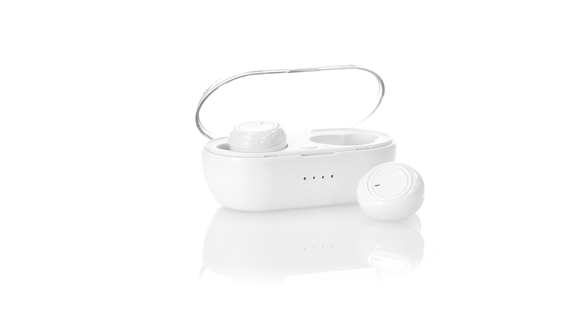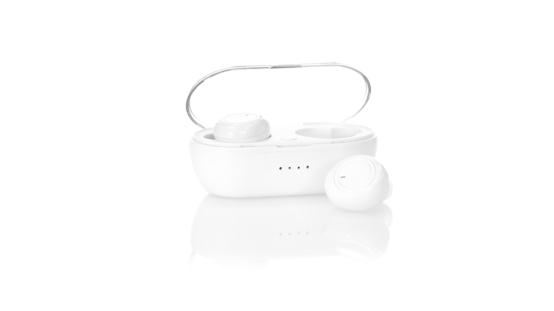 Kopfhörer mit Bluetooth® 5.0-Verbindung und minimalistischem Design in eleganter weisser Farbe. Ergonomisch gestaltet, inklusive integriertem Bedienfeld im Ohrhörer, mit passender Hülle/Ladestation. Freisprechfunktion und wiederaufladbar – Micro-USB-Kabel im Lieferumfang enthalten. Präsentiert in einem individuellen Deluxe-Etui mit aufklappbarem, transparentem Deckel. Präsentiert in einer attraktiven Designbox.