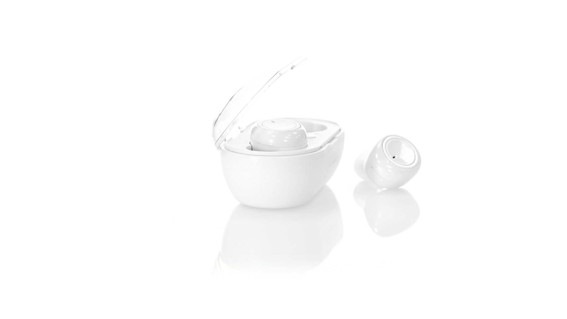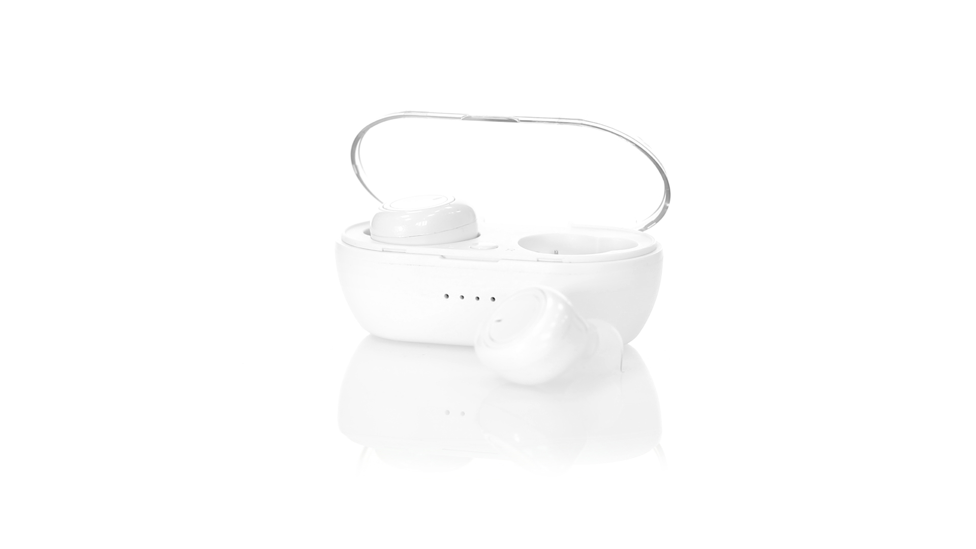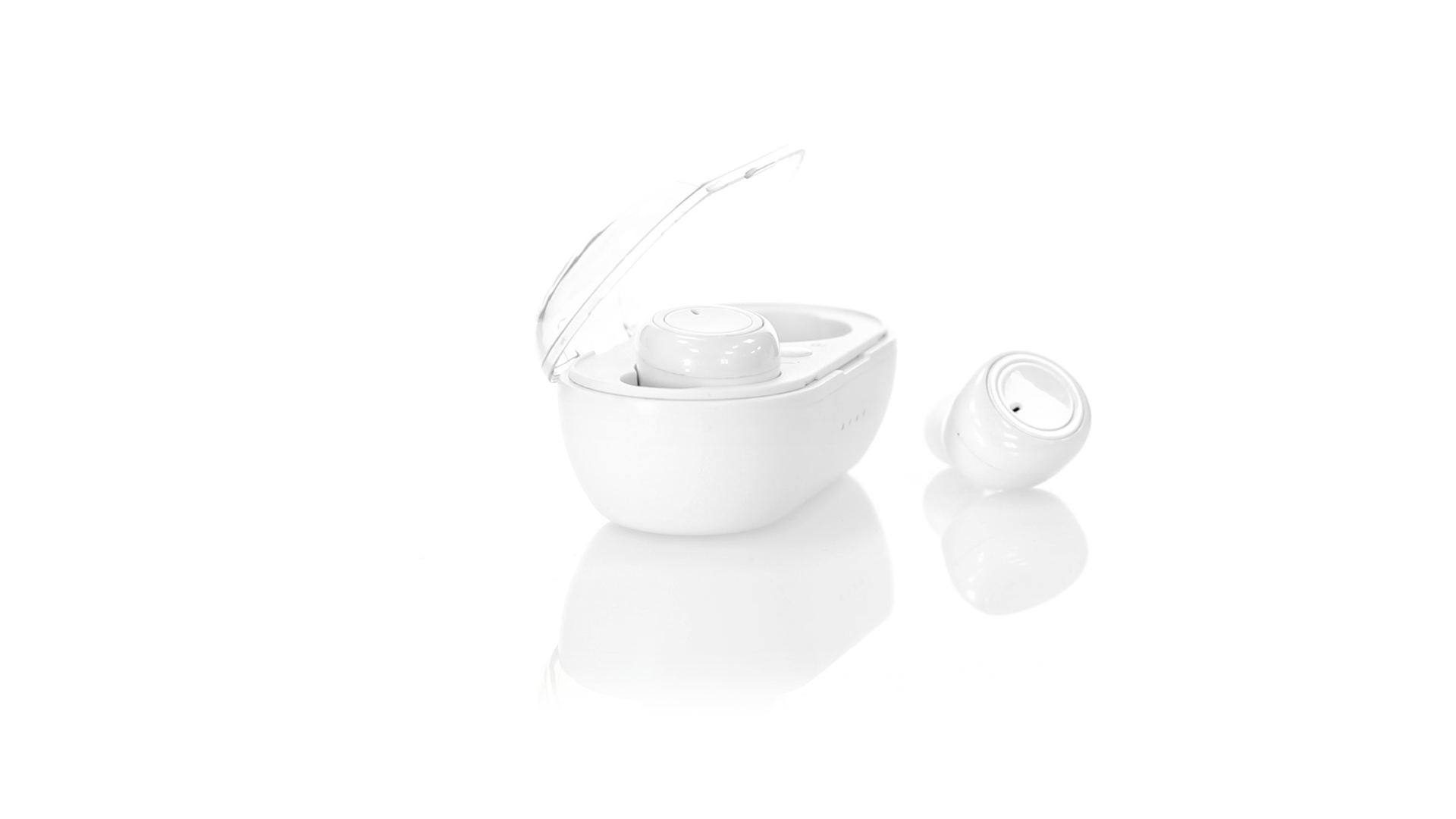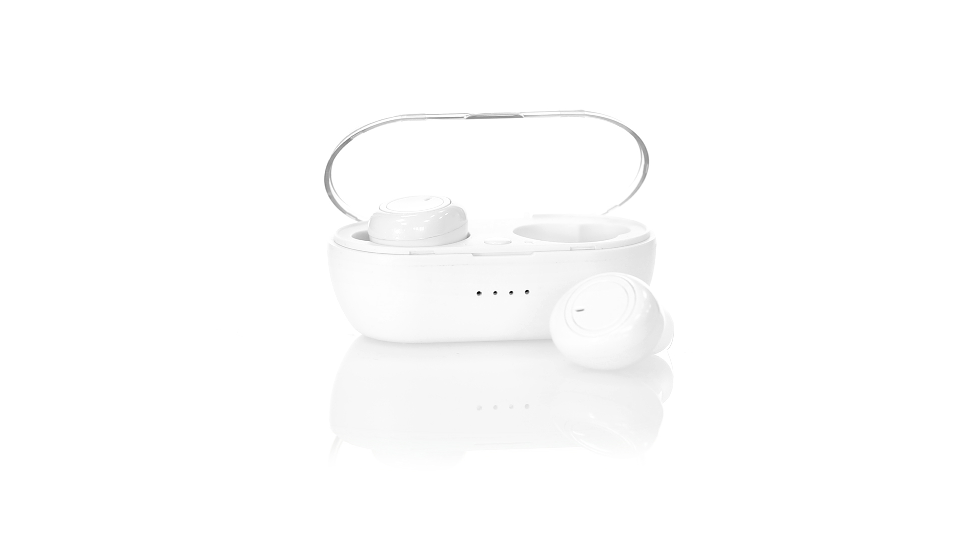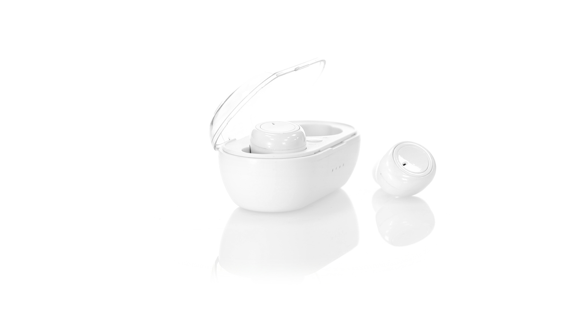 Kopfhörer mit Bluetooth® 5.0-Verbindung und minimalistischem Design in eleganter weisser Farbe. Ergonomisch gestaltet, inklusive integriertem Bedienfeld im Ohrhörer, mit passender Hülle/Ladestation. Freisprechfunktion und wiederaufladbar – Micro-USB-Kabel im Lieferumfang enthalten. Präsentiert in einem individuellen Deluxe-Etui mit aufklappbarem, transparentem Deckel. Präsentiert in einer attraktiven Designbox.