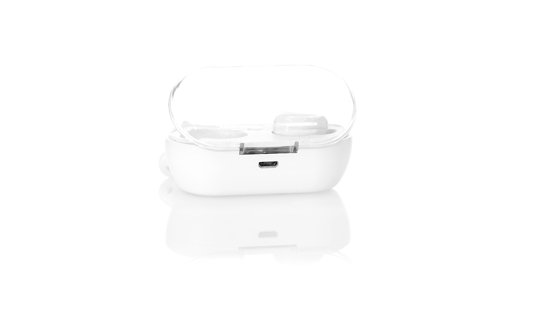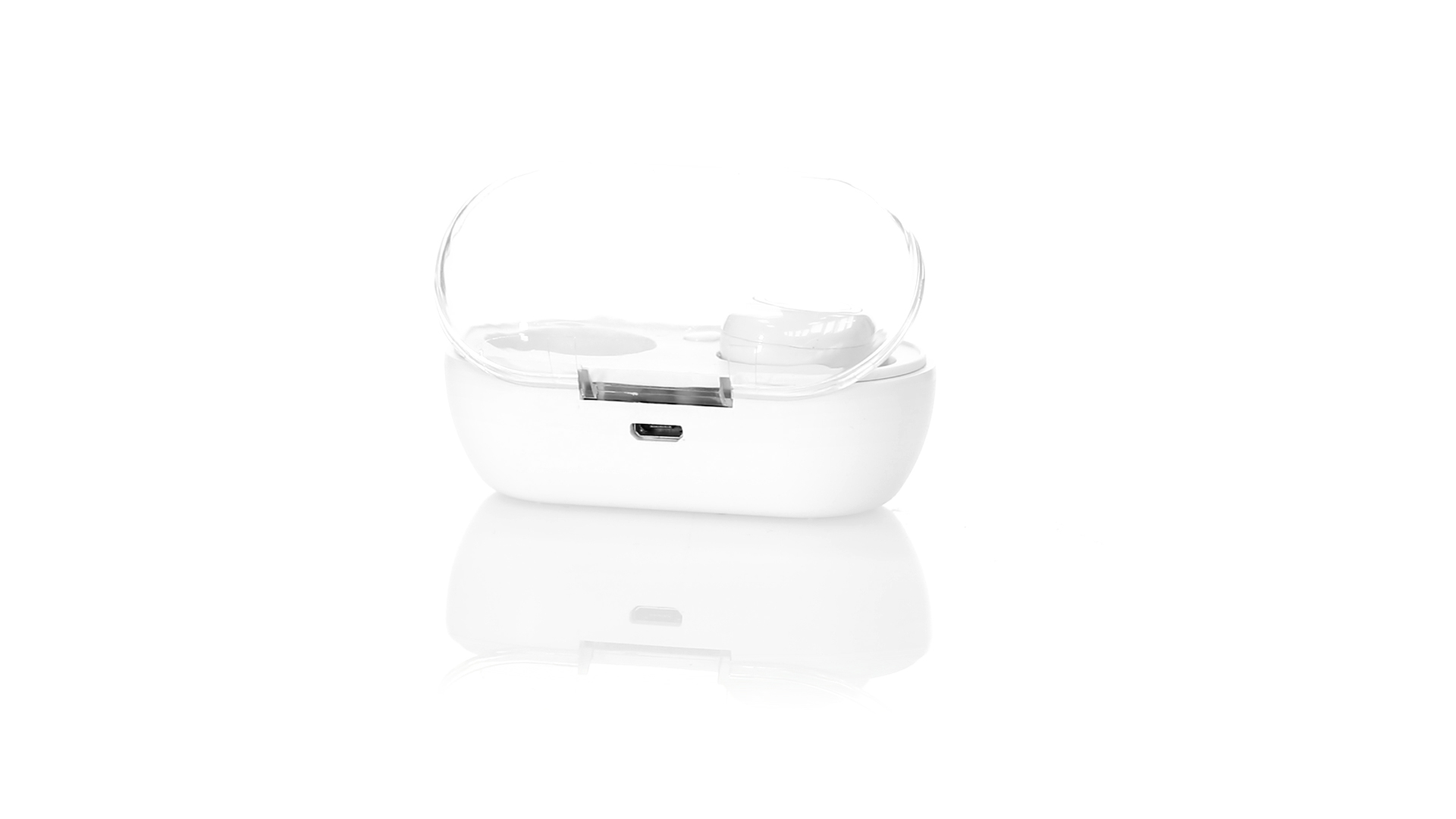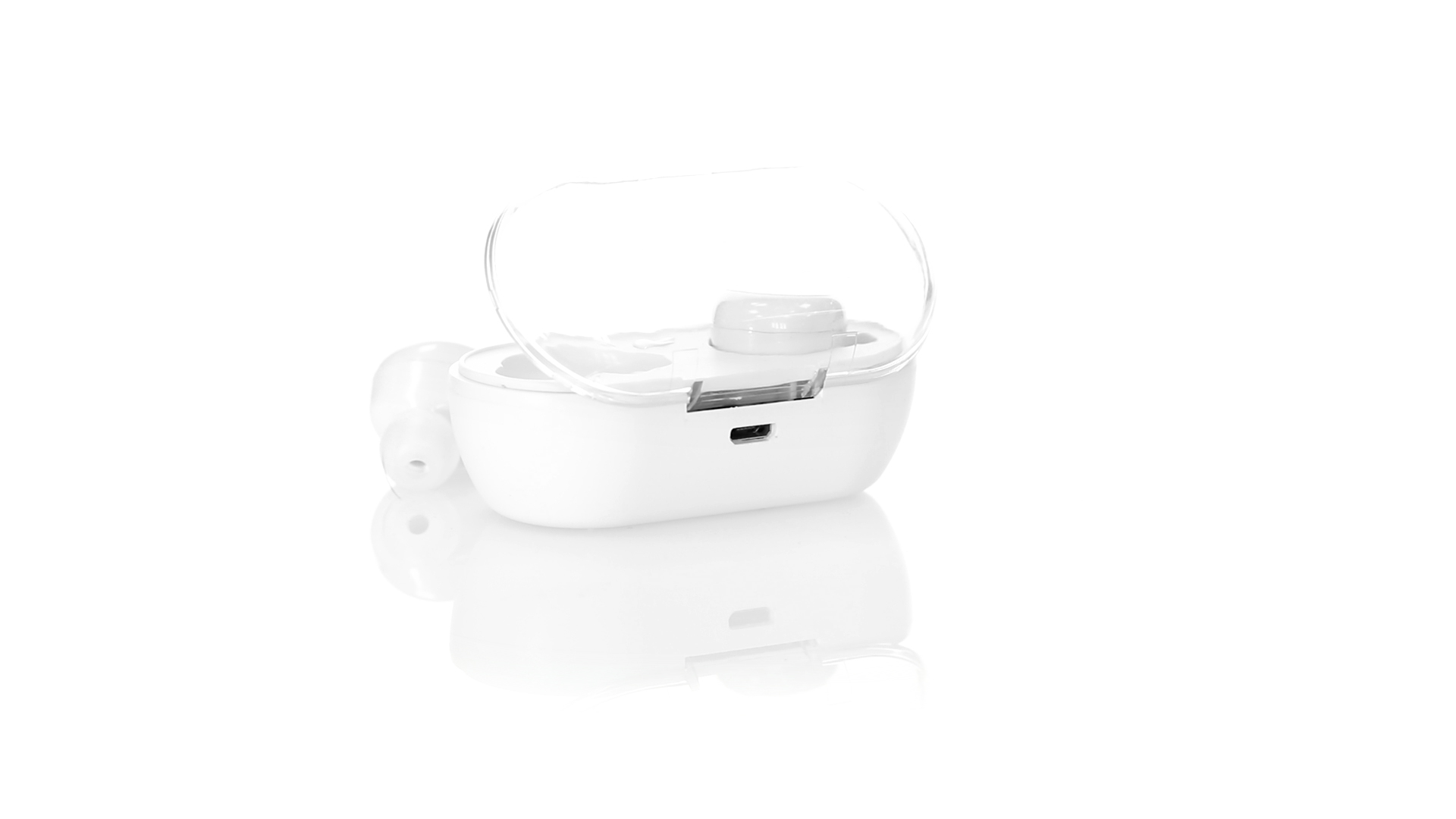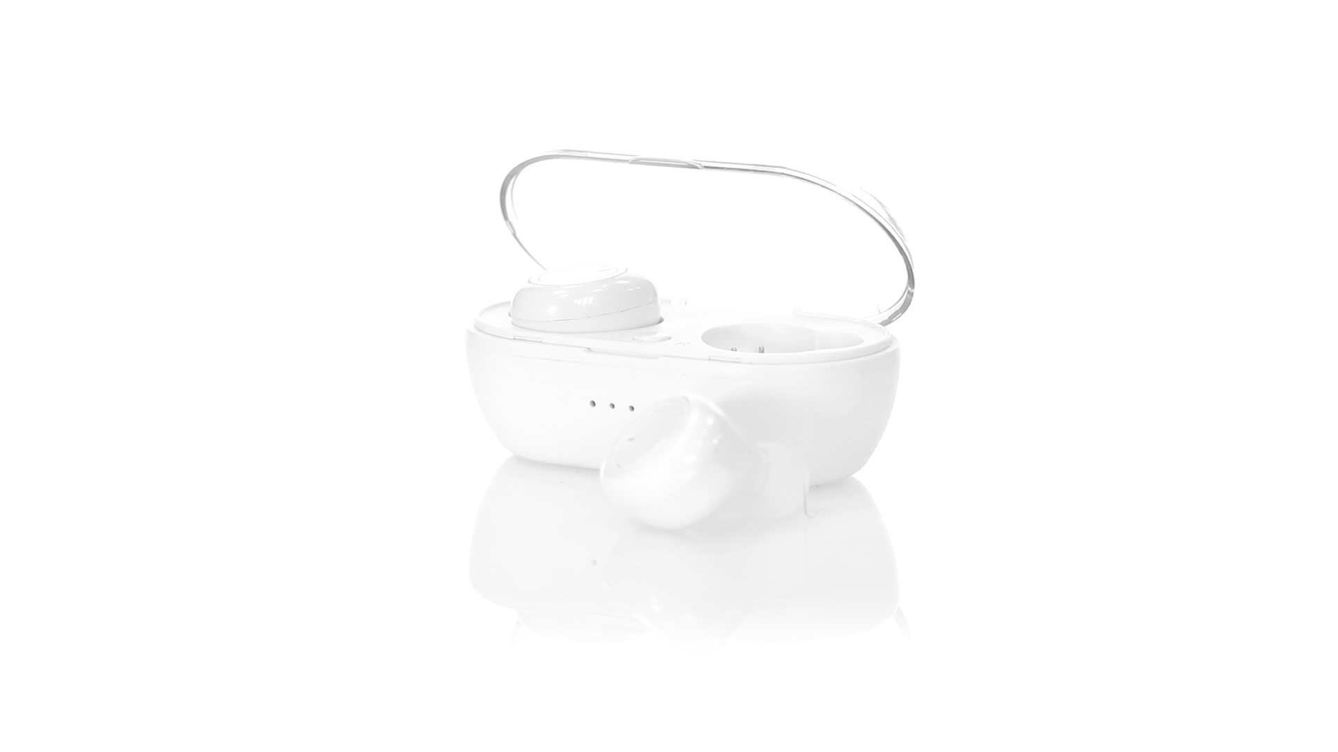 Kopfhörer mit Bluetooth® 5.0-Verbindung und minimalistischem Design in eleganter weisser Farbe. Ergonomisch gestaltet, inklusive integriertem Bedienfeld im Ohrhörer, mit passender Hülle/Ladestation. Freisprechfunktion und wiederaufladbar – Micro-USB-Kabel im Lieferumfang enthalten. Präsentiert in einem individuellen Deluxe-Etui mit aufklappbarem, transparentem Deckel. Präsentiert in einer attraktiven Designbox.