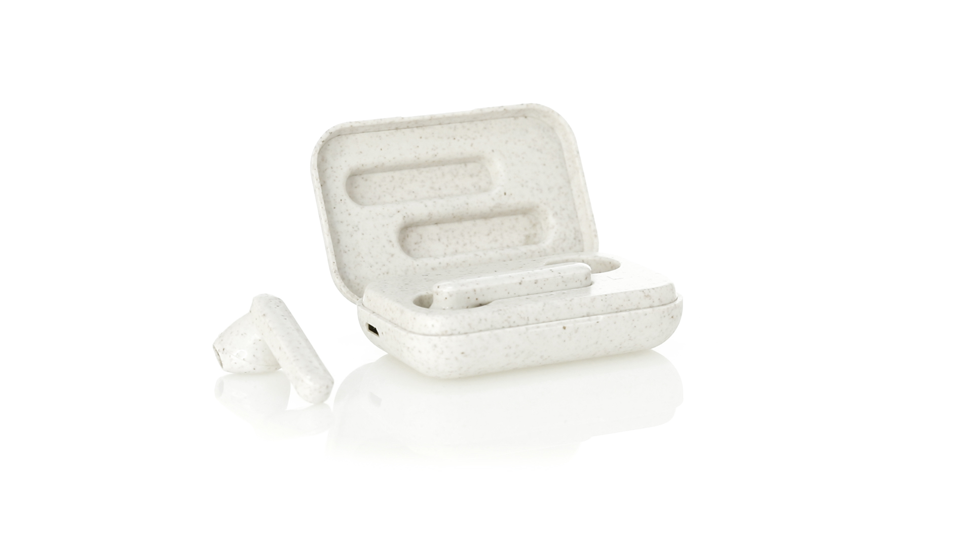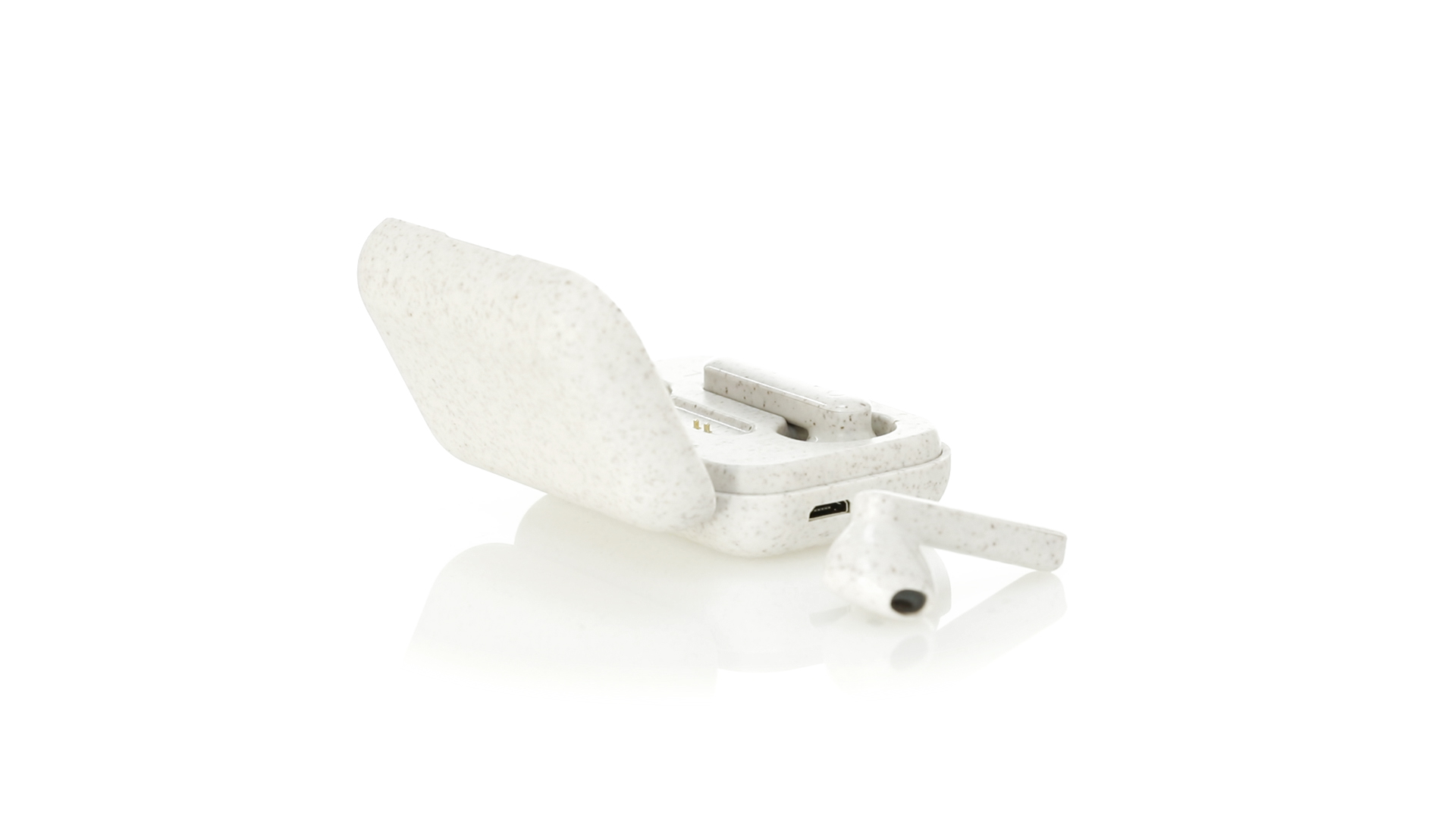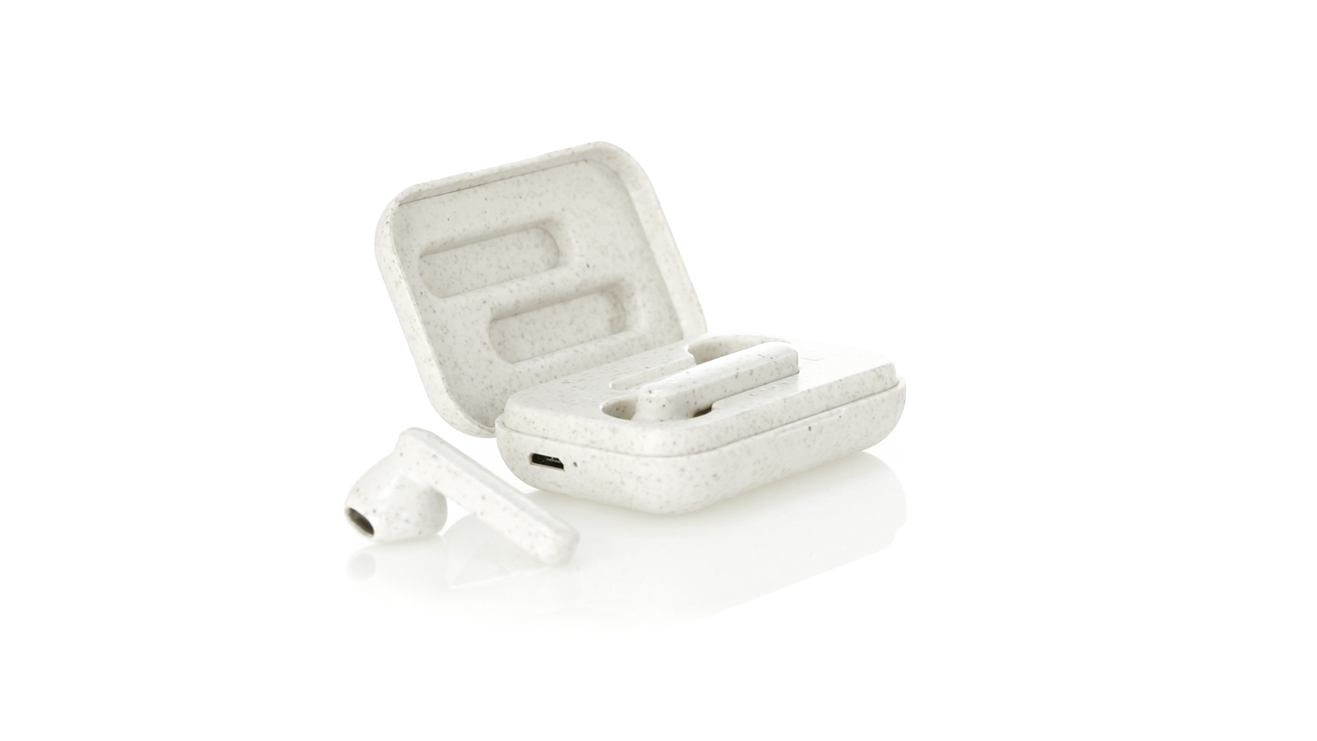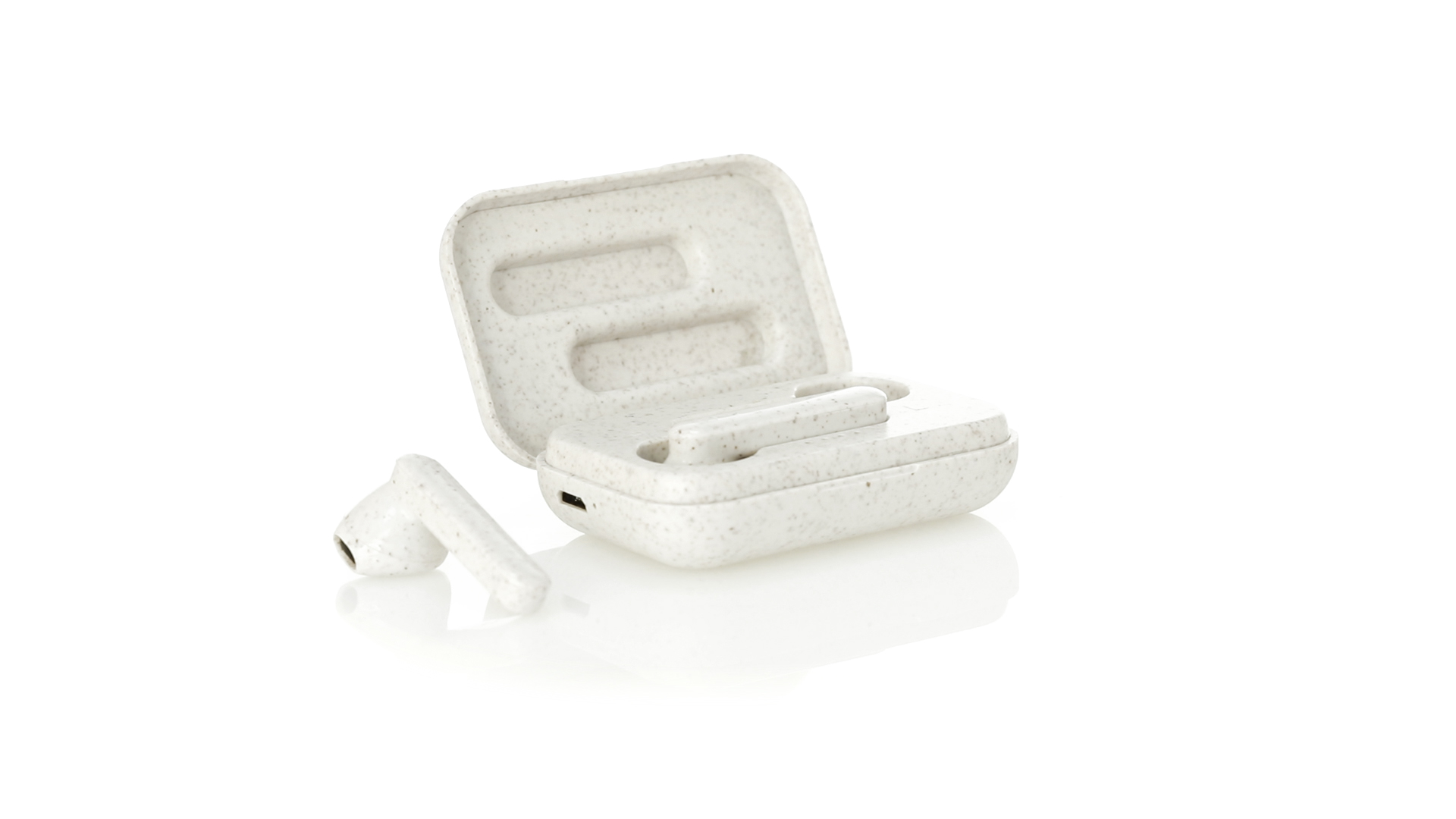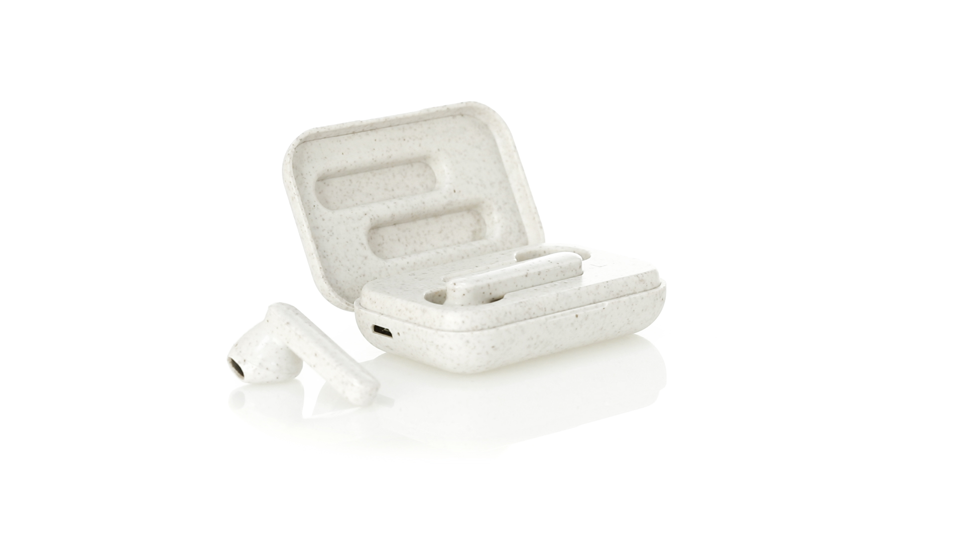 Natureline - Ohrhörer mit Bluetooth® 5.0-Verbindung aus Weizenstroh, um die Verwendung natürlicher Rohstoffe zu fördern und Schadstoffemissionen zu reduzieren. Ergonomisches Design, einschliesslich einer integrierten, berührungsempfindlichen Steuertaste im Ohrhörer, mit farblich angepasster Ladestation und LED-Licht für den Ladestatus. Freisprechfunktion und wiederaufladbar - Mikro-USB-Kabel im Lieferumfang enthalten -. Präsentiert in einem individuellen Deluxe-Etui mit Scharnierdeckel und in einer attraktiven, umweltfreundlichen Design-Box.