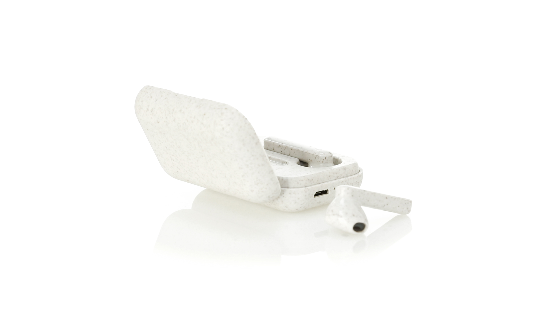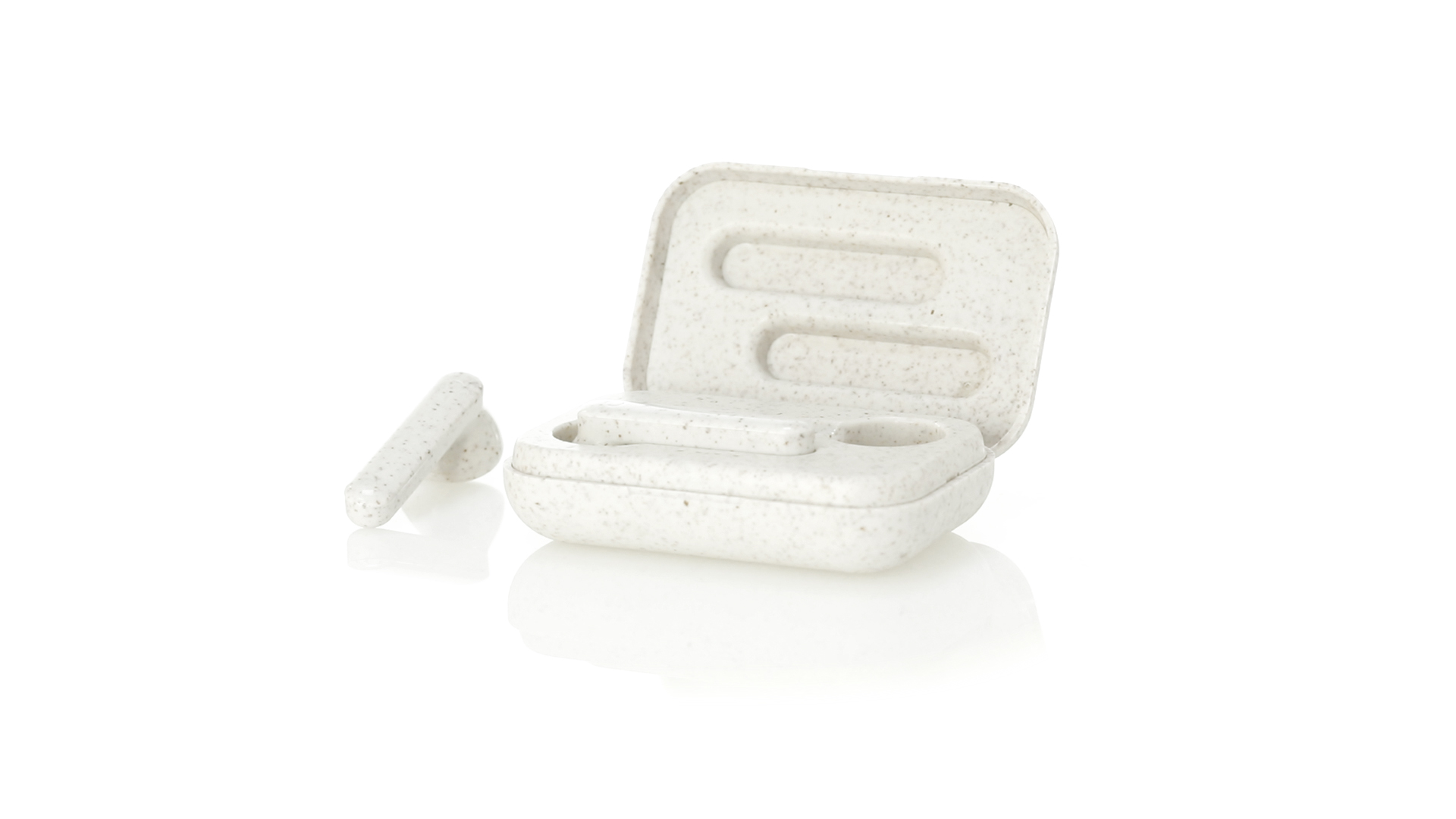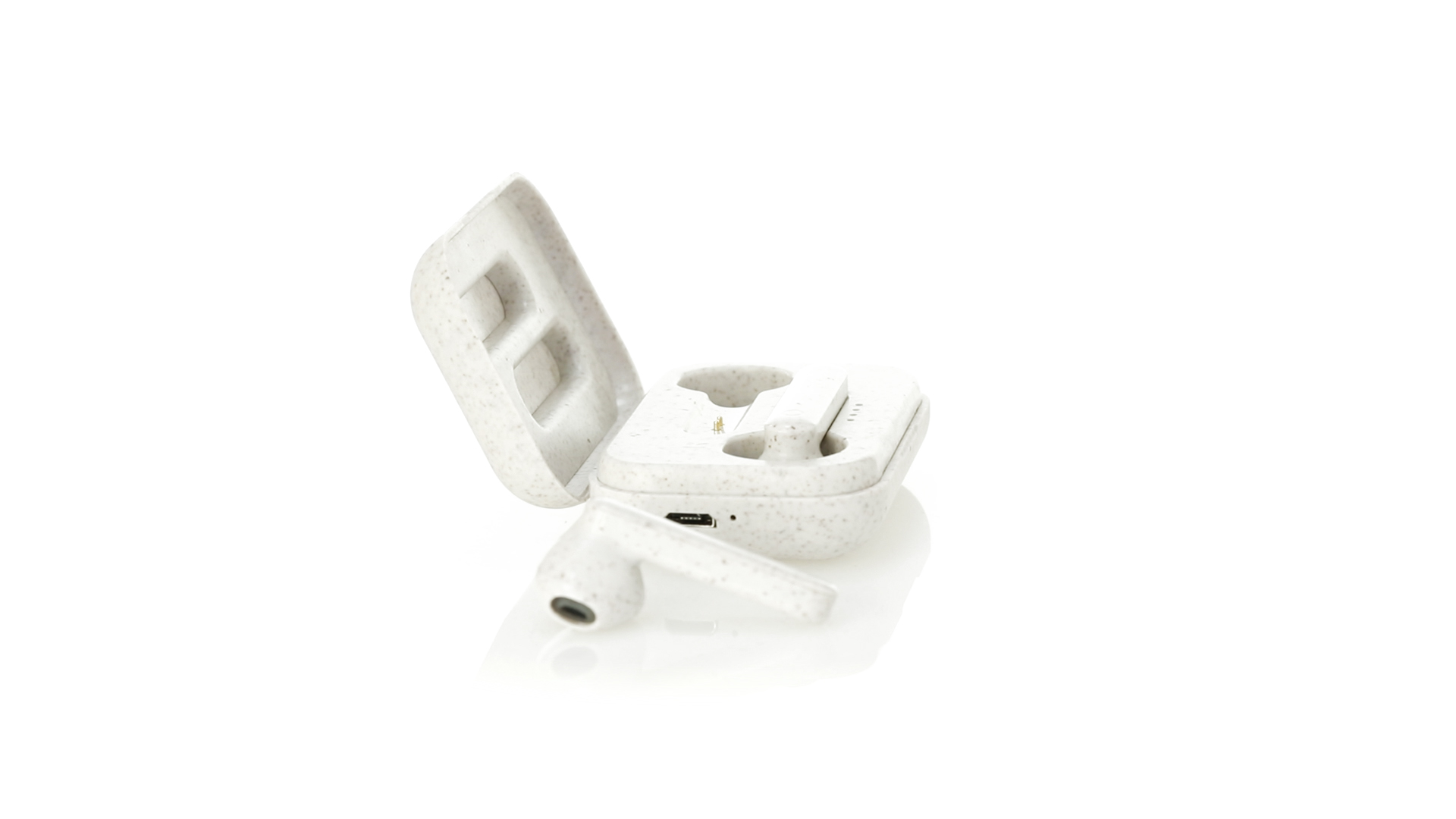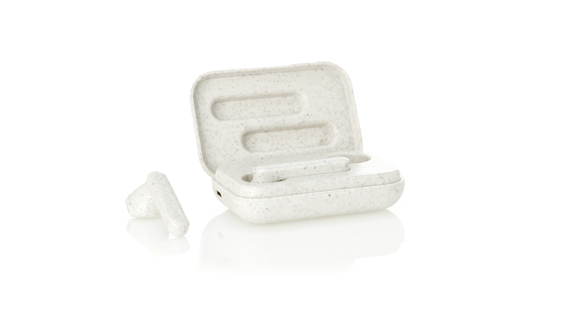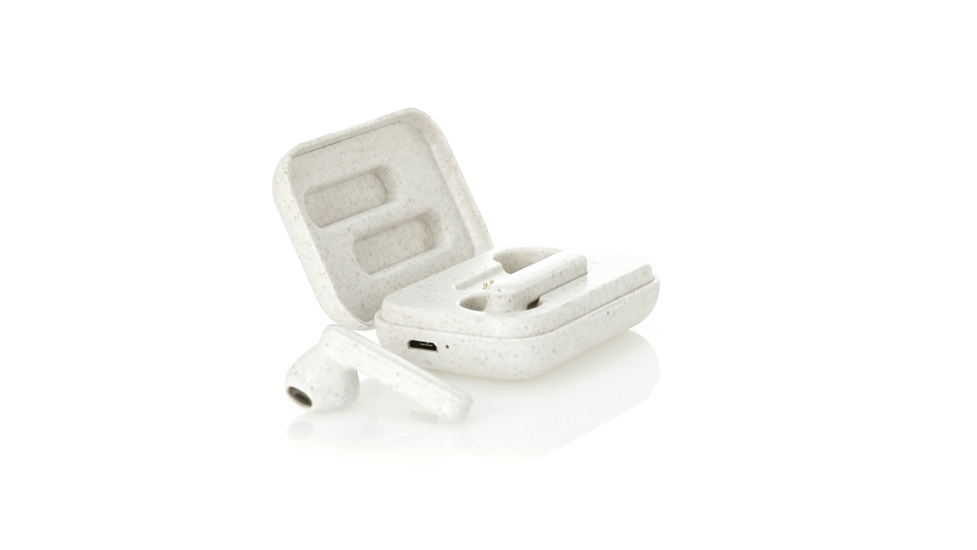 Natureline - Ohrhörer mit Bluetooth® 5.0-Verbindung aus Weizenstroh, um die Verwendung natürlicher Rohstoffe zu fördern und Schadstoffemissionen zu reduzieren. Ergonomisches Design, einschliesslich einer integrierten, berührungsempfindlichen Steuertaste im Ohrhörer, mit farblich angepasster Ladestation und LED-Licht für den Ladestatus. Freisprechfunktion und wiederaufladbar - Mikro-USB-Kabel im Lieferumfang enthalten -. Präsentiert in einem individuellen Deluxe-Etui mit Scharnierdeckel und in einer attraktiven, umweltfreundlichen Design-Box.
