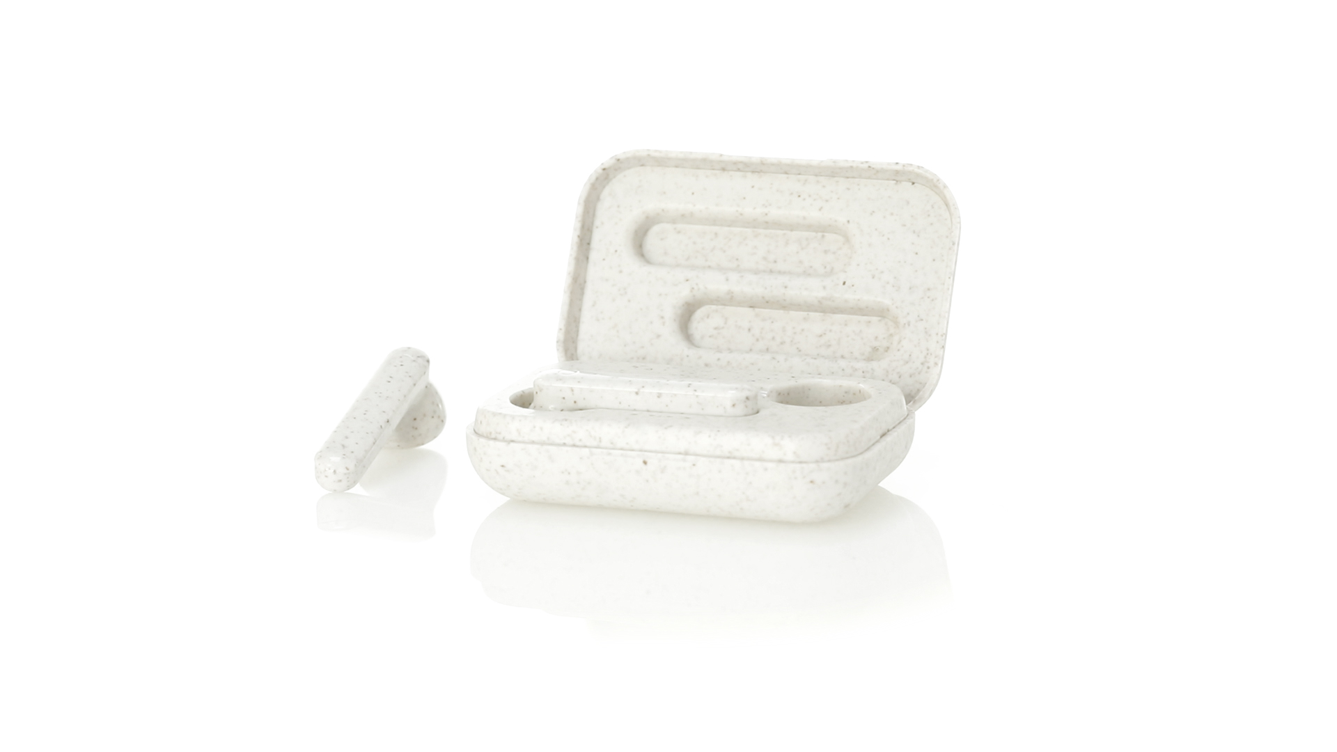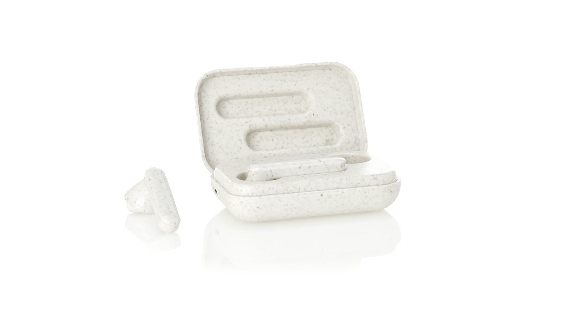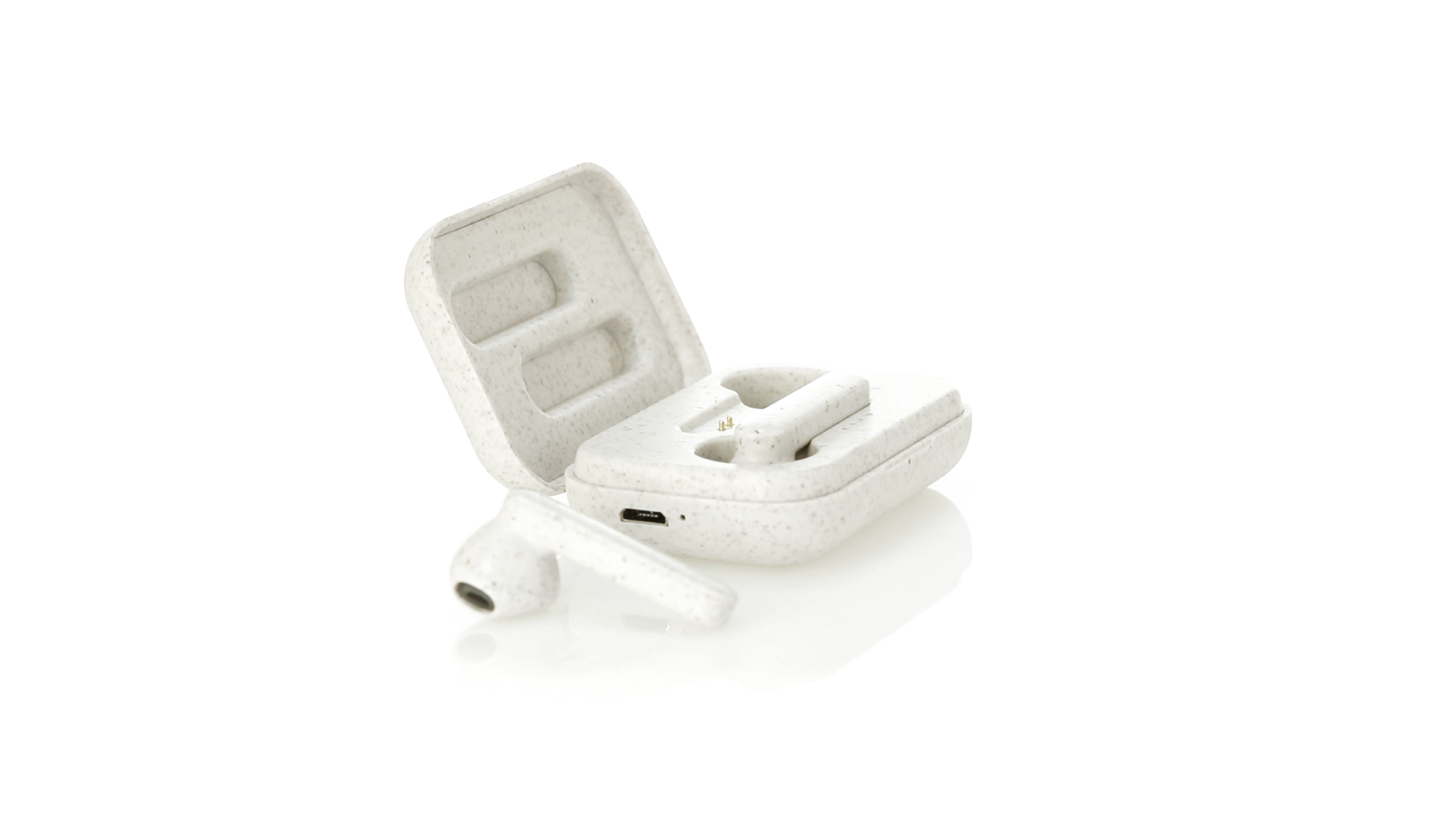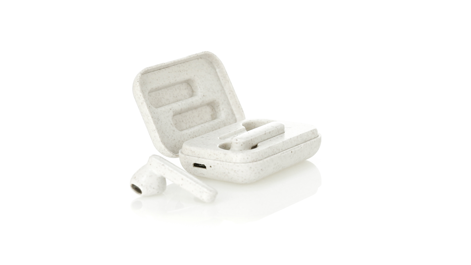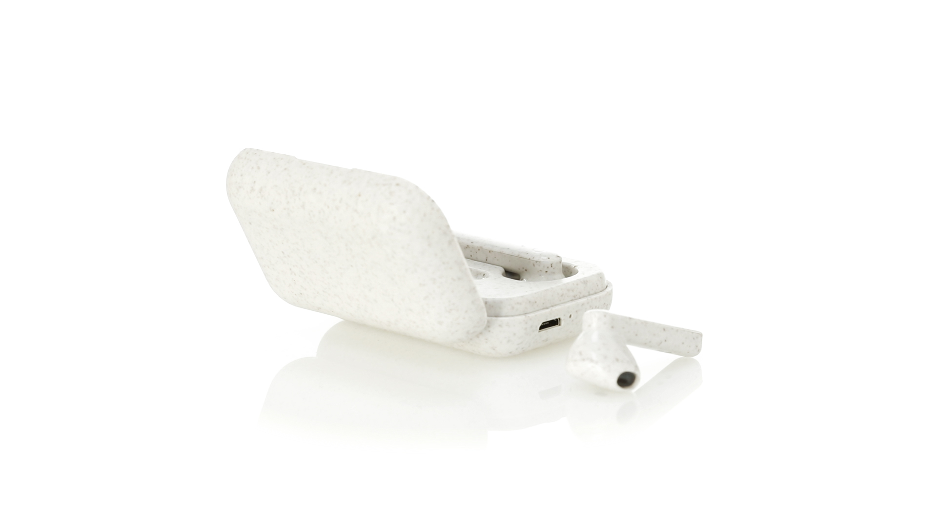 Natureline - Ohrhörer mit Bluetooth® 5.0-Verbindung aus Weizenstroh, um die Verwendung natürlicher Rohstoffe zu fördern und Schadstoffemissionen zu reduzieren. Ergonomisches Design, einschliesslich einer integrierten, berührungsempfindlichen Steuertaste im Ohrhörer, mit farblich angepasster Ladestation und LED-Licht für den Ladestatus. Freisprechfunktion und wiederaufladbar - Mikro-USB-Kabel im Lieferumfang enthalten -. Präsentiert in einem individuellen Deluxe-Etui mit Scharnierdeckel und in einer attraktiven, umweltfreundlichen Design-Box.