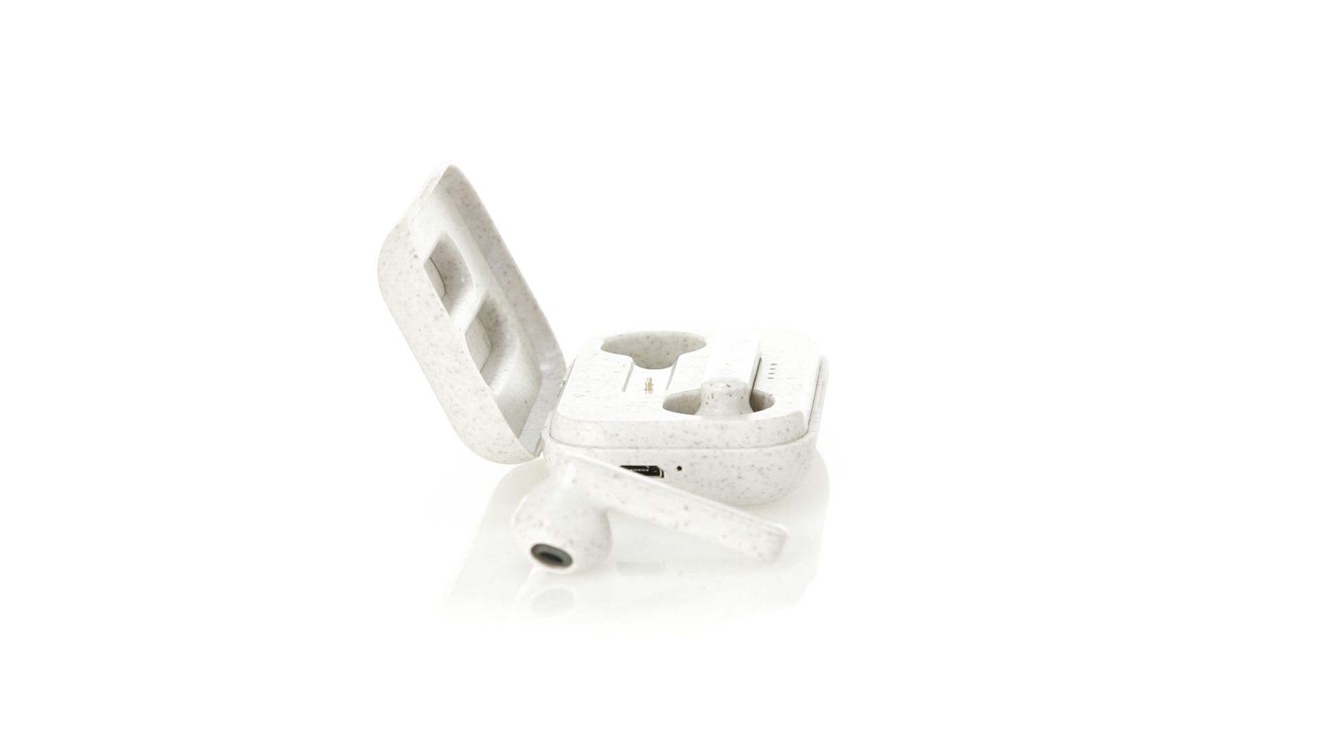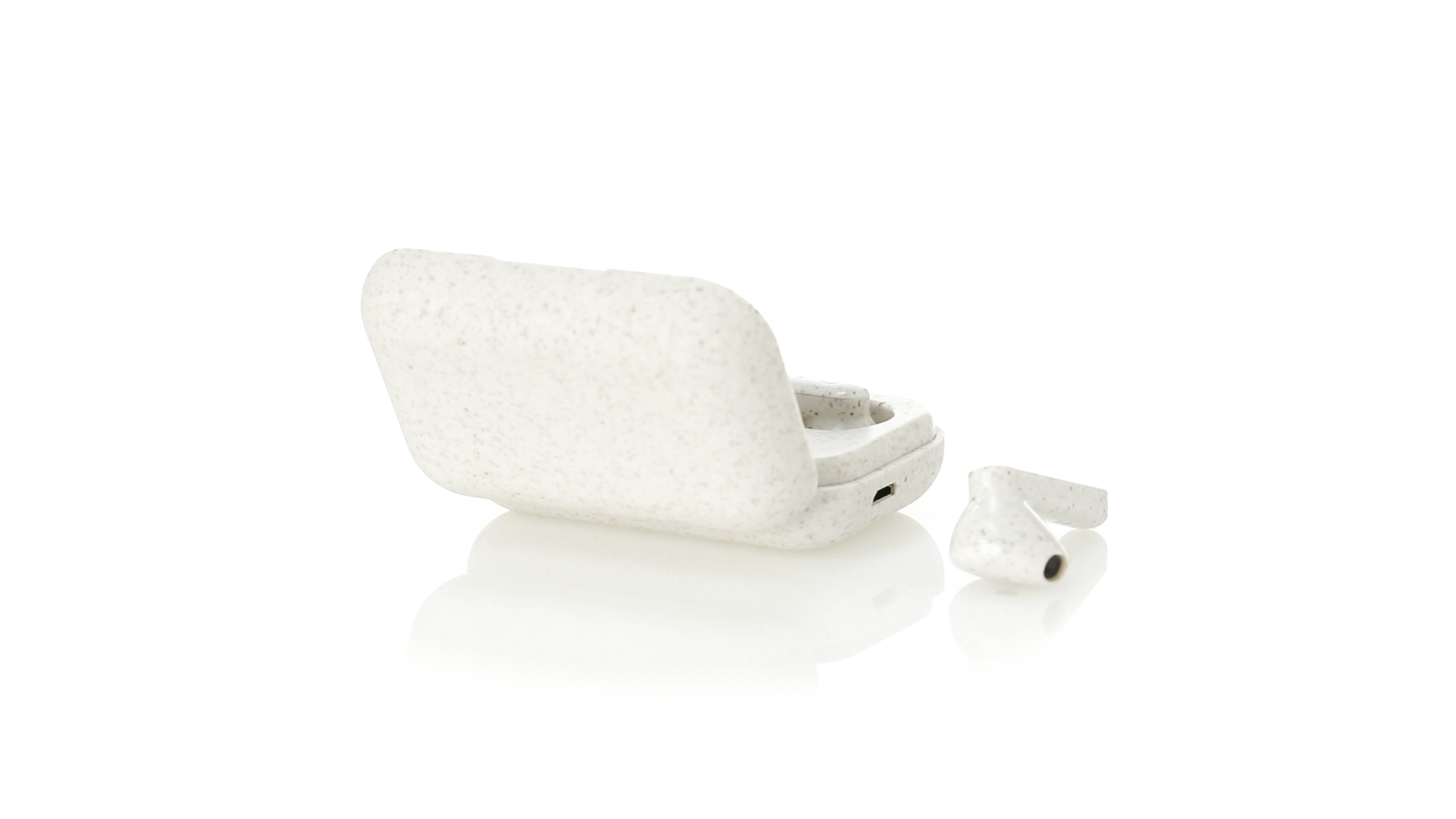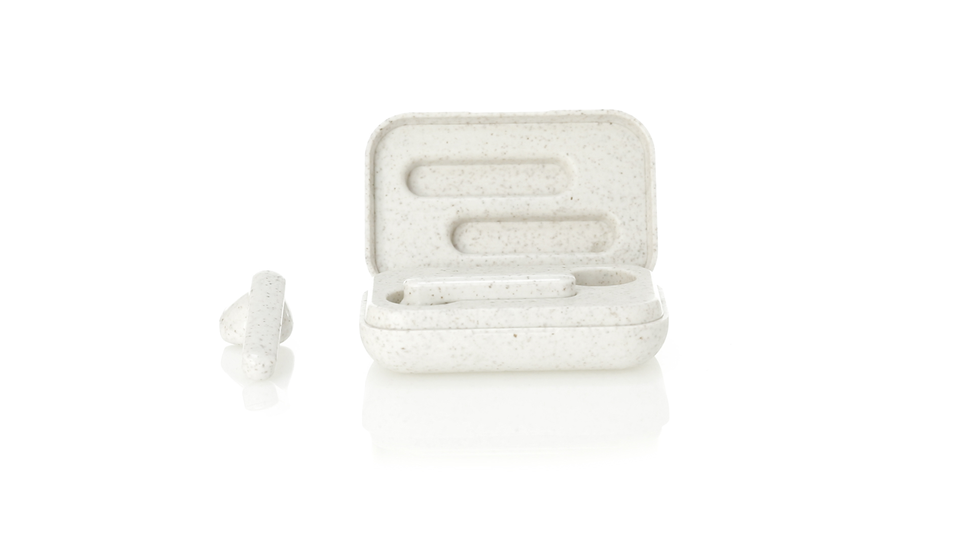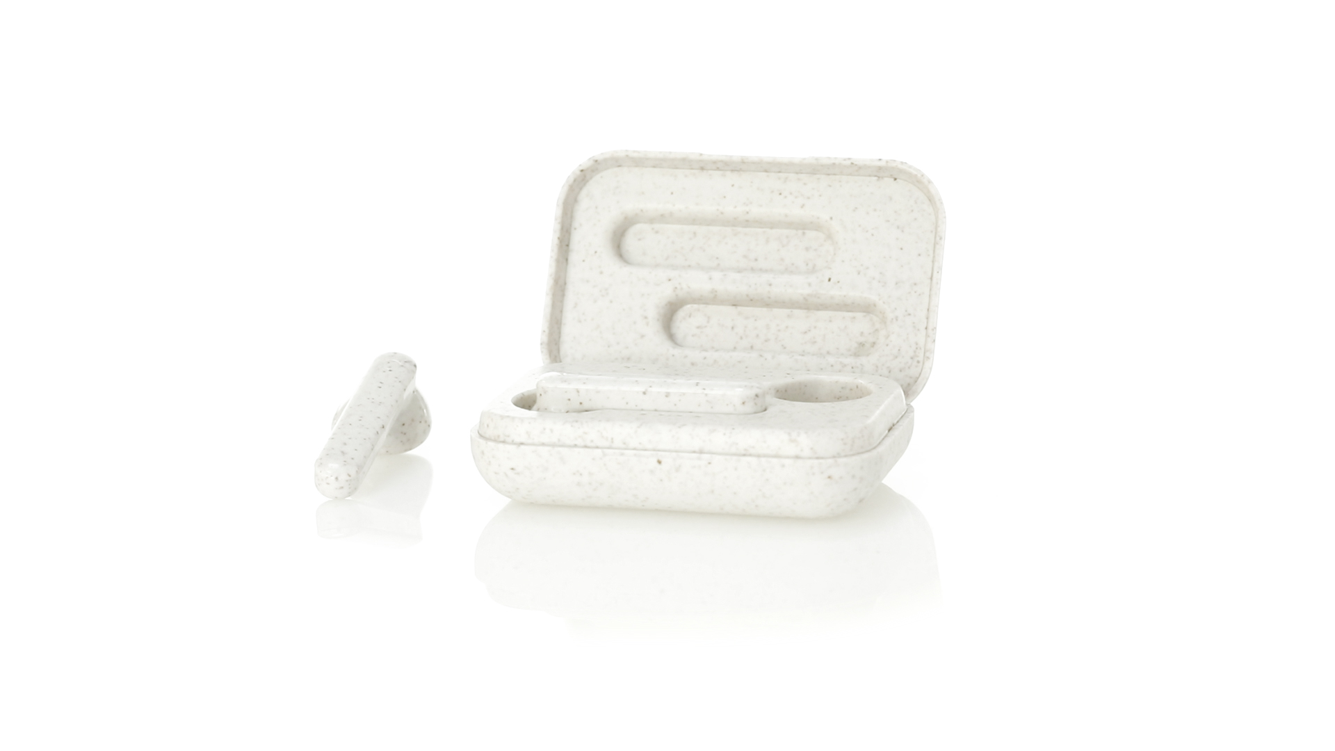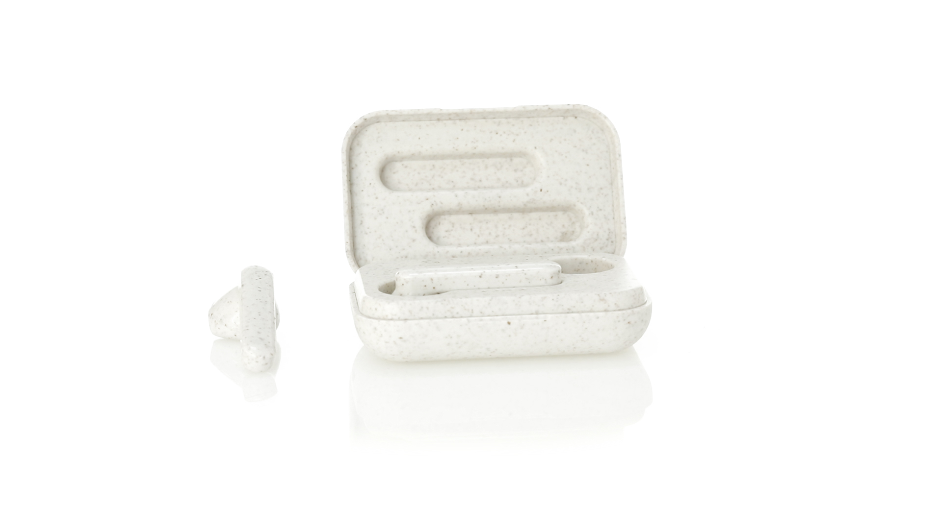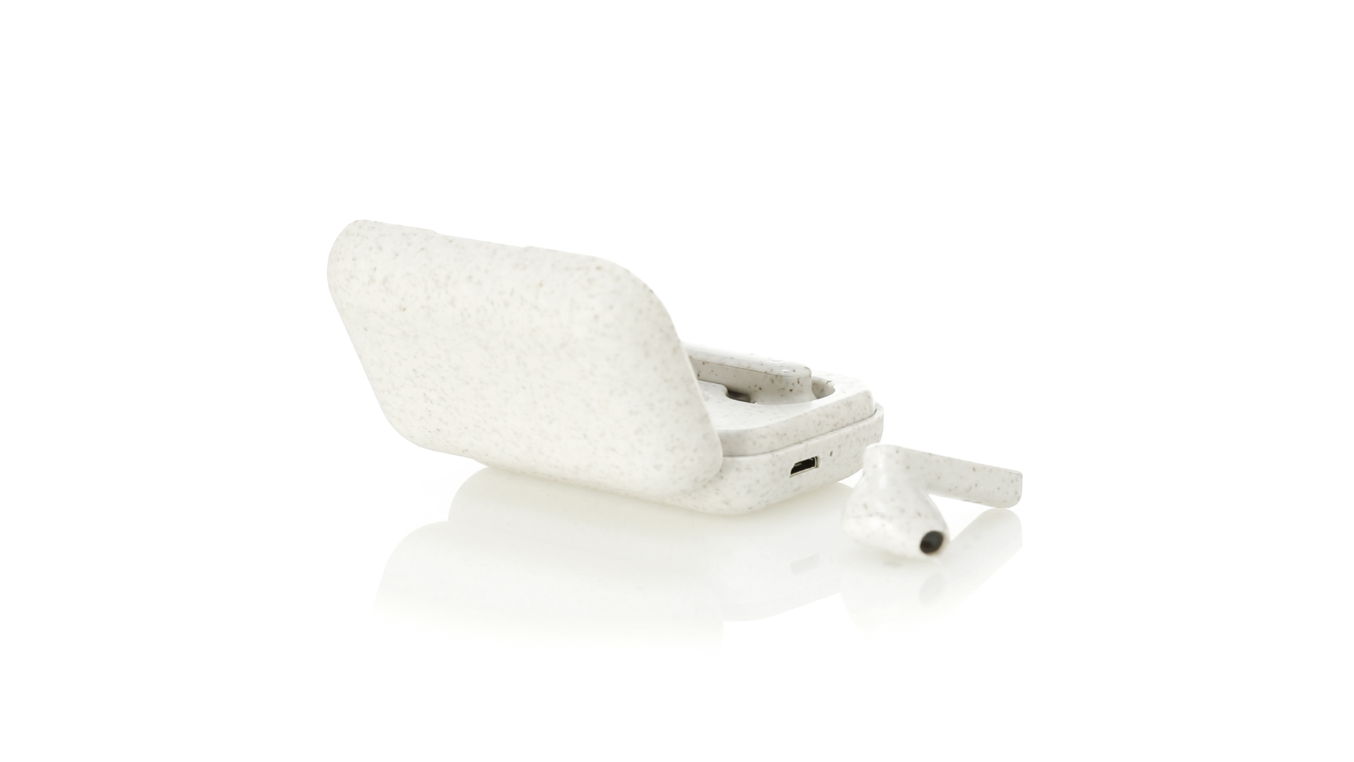 Natureline - Ohrhörer mit Bluetooth® 5.0-Verbindung aus Weizenstroh, um die Verwendung natürlicher Rohstoffe zu fördern und Schadstoffemissionen zu reduzieren. Ergonomisches Design, einschliesslich einer integrierten, berührungsempfindlichen Steuertaste im Ohrhörer, mit farblich angepasster Ladestation und LED-Licht für den Ladestatus. Freisprechfunktion und wiederaufladbar - Mikro-USB-Kabel im Lieferumfang enthalten -. Präsentiert in einem individuellen Deluxe-Etui mit Scharnierdeckel und in einer attraktiven, umweltfreundlichen Design-Box.