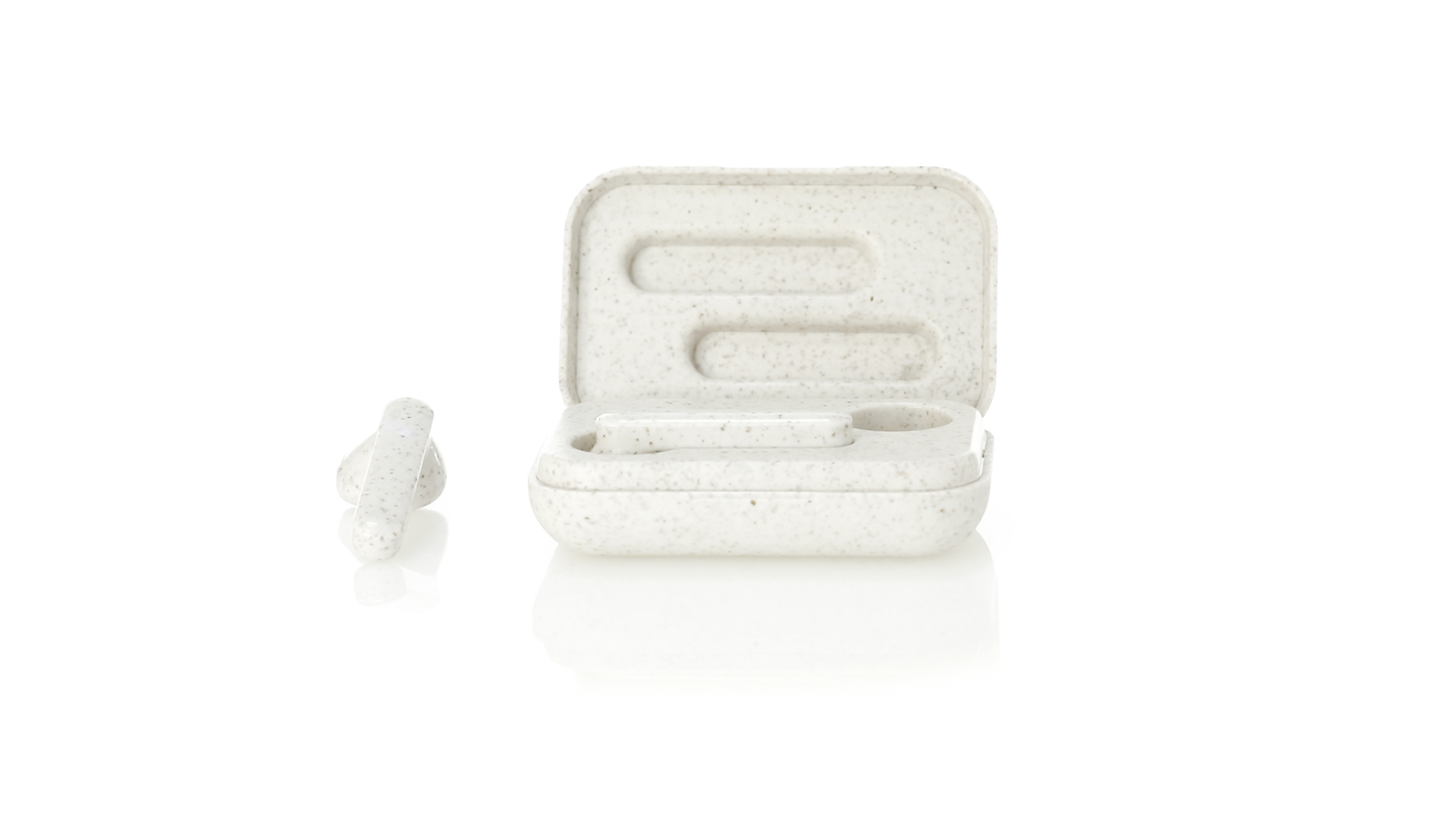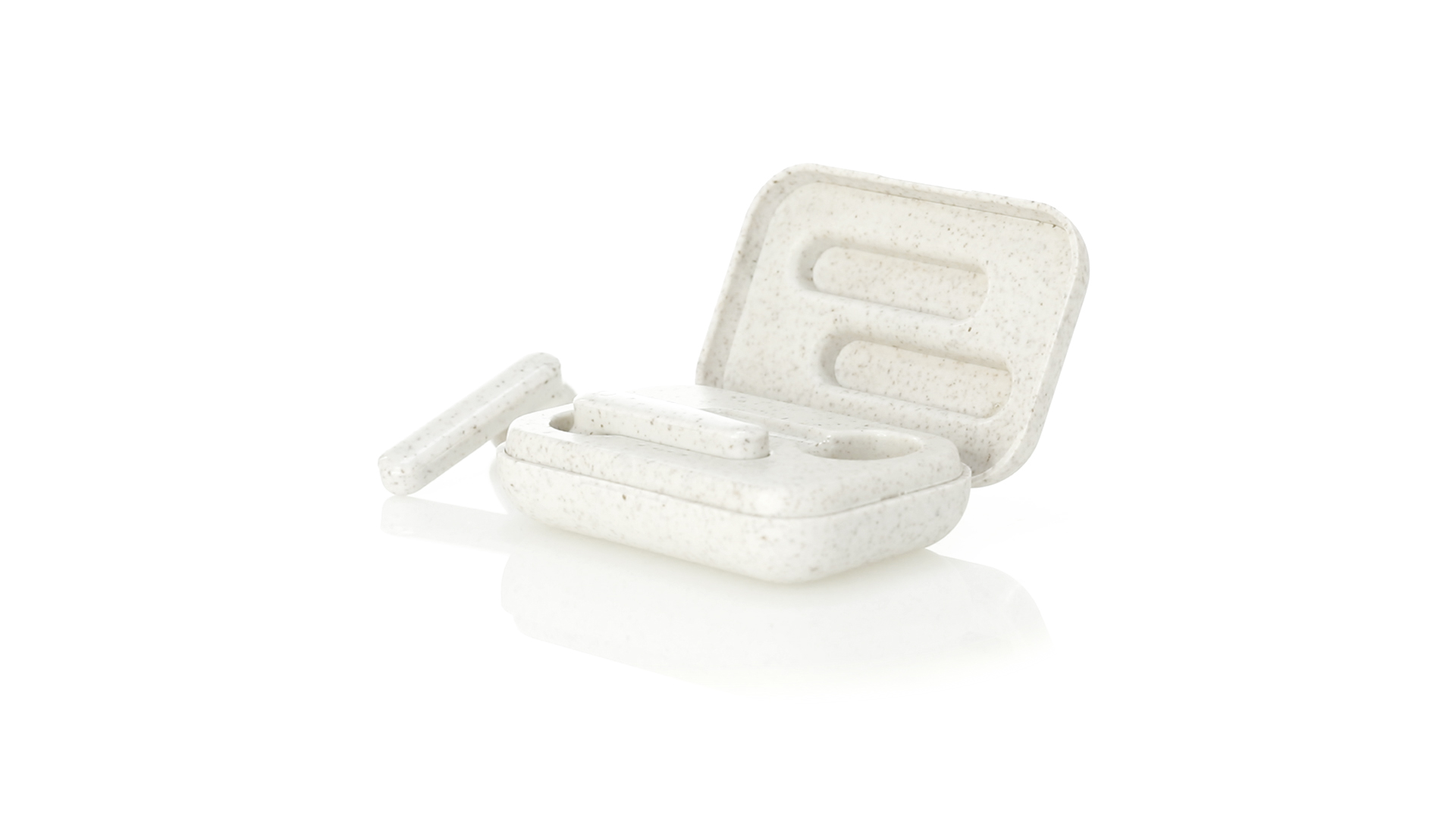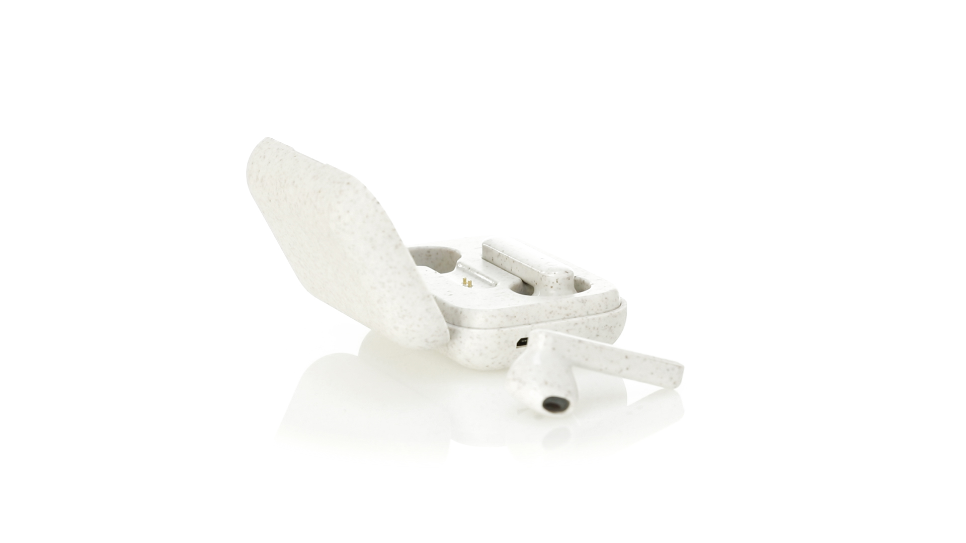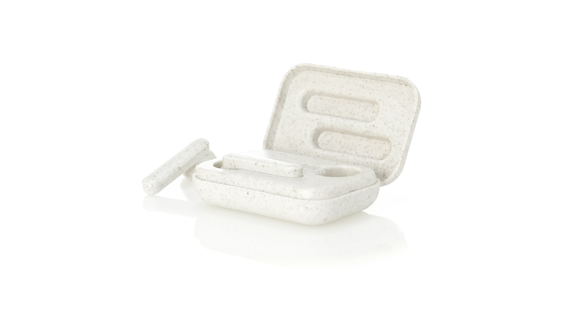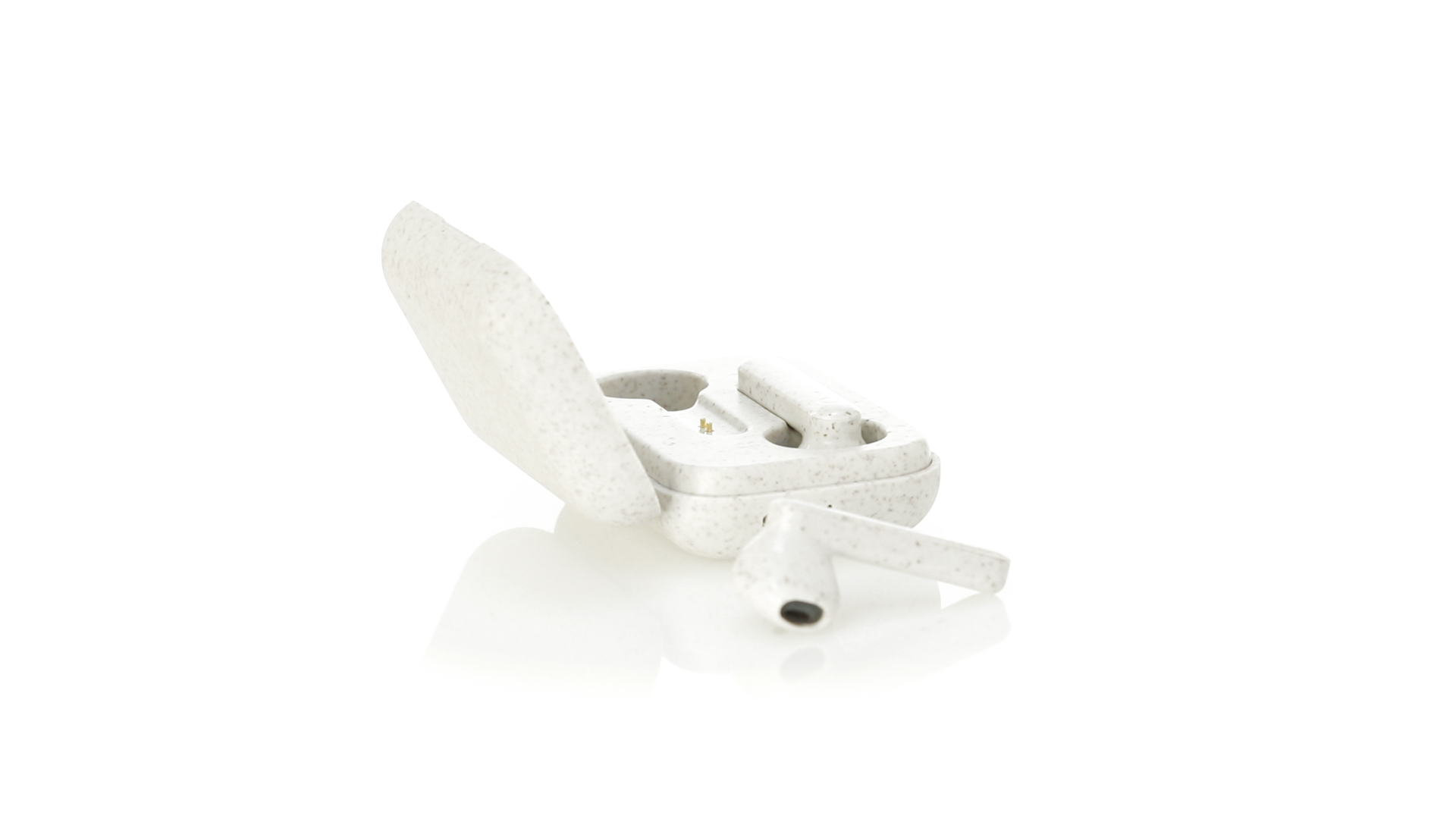 Natureline - Ohrhörer mit Bluetooth® 5.0-Verbindung aus Weizenstroh, um die Verwendung natürlicher Rohstoffe zu fördern und Schadstoffemissionen zu reduzieren. Ergonomisches Design, einschliesslich einer integrierten, berührungsempfindlichen Steuertaste im Ohrhörer, mit farblich angepasster Ladestation und LED-Licht für den Ladestatus. Freisprechfunktion und wiederaufladbar - Mikro-USB-Kabel im Lieferumfang enthalten -. Präsentiert in einem individuellen Deluxe-Etui mit Scharnierdeckel und in einer attraktiven, umweltfreundlichen Design-Box.