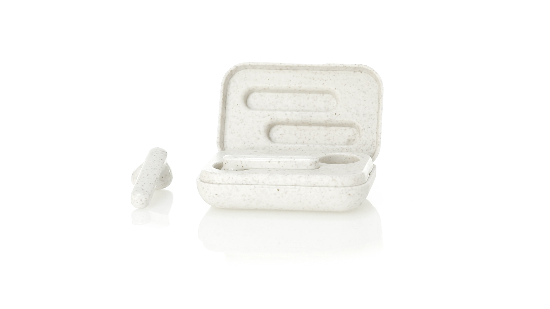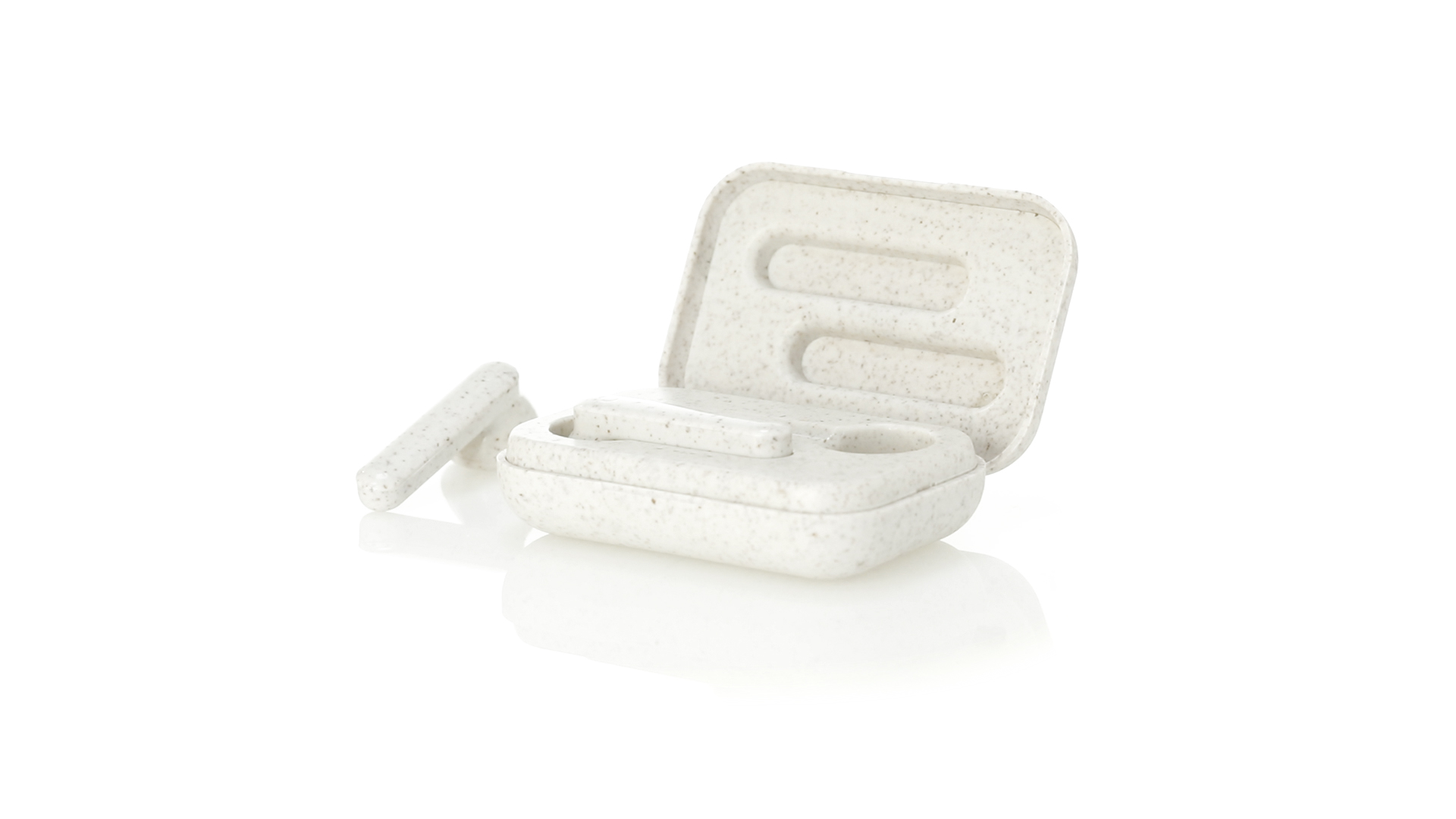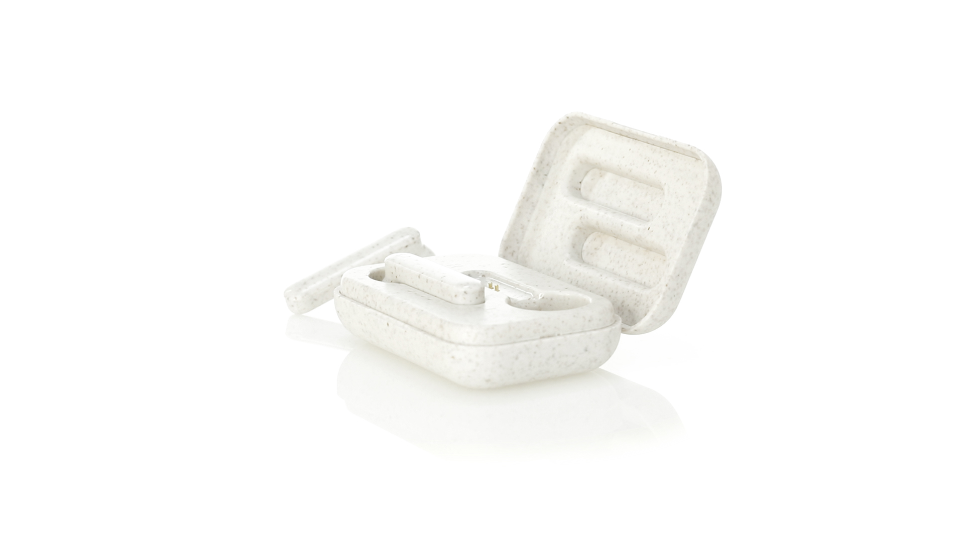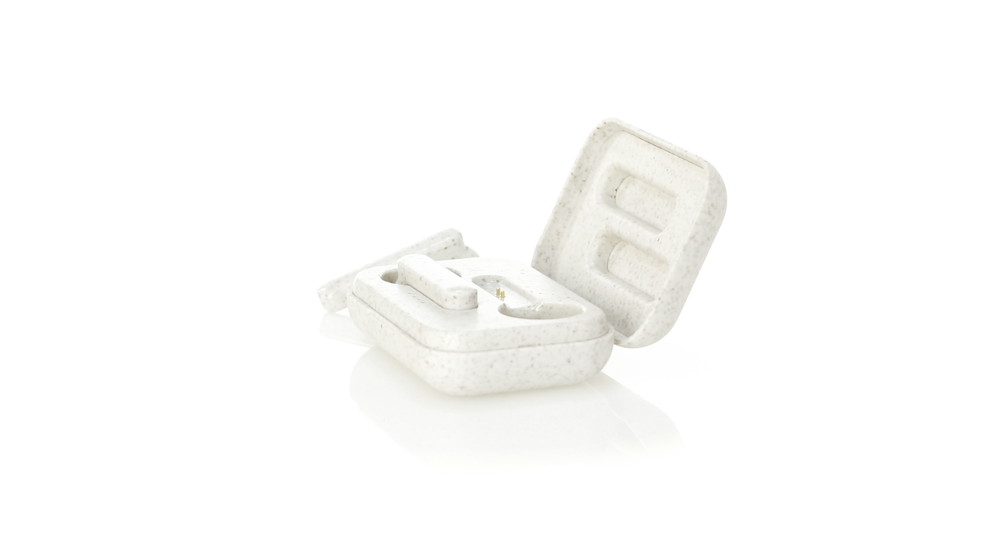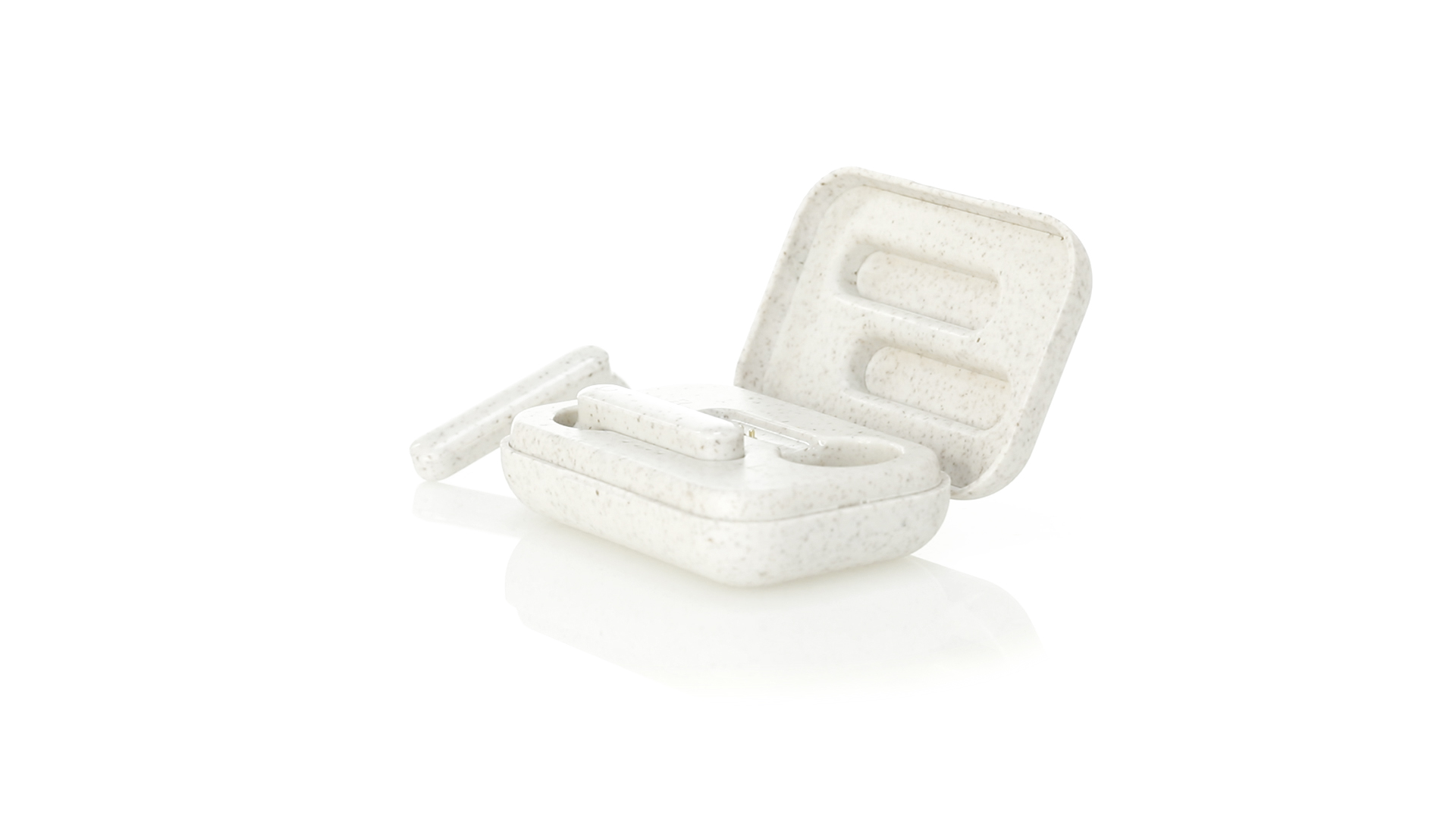 Natureline - Ohrhörer mit Bluetooth® 5.0-Verbindung aus Weizenstroh, um die Verwendung natürlicher Rohstoffe zu fördern und Schadstoffemissionen zu reduzieren. Ergonomisches Design, einschliesslich einer integrierten, berührungsempfindlichen Steuertaste im Ohrhörer, mit farblich angepasster Ladestation und LED-Licht für den Ladestatus. Freisprechfunktion und wiederaufladbar - Mikro-USB-Kabel im Lieferumfang enthalten -. Präsentiert in einem individuellen Deluxe-Etui mit Scharnierdeckel und in einer attraktiven, umweltfreundlichen Design-Box.