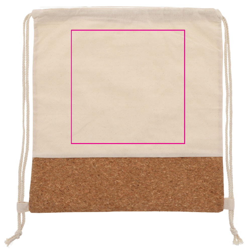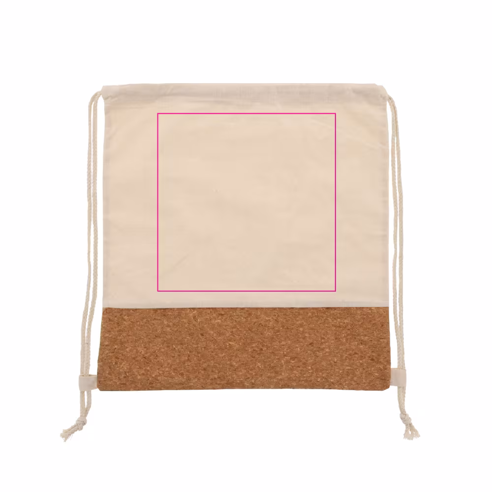Rucksackbeutel aus Baumwolle und Kork. Einfach und bequem um auf dem Rücken zu tragen.