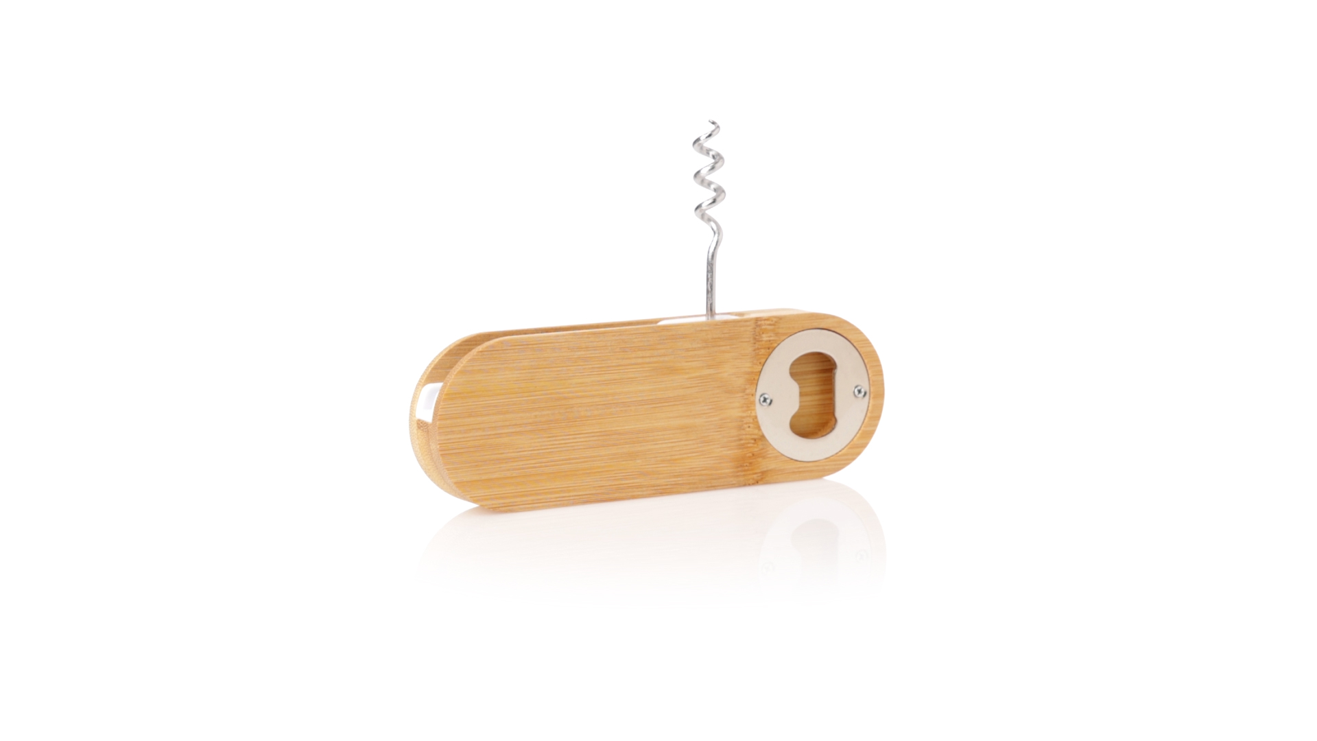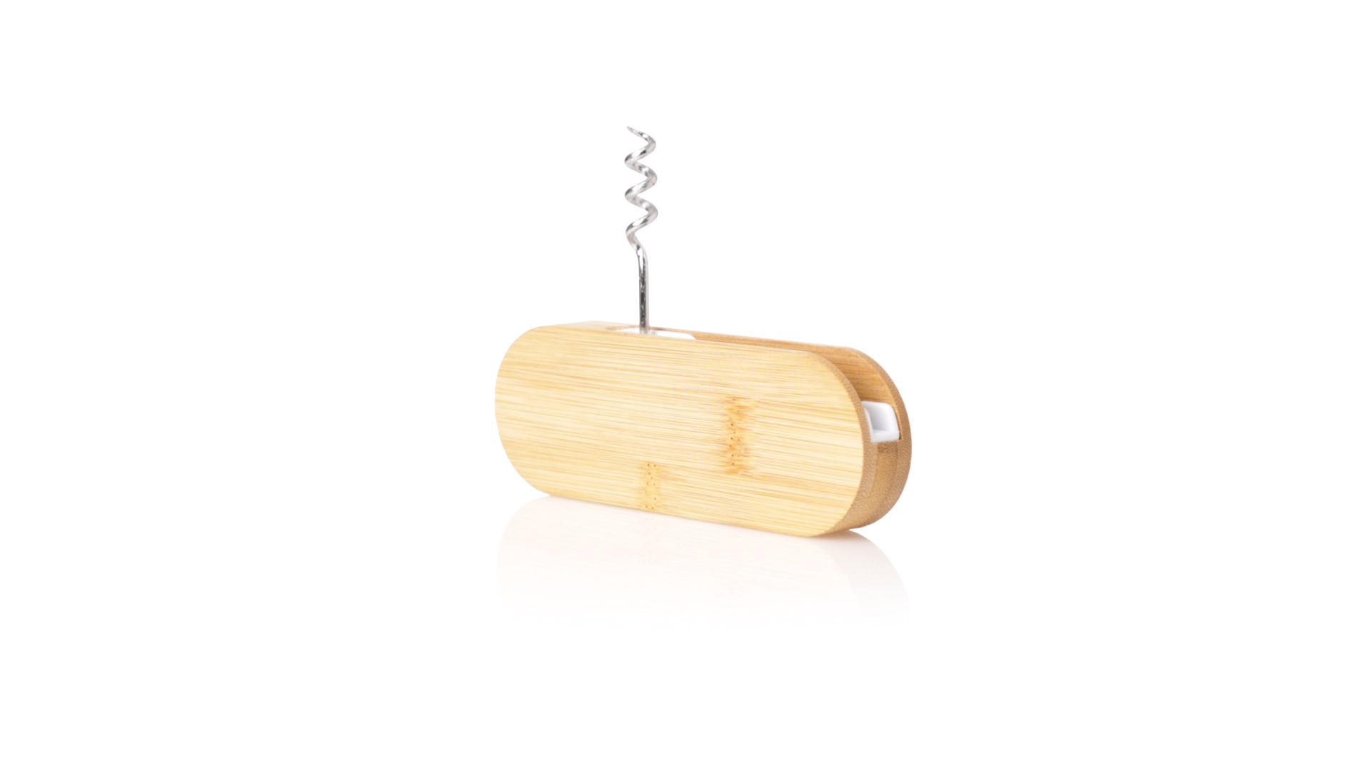 Linie Natur Origineller magnetischer Korkenzieher, hergestellt aus widerstandsfähigem Bambus. Mit in den Korpus integriertem Korkenzieher und Metallöffnungssystem.