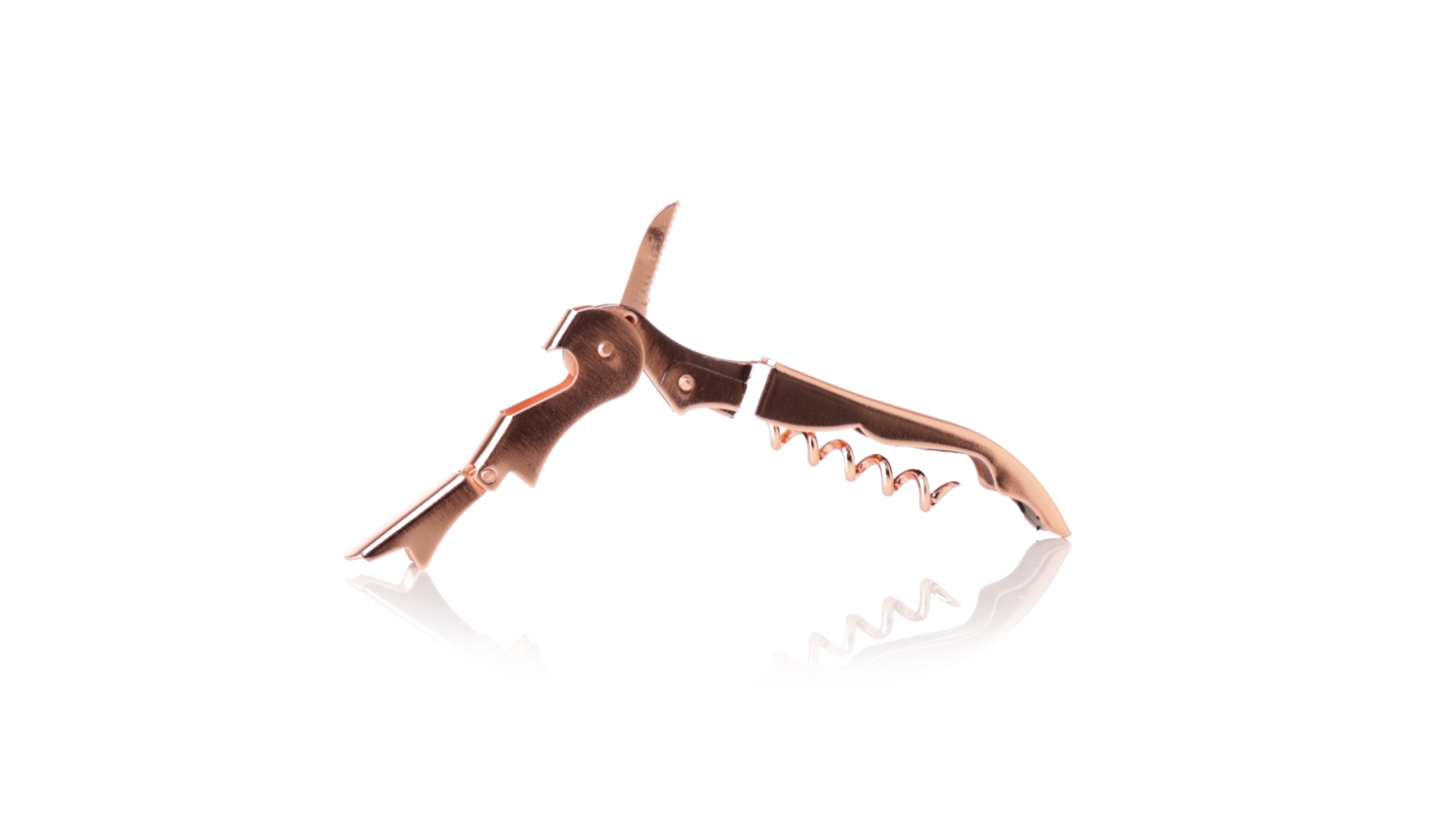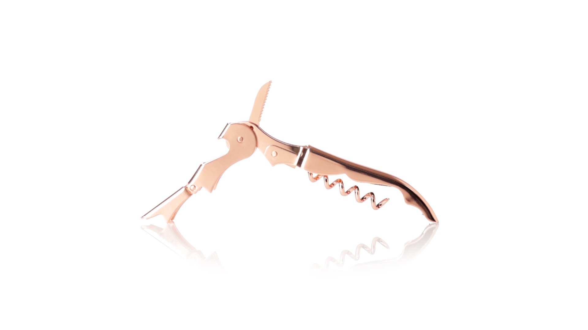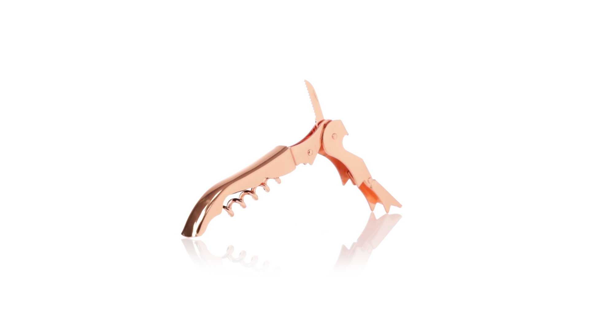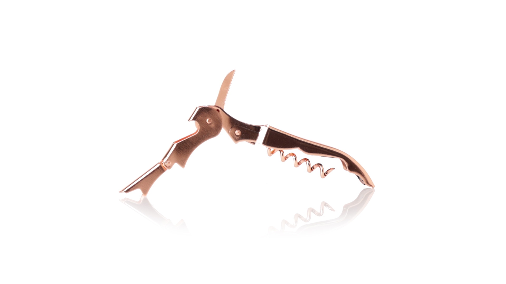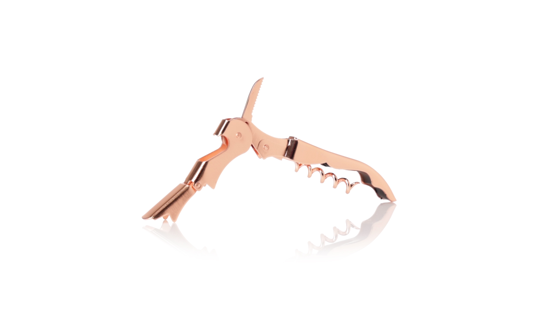 2-Takt-Korkenzieher aus rostfreiem Stahl mit verzinkter Kupferbeschichtung. Integrierter Kapselschneider und präsentiert in einer individuellen Designbox.