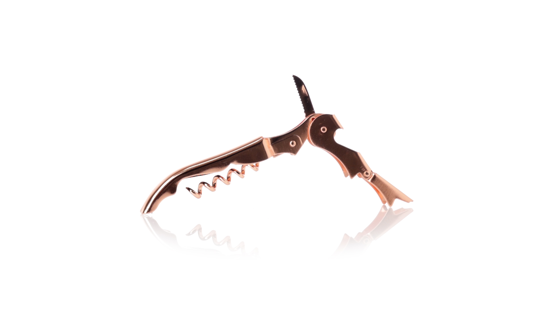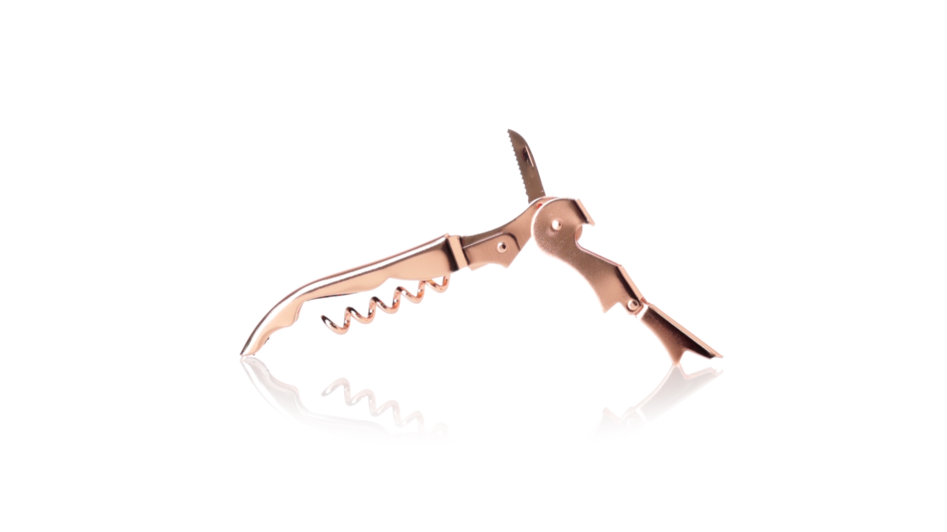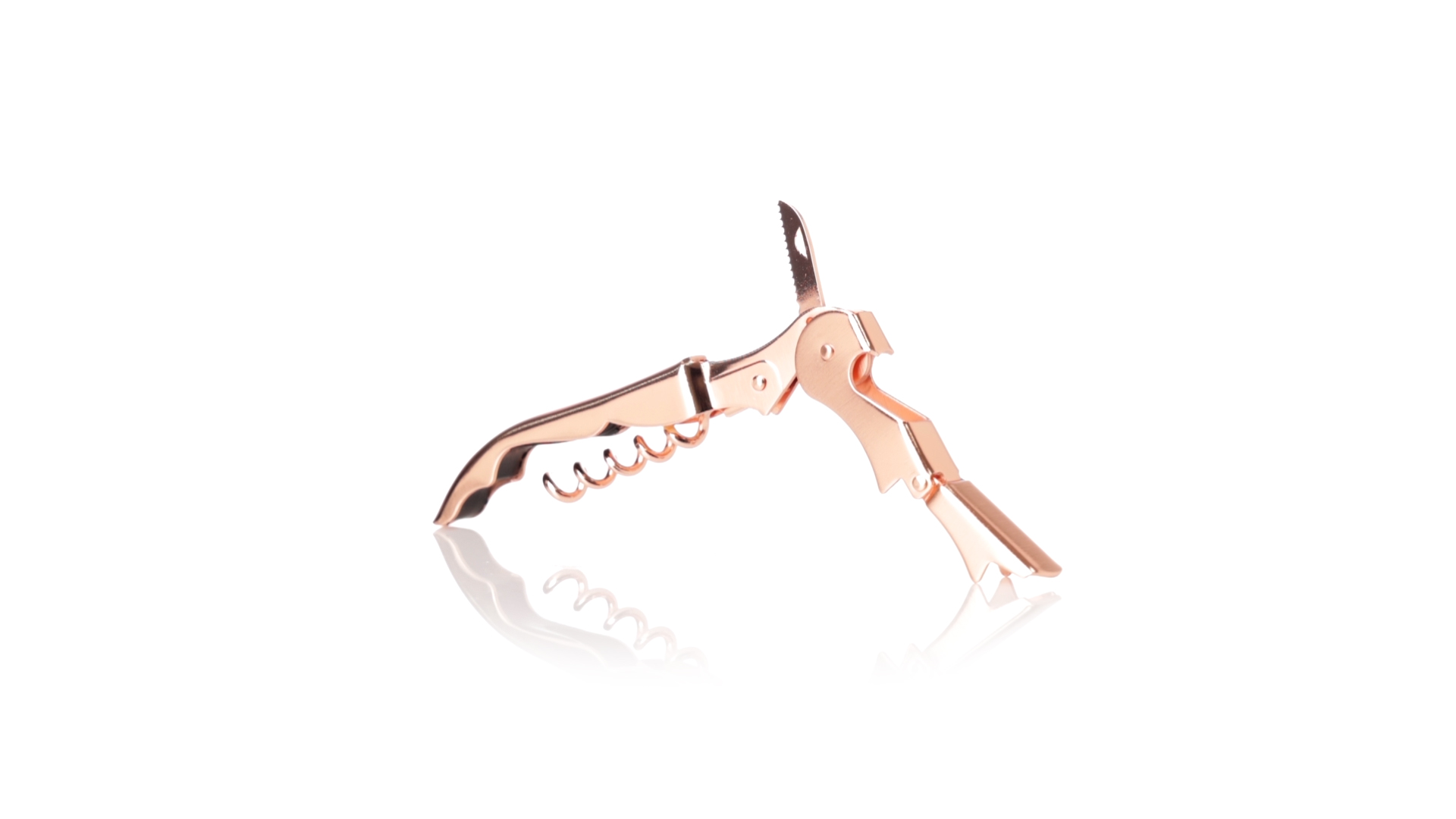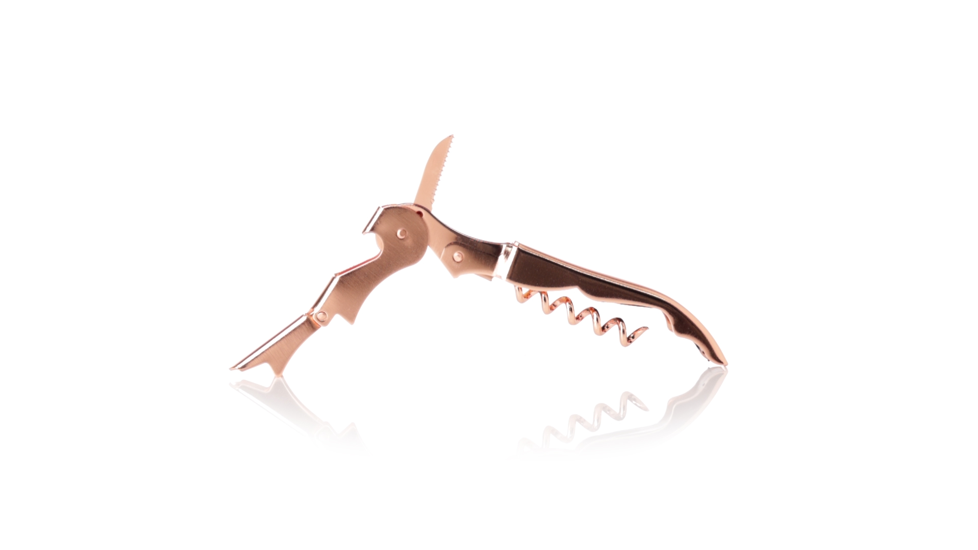 2-Takt-Korkenzieher aus rostfreiem Stahl mit verzinkter Kupferbeschichtung. Integrierter Kapselschneider und präsentiert in einer individuellen Designbox.