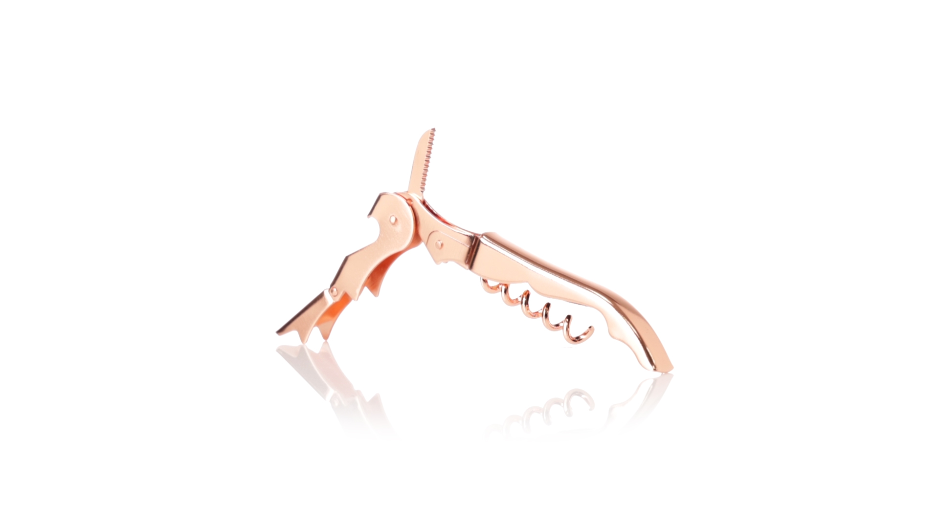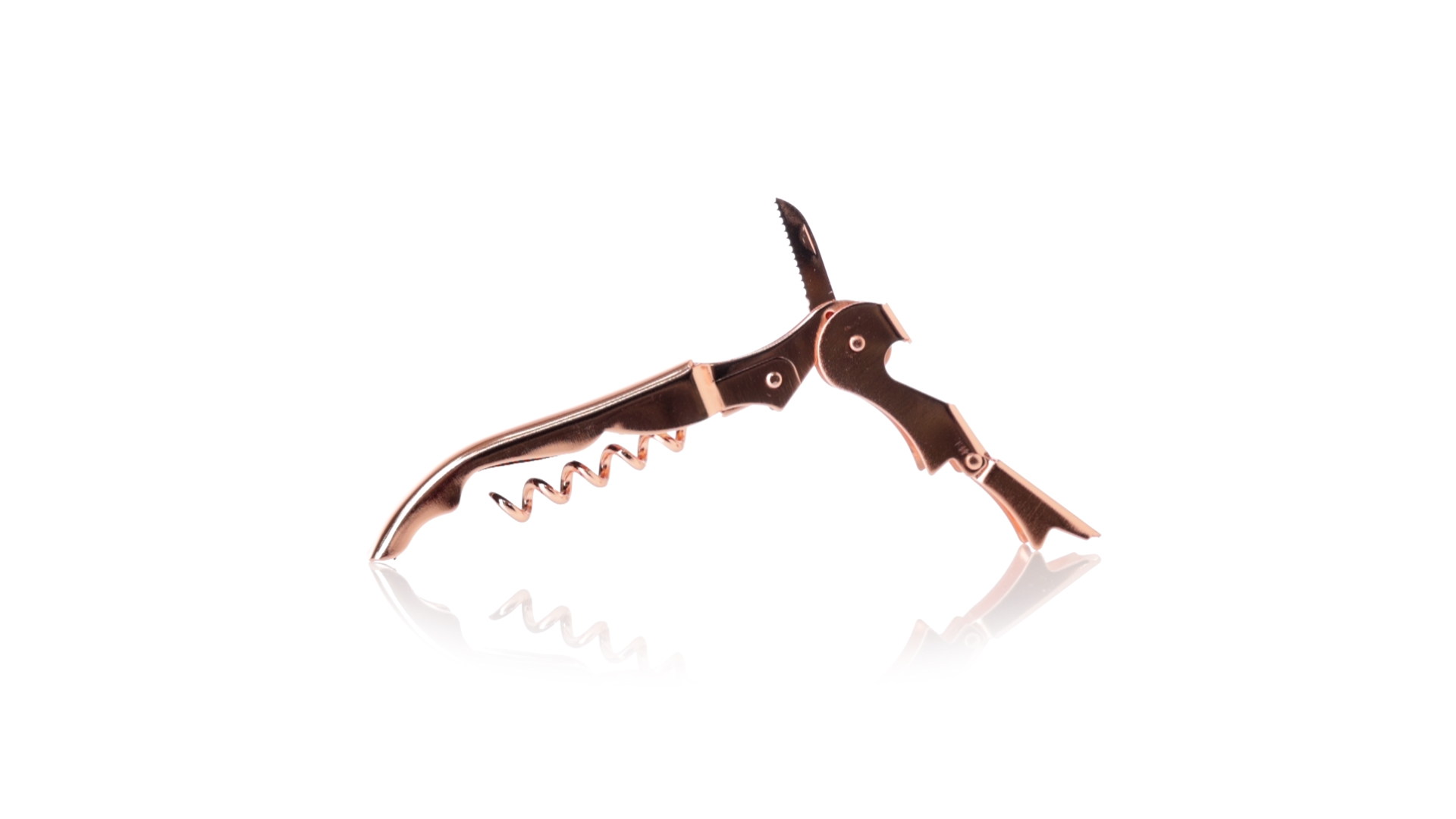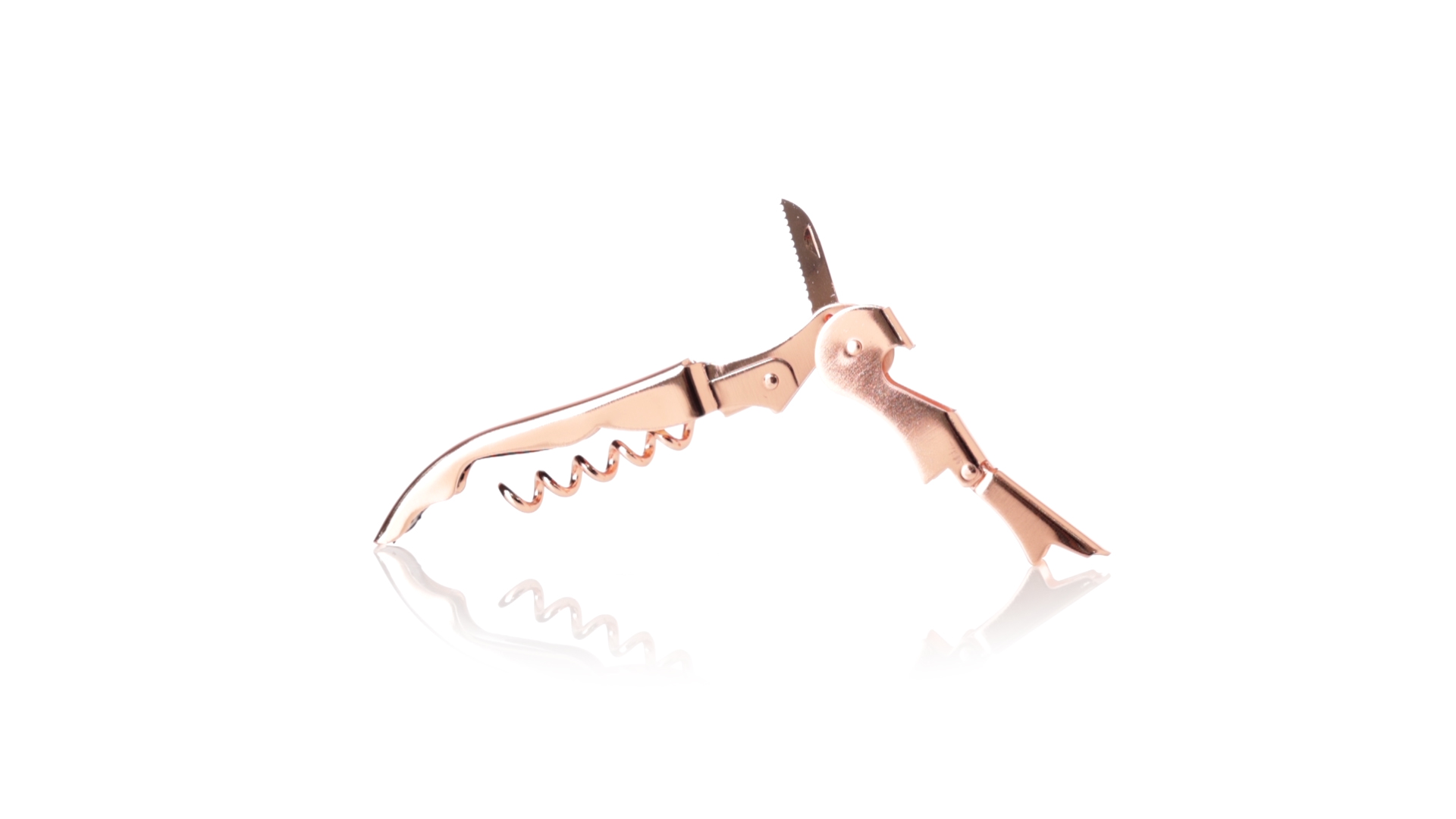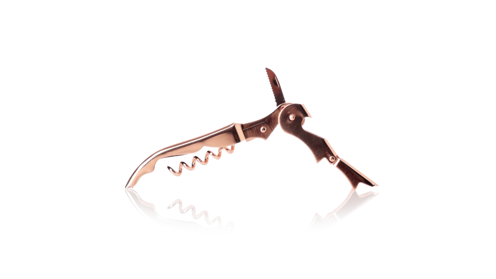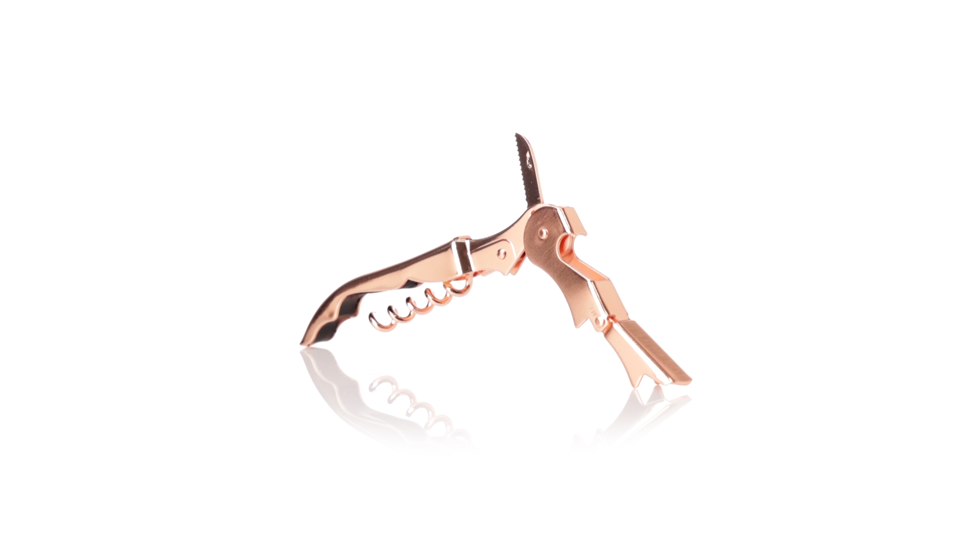 2-Takt-Korkenzieher aus rostfreiem Stahl mit verzinkter Kupferbeschichtung. Integrierter Kapselschneider und präsentiert in einer individuellen Designbox.