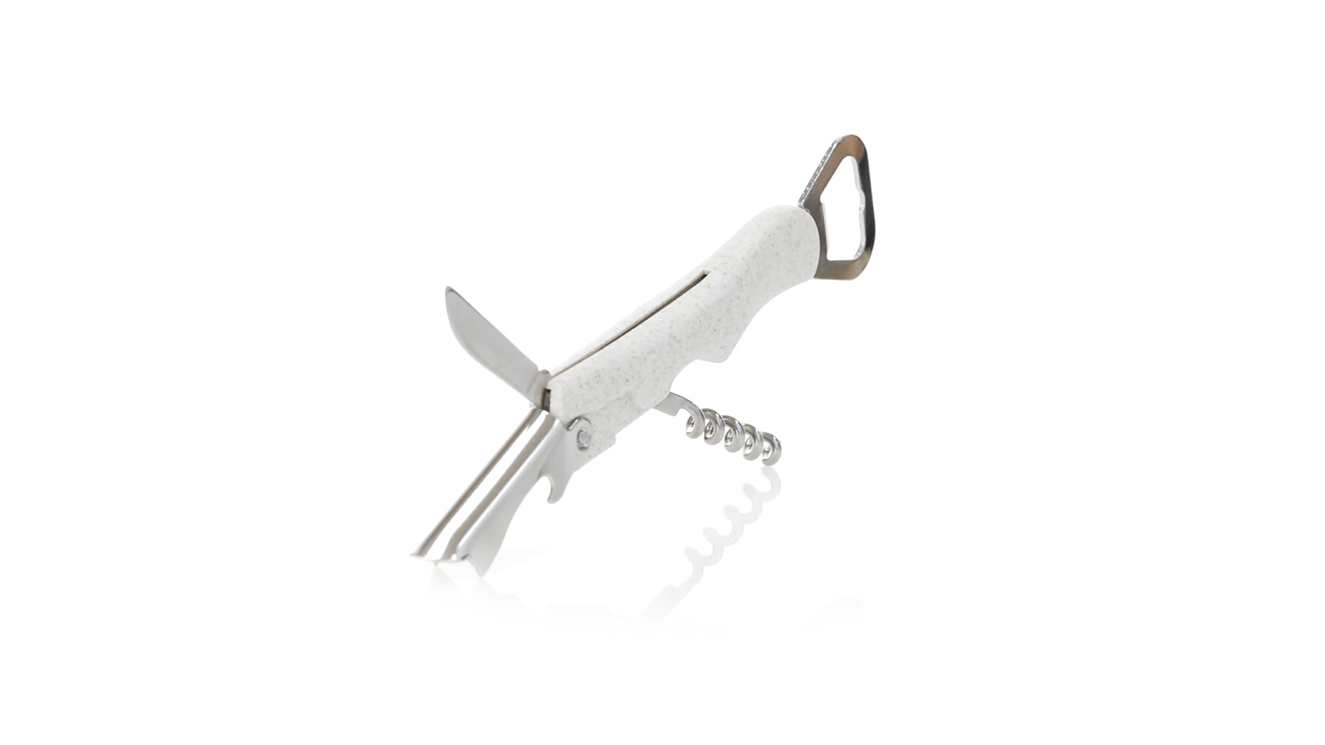 Nature Line Korkenzieher mit Flaschenöffner und Kapselschneider. Hergestellt aus Bambusfaser und ABS, mit Zubehör aus Edelstahl. Präsentiert in einer attraktiven Einzelverpackung im Öko-Design.